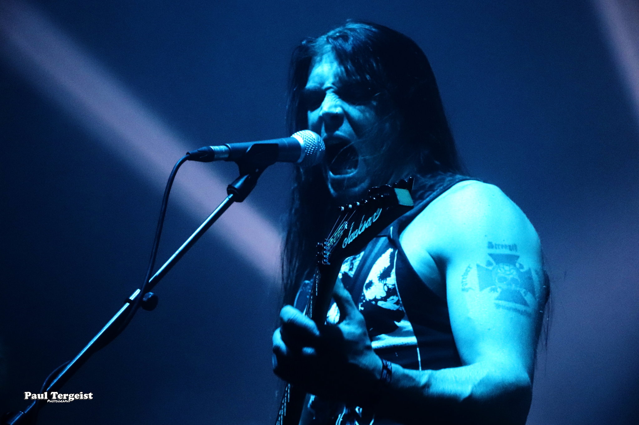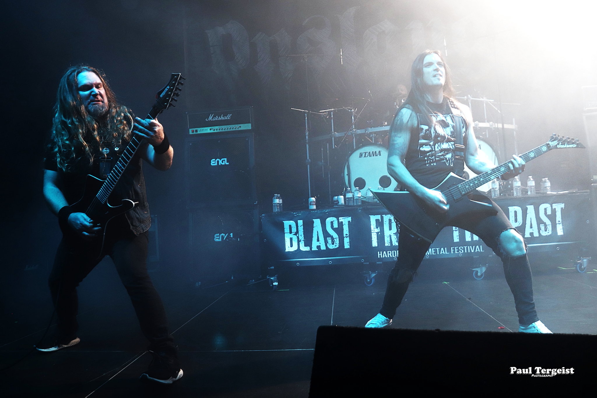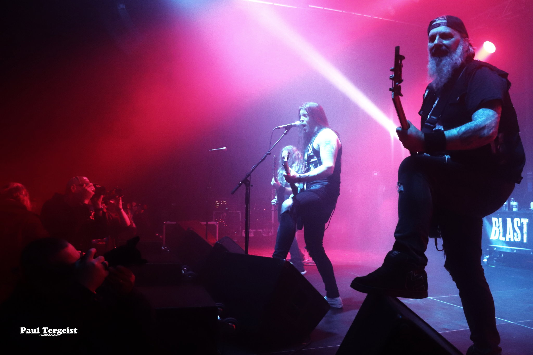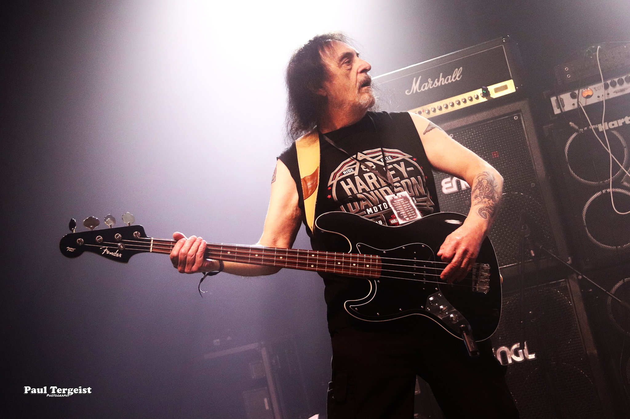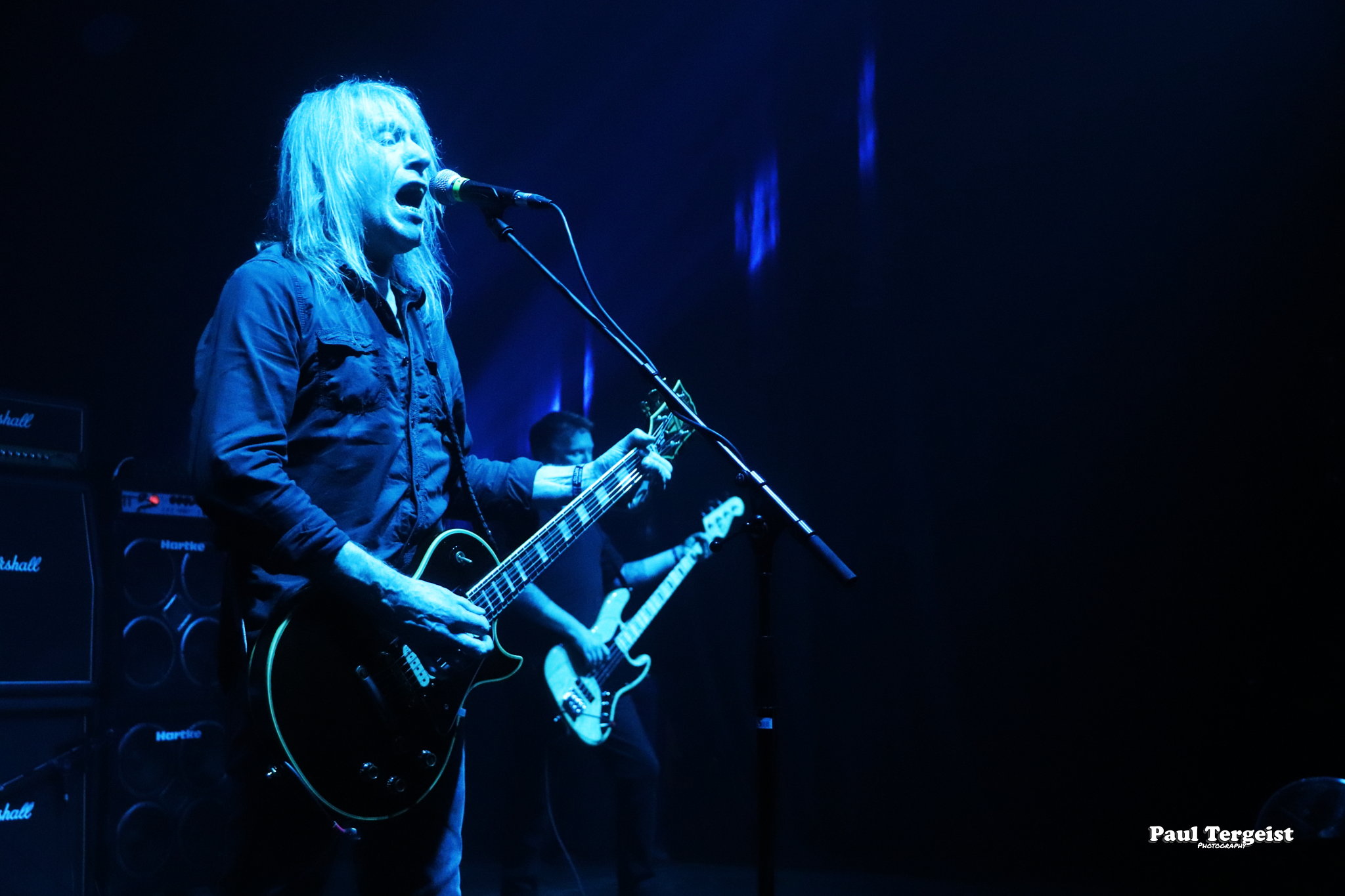 En tête d’affiche, Angel Witch était d’autant plus attendu qu’il n’a pas posé ses valises en Belgique depuis un bail, et que cette date était, de plus, sa première de l’ère post-covid. Le groupe, culte et influent s’il en est, a toujours occupé une position à part au sein de la NWOBHM, en raison d’un style particulier, qui mêle à la tradition du genre, des éléments de ce qui ne s’appelait pas encore, à l’époque, le doom. Des formations comme Candlemass, par exemple, n’ont d’ailleurs jamais caché l’influence non négligeable d’Angel Witch sur elles. Le groupe livre une prestation sans hiatus et sans fioritures, faisant exclusivement la part belle au premier album éponyme daté de 1980 et au petit dernier, Angel of Light (2019), qui occupent chacun à peu près une demi set-list, complétée par une incursion dans le très recommandable As Above, So Below (2012) par le biais de Dead Sea Scrolls.