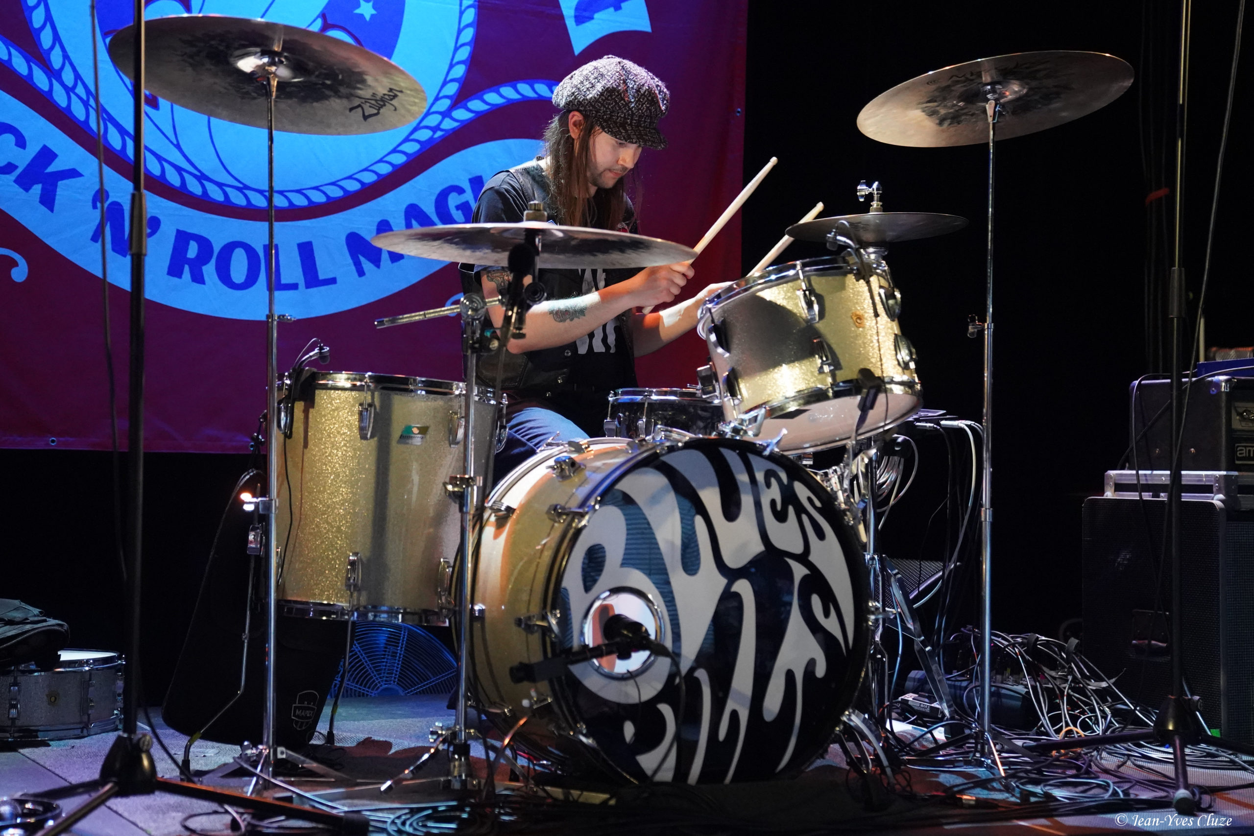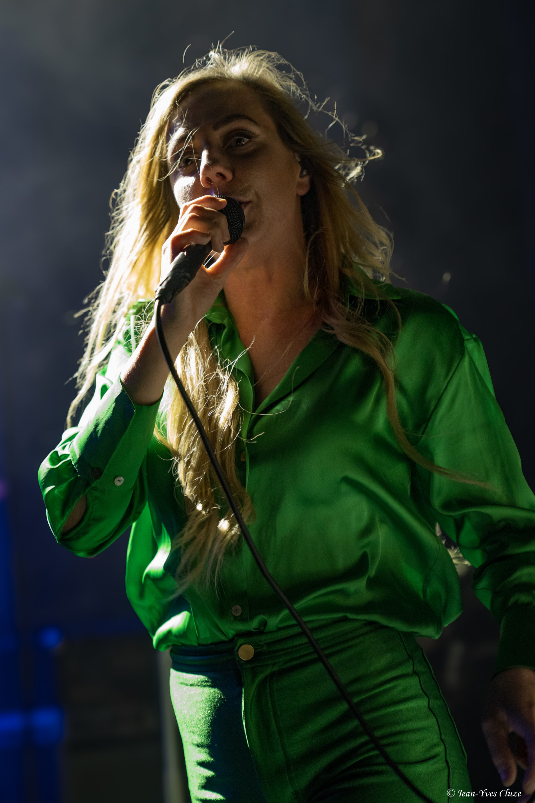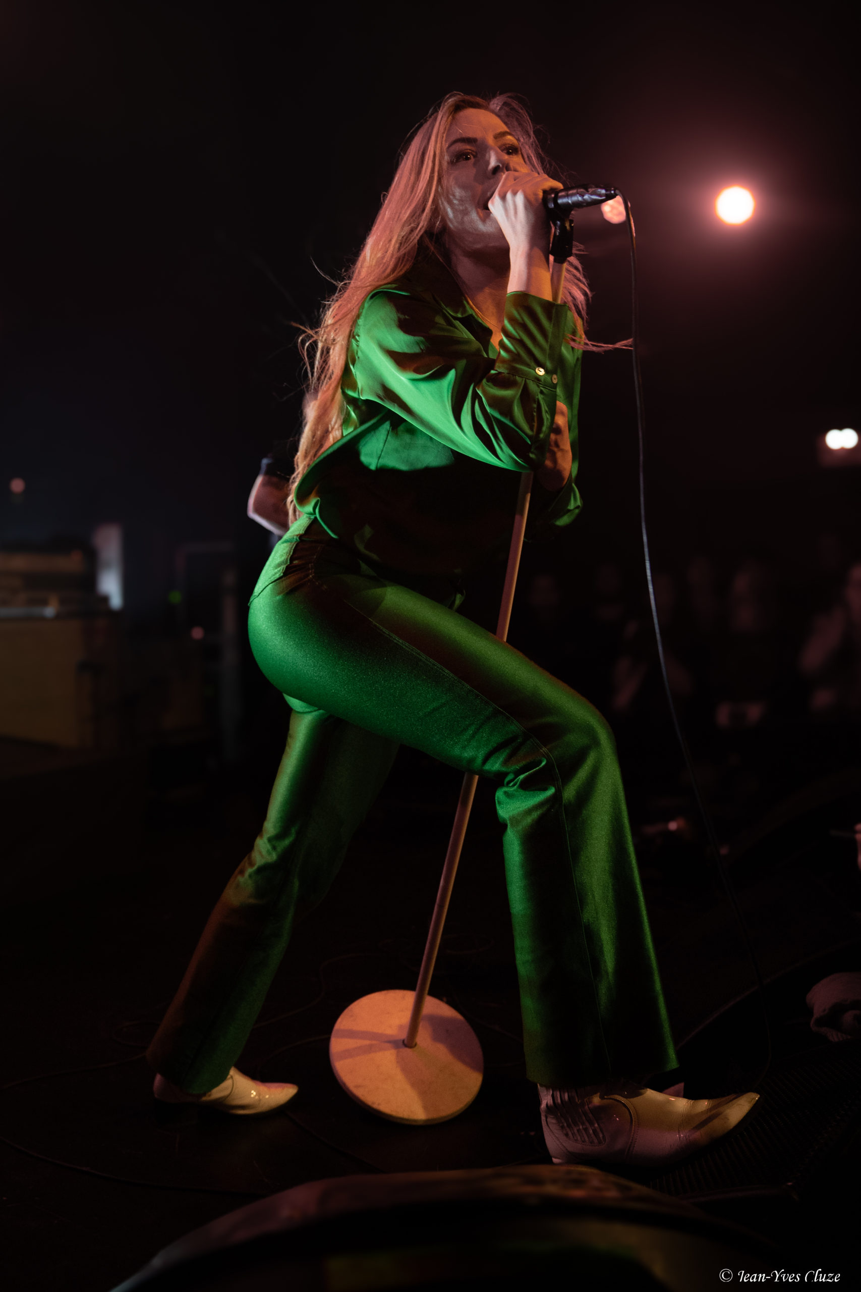 Après une pause de rigueur, les lumières du Marché-Gare s’atténuent, tandis que Birthday des Beatles fait office d’ouverture sur laquelle les quatre membres de notre tête d’affiche du soir Blues Pills entrent en scène, référence évidente à leur dernier album en date portant le même titre et sorti en août dernier. S’ensuit un début de set consistant, en toute logique, à un enchaînement des quatre premiers titres de cet opus ; à commencer par le morceau homonyme qui donne au guitariste Zack Anderson l’occasion de démontrer sa maîtrise des pédales d’effet, suivi de Don’t You Love It et de Bad Choices. Une très bonne idée en tout cas, ces morceaux passant plus que bien en live et le démarrage sur les chapeaux de roue laissant la place à un rythme allant decrescendo, jusqu’à la ballade Top of the Sky qui marque un premier moment de relâchement. En dépit de la probable fatigue liée à la tournée, les quatre Suédois affichent une forme de tous les instants, la chanteuse Elin Larsson en première ligne, vers qui tous les regards sont braqués tels des projecteurs comme de coutume dans un concert de Blues Pills. Très élégante dans sa tenue vert émeraude, la charismatique frontwoman capte et accapare l’attention par la puissance de sa voix et son enthousiasme électrisant. Ce débordement d’énergie lui viendrait-il, tout comme la direction artistique de Birthday, de sa maternité ? Une joie sincère se ressent en tout cas dans sa voix lorsque, lors de cette première pause, elle remercie chaleureusement le public pour sa présence et sa fidélité, de même que la tendresse lorsqu’elle mentionne son petit garçon de tout juste un an qui accompagne le groupe en tournée… « C’est grâce à vous si je peux concilier ma vie de maman et ma passion ! » clame Elin en envoyant des baisers dans toutes les directions, y compris à l’attention des roadies derrière les rideaux. Vu comme ça, l’on ne peut que la croire dès lors qu’elle affirme que la France et Lyon comptent parmi les endroits préférés de Blues Pills pour y jouer !