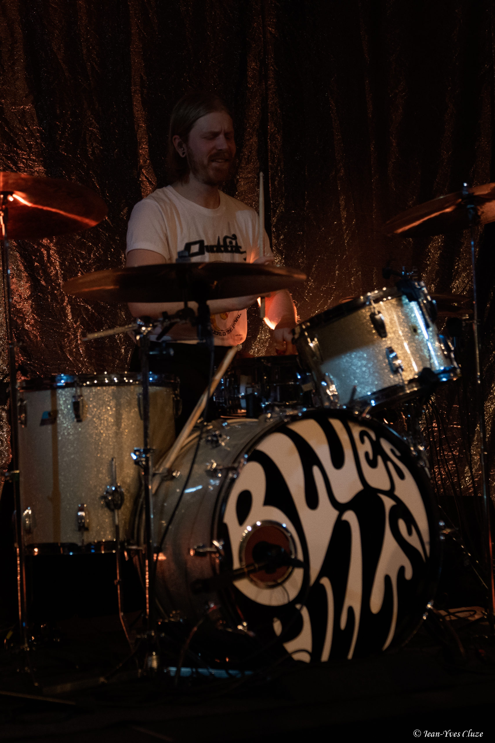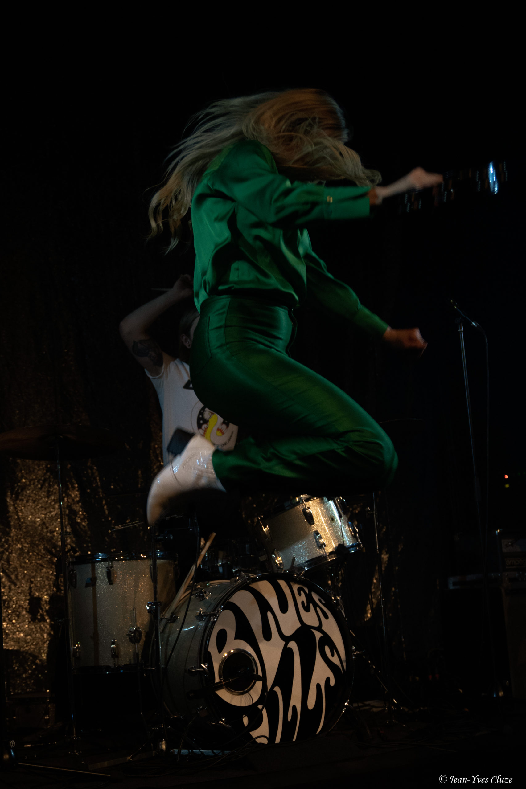 Après ce moment d’émotion vient celui des rappels, qui débute par un instant d’autodérision de la part d’Elin Larsson, qui ne regrette pas la fin de la tournée… et pour cause, « J’adore ma tenue de scène, mais avec les fêtes qui approchent, je commence à ressembler à un sapin de Noël ! » plaisante la dame en vert. Le premier des morceaux de rappel consiste en un dernier extrait de Birthday, I Don’t Wanna Get Back on that Horse Again — ou plus simplement réduit à la seconde moitié du titre —, suivi de Bye Bye Birdy, sur lequel la chanteuse part de nouveau à la rencontre des spectateurs. Enfin, Blues Pills clôt son set sur l’iconique Devil Man issu du premier album éponyme, que vient lui-même clore un saut impressionnant de la part d’Elin Larsson sur la dernière note. Enfin, les deux groupes se réunissent pour saluer le public ensemble, moment propice à de joyeuses et amicales embrassades entre les huit musiciens, mettant ainsi un point final à leur tournée commune dans l’euphorie générale. Bravo les artistes !
