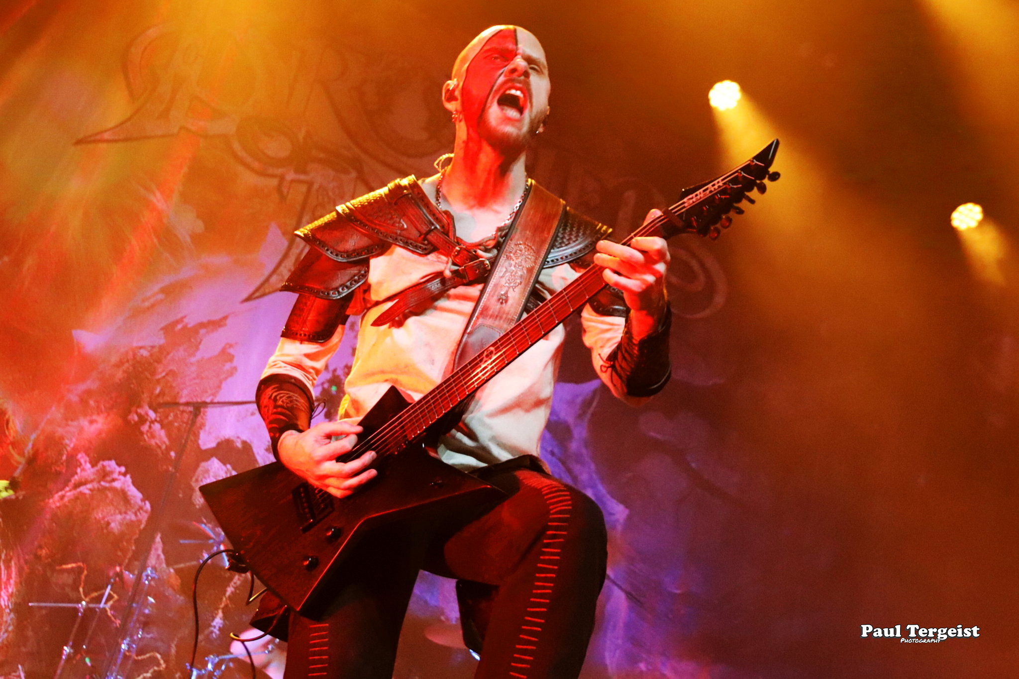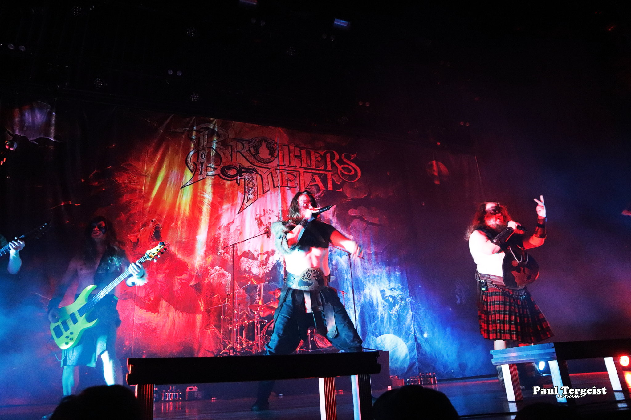 21 heures précises, les premières notes de Warriors of the World United de Manowar résonnent dans la salle, un rituel d’ouverture digne d’Iron Maiden et de son inévitable Doctor Doctor. Puis, c’est au tour de Brothers of Metal de nous emporter dans son univers mythologique. Le groupe suédois, avec sa musique puissante et mélodique, nous transporte au cœur de la mythologie nordique. Malheureusement, une ombre est venue assombrir cette soirée : l’indisposition d’Ylva Eriksson. La chanteuse, pourtant essentielle au groupe, a dû déclarer forfait. Une légère déception pour les fans, mais le groupe a su faire preuve de résilience. Si les deux autres chanteurs ont assuré le spectacle, l’absence d’Ylva ne s’est pas trop fait sentir. Des bandes enregistrées ont suppléé sa voix, à l’exception de deux titres interprétés en fin de concert où elle est apparue laissant sa tenue de guerrière au vestiaire. Le show reste une expérience inoubliable. Les fans ont pu vibrer au rythme de leurs chansons favorites, telles que Njord, Berserkir ainsi que le magnifique One pour terminer en apothéose cette soirée dédiée au metal pur et dur. Un concert de Brothers of Metal, c’est plonger au cœur de l’épopée viking, une expérience musicale intense où le heavy power metal révèle toute sa puissance.