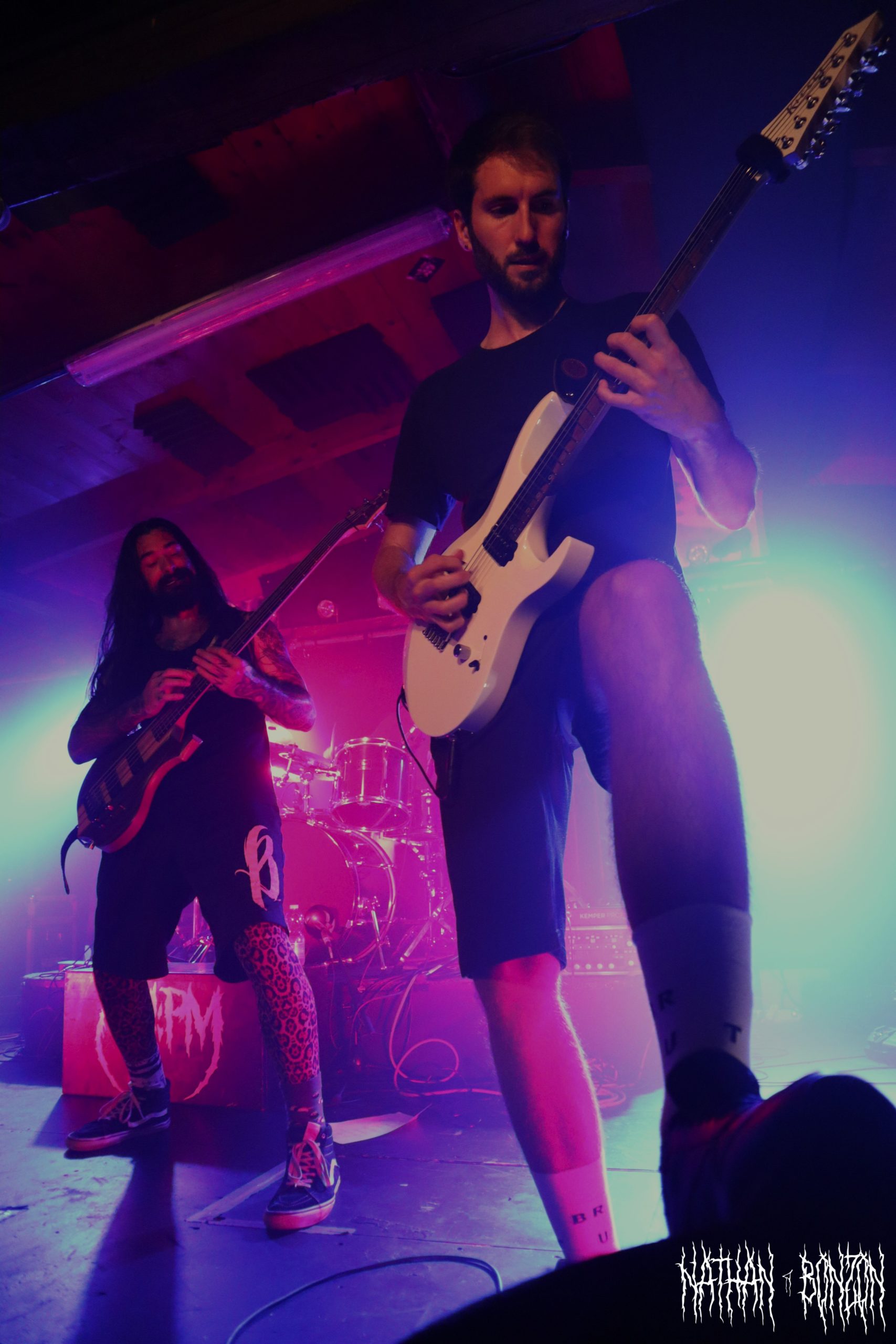 Les premiers à monter sur scène sont les suisses du groupe AM:PM. Formée en 2012 à Vevey dans le canton de Vaud, cette formation propose un deathcore/death metal mélodique exceptionnellement puissant. Le set des Veveysans commence par We Are the Storm, single sorti en 2020, hymne composé pour l’équipe de football de leur ville. Son refrain presque jovial installe tout de suite une bonne ambiance dans la salle. On enchaîne avec Serpentine, un morceau tout récent qui date de février 2024. Celui-ci marque une nouvelle ère dans l’histoire du groupe et est le premier sur lequel on entend les dernières recrues que sont le chanteur et le batteur. Des riffs lourds et un breakdown dévastateur donnent le ton pour le reste de la soirée qui s’annonce mouvementée. AM:PM continue avec des classiques provenant de son dernier album en date, A Mountain Peaks’ Myth (un pur chef d’œuvre sorti en 2019), notamment Into the Grooves, Therefore Do I Roam, ou encore l’excellent When Titans Fell. Ce dernier, long de presque sept minutes, incorpore tout l’esprit du groupe : des riffs techniques, de gros breakdowns et des moments ultra épiques, accentués par des orchestrations symphoniques. C’est magistral, le tout rend incroyablement bien en live ! Le set se termine par une bonne surprise : deux morceaux inédits. Le groupe est en effet en période d’enregistrement et nous propose en exclusivité Despised Paradise et Increase. Se rapprochant presque du hardcore à certains moments, ces titres enflamment la salle du Manoir avec d’agressifs breakdowns. Le groupe semble vraiment à l’aise sur scène, ayant plus d’une décennie d’expérience live au compteur, ce qui apporte une ambiance très fun et décontractée au concert. De la bonne musique qui tape, un public motivé et une atmosphère bon enfant, que demander de plus ?
