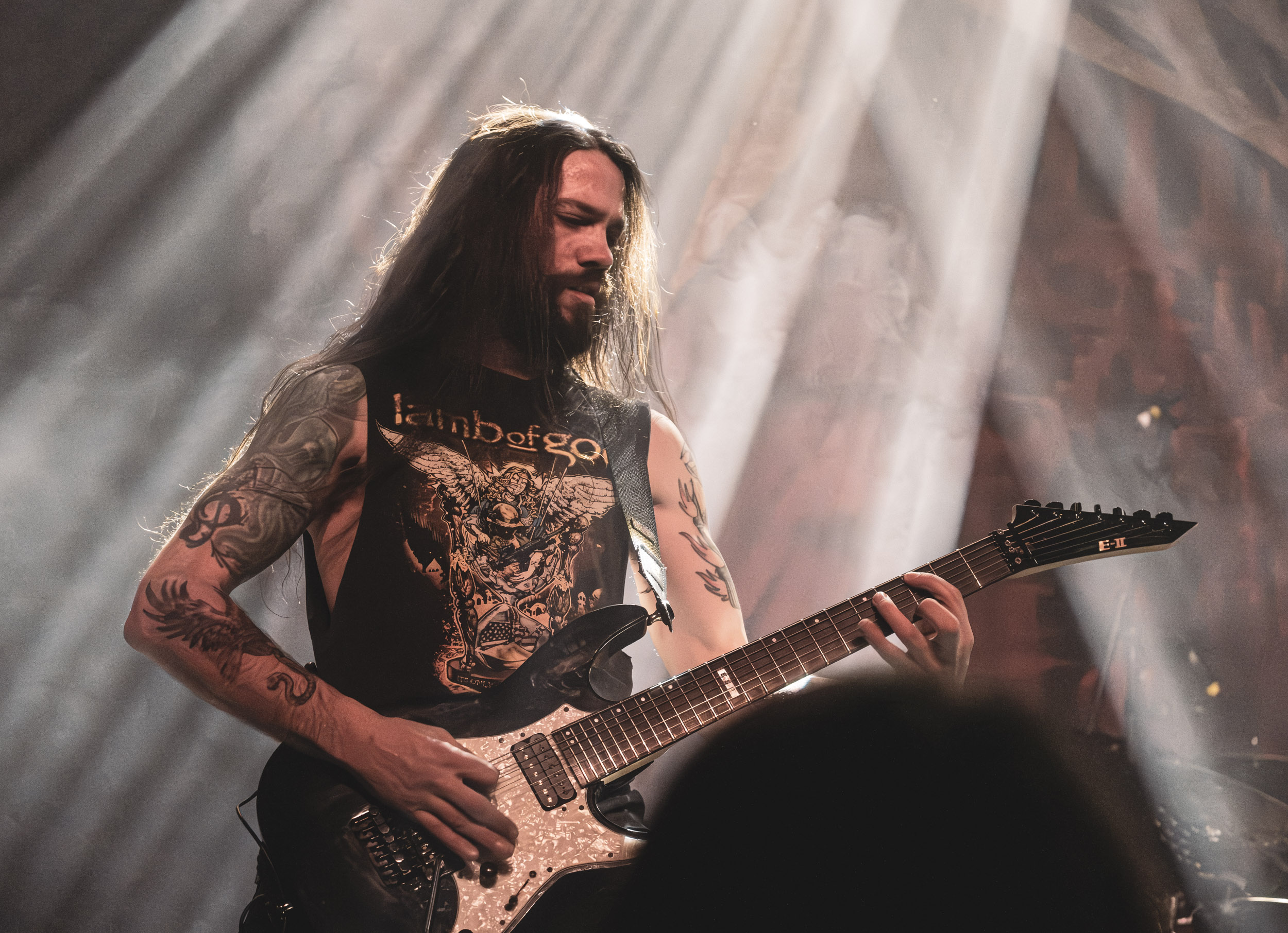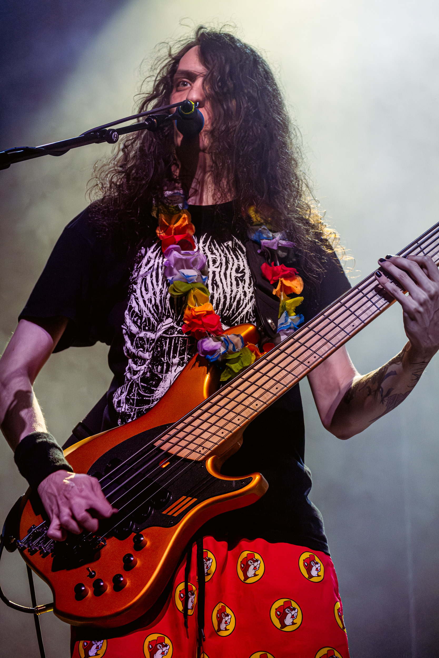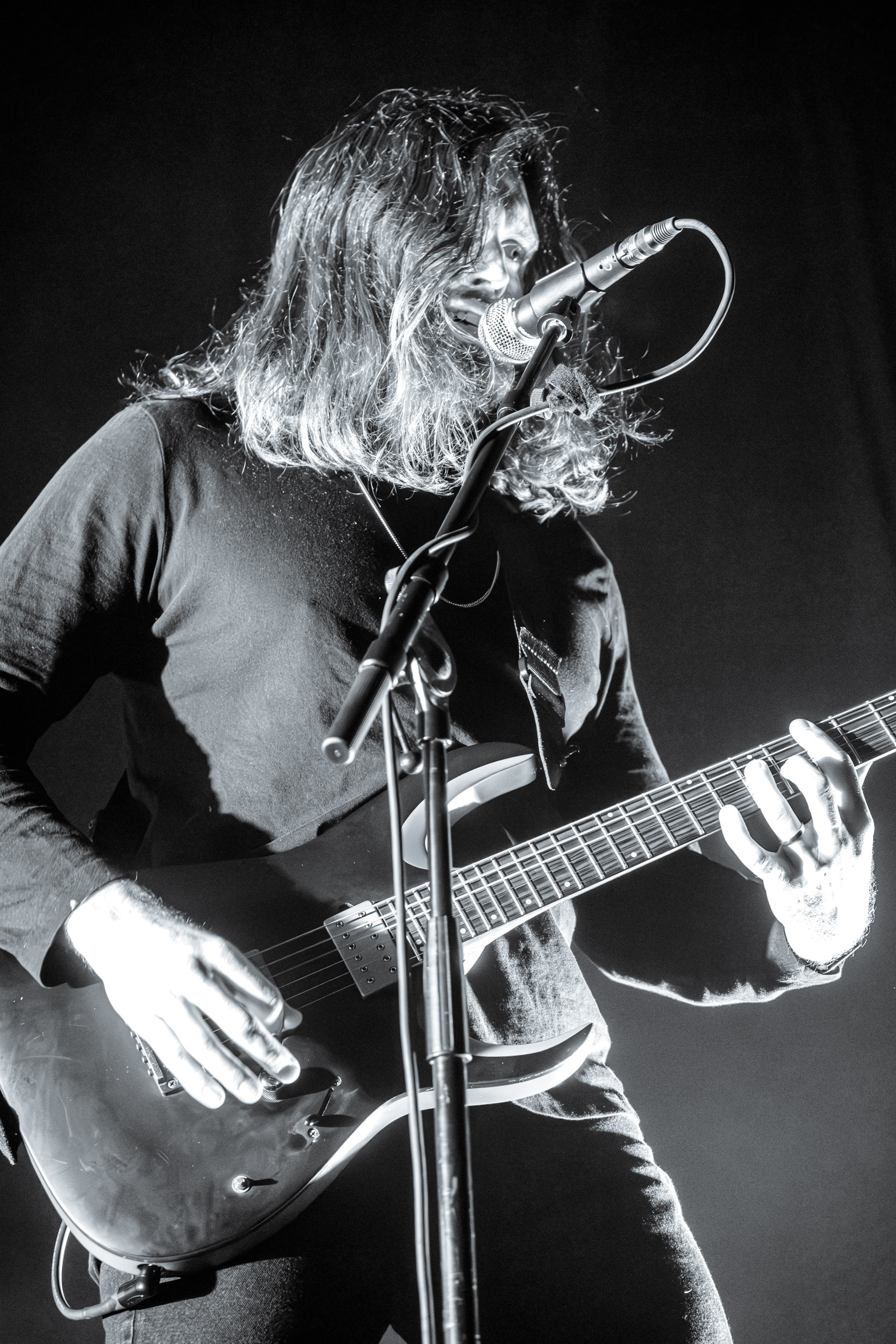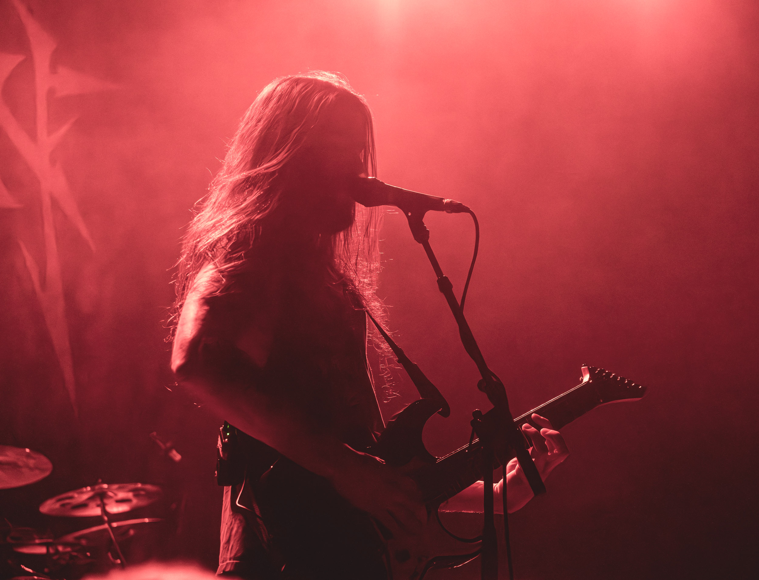 Ceux qui suivent mes live reports s’en souviennent peut-être, ma première rencontre scénique avec Cattle Decapitation s’était soldée par une déconvenue due à des conditions de prises de vues difficiles couplées à une mauvaise gestion du stress de ma part, et je mise sur le concert de ce soir pour rattraper le coup. Par chance pour moi, le set débute sur The Carbon Stampede suivi du plus récent The Prophets of Loss ; pas les morceaux les plus rapides, l’idéal pour permettre au public un échauffement raisonnable sans trop de risque de claquage… avant que les choses prennent un tournant autrement plus musclé avec l’enchaînement de We Eat Our Young et Scourge of the Offspring, deux extraits du dernier album Terrasite. Après ce démarrage qui nous a pour le moins secoués, Travis Ryan prend un moment pour adresser ses remerciements au public, en prenant soin de préciser dans son discours que c’est la première fois que le groupe joue à Lyon. Il déclare ensuite que le prochain morceau est là « pour rendre tout le monde heureux » et faire en sorte que tout le monde « rentre en bonne santé » ; les connaisseurs — ainsi que moi-même — comprennent vite qu’il s’agit de Bring Back the Plague ! Moi qui avais à peine profité de ce morceau, qui compte parmi mes préférés, à l’Inferno, je suis comblée. L’interlude The Great Dying part I ouvre ensuite la voie à One Day Closer to the End of the World, autre extrait de Death Atlas ; après quoi, le set prend un virage plus symphonique et cinématique avec le récent Solastalgia. De manière générale, la setlist est presque entièrement consacrée aux deux — excellents — derniers albums de Cattle Decapitation, sans jamais remonter au-delà de 2012 et de Monolith of Inhumanity, ce qui n’est pas pour déplaire à votre chroniqueuse, et encore moins aux spectateurs du milieu de la fosse au vu de leurs réactions !