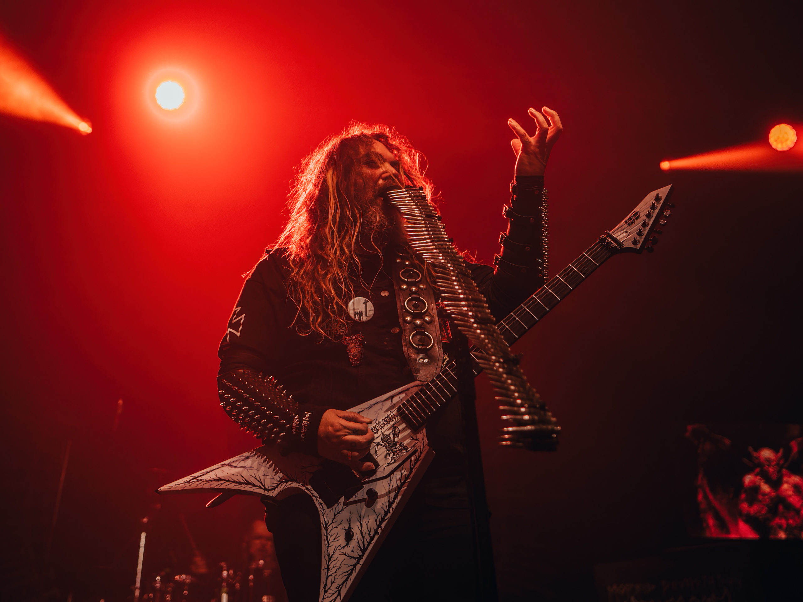 Qu’il est bon, parfois, de se replonger dans le passé ; pas seulement par nostalgie, mais aussi pour réaliser à quel point les premiers disques de Sepultura contenaient déjà les germes de ce qui allait engendrer l’un des groupes faisant référence incontournable en matière de thrash/death metal. Les productions de Bestial Devastation — sorti, au départ, sous forme de split avec Século XX d’Overdose — et de Morbid Visions avaient leurs faiblesses, toutefois ces opus renfermaient tout ce qu’il fallait pour devenir culte. Éclipsé des set-lists depuis des lustres, ce répertoire old-school est jouissif en diable, joué par un groupe aguerri, carré, qui ne cherche pas pour autant à moderniser des compositions qui n’en ont pas besoin, au risque de les dénaturer. C’est bien à un retour aux sources que nous sommes conviés ; pour preuve, le look clouté est de retour, comme à la belle époque. Les morceaux des deux œuvres seront interprétés dans l’ordre chronologique, à ceci près que Troops of Doom sera gardé pour la toute fin.
