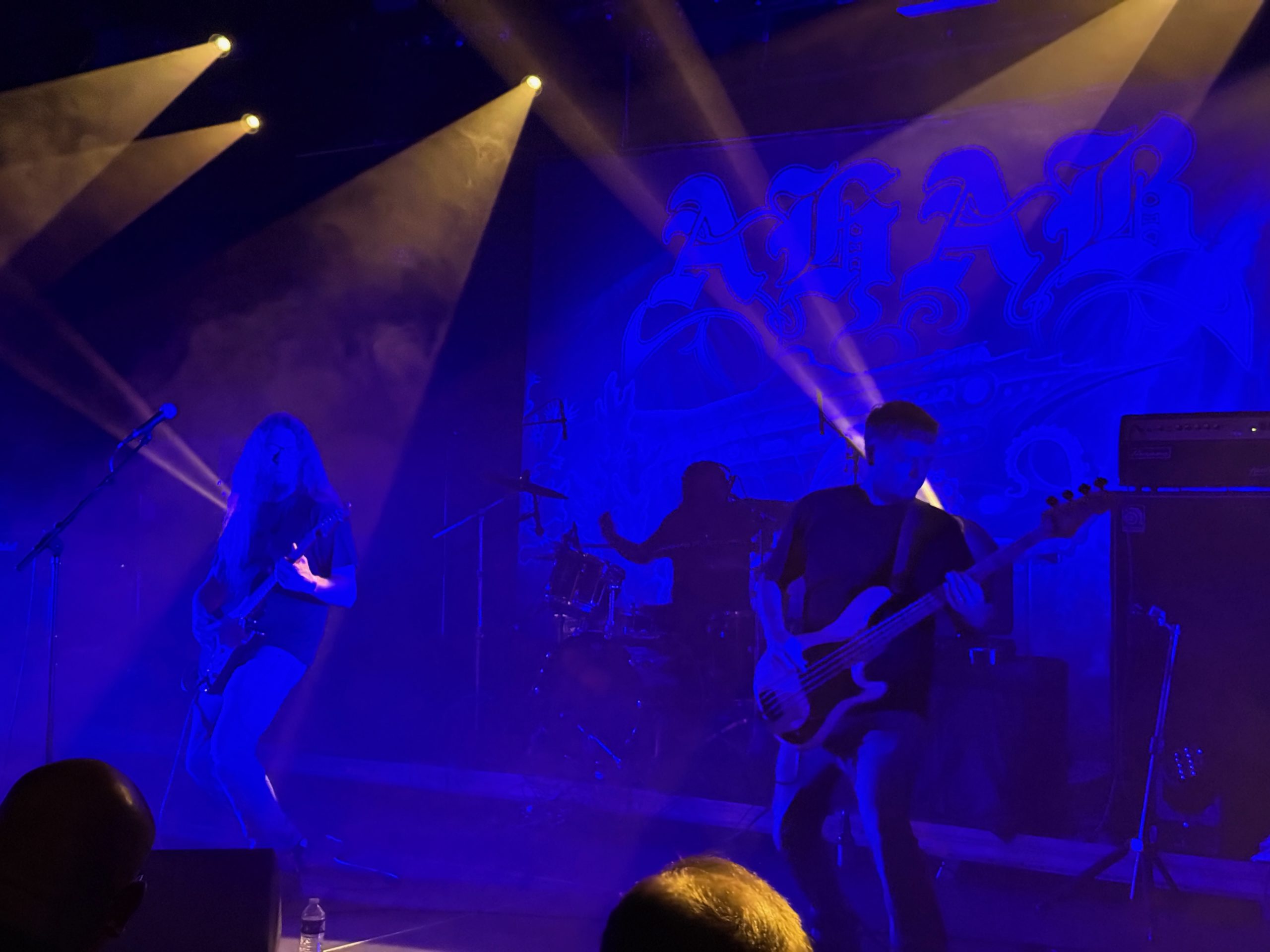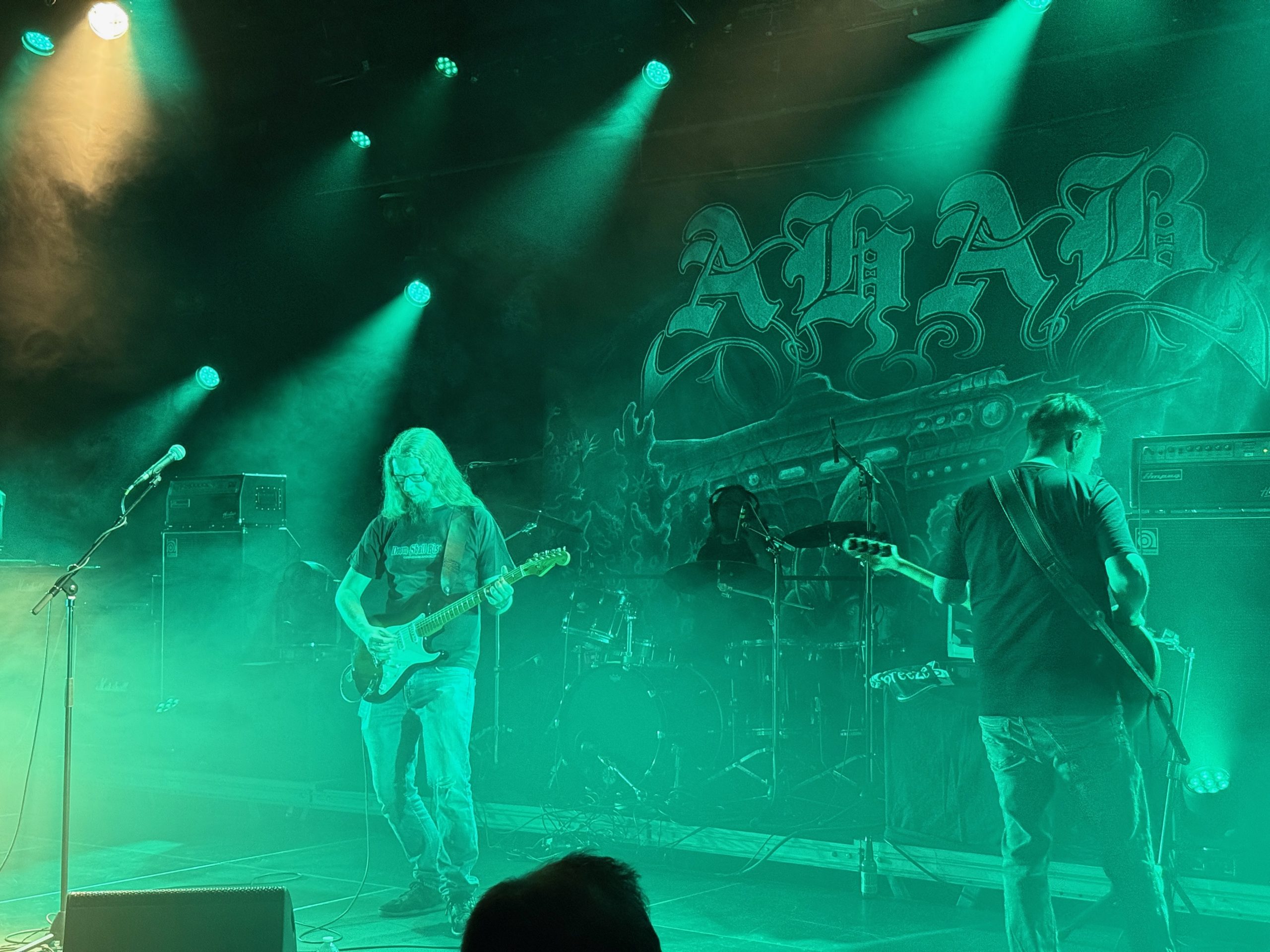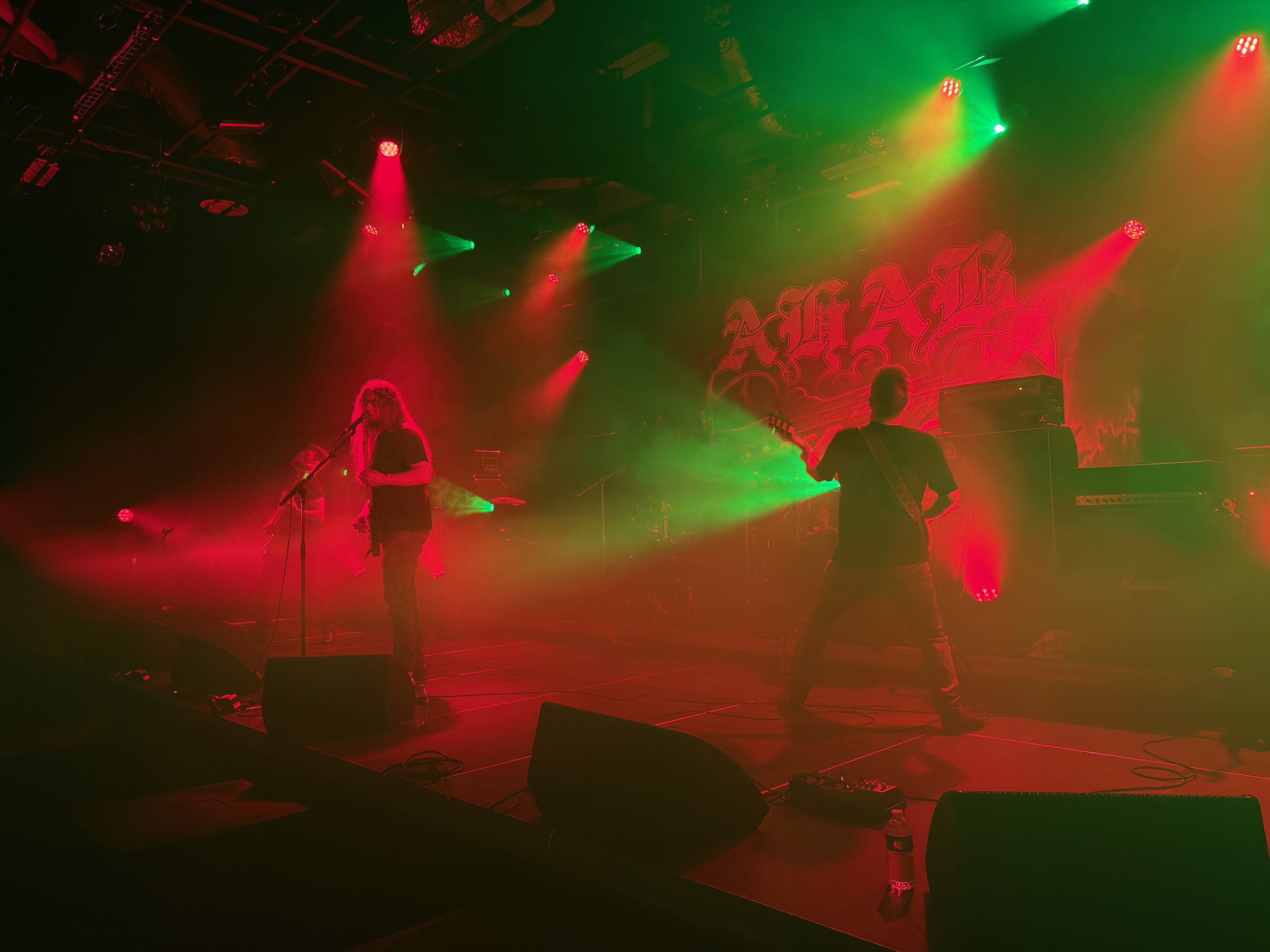 Changement d’ambiance totale avec le groupe suivant, à savoir Ahab qui officie dans le funeral doom. J’avais entendu parler du groupe par certains potes ou collègues mais je n’avais pas encore pris le temps (et eu la possibilité) de l’écouter. Eh bien quelle erreur ! Car le show des quatre Allemands a été excellent ! J’ai complètement été happé par le set d’Ahab, avec cette alternance de growl et de voix claire, secondée par des musiciens au diapason ! Clairement, mon coup de cœur de cette édition du Courts of Chaos !