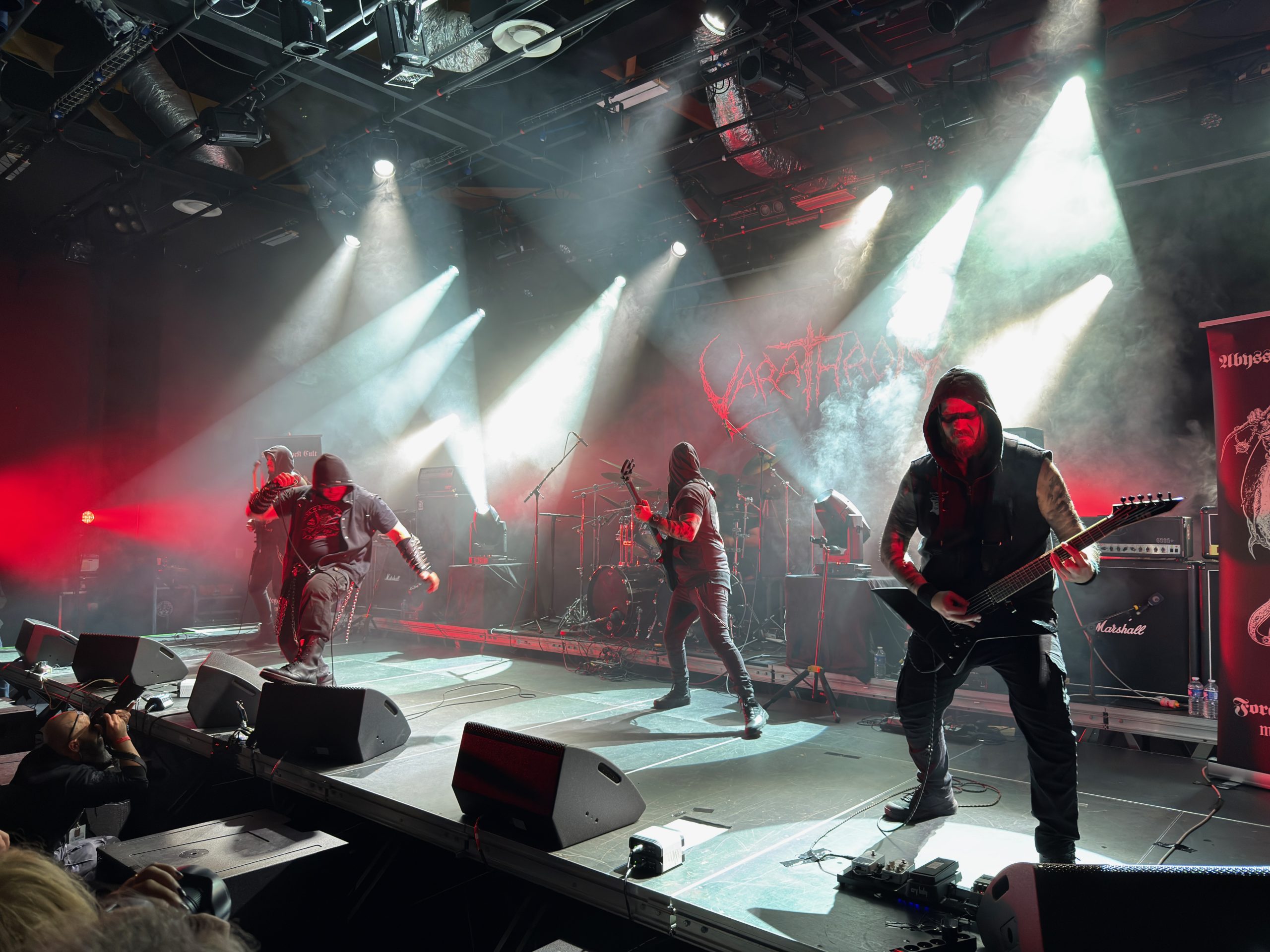 Place ensuite à Profanation, groupe de death metal français qui n’a clairement pas fait dans la dentelle : pied au plancher du début du set jusqu’à quasiment la fin, de quoi arracher la tapisserie et la moquette. Pas mon style favori, mais l’exécution était ultra carrée et le groupe a fait forte impression ! Personnellement, c’est surtout le dernier morceau joué qui m’a plu, car un peu plus mid-tempo.