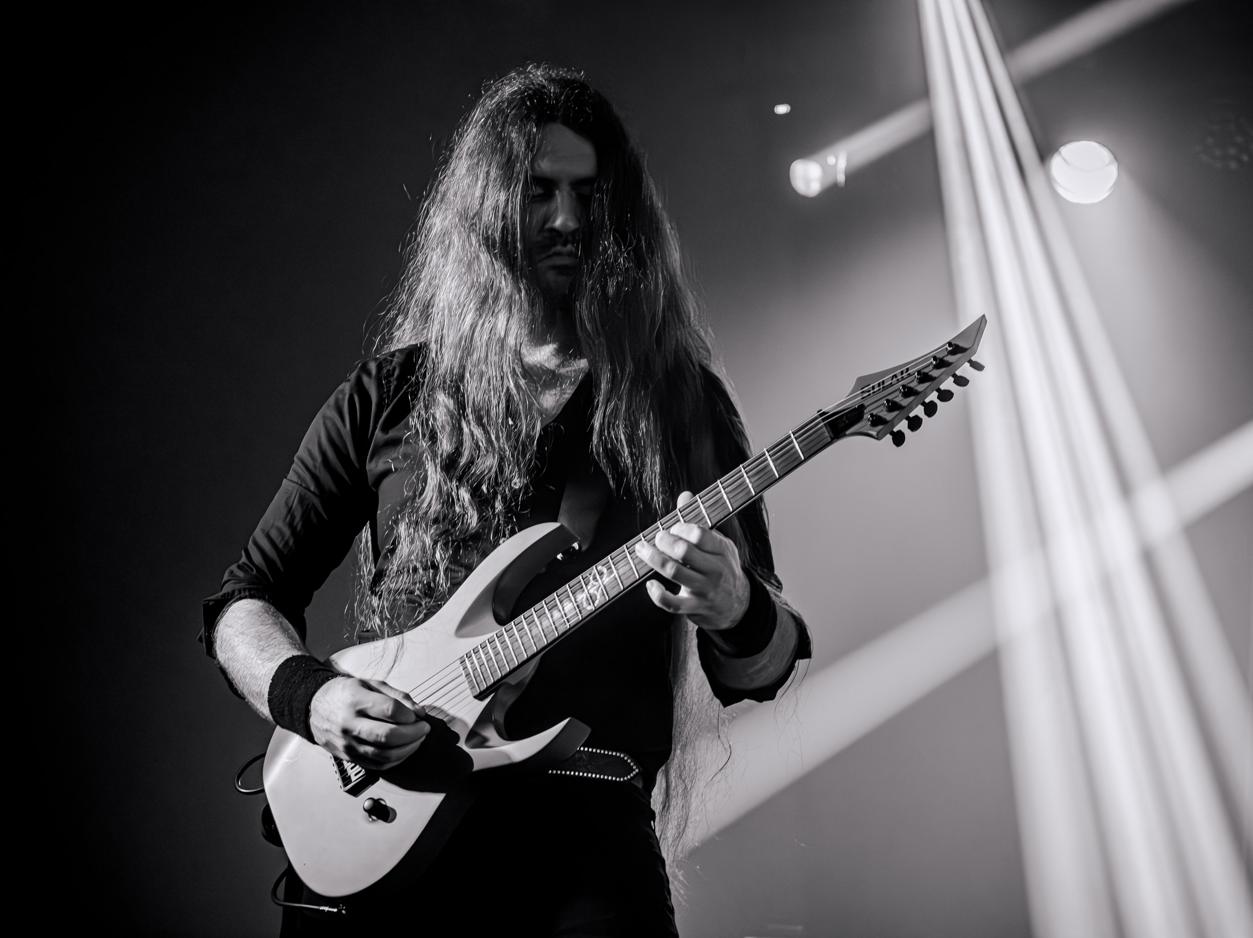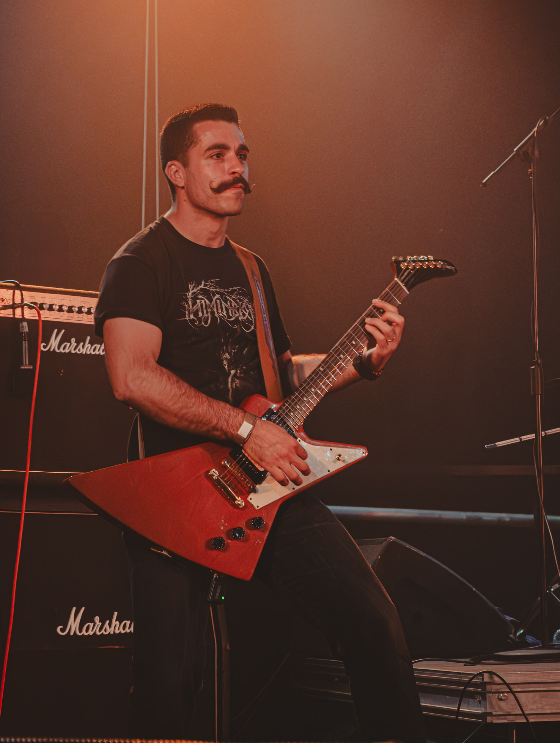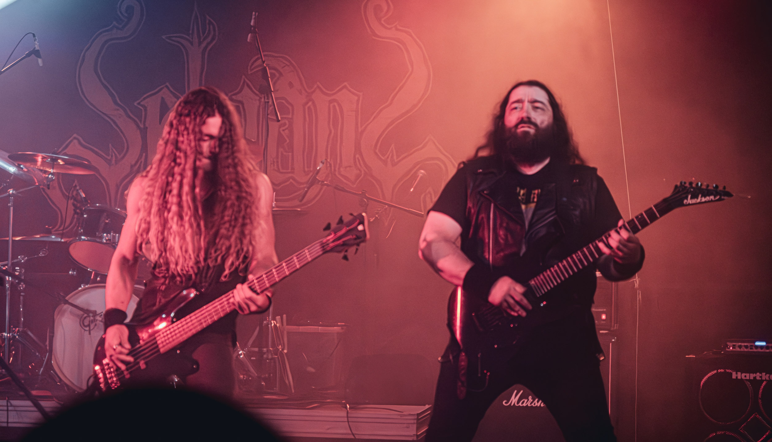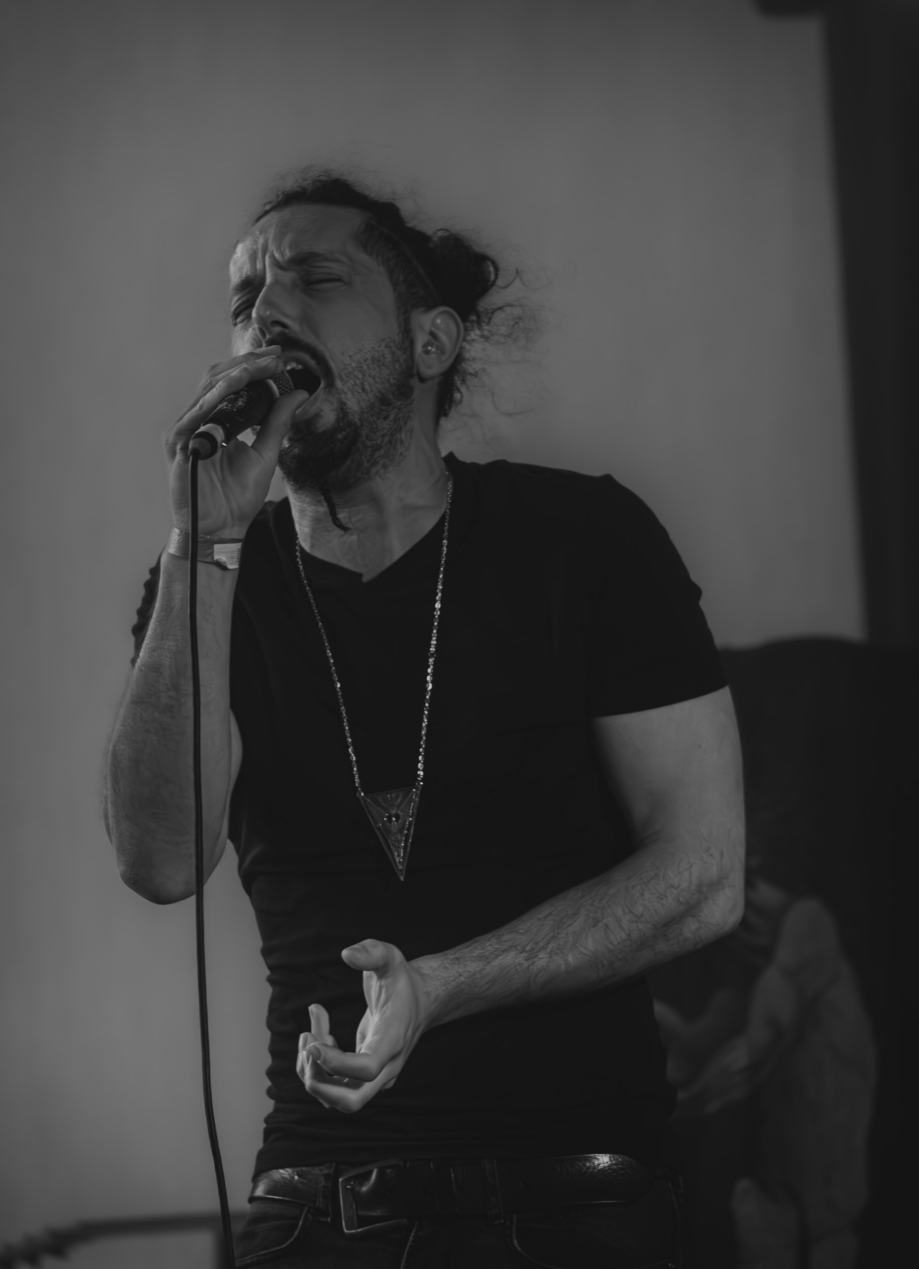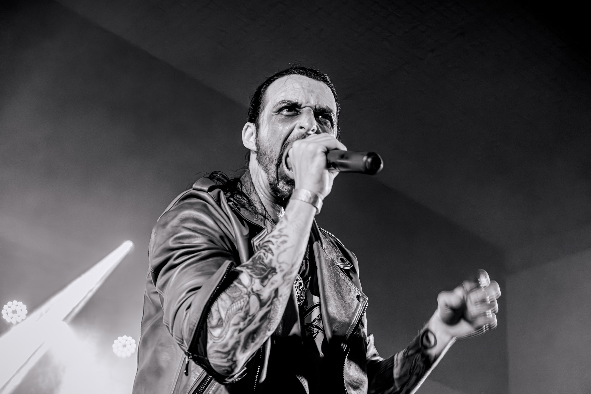 Après une prestation ayant marqué les esprits au Dark Medieval Fest de 2022, d’après les échos que j’en ai eu, Selvans fait son retour cette année, cette fois-ci en tant que tête d’affiche. Ce retour prend toutefois un goût un peu particulier, doux-amer, puisqu’il s’agit là de la dernière date française du groupe, son fondateur Luca Del Re a.k.a Selvans Haruspex ayant mis un point final à la trilogie d’albums au cœur du projet et par la même à celui-ci. Pour autant, l’heure n’est pas à verser des larmes ; plutôt à célébrer tous ensemble le folklore italien dans ses aspects les plus ténébreux. Au vu de cette thématique et, encore une fois, des retours, voilà un show qui promet d’être très théâtral… ce qui se vérifie très rapidement lorsque Selvans, l’artiste, déboule comme un fou sur la scène toutes cornes dehors, arborant fièrement maquillage cadavérique, veste en cuir rouge et santiags et poussant des cris si éraillés que l’on croirait un oiseau de proie ! Ces atouts, couplés à une présence scénique de tous les instants, font de l’Italien aux allures de seigneur vampire des temps modernes un véritable showman qui sait occuper l’espace scénique et porte le concert de bout en bout. Rien d’étonnant pour qui sait que le gentleman exerce aussi en tant qu’acteur dans des comédies musicales ! Ses comparses instrumentistes, bien qu’en retrait, ne font pas pour autant de la figuration. Bien au contraire, ils savent montrer leur joie d’être là, en plus de tous exceller sur leurs instruments respectifs. Acheron, guitariste lead à l’instrument rouge, déploie un shredding à la taille de son immense chevelure ; de l’autre côté de la scène, son comparse rythmique The Ancient et le bassiste Agares forment un duo inséparable, bien appuyé par Signifer en fond.