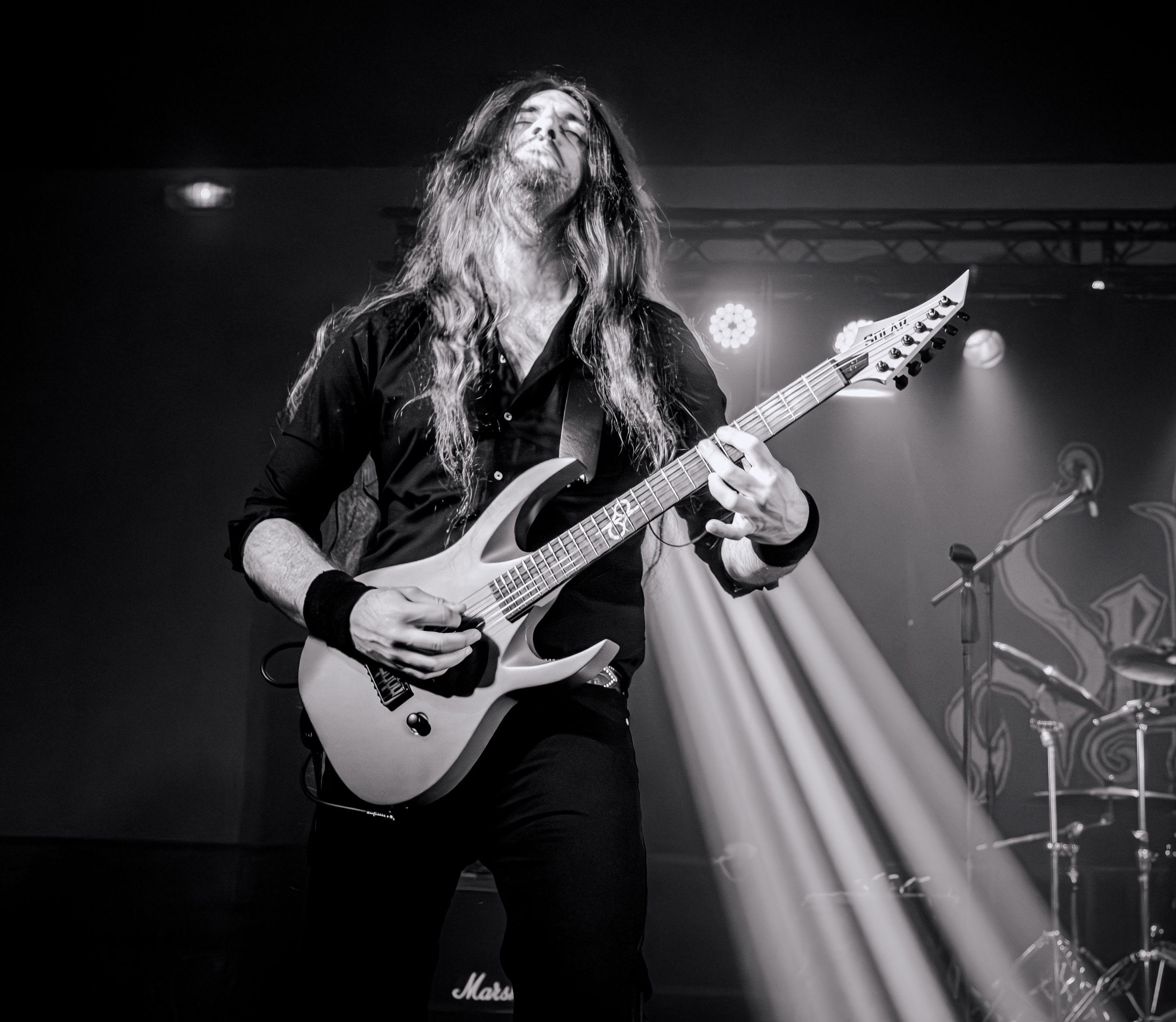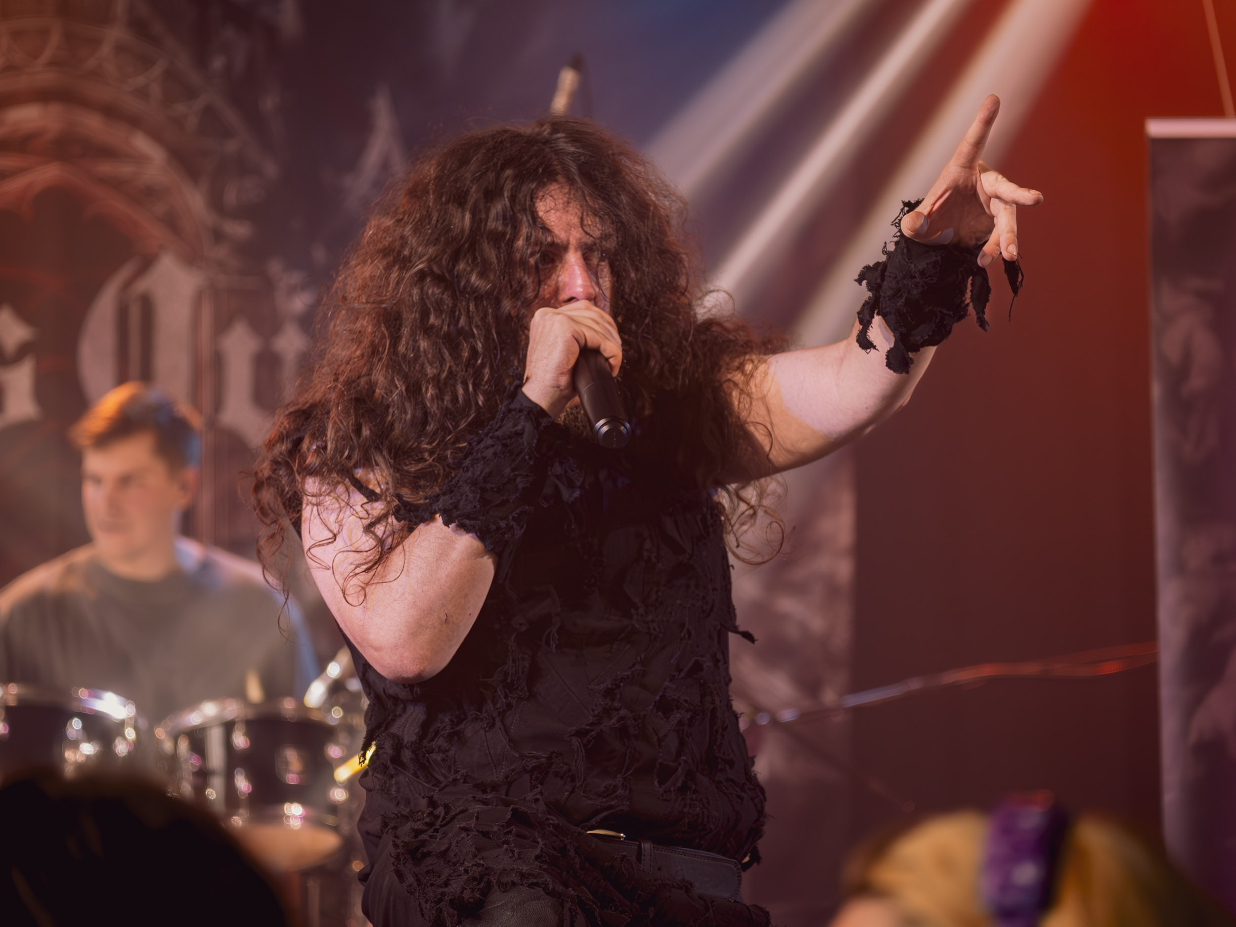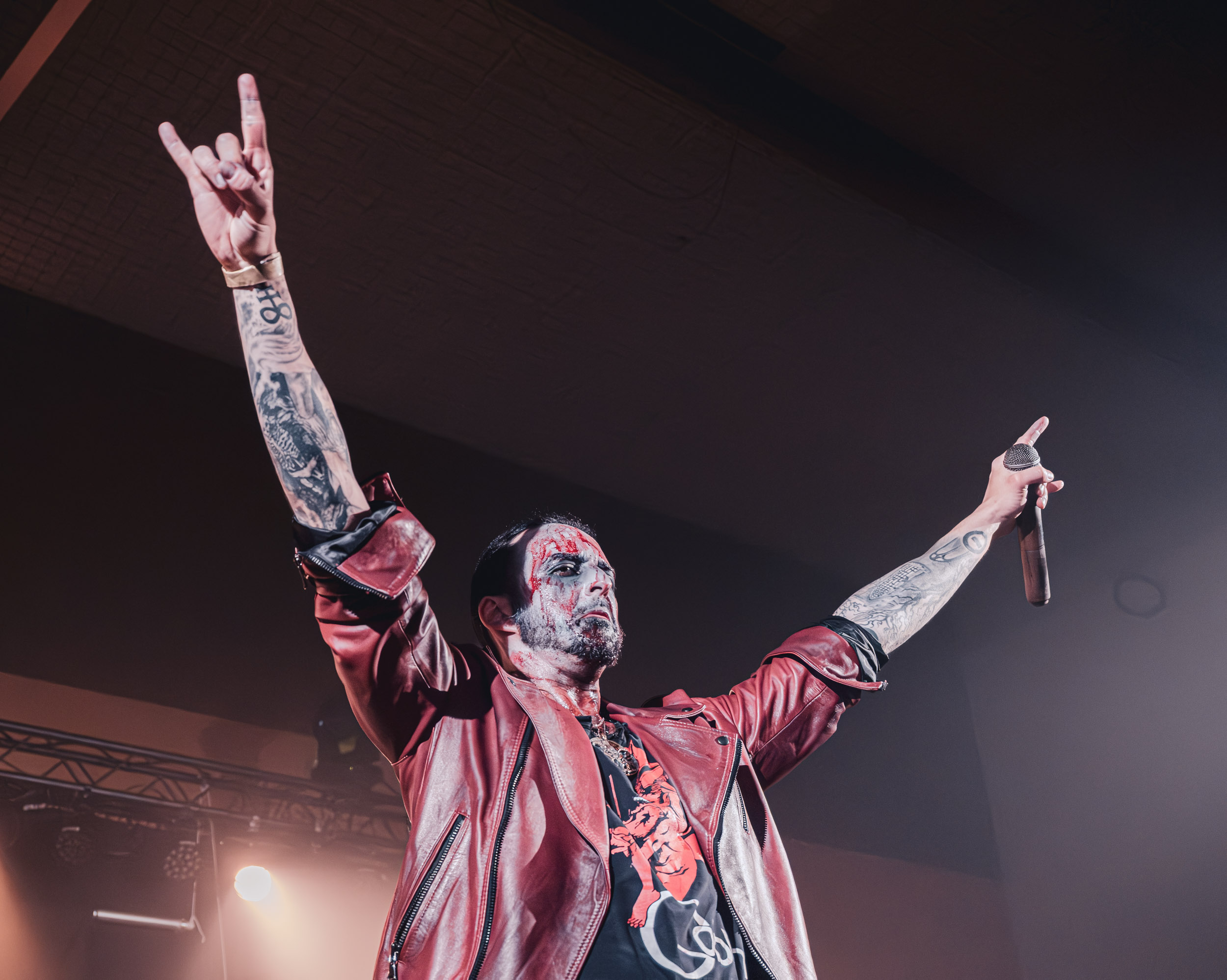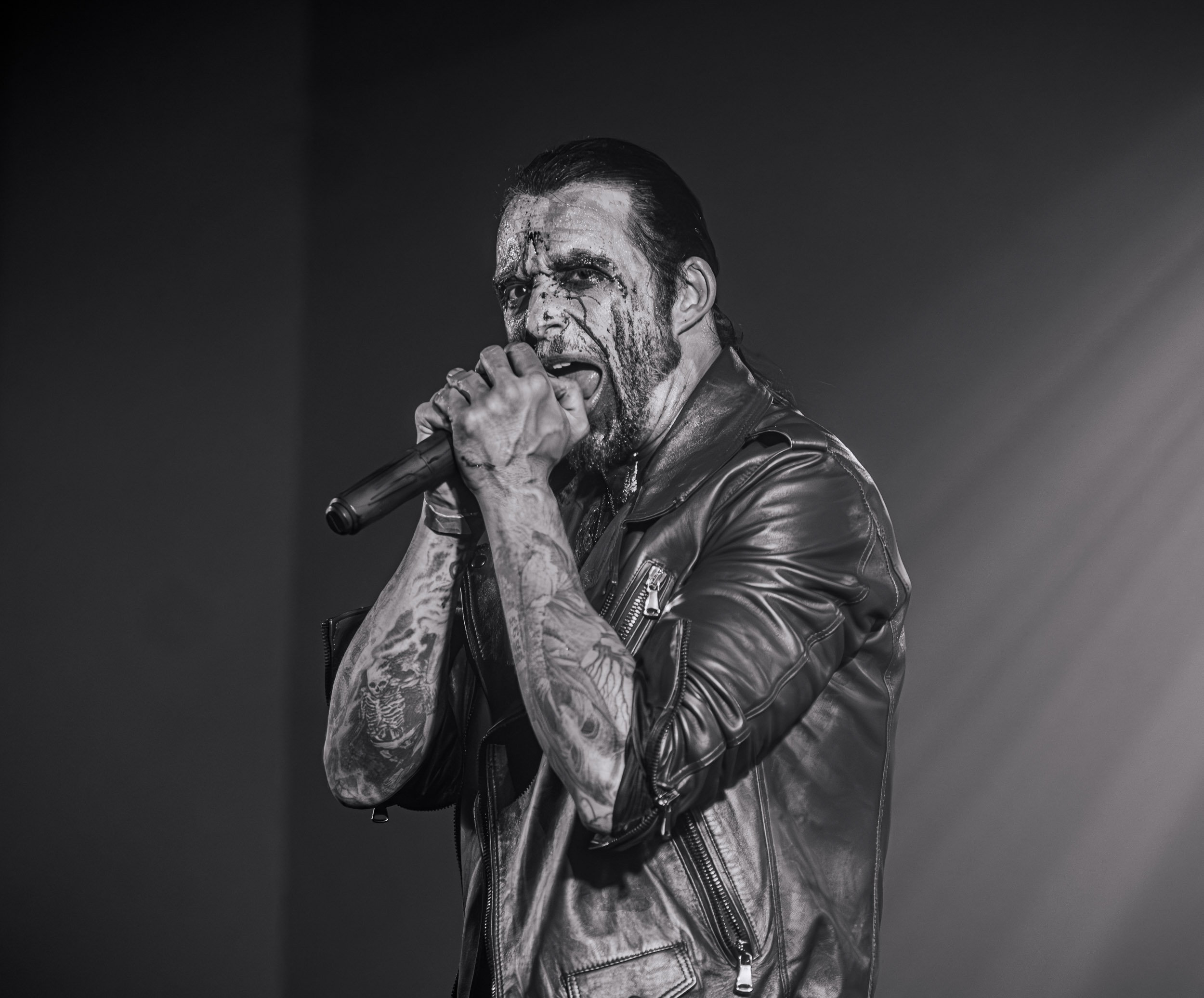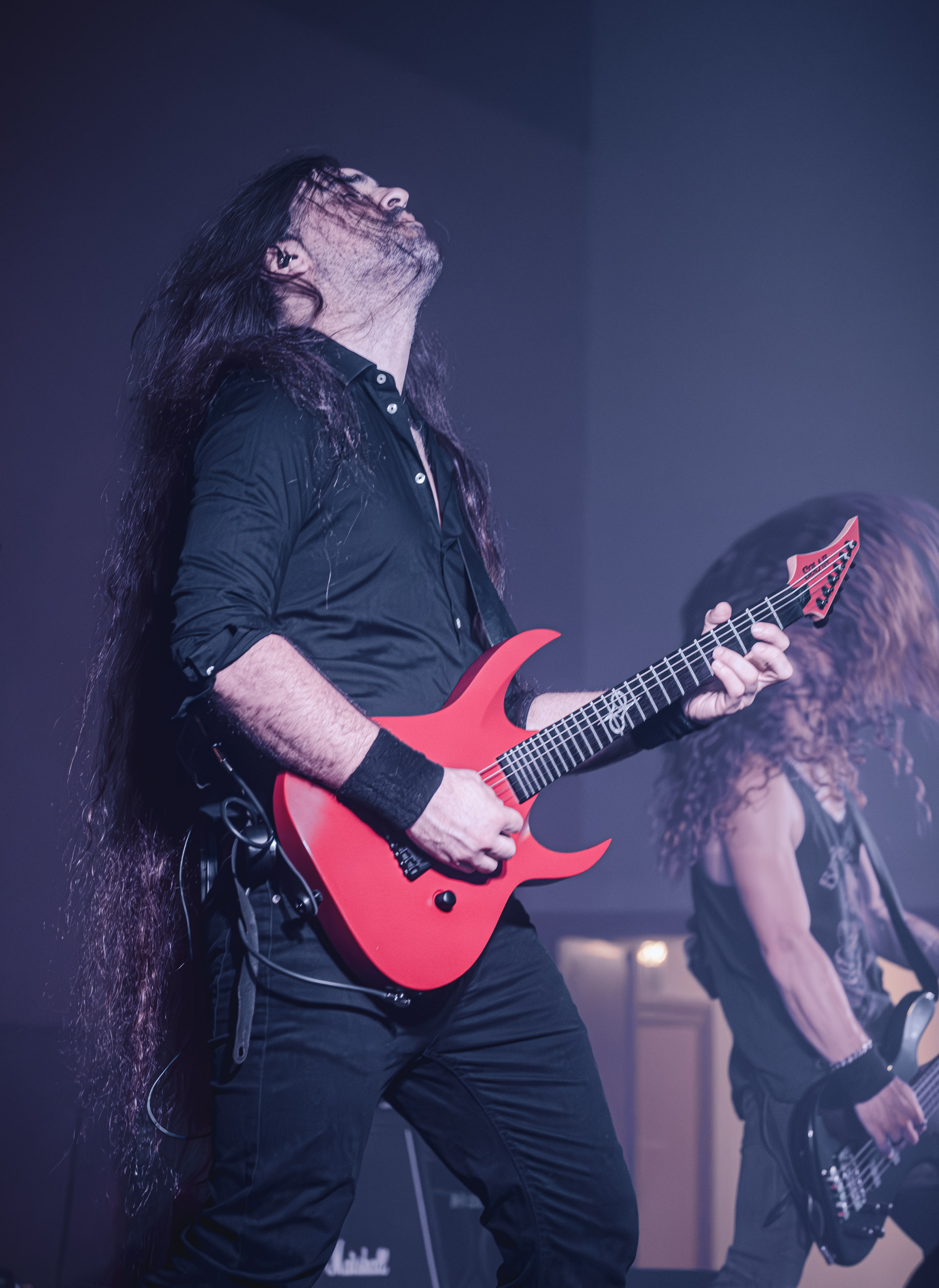 Après une prestation ayant marqué les esprits au Dark Medieval Fest de 2022, d’après les échos que j’en ai eu, Selvans fait son retour cette année, cette fois-ci en tant que tête d’affiche. Ce retour prend toutefois un goût un peu particulier, doux-amer, puisqu’il s’agit là de la dernière date française du groupe, son fondateur Luca Del Re a.k.a Selvans Haruspex ayant mis un point final à la trilogie d’albums au cœur du projet et par la même à celui-ci. Pour autant, l’heure n’est pas à verser des larmes ; plutôt à célébrer tous ensemble le folklore italien dans ses aspects les plus ténébreux. Au vu de cette thématique et, encore une fois, des retours, voilà un show qui promet d’être très théâtral… ce qui se vérifie très rapidement lorsque Selvans, l’artiste, déboule comme un fou sur la scène toutes cornes dehors, arborant fièrement maquillage cadavérique, veste en cuir rouge et santiags et poussant des cris si éraillés que l’on croirait un oiseau de proie ! Ces atouts, couplés à une présence scénique de tous les instants, font de l’Italien aux allures de seigneur vampire des temps modernes un véritable showman qui sait occuper l’espace scénique et porte le concert de bout en bout. Rien d’étonnant pour qui sait que le gentleman exerce aussi en tant qu’acteur dans des comédies musicales ! Ses comparses instrumentistes, bien qu’en retrait, ne font pas pour autant de la figuration. Bien au contraire, ils savent montrer leur joie d’être là, en plus de tous exceller sur leurs instruments respectifs. Acheron, guitariste lead à l’instrument rouge, déploie un shredding à la taille de son immense chevelure ; de l’autre côté de la scène, son comparse rythmique The Ancient et le bassiste Agares forment un duo inséparable, bien appuyé par Signifer en fond.