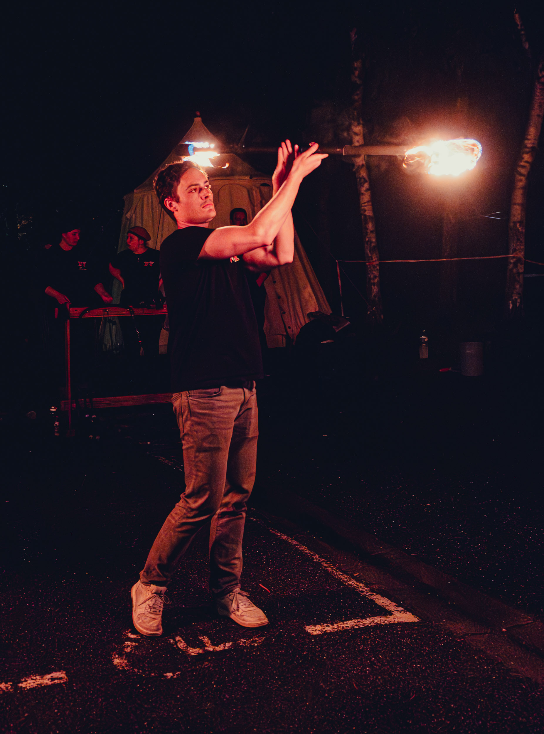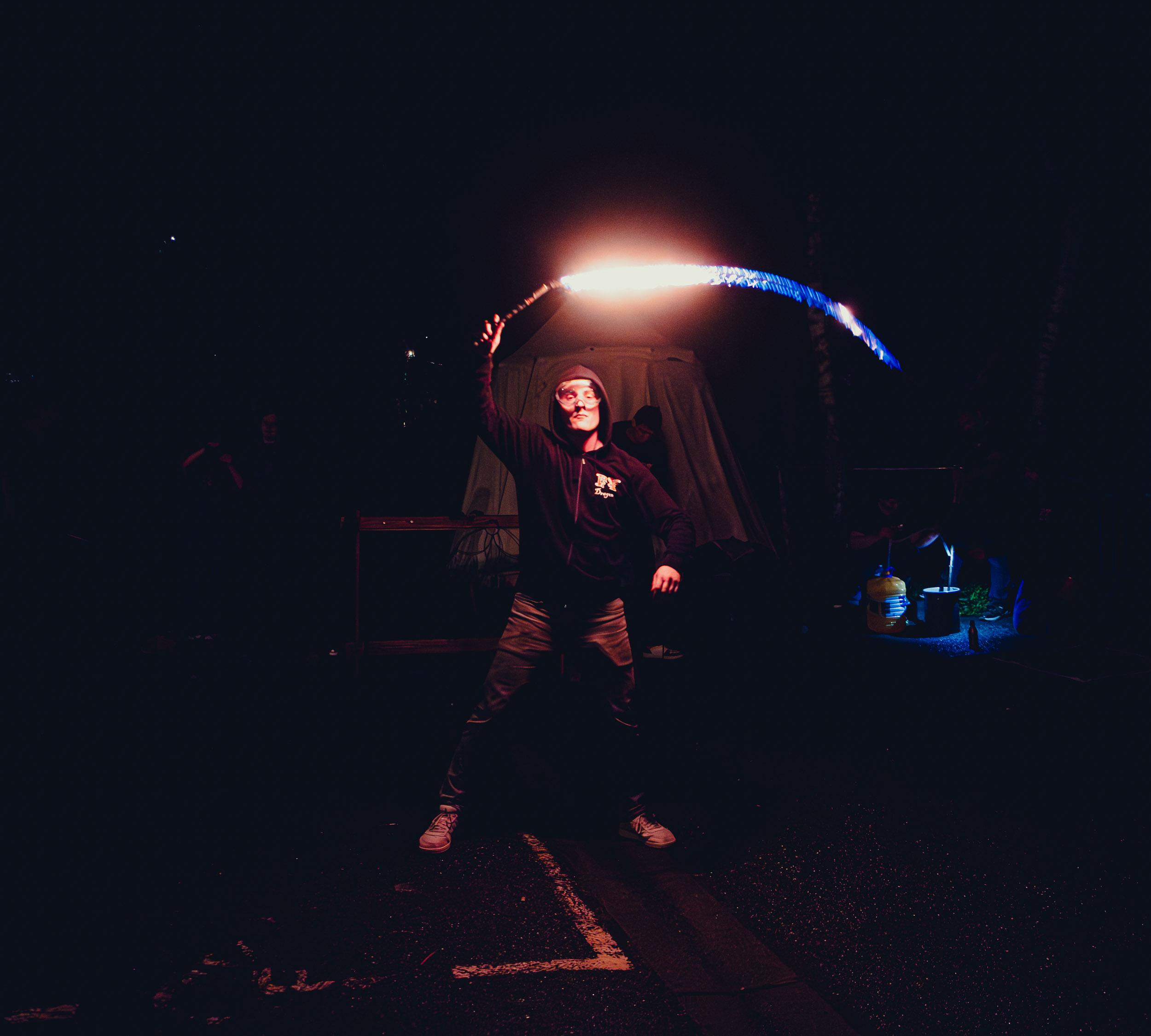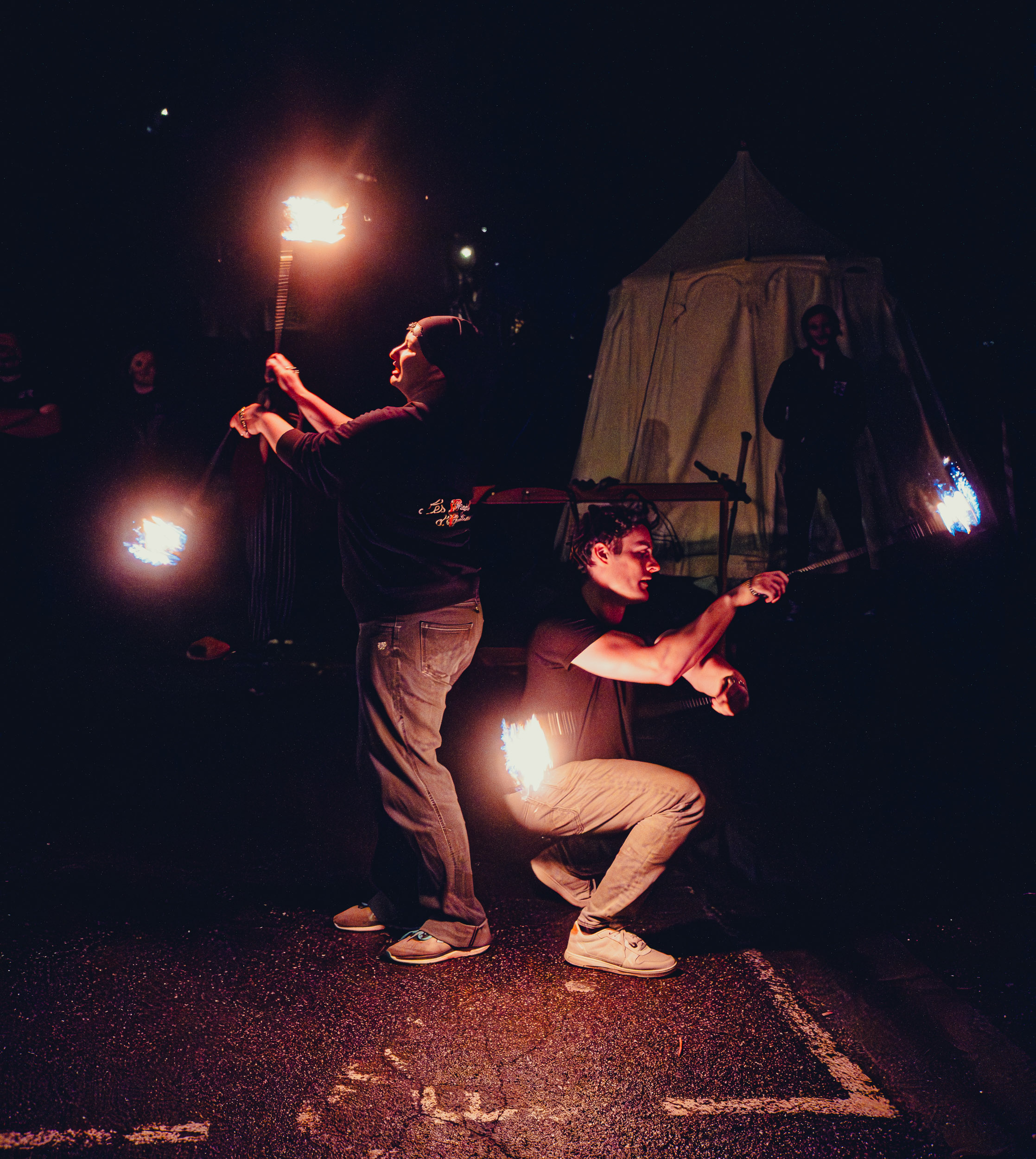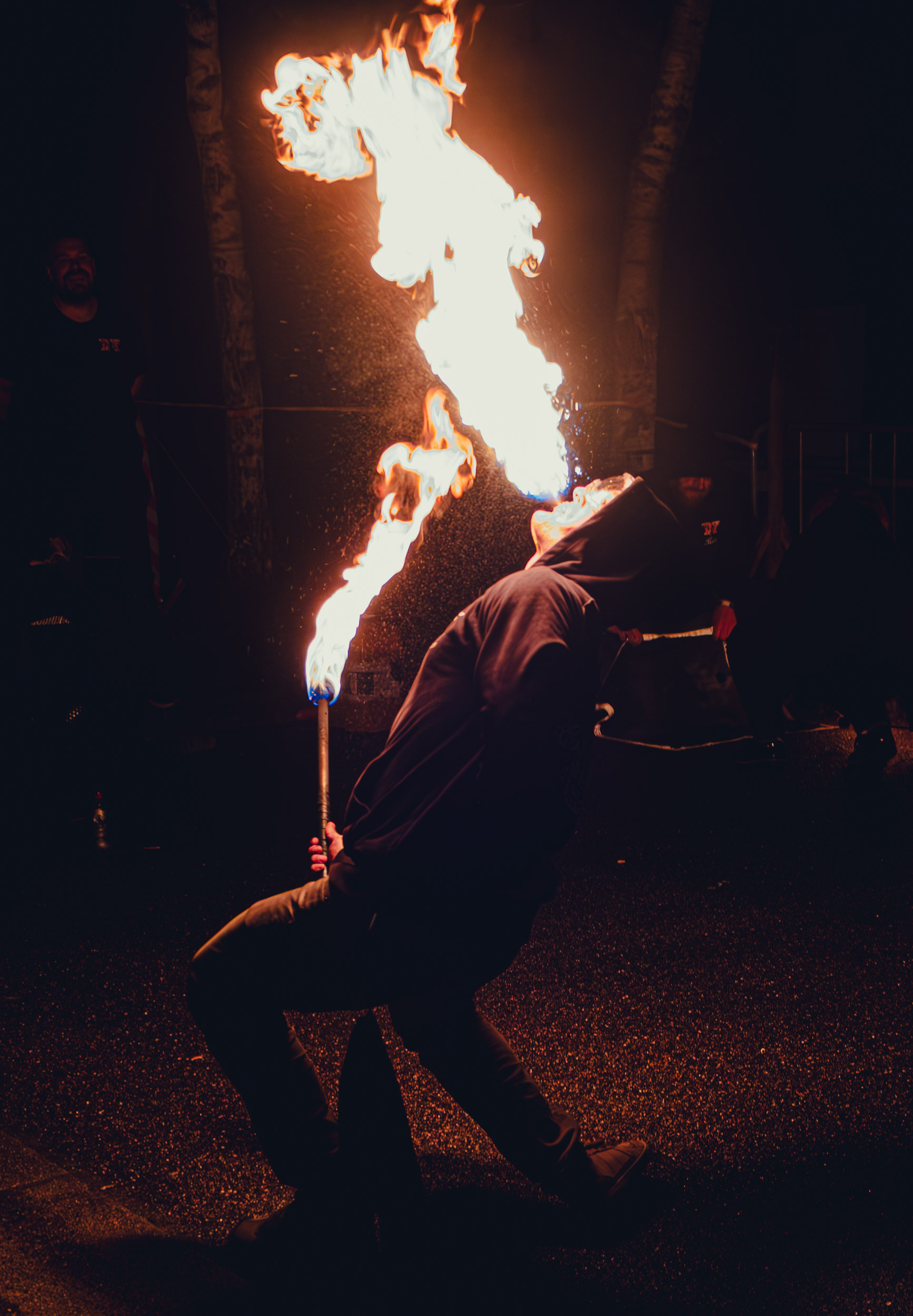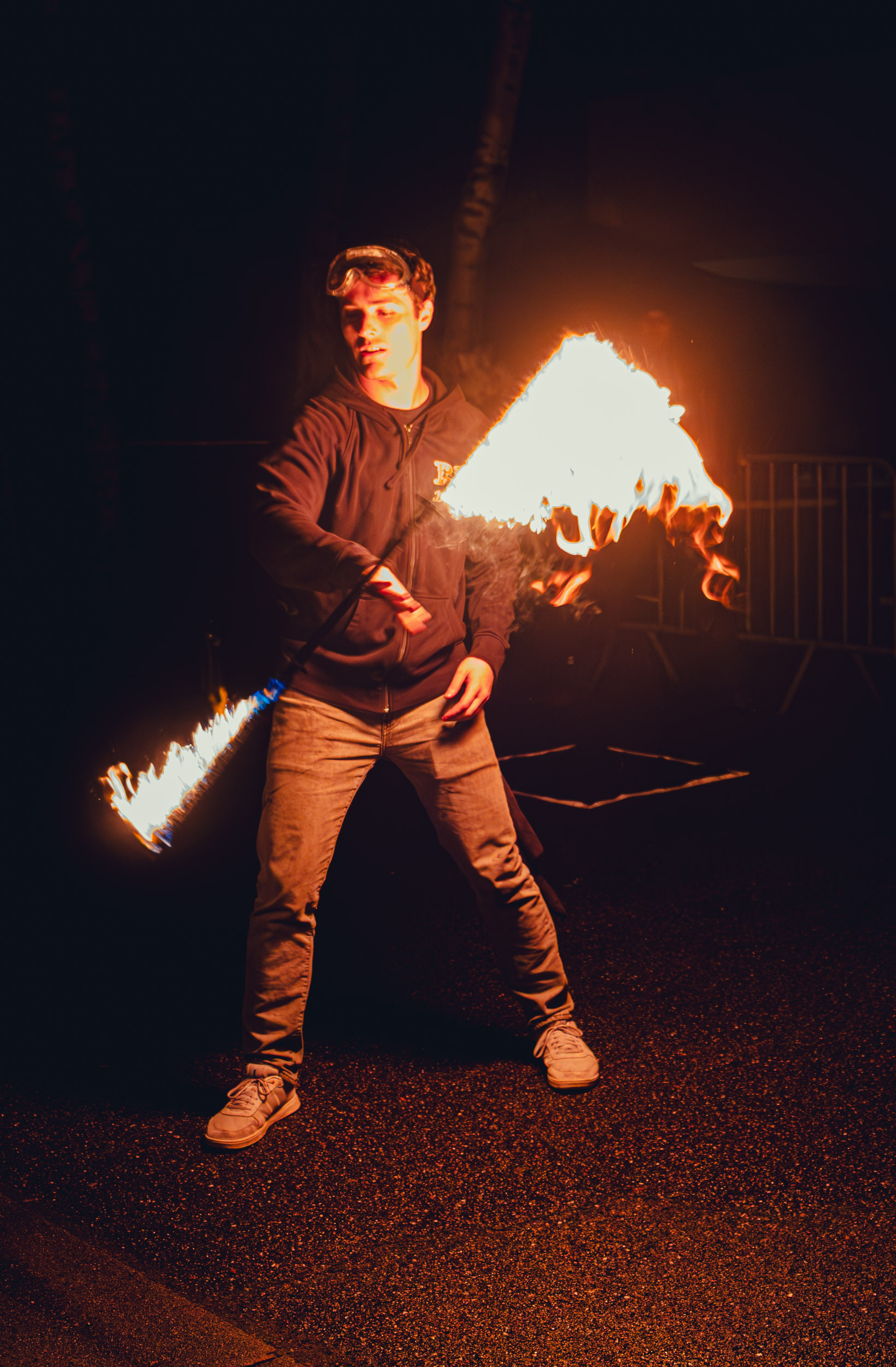 En attendant l’arrivée de la tête d’affiche de ce soir, les curieux et amateurs de pyrotechnie peuvent assister à une prestation par Les Pérégrins d’Ycelieu, qui mettent la barre du spectaculaire un cran plus haut que l’an dernier et nous offrent un bouquet final en forme de performance en groupe.