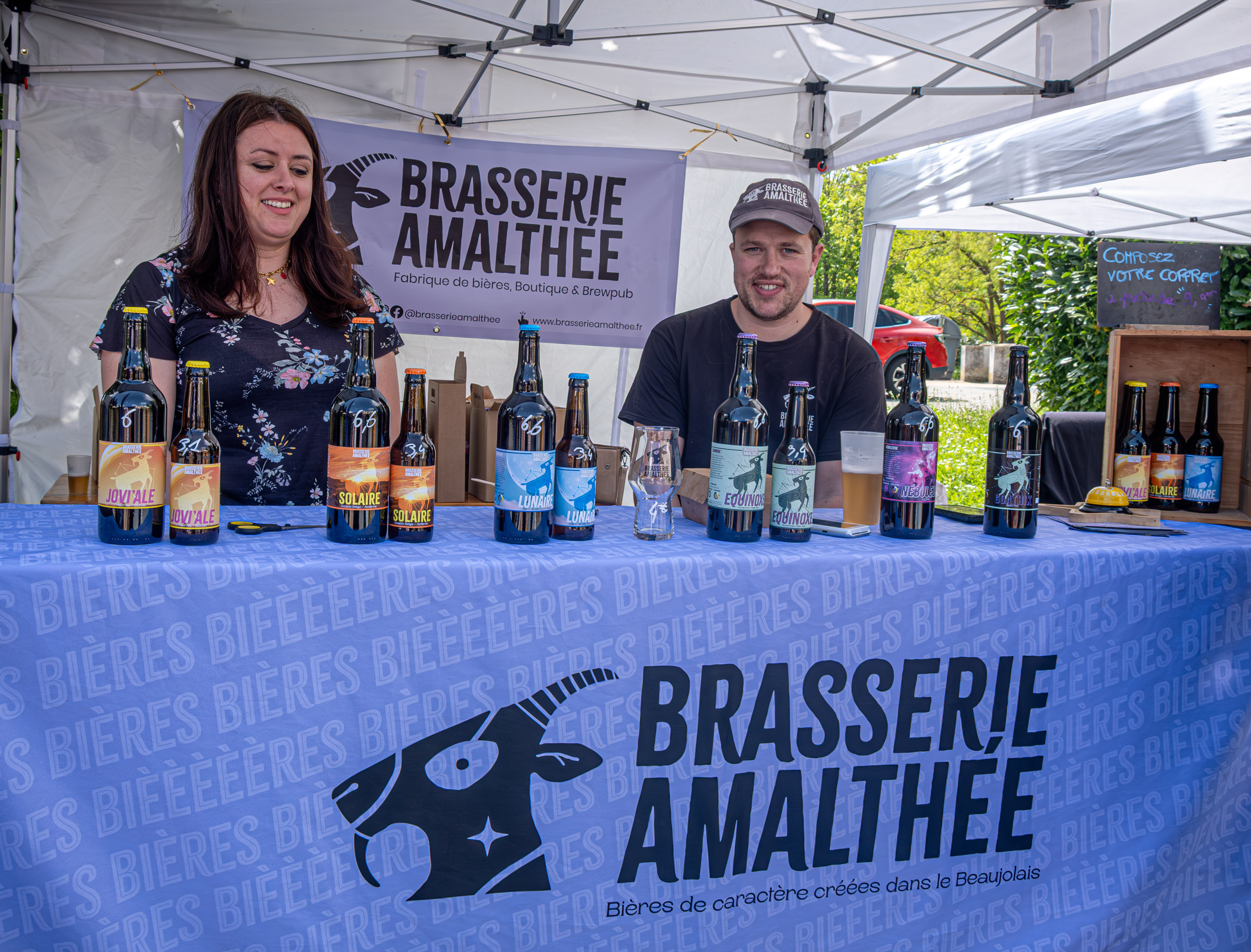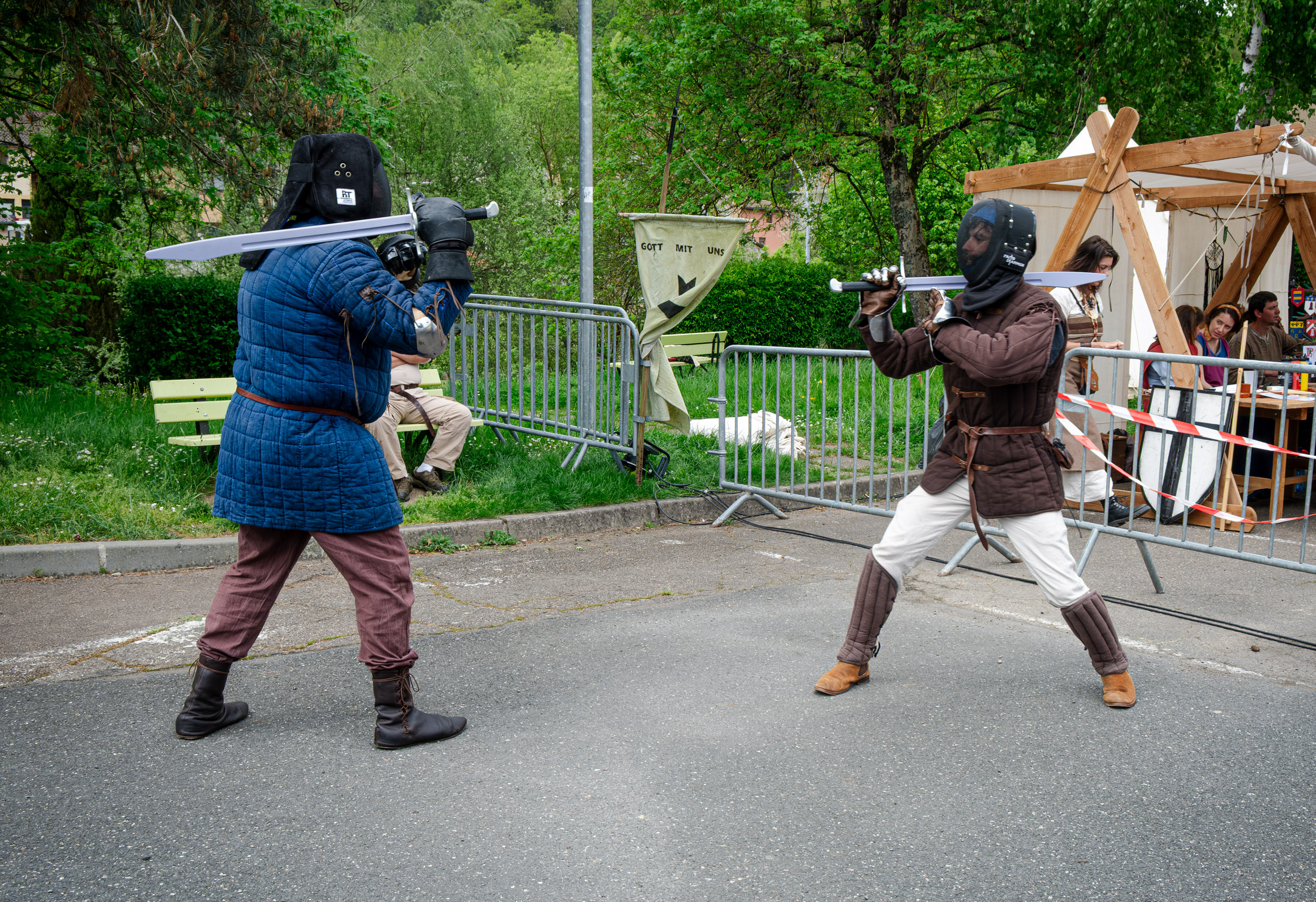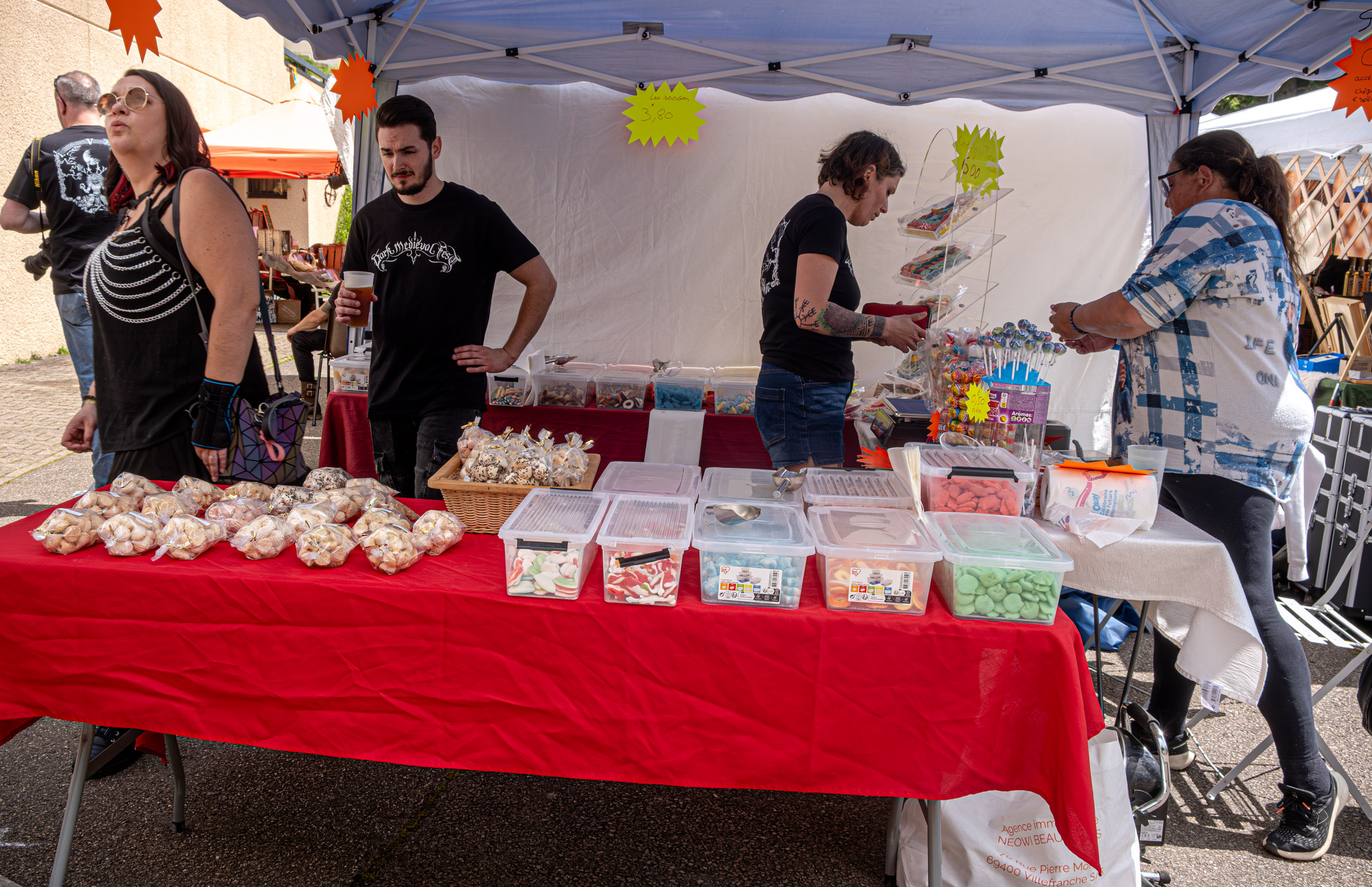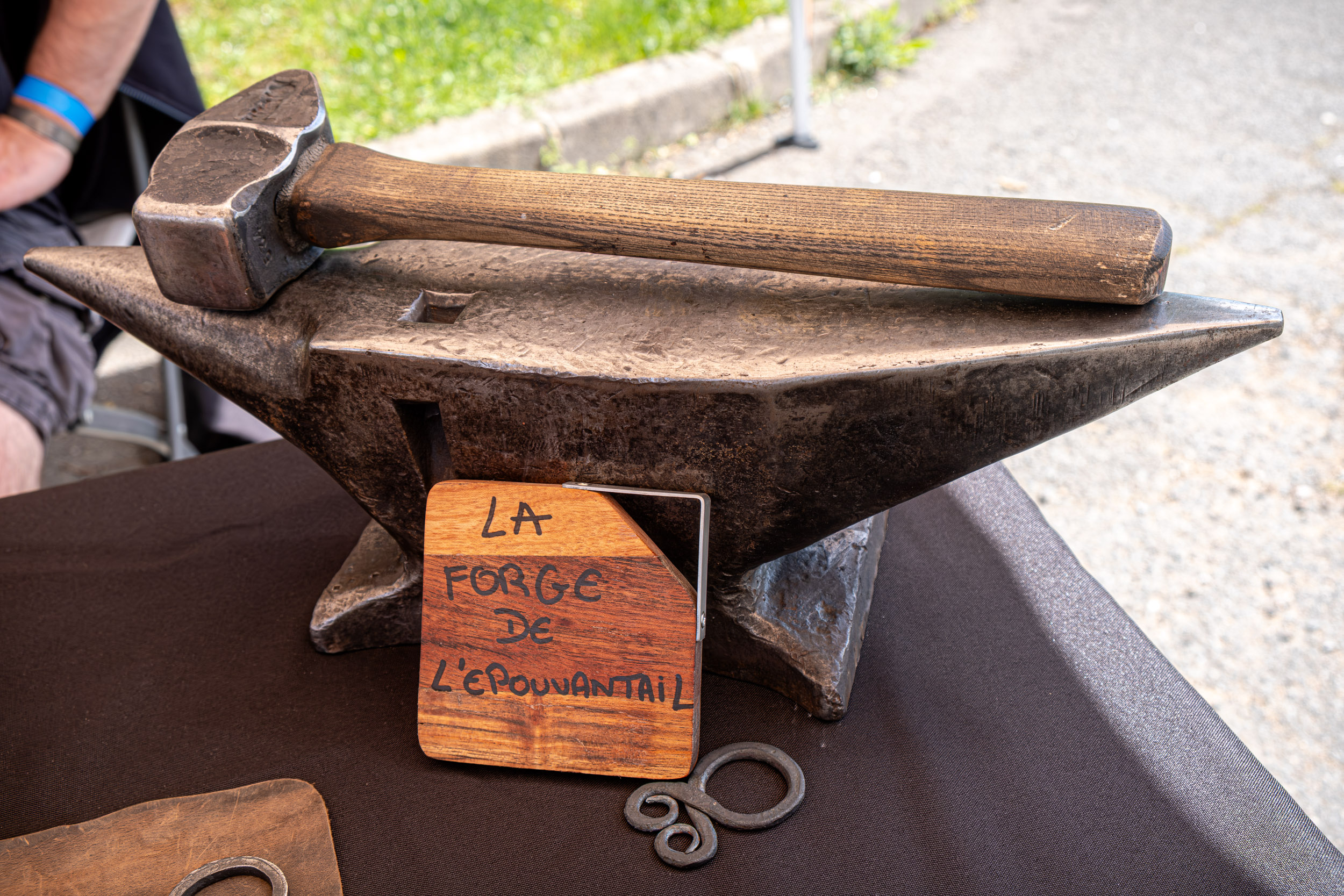Ce nouveau marché propose à boire et à manger, au sens figuré comme littéral de l’expression. Ainsi, en attendant l’ouverture des portes prévues pour 15 h 30, festivaliers comme visiteurs venus du patelin de Lamure-sur-Azergues peuvent déambuler dans les allées à la rencontre de tous ces exposants — pour certains venus d’Italie —, pour se restaurer, acheter un souvenir ou accompagner les enfants qui veulent essayer l’initiation à la calligraphie que propose l’association locale Les Compagnons Médiévistes d’Azergues, nouvelle venue parmi les partenaires du fest. Les associations Les Lamhes du Val d’Azergues et Les Pérégrins d’Ycelieu font également leur retour, avec leurs démonstrations d’escrime et de performances saltimbanques, toujours aussi impressionnantes !