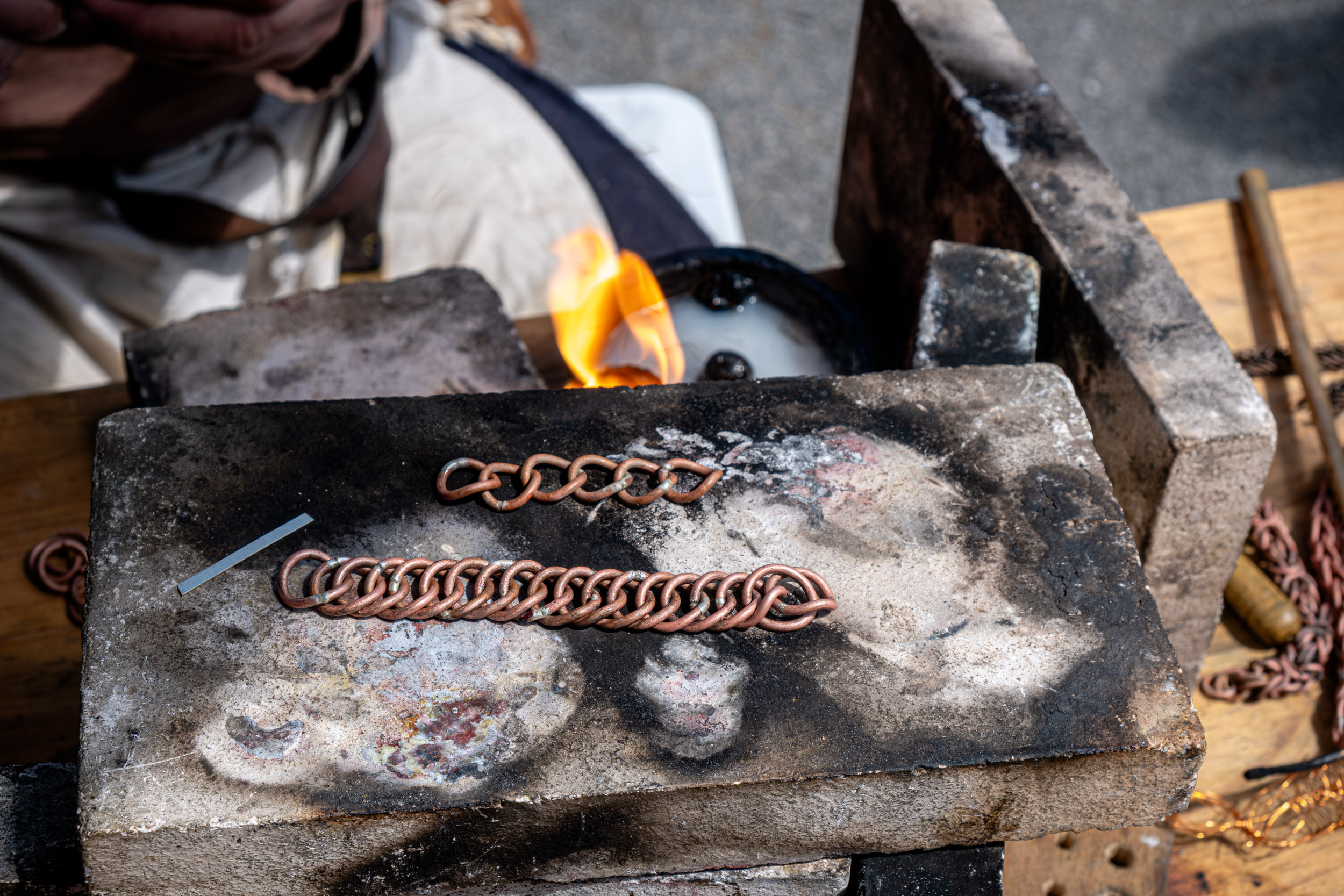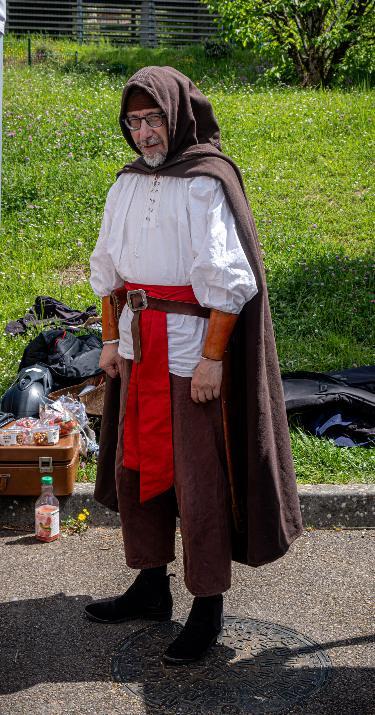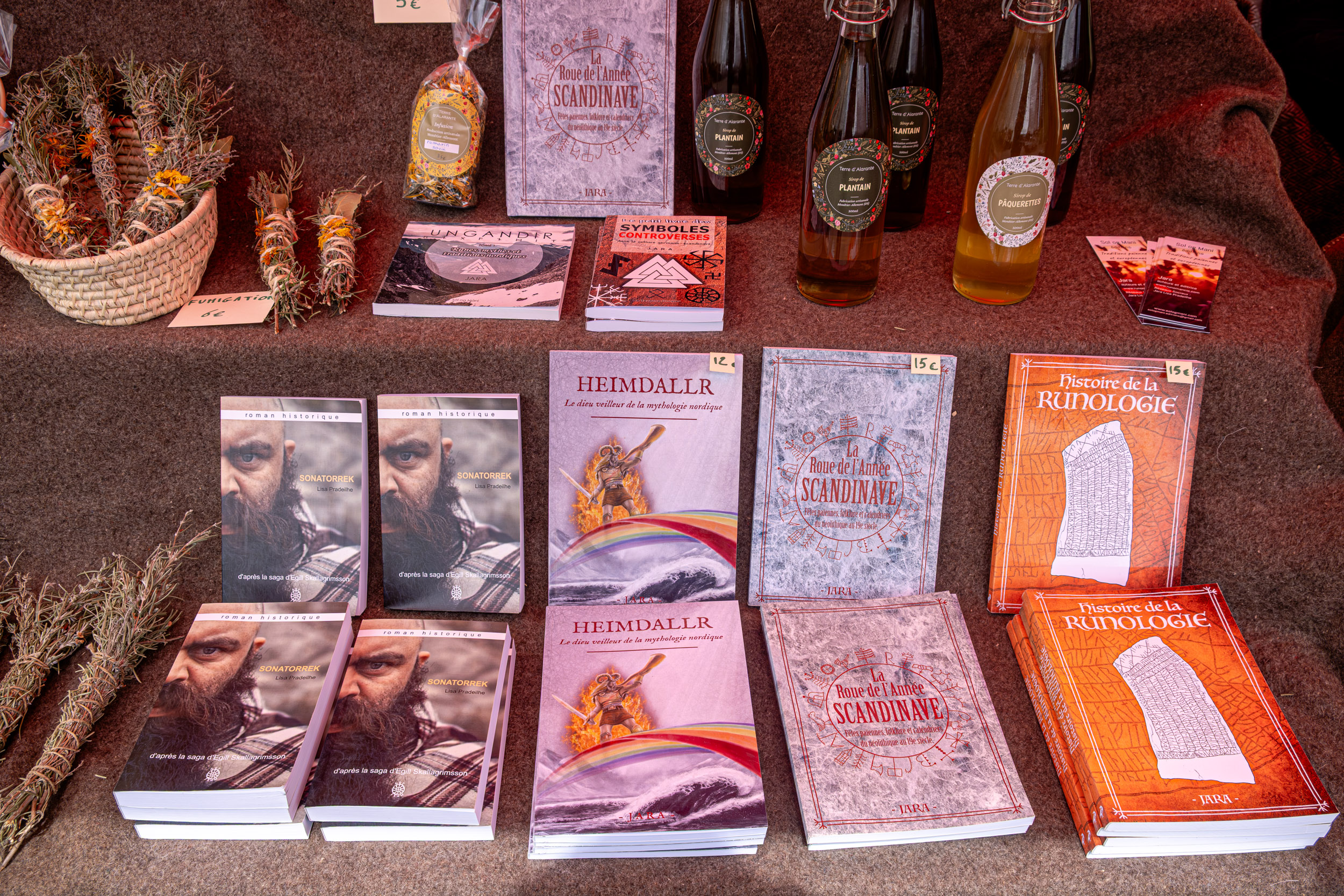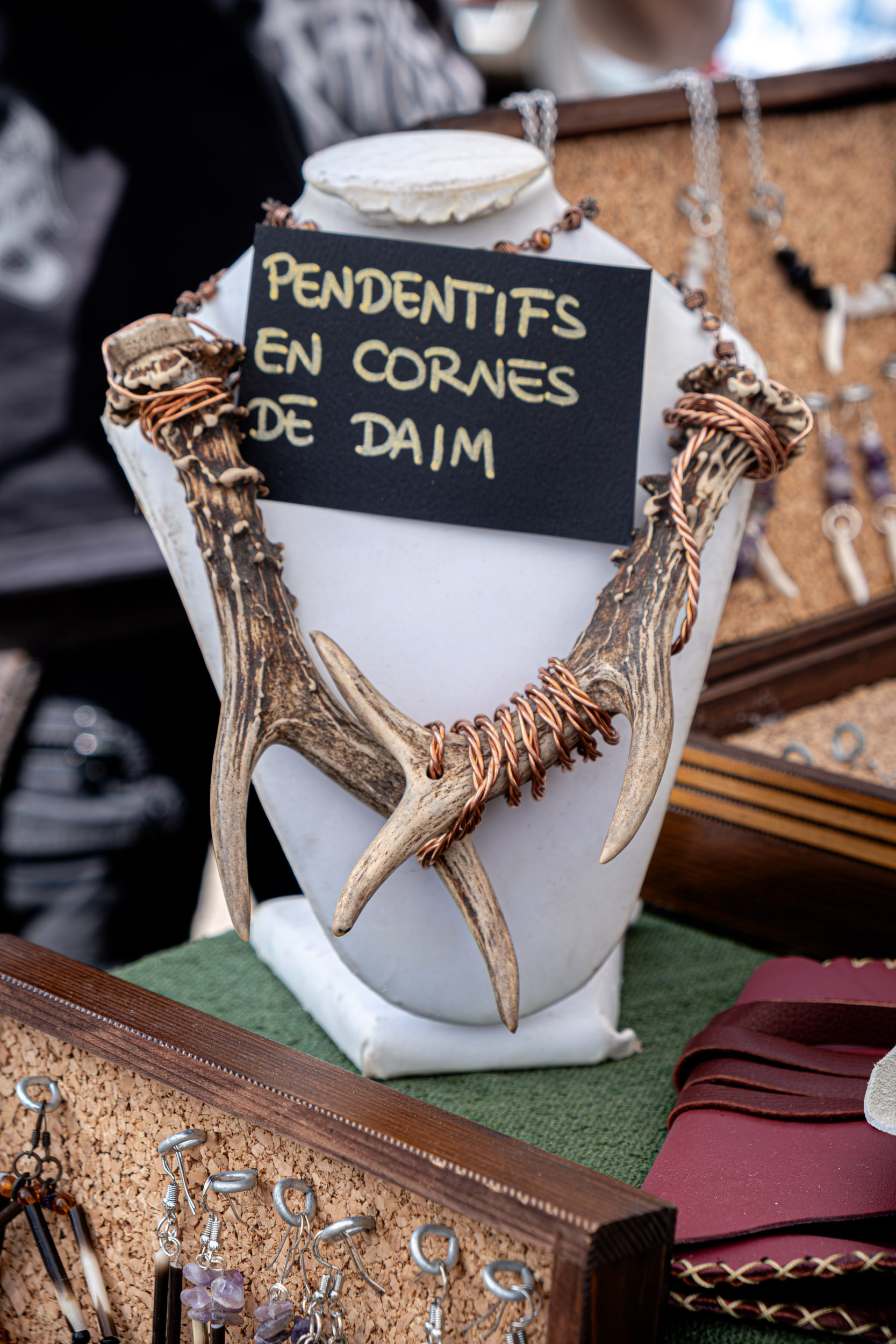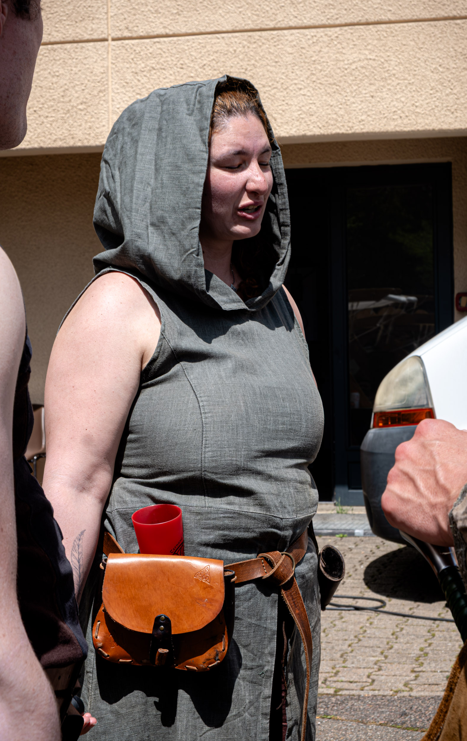 Ce nouveau marché propose à boire et à manger, au sens figuré comme littéral de l’expression. Ainsi, en attendant l’ouverture des portes prévues pour 15 h 30, festivaliers comme visiteurs venus du patelin de Lamure-sur-Azergues peuvent déambuler dans les allées à la rencontre de tous ces exposants — pour certains venus d’Italie —, pour se restaurer, acheter un souvenir ou accompagner les enfants qui veulent essayer l’initiation à la calligraphie que propose l’association locale Les Compagnons Médiévistes d’Azergues, nouvelle venue parmi les partenaires du fest. Les associations Les Lamhes du Val d’Azergues et Les Pérégrins d’Ycelieu font également leur retour, avec leurs démonstrations d’escrime et de performances saltimbanques, toujours aussi impressionnantes !