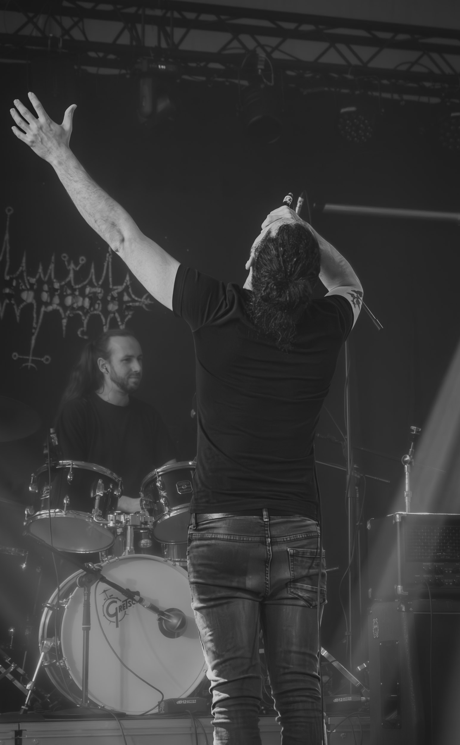 Ceci étant dit, comme souligné plus haut, le stress lié au fait d’être contraints de jouer dans une telle configuration se fait ressentir chez les membres de Nydvind, poussant ainsi ces derniers à mener rapidement le set vers sa fin en annonçant un ultime titre. Comme s’ils n’avaient pas encore assez joué de malchance, sur l’introduction, la boîte à rythmes s’enclenche plusieurs fois au mauvais moment, forçant les musiciens à recommencer ! Heureusement, après ce set qui reste superbe et envoûtant malgré les incidents l’ayant entaché, nombreux seront les spectateurs qui viendront présenter leurs respects à Nydvind, autant pour son nouvel album que pour son jusqu’au-boutisme. Des honneurs bien mérités !