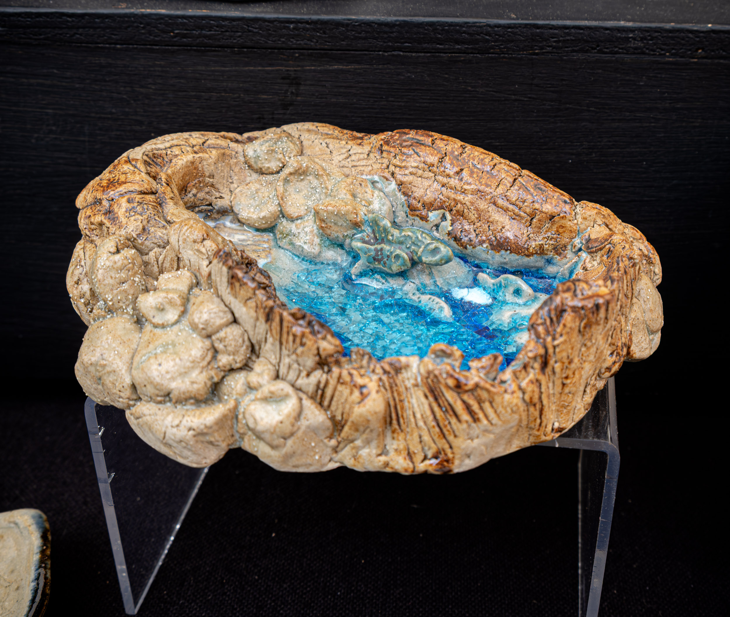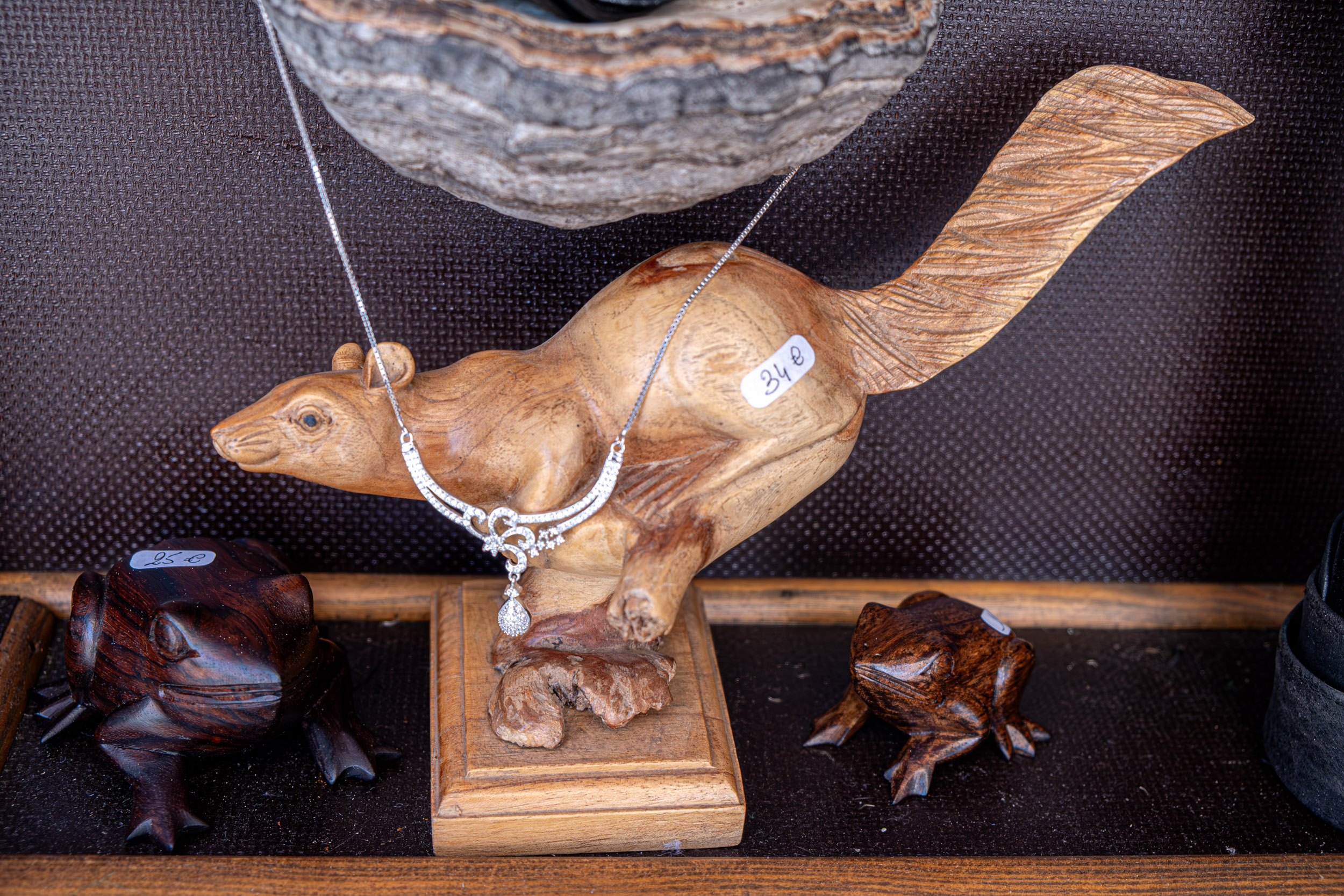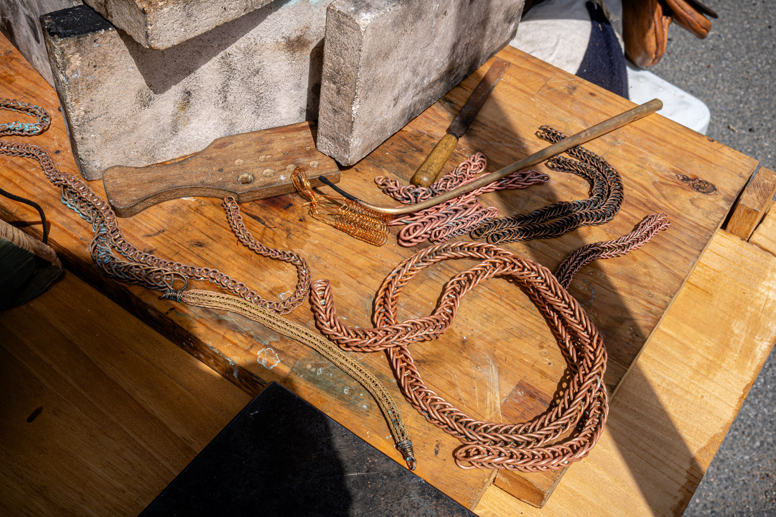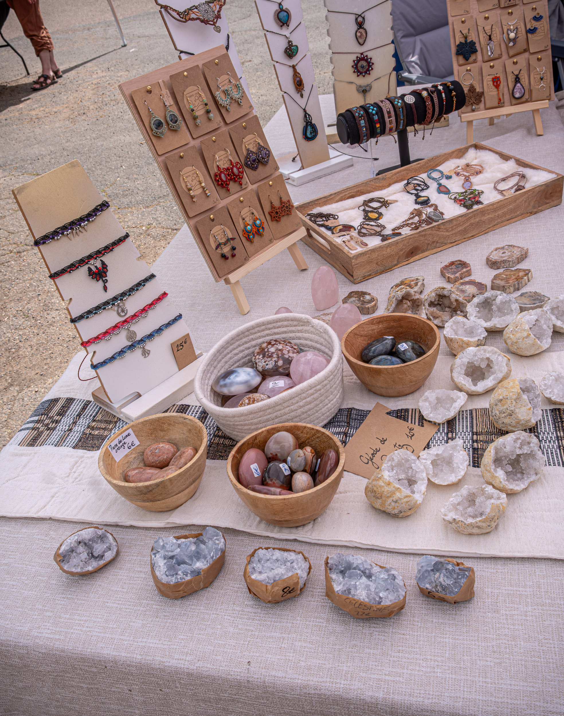Terre d’origine de certains artisans du marché, l’Italie est aussi celle du musicien se produisant quelques mètres plus loin. Ceux qui ont déjà assisté à un concert de Frostmoon Eclipse n’auront eu aucun mal à reconnaître le fondateur du groupe, Claudio Alcara, venu de La Spezia présenter quelques morceaux de son projet acoustique dark folk Stroszek. D’allure mystérieuse derrière ses lunettes noires, armé de sa guitare sèche et de sa voix grave et rocailleuse, le Ligurien livre aux visiteurs du marché une musique envoûtante et crépusculaire… à laquelle ne manque finalement que l’ambiance associée à ce temps du soir. Mais pas de souci, l’ombre des arbres au bord de l’Azergues fait bien l’affaire !