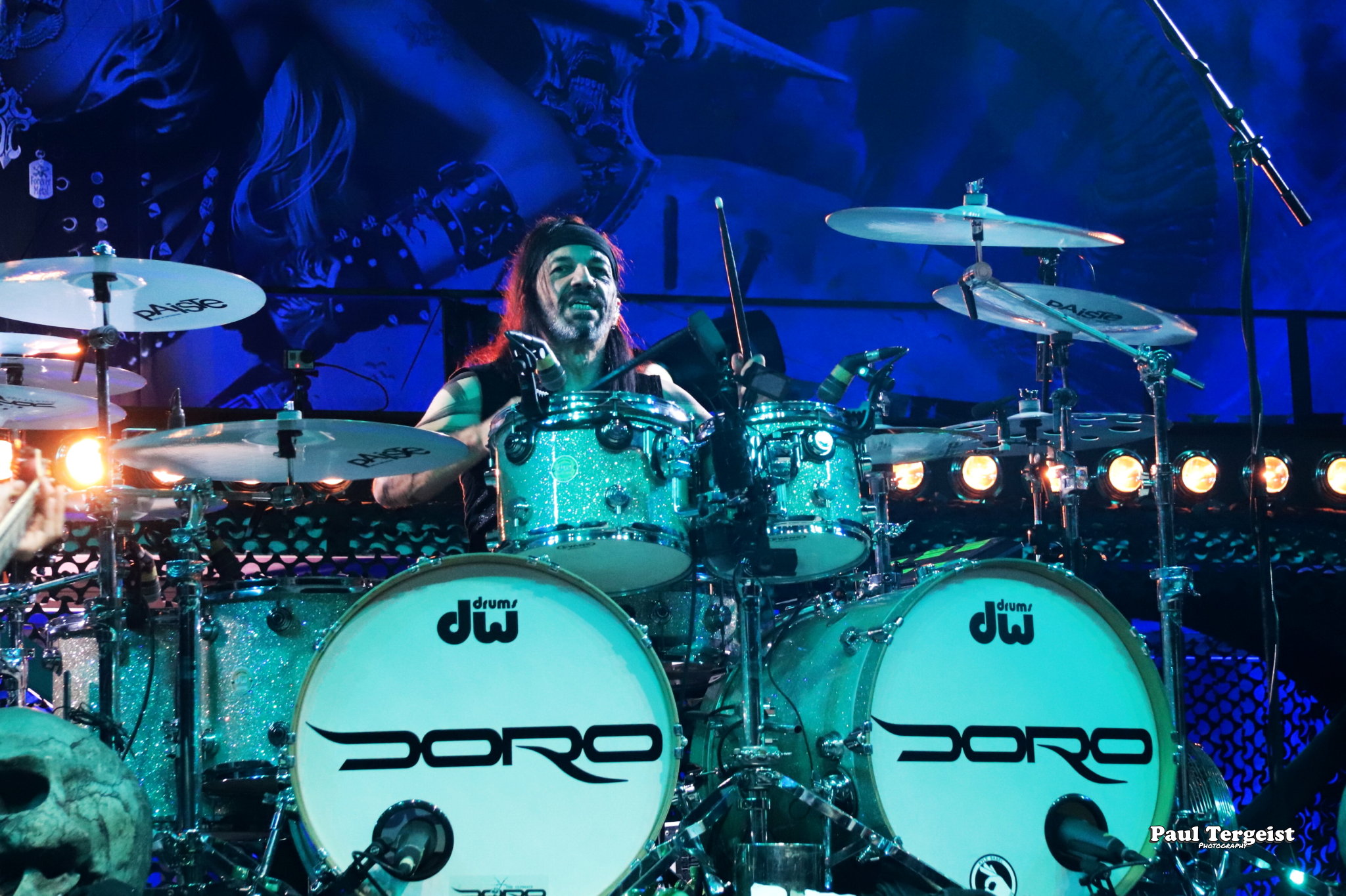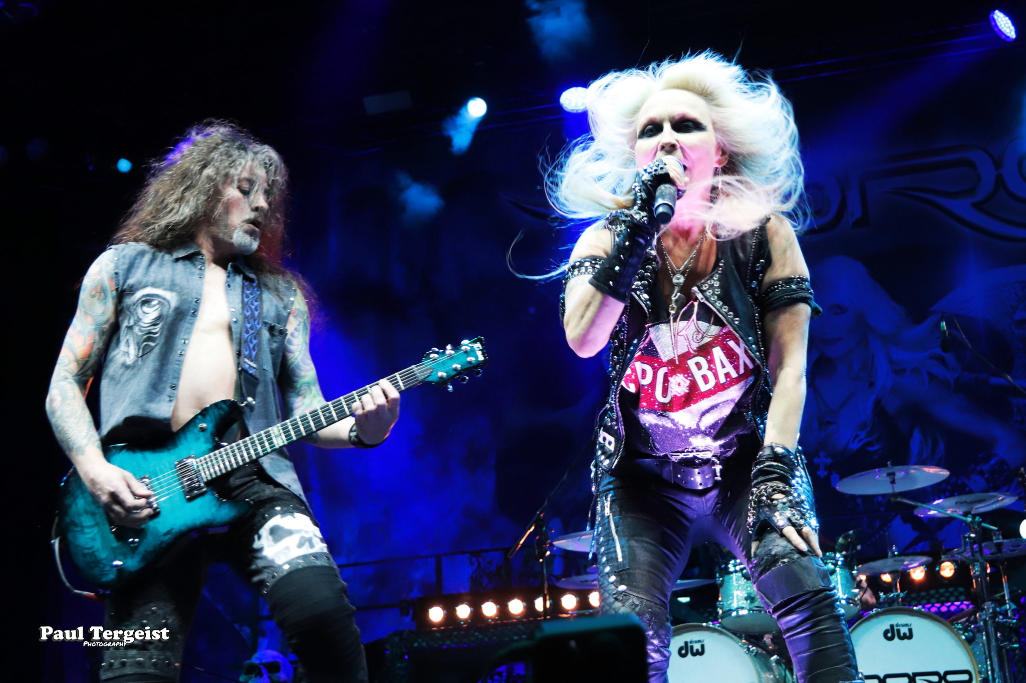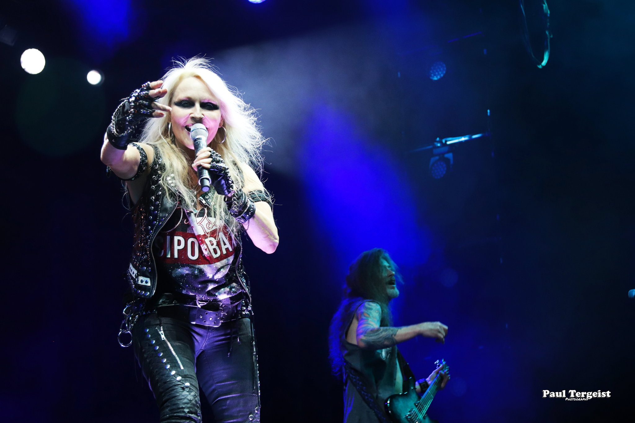 Si Doro a toujours bénéficié d’un capital sympathie évident et d’une cote de popularité satisfaisante de par le monde et surtout en Europe, elle est une véritable star en son Allemagne natale. Ce qui lui permet d’investir la Mitsubishi Electric Halle — l’ancienne célèbre Philipshalle — de Düsseldorf, sa ville d’origine, pour un show sold-out exceptionnel, réunissant 7500 fans, et de s’entourer de nombreux guests, venus tour à tour donner de la voix — ou de la six-cordes — sur des classiques de sa période solo ou de Warlock, son groupe des années 80, dont les nombreux titres emblématiques composent depuis toujours la moitié de ses set-lists.
