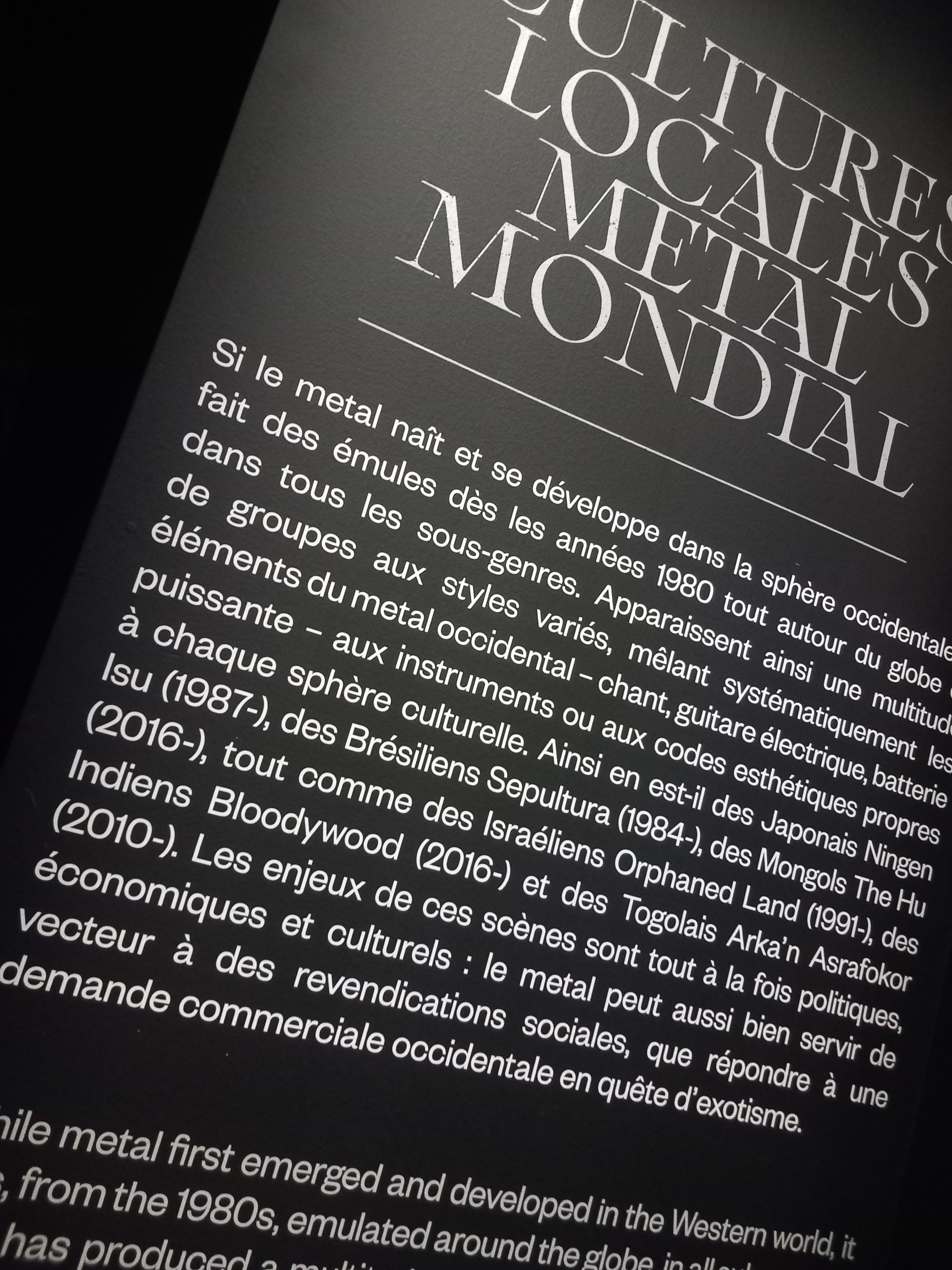Il y a quelques semaines, nous vous avions proposé une interview unique de Corentin Charbonnier, co-commissaire de l’exposition (à retrouver ici : Interview Corentin Charbonnier (expo metal à la Philharmoniede Paris) – Metalalliance (metalalliancemag.ch)) pour vous présenter Diabolus in Musica ! Je vous avais promis de vous faire un live report de l’exposition et de sa folle soirée de vernissage : nous y voilà donc ! Il y aura peut-être quelques petits spoilers, divulgâchés, donc si vous souhaitez vous réserver la surprise de l’exposition, je vous invite à ne pas aller plus loin (mais à revenir me lire une fois votre visite passée bien évidemment et surtout, à partager vos impressions avec moi en commentaires).