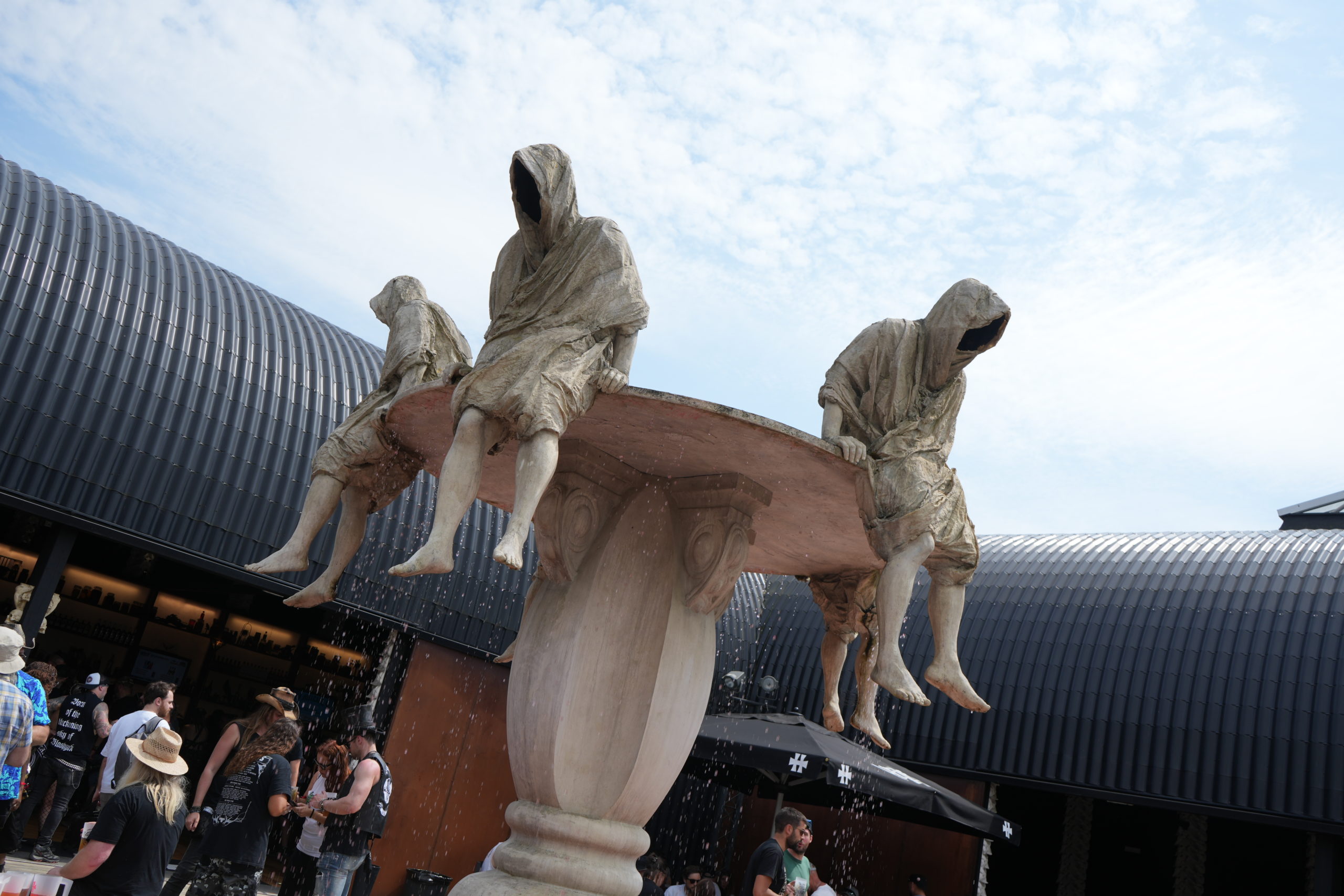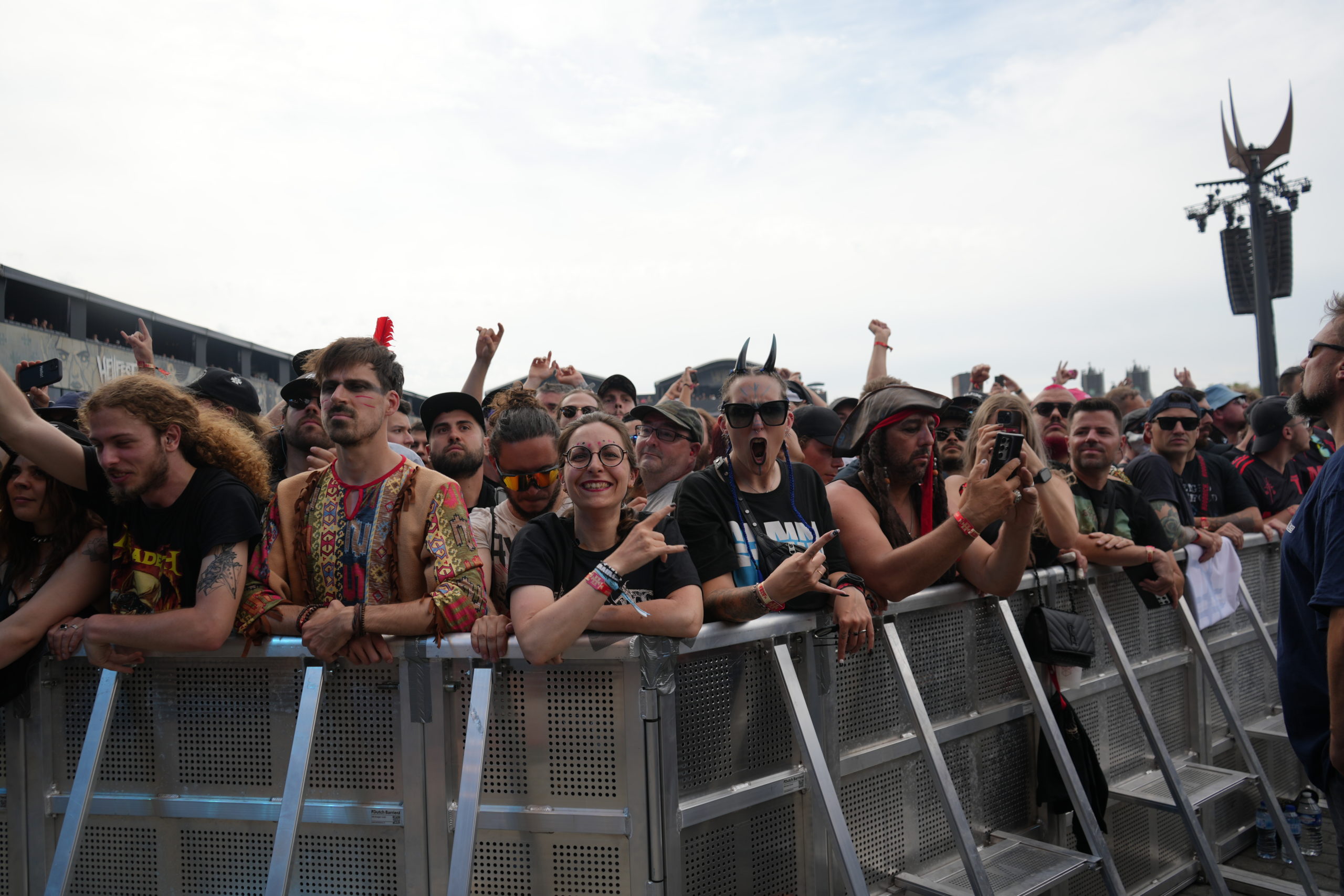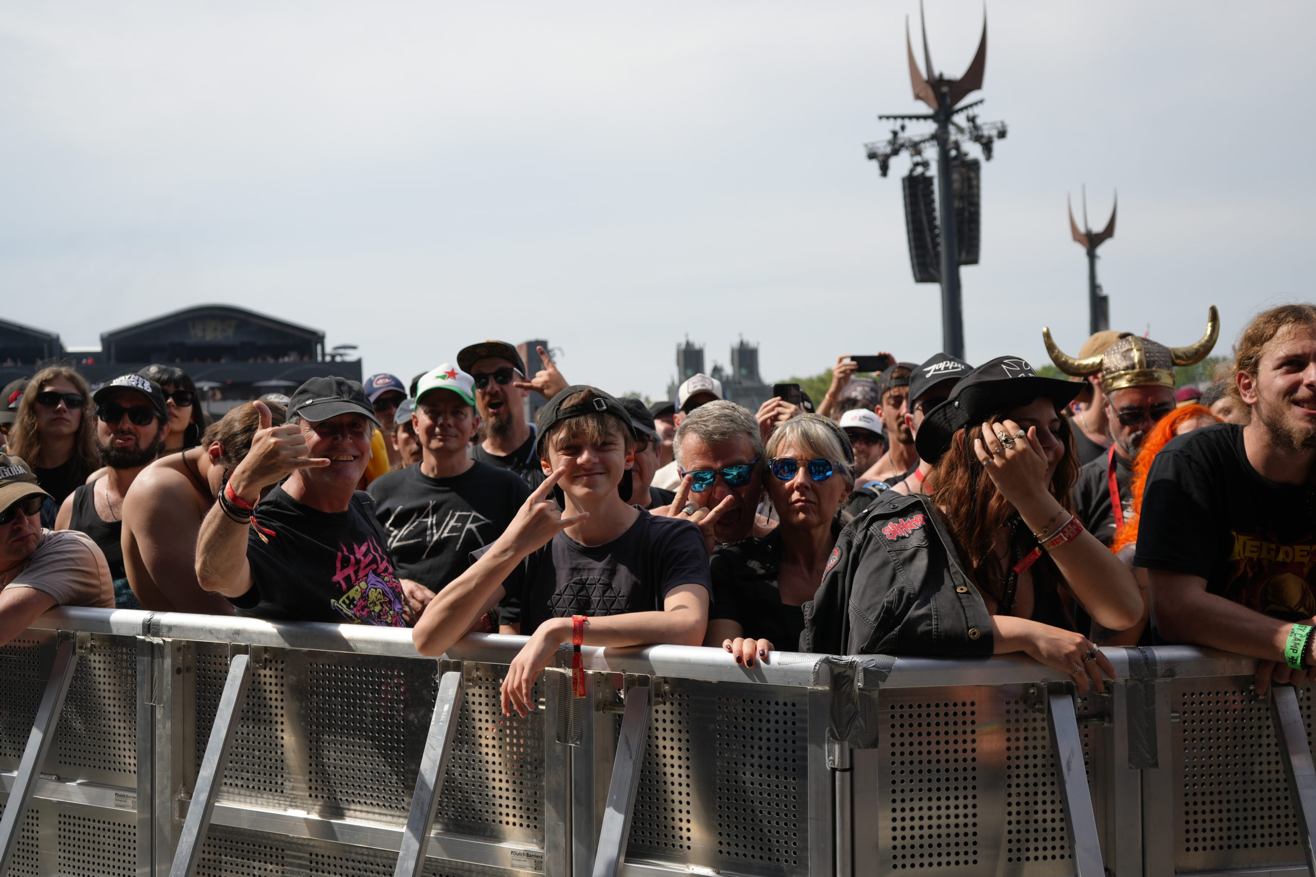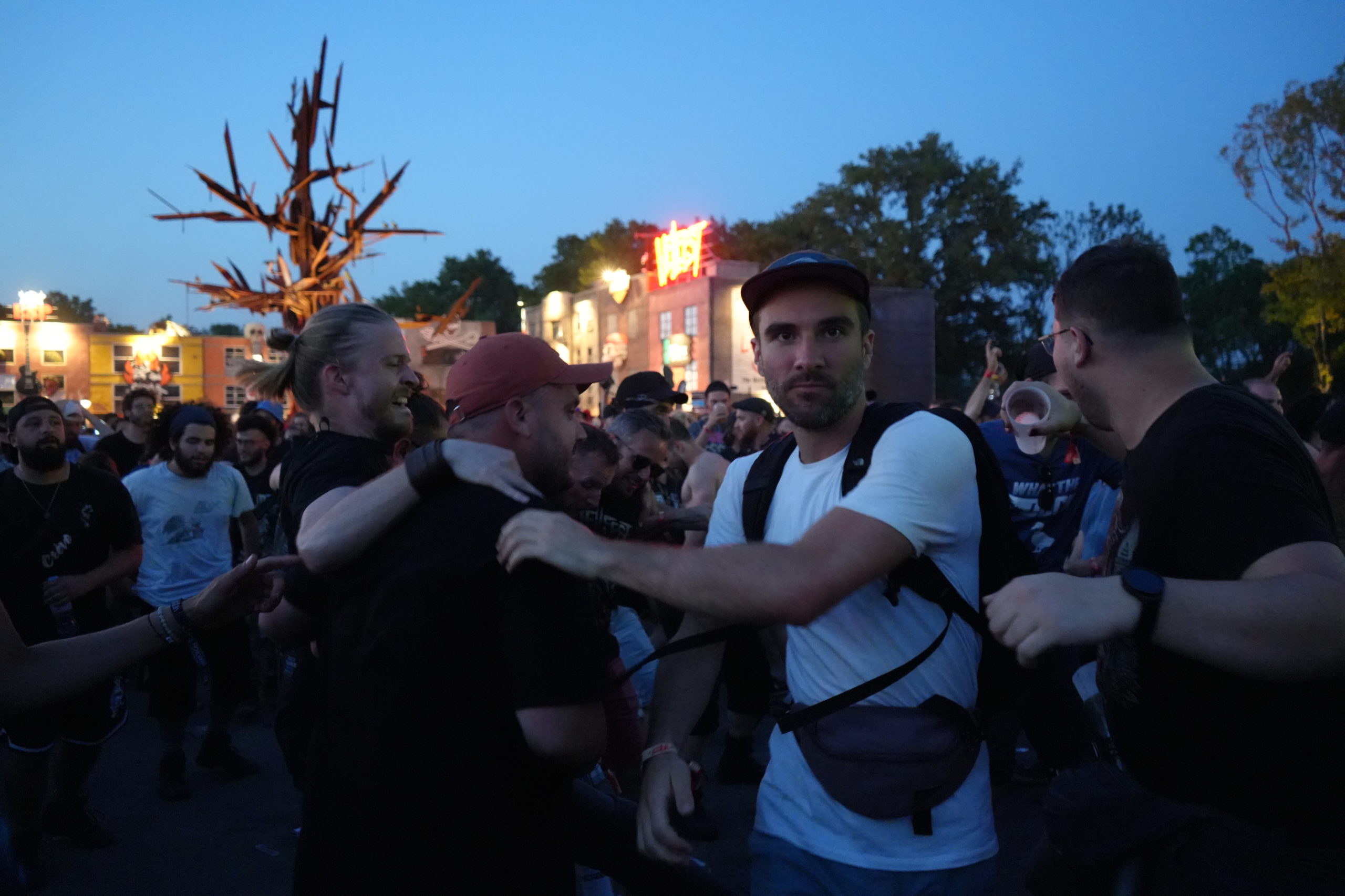 Passage obligatoire à l’espace presse — où il fait 72 degrés en température ressentie — pour saluer nos partenaires, vérifier les interviews et conférences de presse. Puis, une fois l’organisation réglée, c’est le moment de vérifier si les copains et les rendez-vous de cette année sont arrivés, de charger les cashless, du premier verre, de se jeter dans la queue du merch, de télécharger l’appli, etc… Nous sommes plusieurs de Metal Alliance sur le site, tous passionnés et ayant tous des goûts metalleux différents. Le live report promet des discussions à couteaux tirés. K-ro est une aficionada de la Warzone, mais les surprises promettent de se trouver sur toutes les scènes. Emy est une passionnée du Temple et de l’Altar. On a donc pu couvrir pas mal de choses !