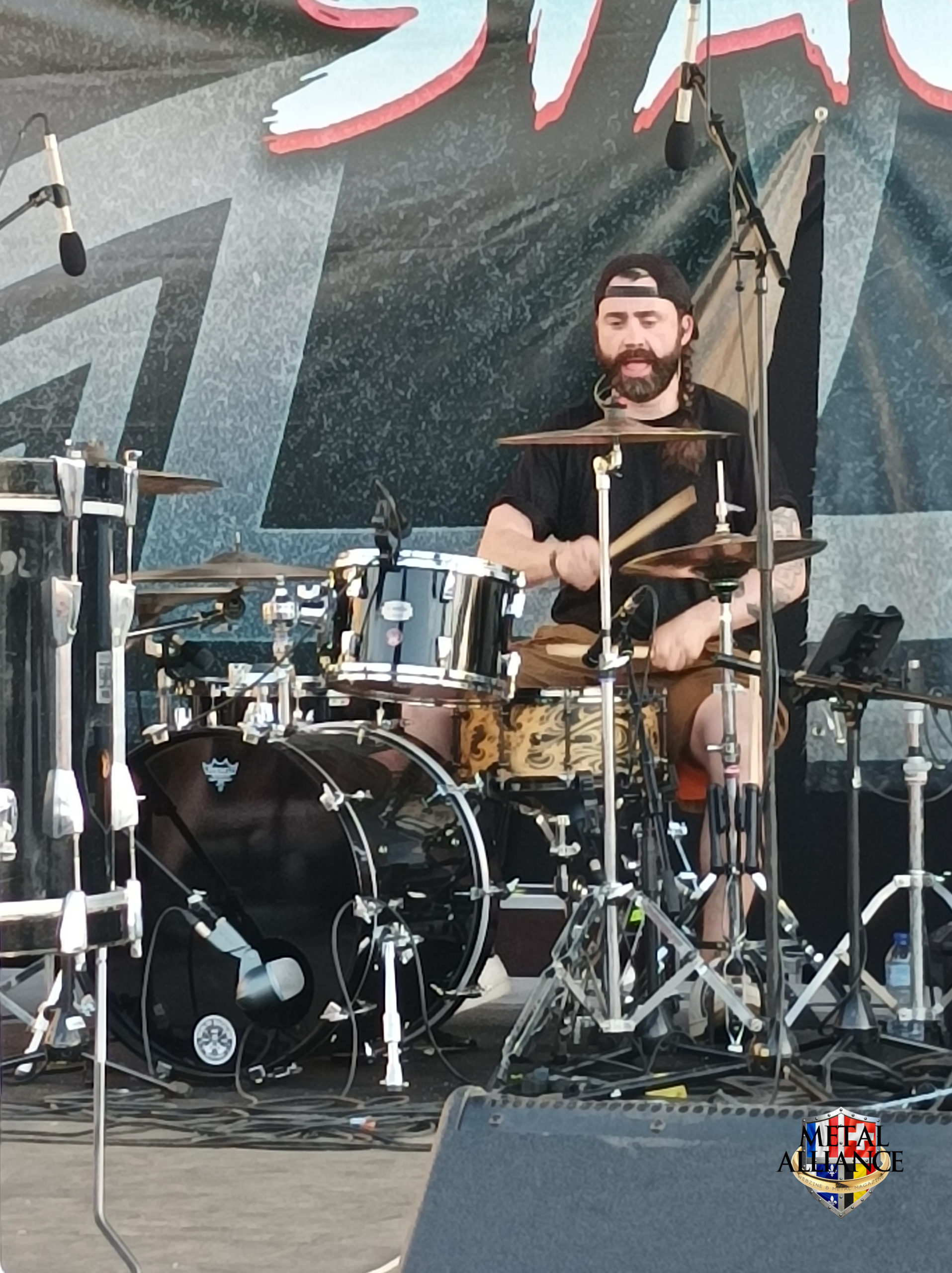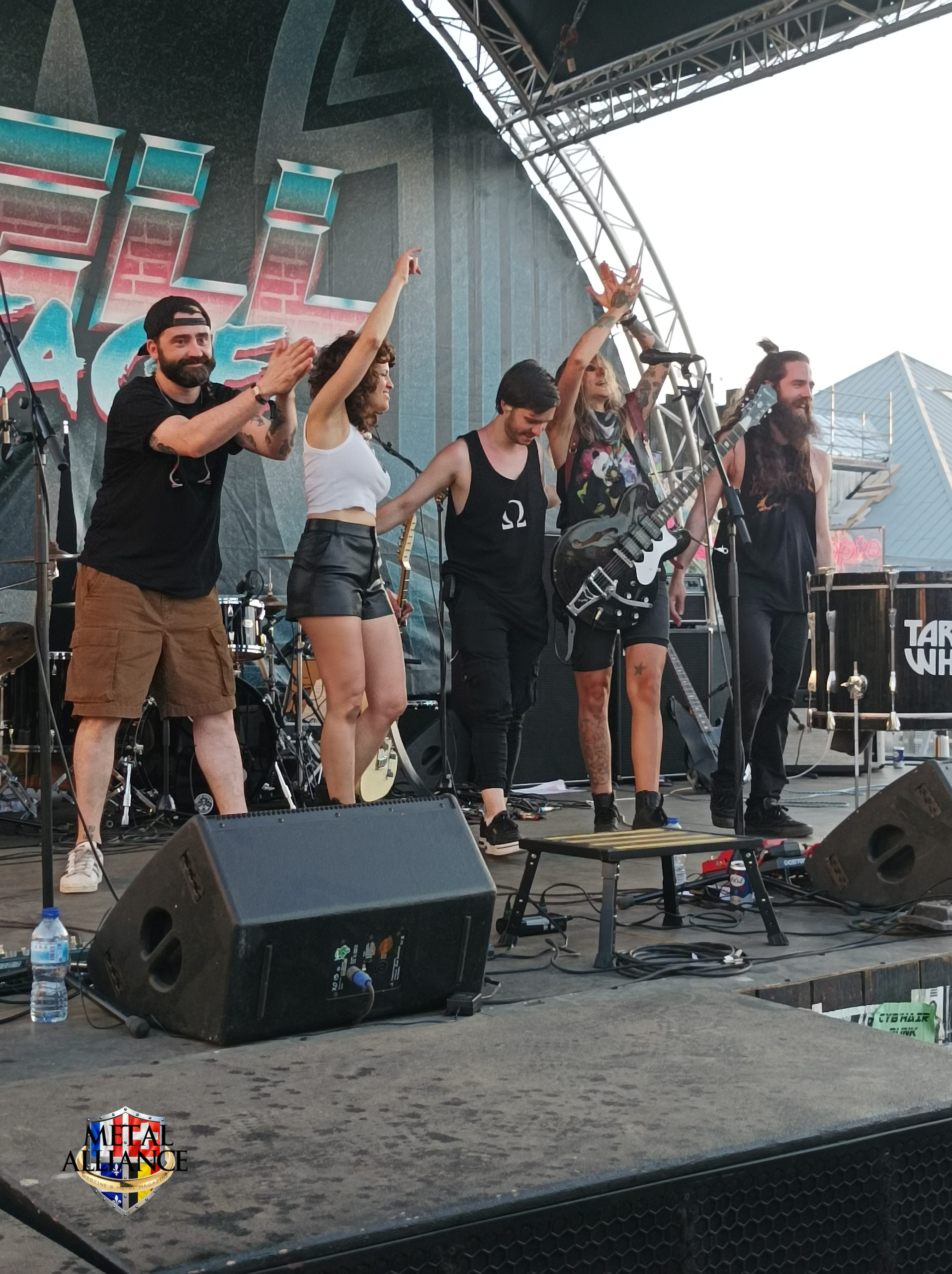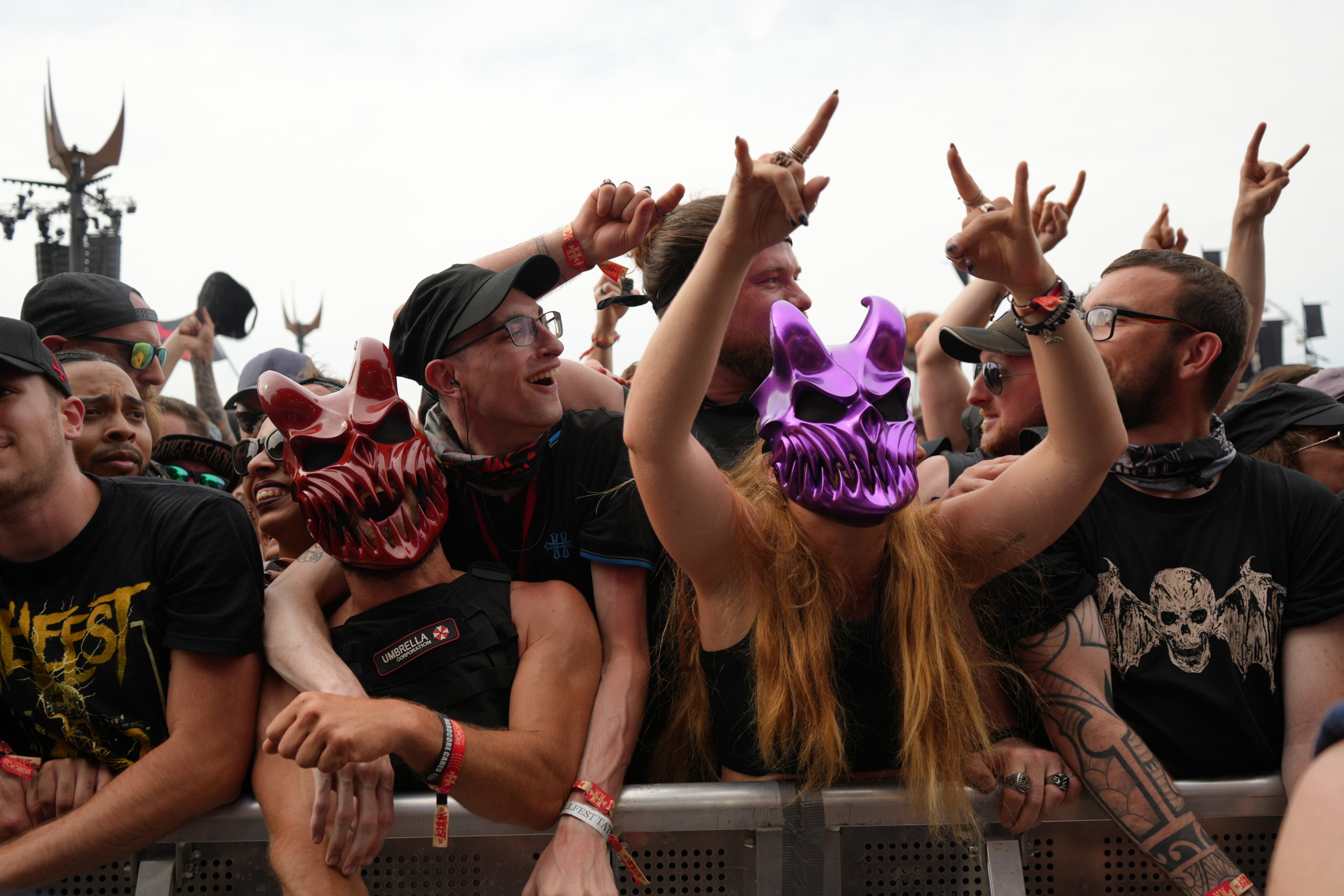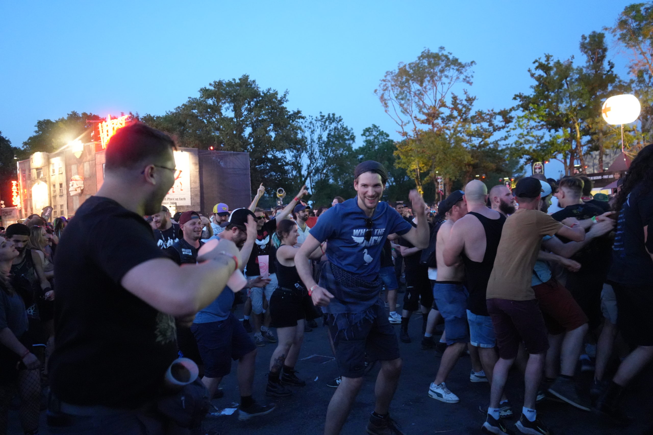 Passage obligatoire à l’espace presse — où il fait 72 degrés en température ressentie — pour saluer nos partenaires, vérifier les interviews et conférences de presse. Puis, une fois l’organisation réglée, c’est le moment de vérifier si les copains et les rendez-vous de cette année sont arrivés, de charger les cashless, du premier verre, de se jeter dans la queue du merch, de télécharger l’appli, etc… Nous sommes plusieurs de Metal Alliance sur le site, tous passionnés et ayant tous des goûts metalleux différents. Le live report promet des discussions à couteaux tirés. K-ro est une aficionada de la Warzone, mais les surprises promettent de se trouver sur toutes les scènes. Emy est une passionnée du Temple et de l’Altar. On a donc pu couvrir pas mal de choses !