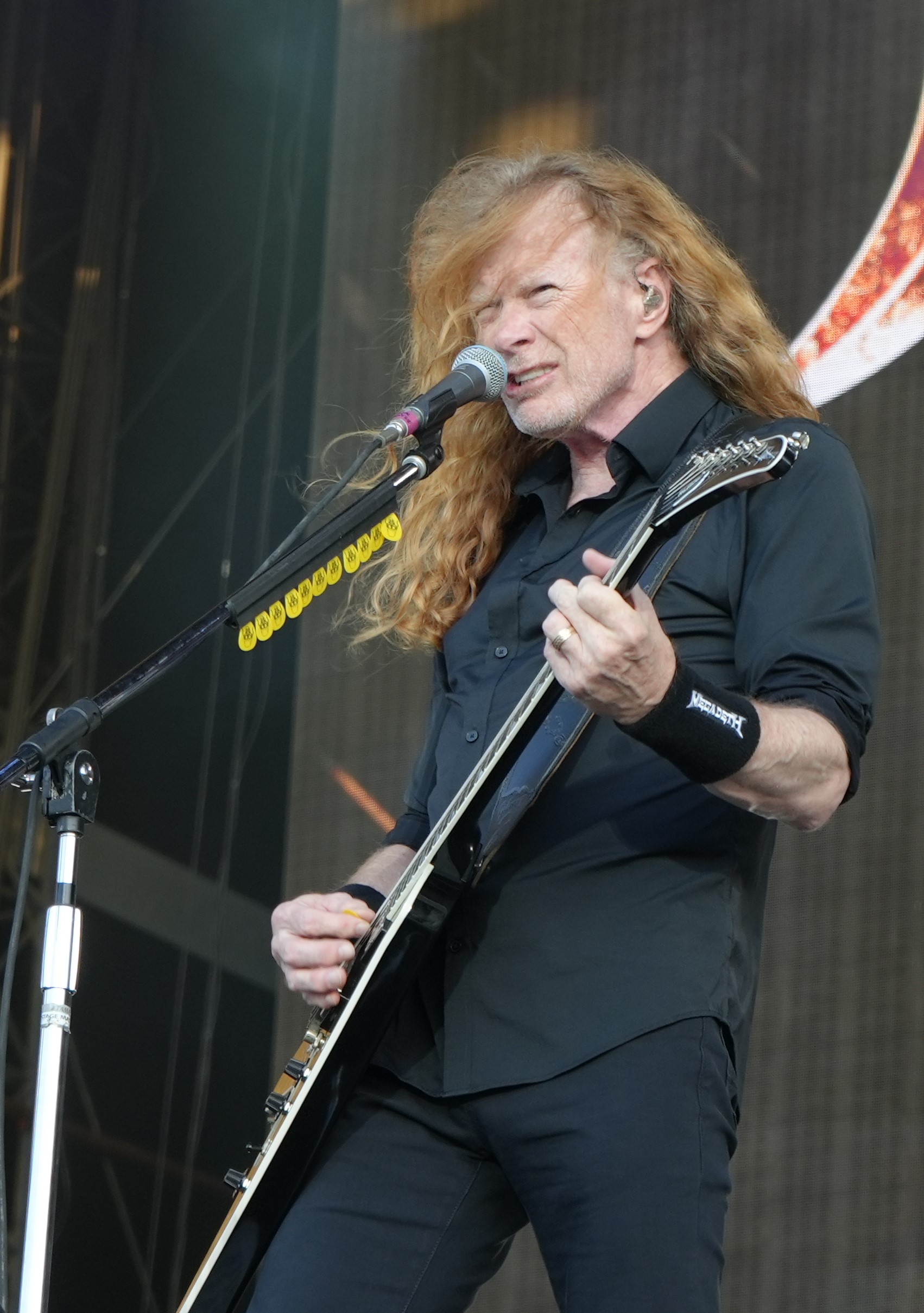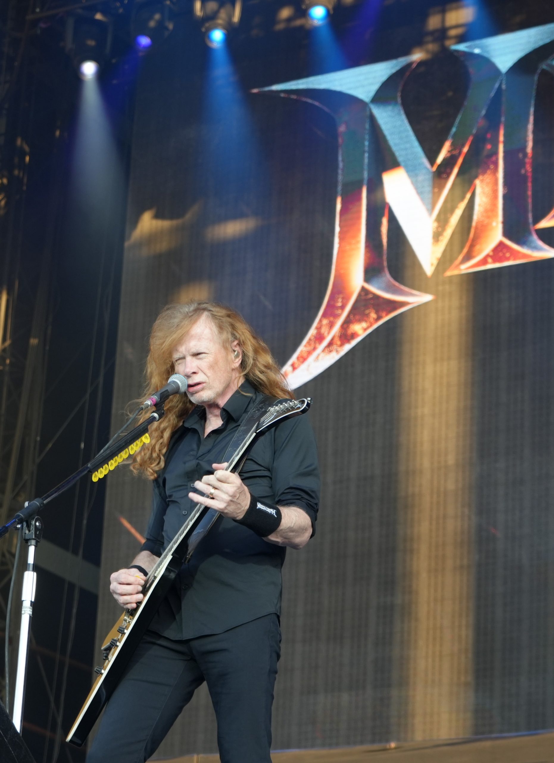 S’il y a un concert qui nous a mis d’accord, il s’agit bien celui de Megadeth. Dès le début du show en prime time, Dave Mustaine nous est apparu sur scène plus en forme qu’il y a deux ans. Si, de prime abord, le leader de Megadeth semblait fatigué en foulant la Mainstage, il était bien présent et sa voix était au RDV. Quelques jours auparavant, le concert parisien n’avait pas fait que des heureux, nous ne savions donc pas trop à quoi nous attendre. En revanche, le groupe frappe clairement dans le mille au Hellfest. La setlist, composée de onze chansons, était particulièrement bonne pour satisfaire un public de festival — en plus, on adore chanter A tout le monde avec notre accent so franglish.