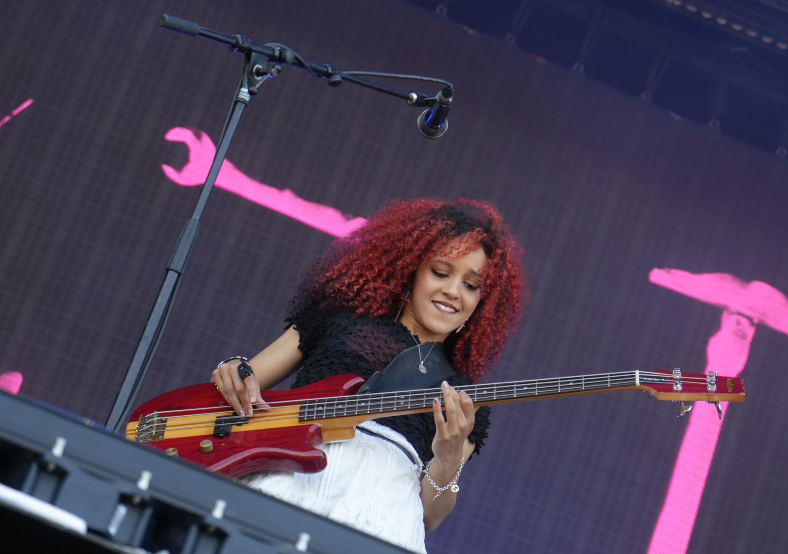 Direction ensuite la Mainstage où Emy et K-ro assistent au concert de Nova Twins — qui ne sont pas des sœurs mais bien des amies. Leur son est (très, voire trop) électro, et le public apprécie ce que proposent Love et South ! Quelques fans fins connaisseurs sont au rendez-vous et le set déclenche des circle pits à gogo. Amy Love à la guitare électrise le set pendant que Georgia South hypnotise le public avec sa basse. Bien que le public semble avoir particulièrement accroché, il est regrettable qu’autant de bandes son soient diffusées en backup. K-ro et Emy s’accordent à penser que Nova Twins gagnerait à mettre davantage en avant son jeu en live.