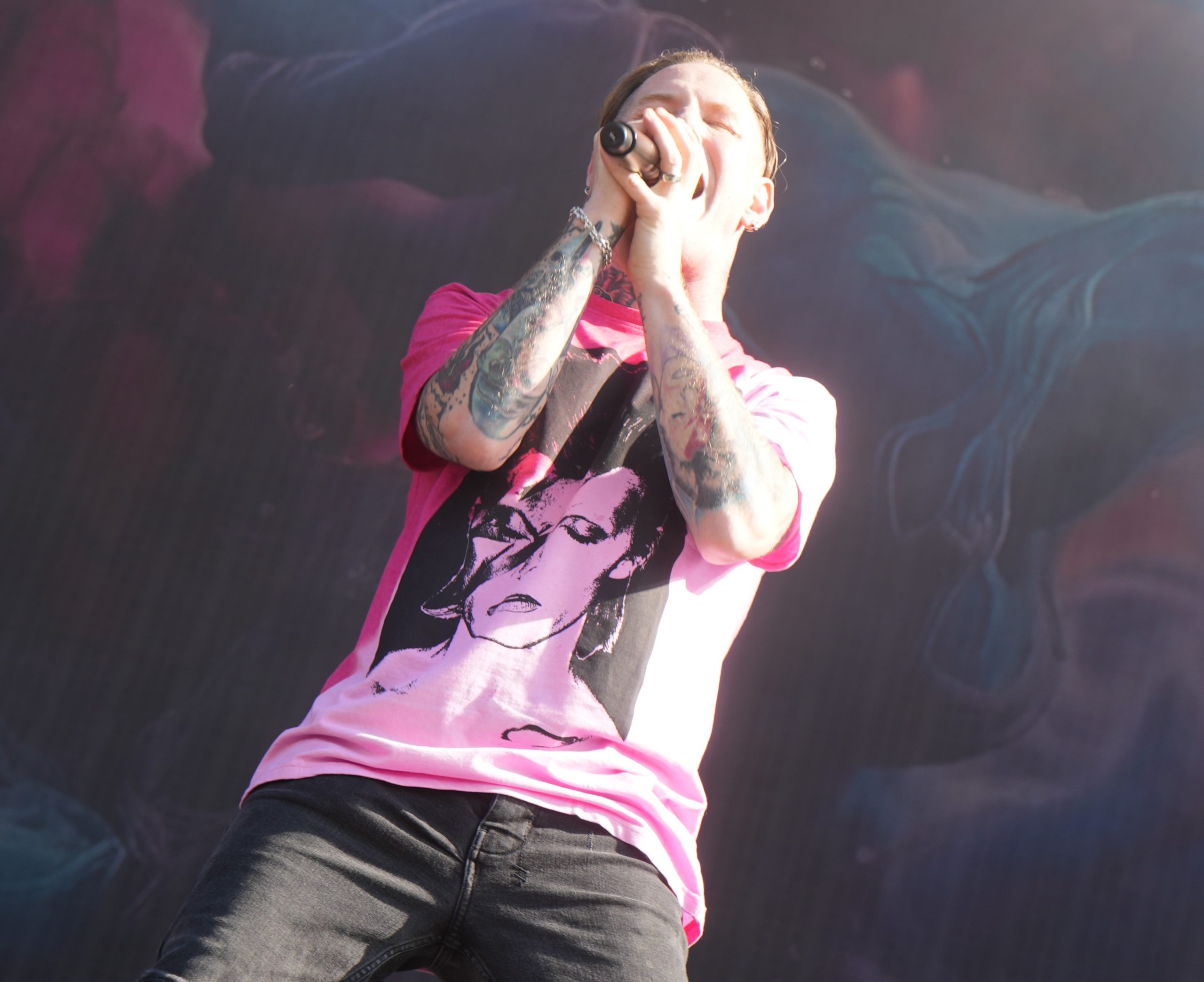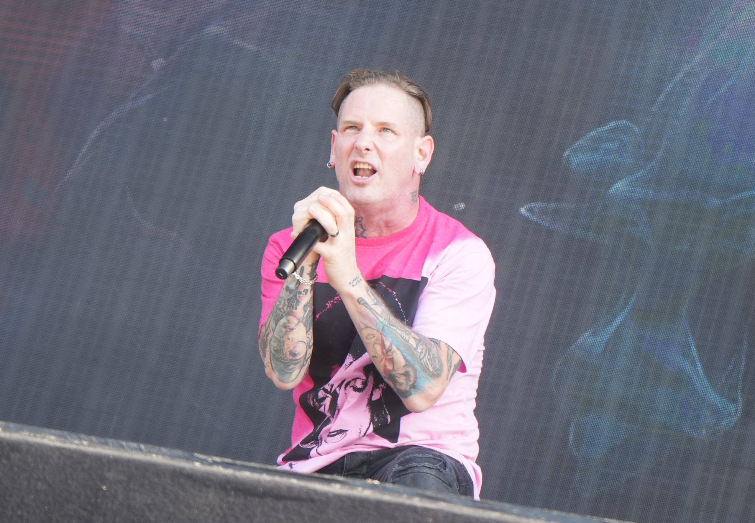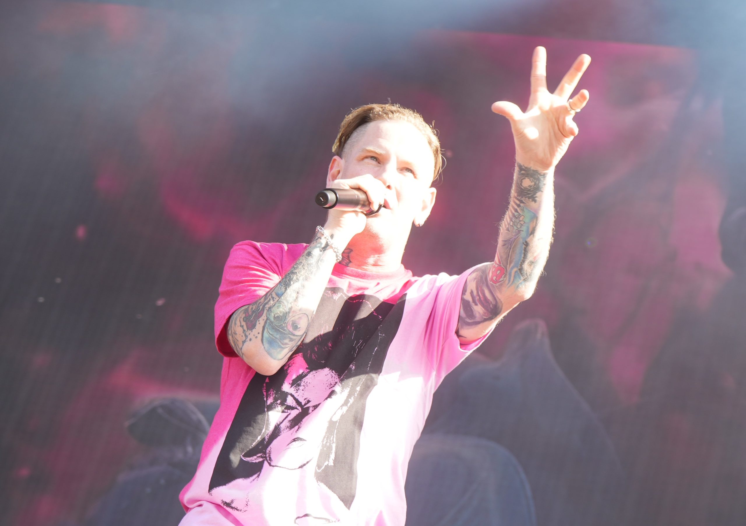 Emy se rend ensuite bien évidemment au show de Corey Taylor, tout de rose Bowie vêtu ! Notre Taytay à nous autres metalleux est très intelligent : il propose une set list composée en grande partie de titres de Slipknot et de Stone Sour, qu’il agrémente de quelques extraits de sa carrière en solo. Il nous joue aussi sa traditionnelle reprise du générique de SpongeBob Square Pants. Petite anecdote : si Corey a été un peu mielleux avec sa femme, il s’est absenté quelques minutes de scène pour… aller mettre de la crème solaire, puisqu’elle l’engueulait à cet effet ! Moralité : messieurs, vous savez à présent que Corey Taylor est un homme comme les autres : sa femme commande.