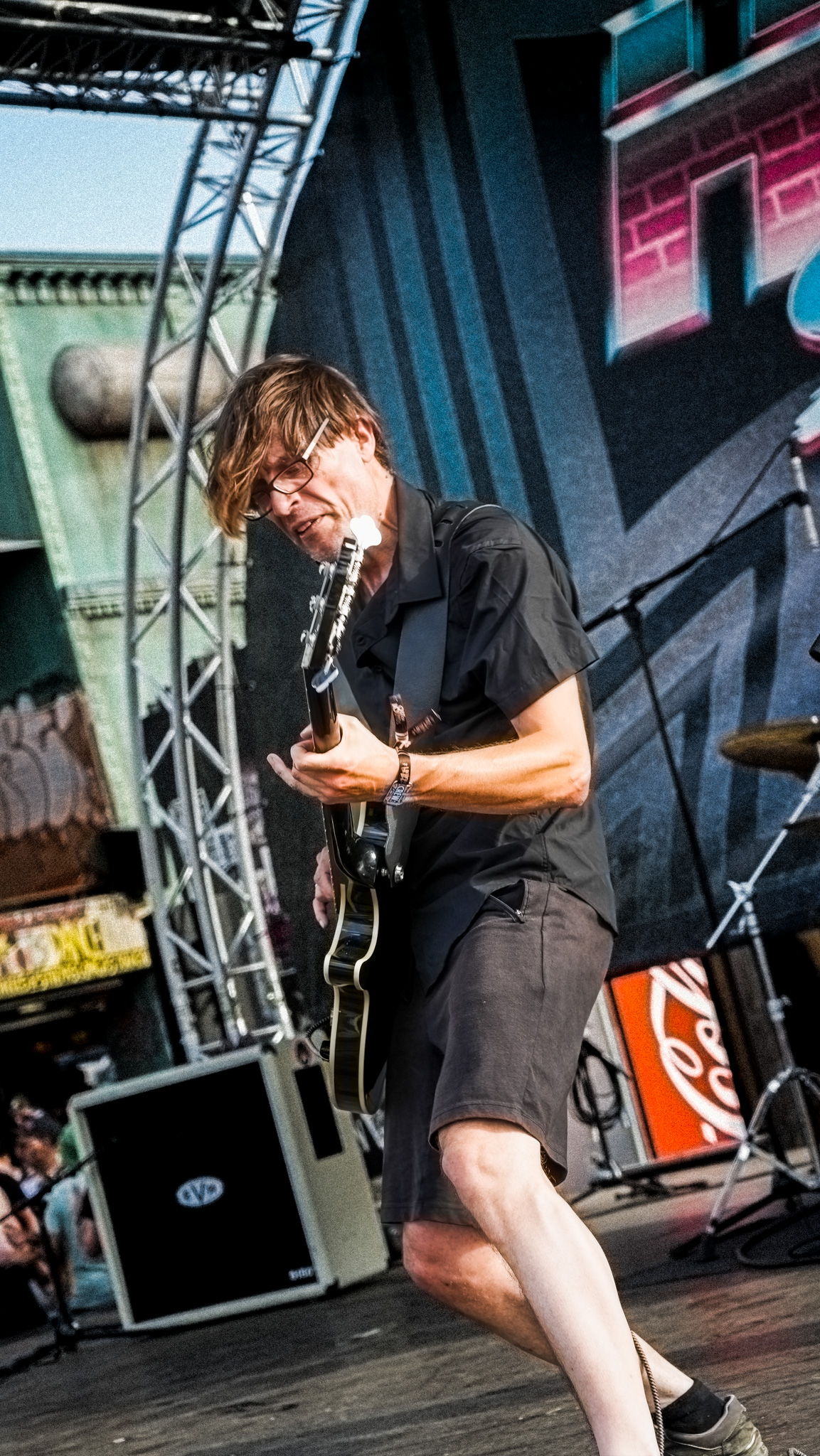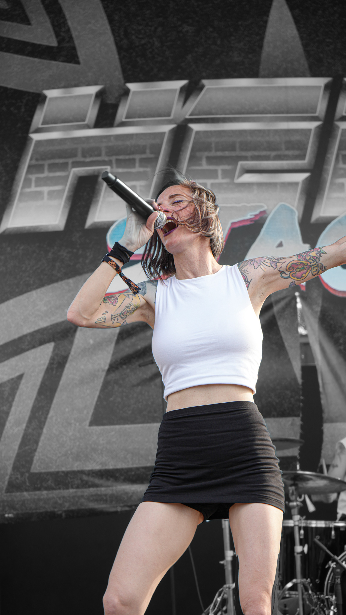 Réveil idéal pour cette troisième journée avec Audrey Horne, groupe norvégien qui a tout donné sous un cagnard déjà solide. Son hard rock aux relents de Maiden et Van Halen nous a embarqués dès les premières secondes, porté par un chanteur charismatique et des musiciens clairement bien rodés. Le public, présent malgré l’heure, répond avec enthousiasme aux interactions du frontman. Un concert solaire, plein d’énergie positive, avec des solos qui transpirent la passion du riff bien senti, et une très belle entrée en matière.