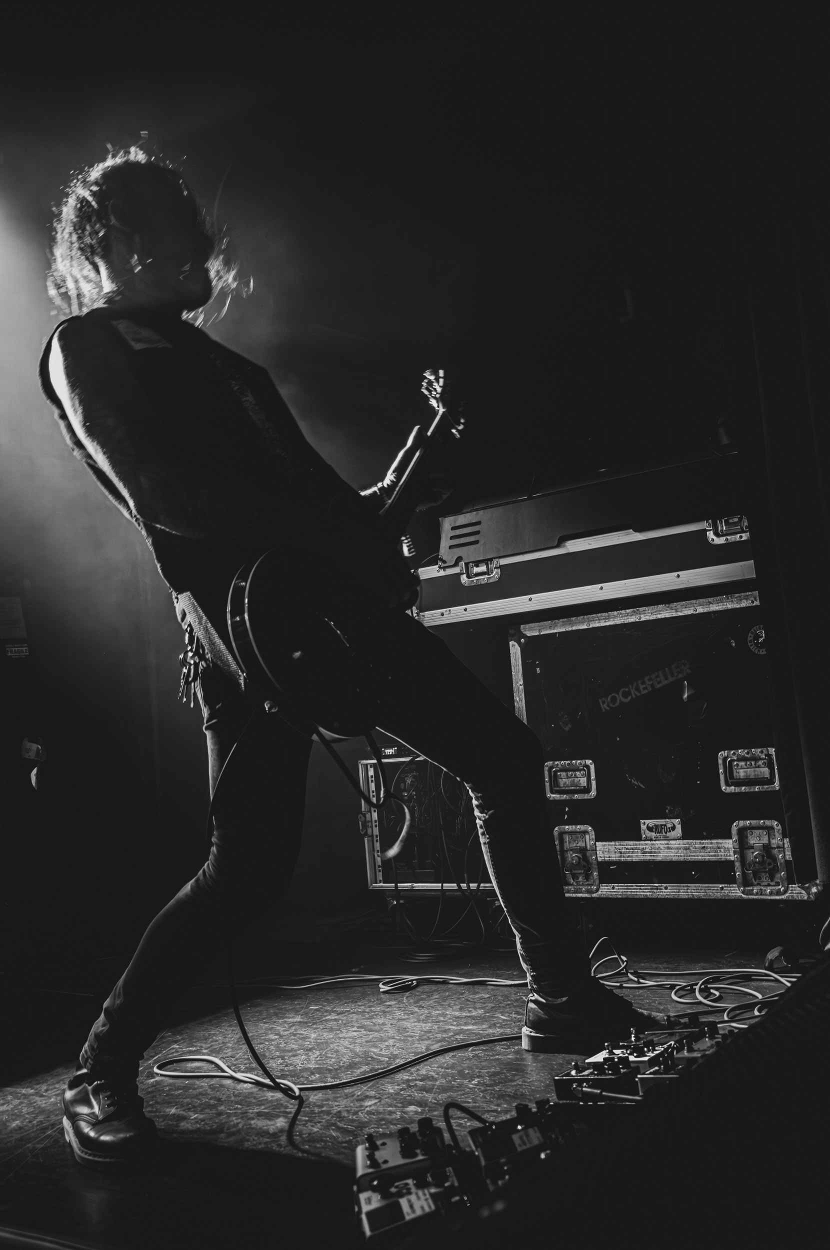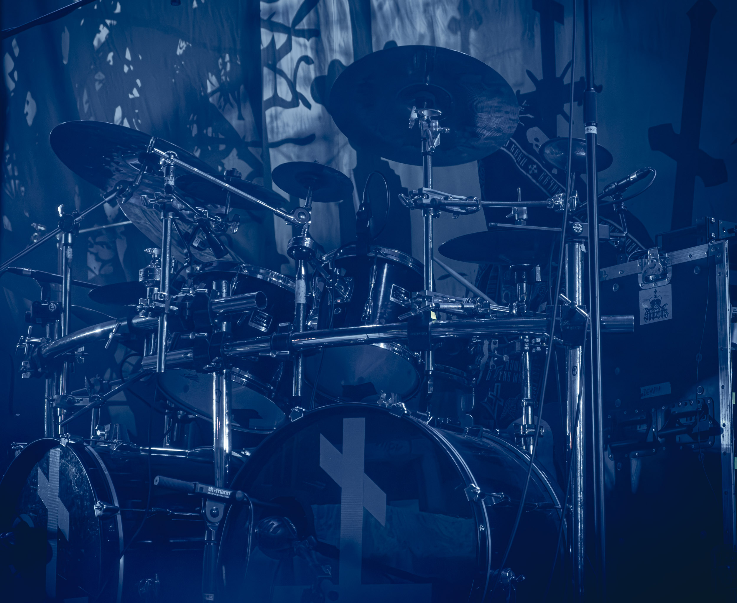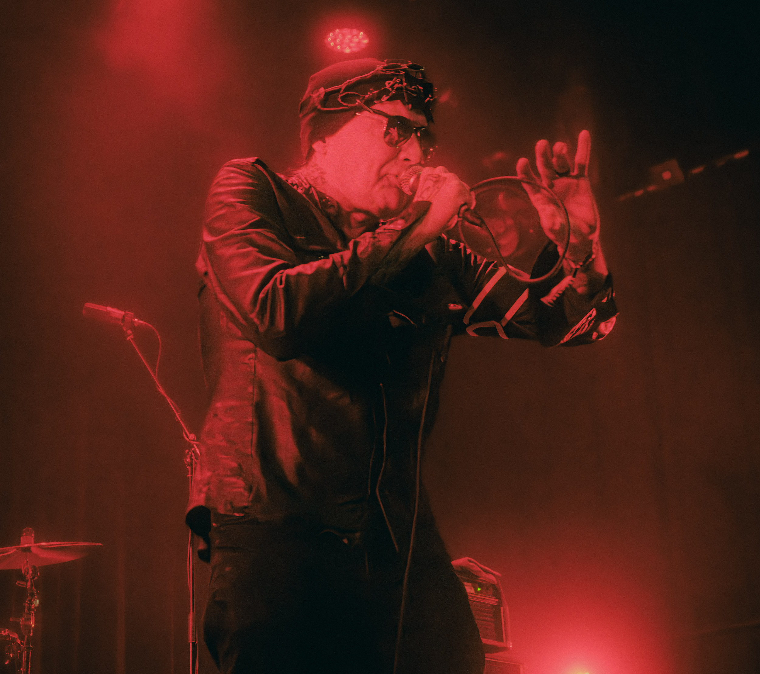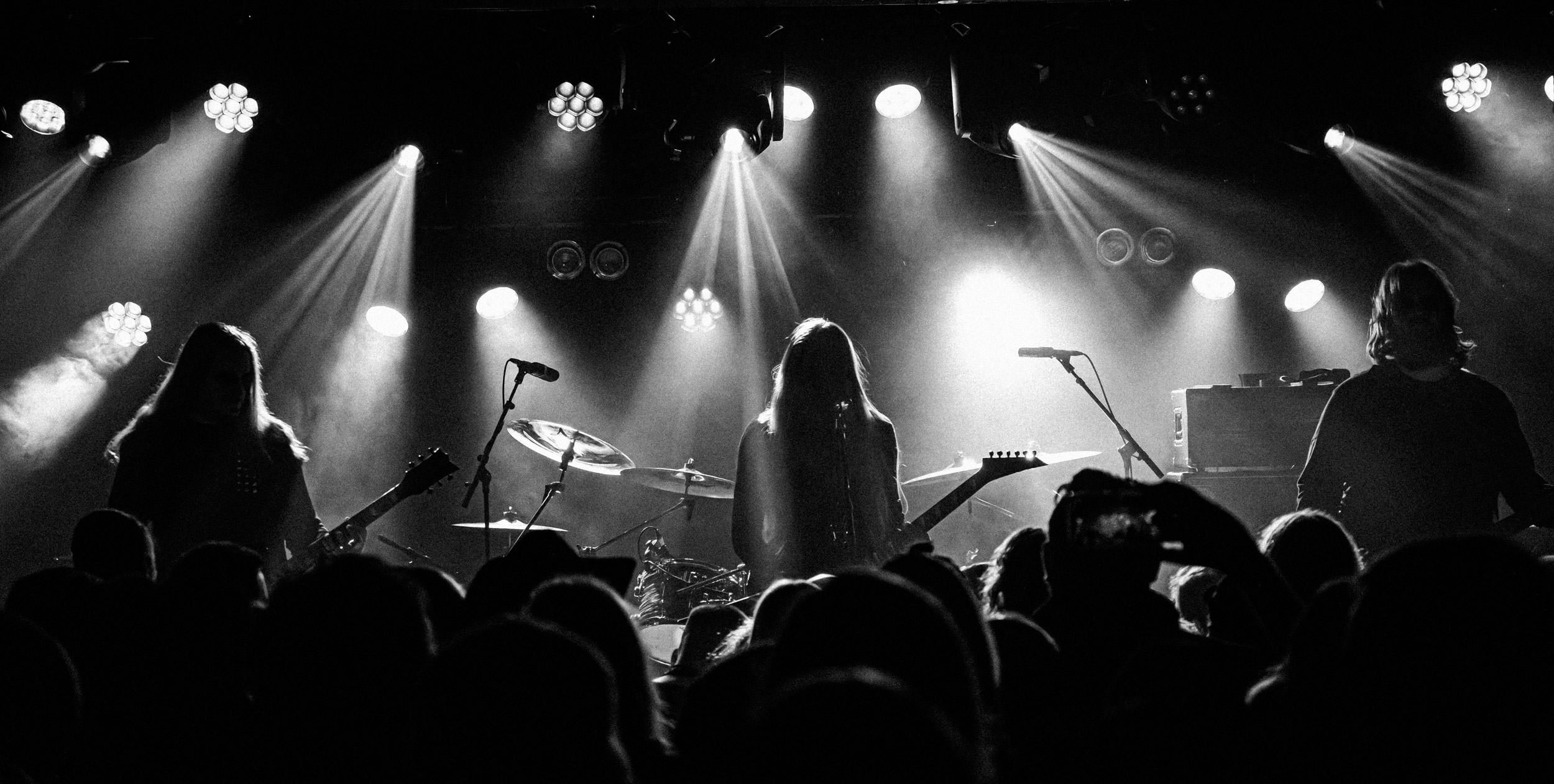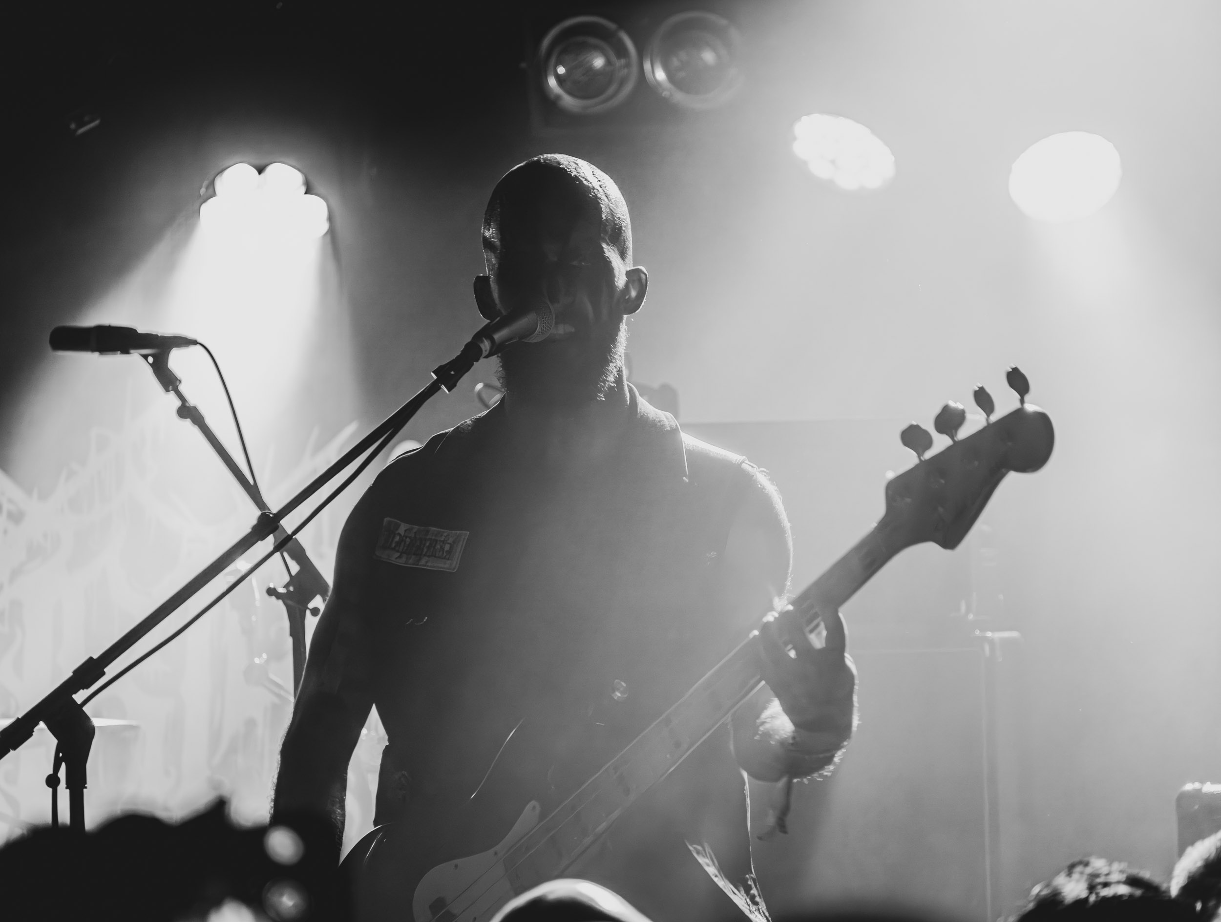 Udåd : Si Udåd vient tout juste d’émerger avec la sortie de son premier album éponyme en 2024, son fondateur, lui, est loin d’être un inconnu. Pour cause : il s’agit de Thomas Eriksen, l’homme derrière la valeur sûre Mork. Ce nouveau projet se distingue toutefois de son grand frère de par son approche très brute et dépouillée, aussi bien au niveau de l’écriture et de la musicalité que du mixage sonore. Le rythme de l’ensemble oscille entre lent et mid, porté par des morceaux au rythme ternaire leur donnant des airs de valse mortuaire. En résulte une ambiance froide et austère, renforcée par la distance dont font montre les musiciens, qui ne répondent que par le son de leurs instruments aux injonctions des spectateurs. Thomas Eriksen, dans son rôle de frontman, paraît comme une présence fantomatique, le visage caché derrière ses cheveux, le reverb sur sa voix — unique effet sonore que se permet le mixage — renforçant d’autant plus cette apparence surnaturelle. L’éclairage monochrome rouge, qui ne change pas ou alors très peu, couplé à l’absence de lumières de face, ajoute la touche finale à cette atmosphère d’un autre monde. En tout cas, le stoïcisme et la dévotion des membres d’Udåd imposent respect et admiration ; de même, les morceaux ont quelque chose d’à la fois entêtant et envoûtant, pesant sur l’esprit aussi… L’un de ceux joués en dernier met en avant un petit passage en guitare lead au son grinçant et plaintif. [Ségolène]