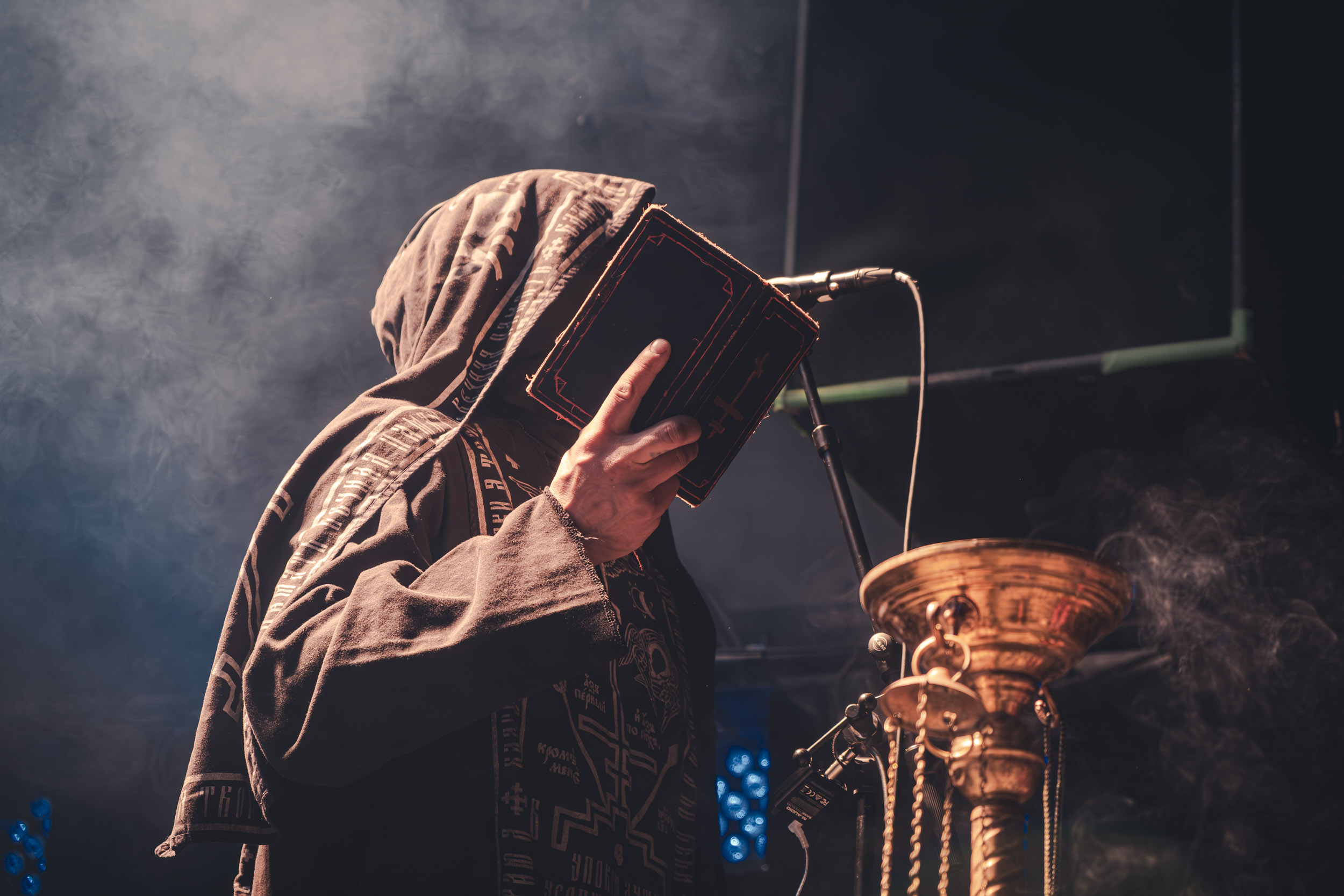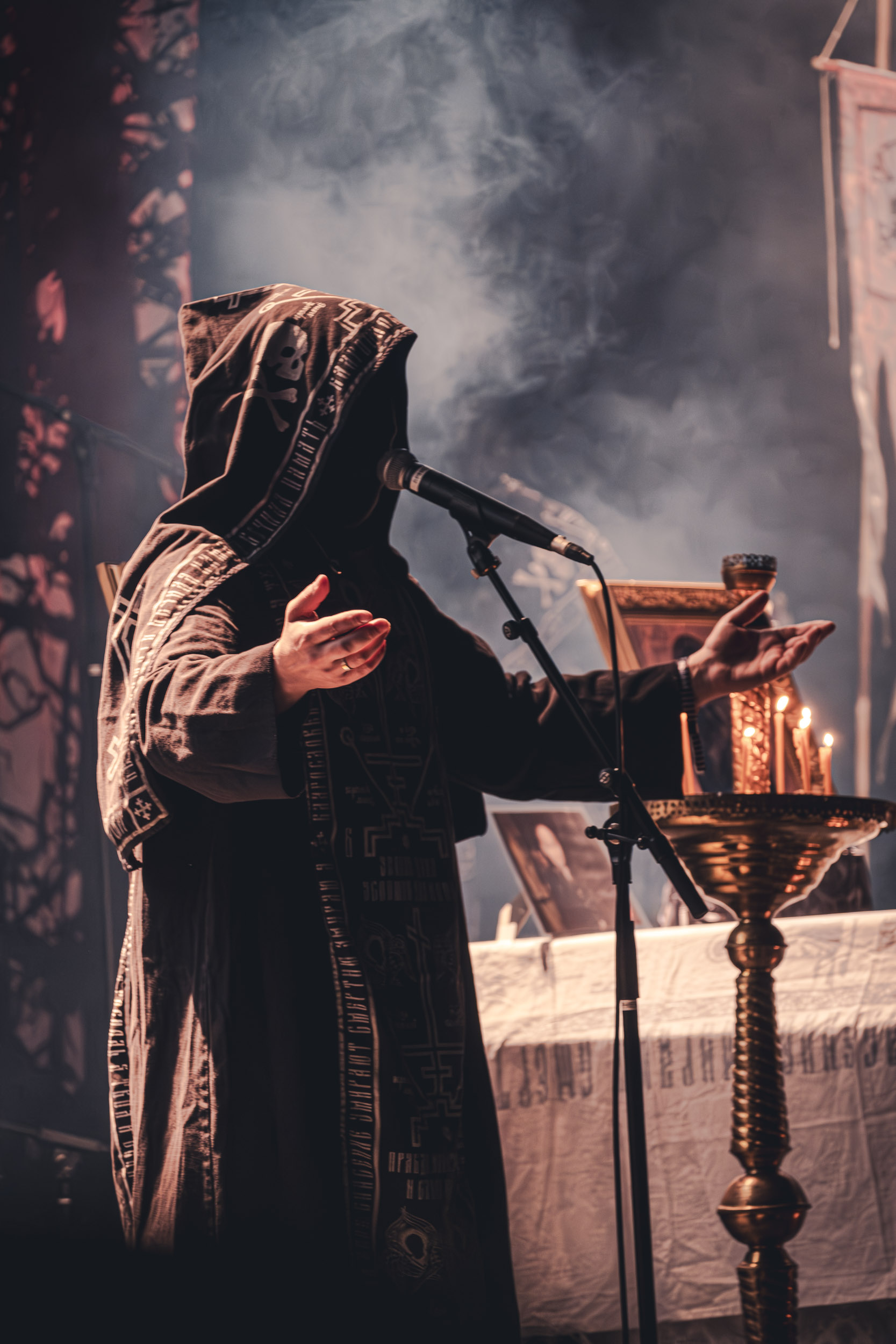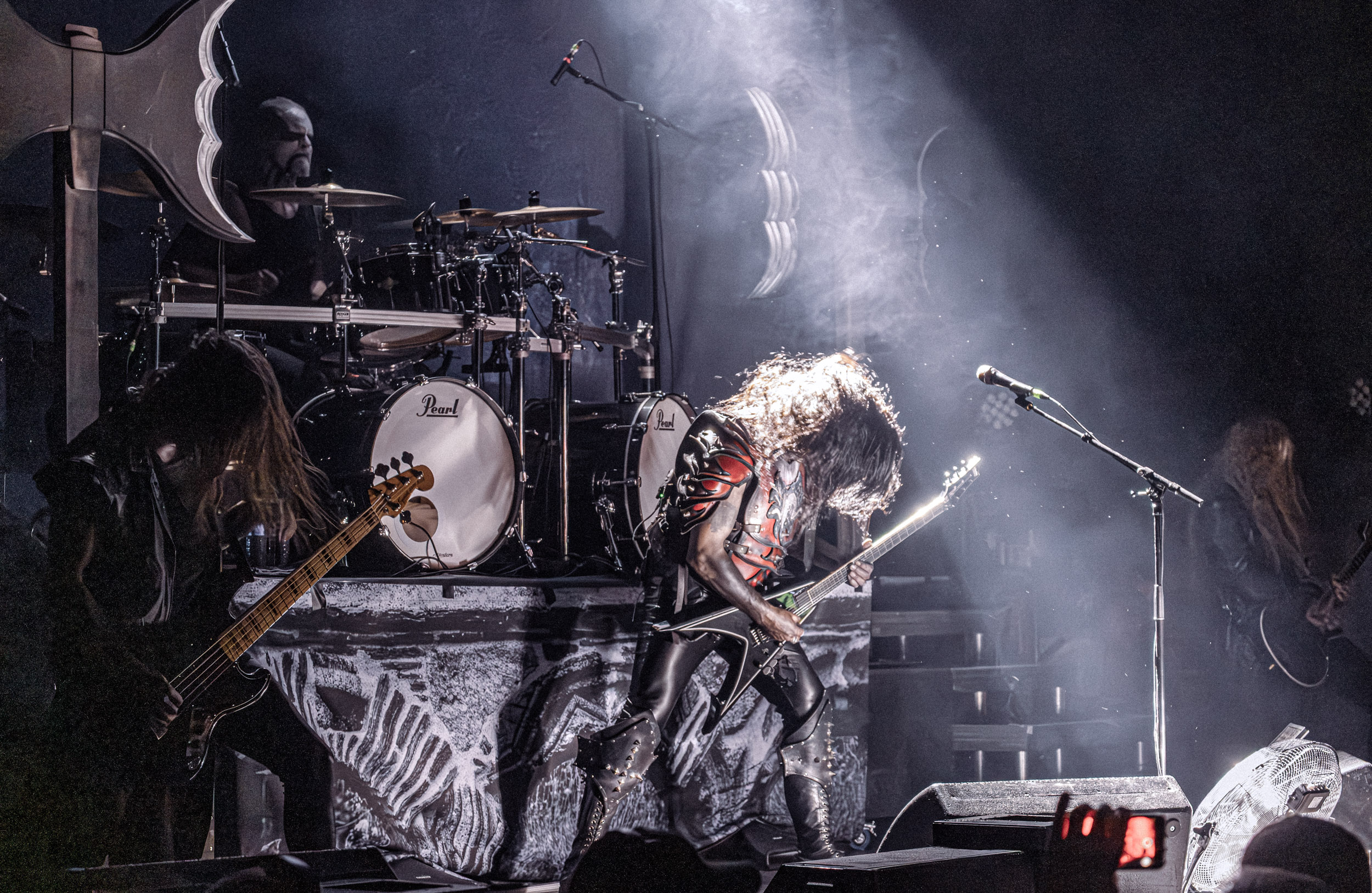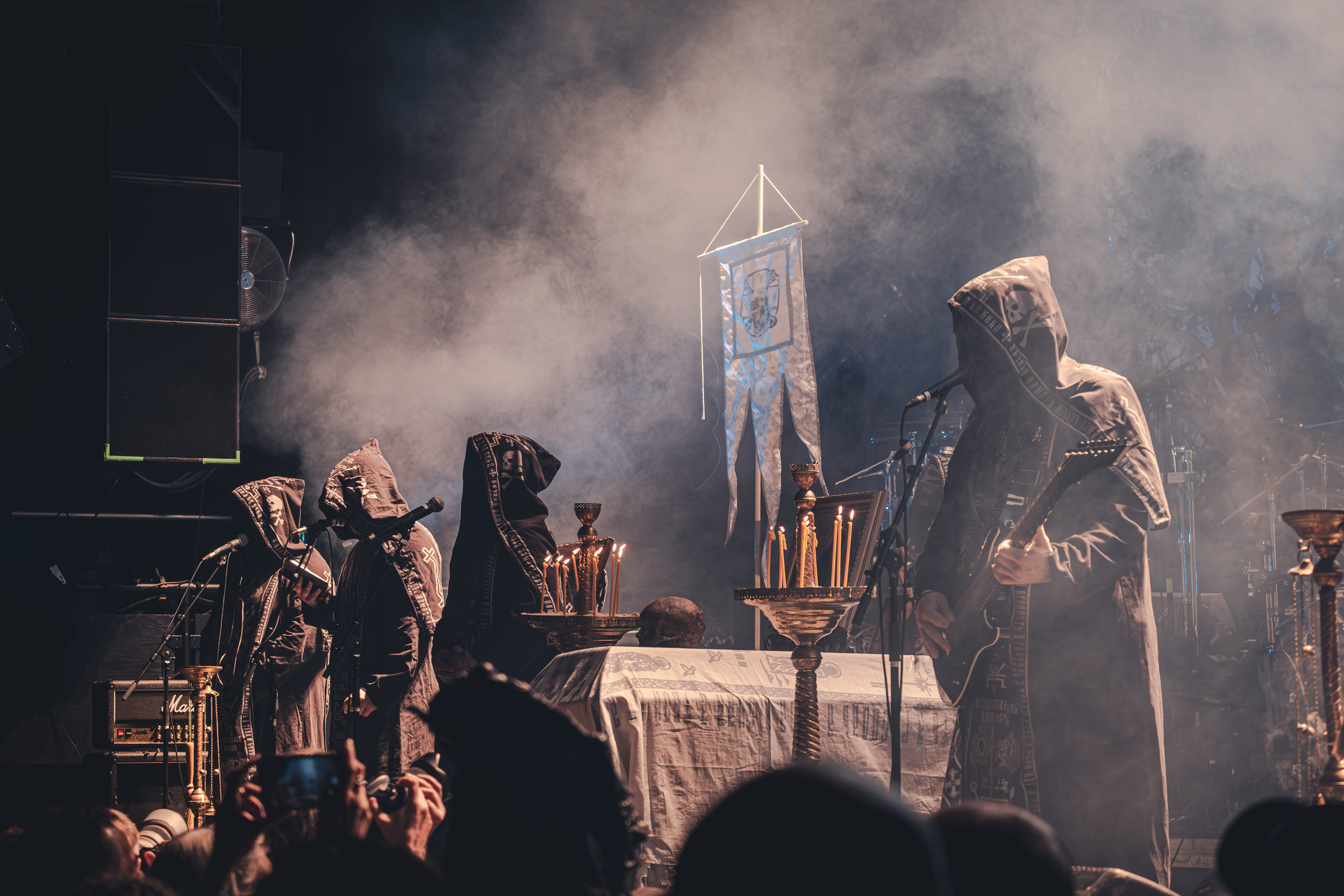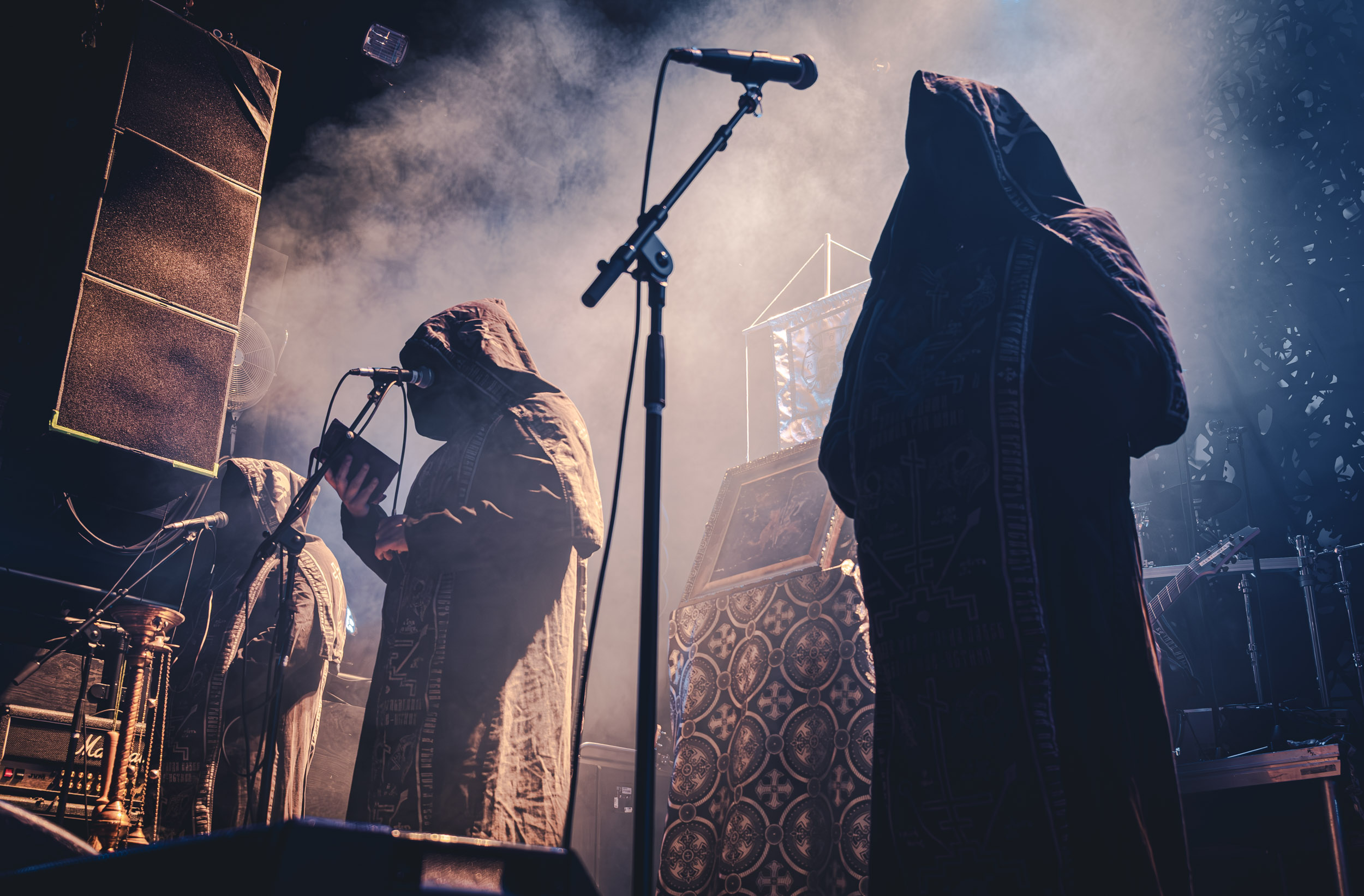 Batushka : Lorsque Batushka entre en scène, le Rockefeller devient le théâtre d’une véritable cérémonie occulte. Encens, icônes religieuses et chants liturgiques plongent immédiatement la salle dans une ambiance quasi rituelle. Musicalement, le groupe joue sur une alternance entre passages atmosphériques et explosions black metal, créant ainsi une tension permanente. L’aspect visuel, extrêmement travaillé, renforce l’immersion et confirme la singularité de la formation sur scène. [Oli]