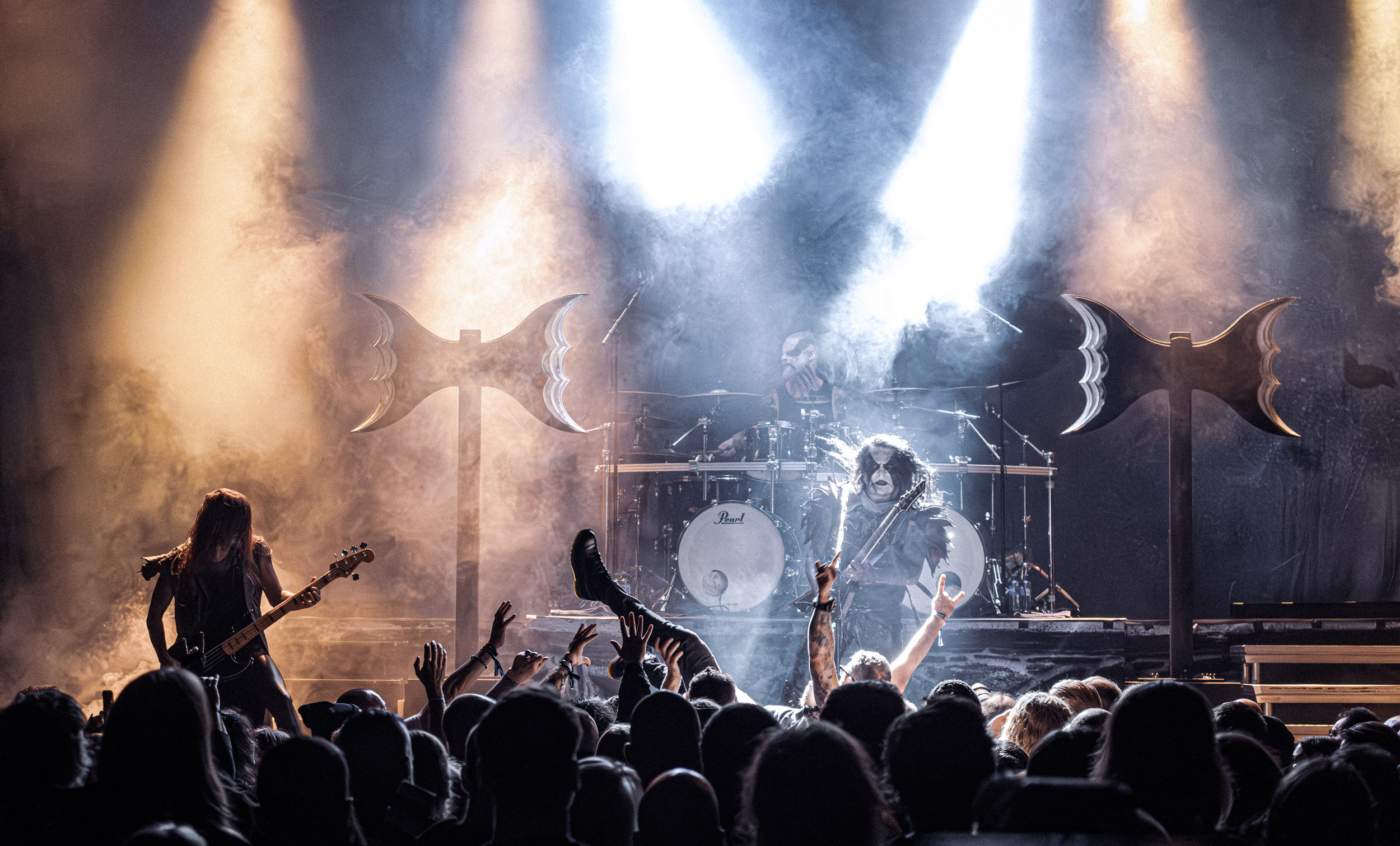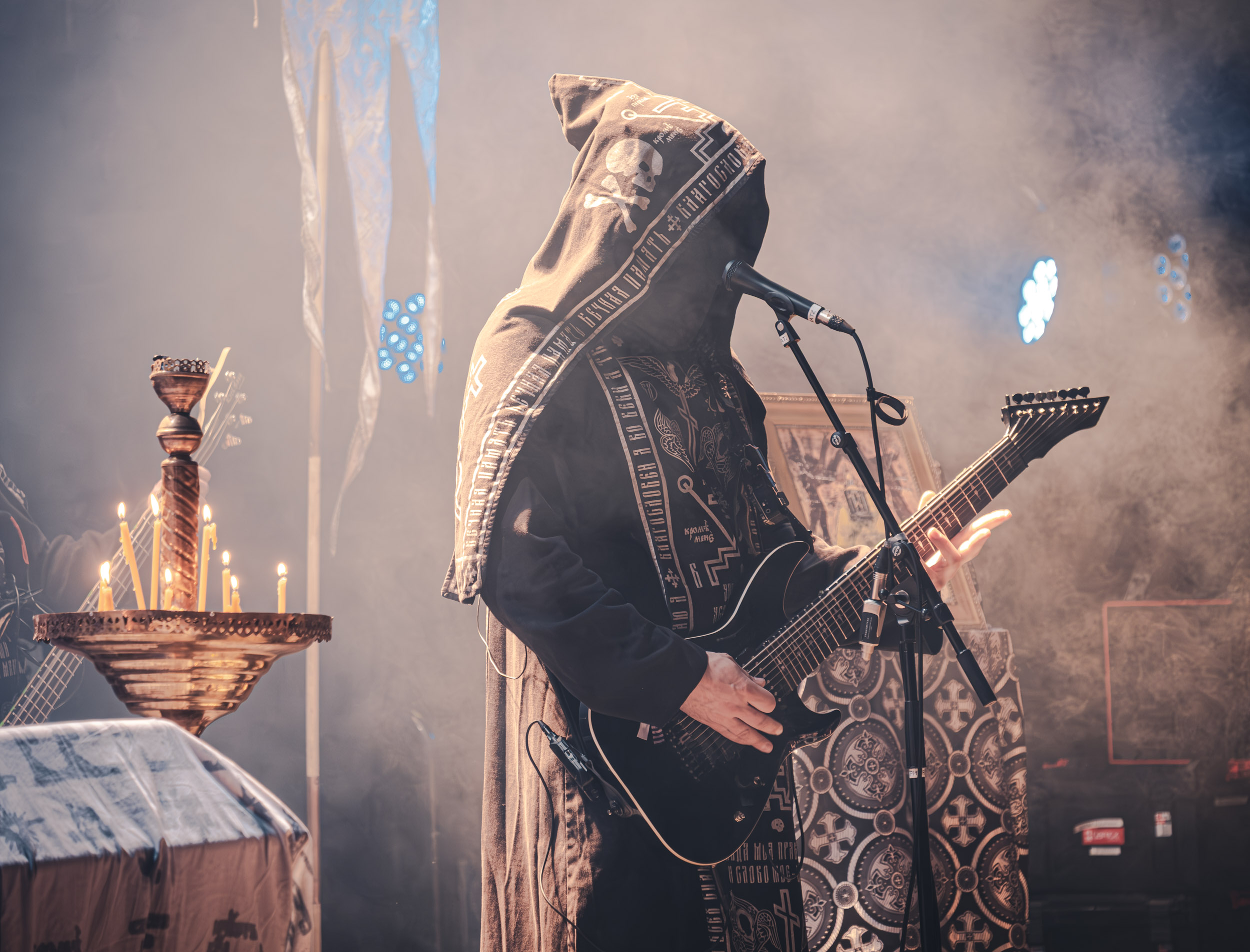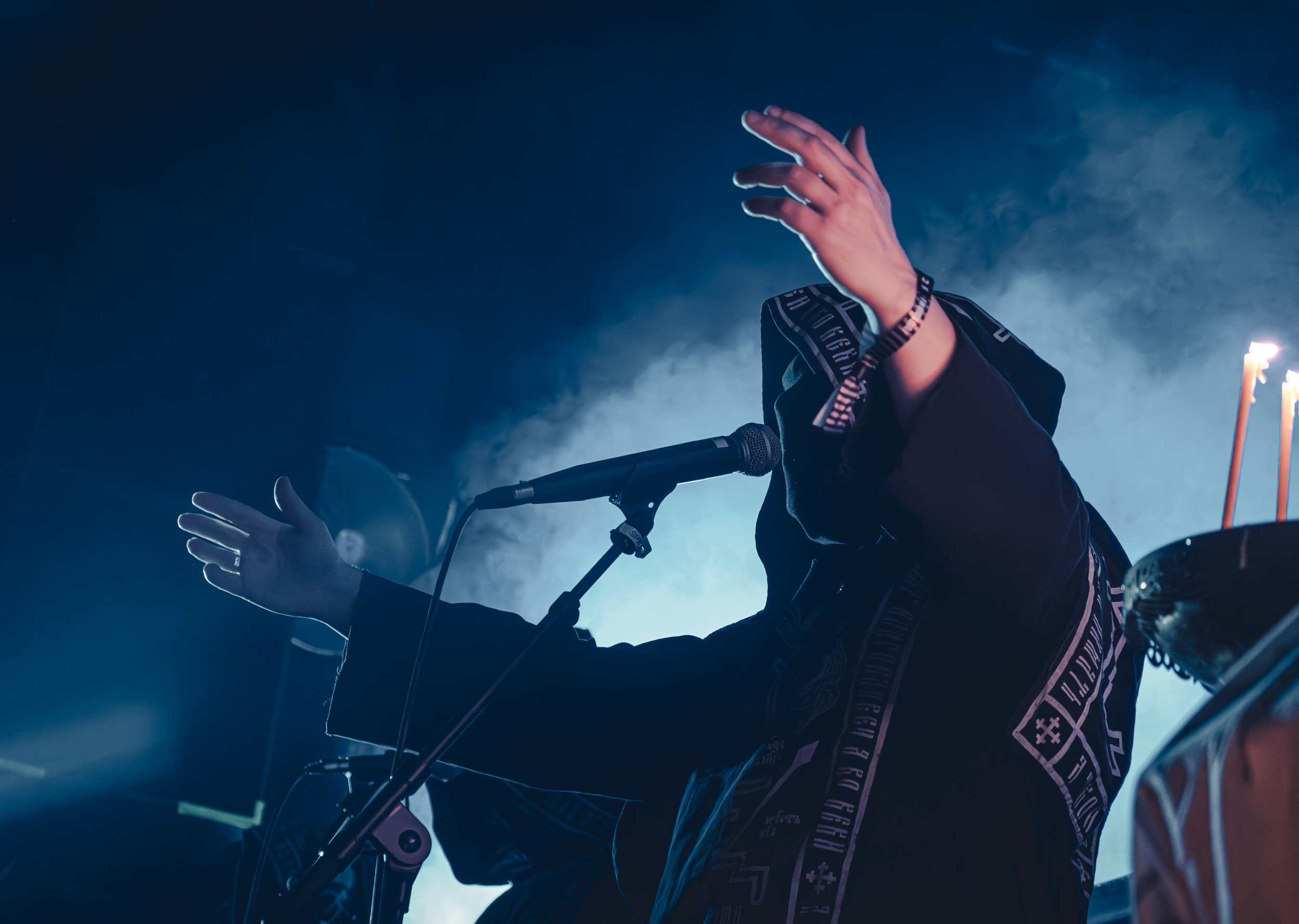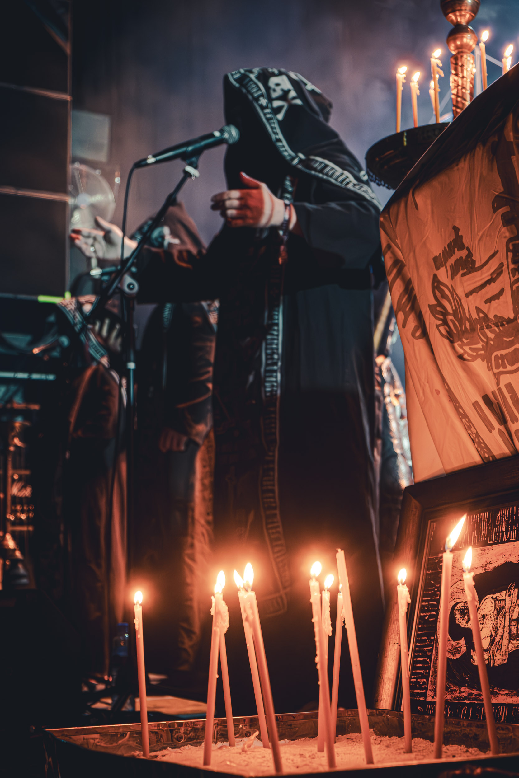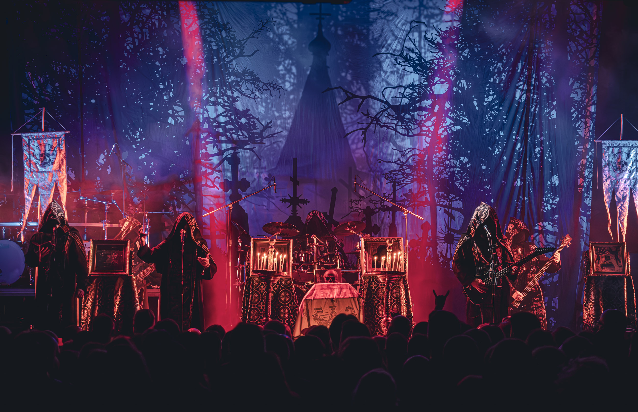 Batushka : Lorsque Batushka entre en scène, le Rockefeller devient le théâtre d’une véritable cérémonie occulte. Encens, icônes religieuses et chants liturgiques plongent immédiatement la salle dans une ambiance quasi rituelle. Musicalement, le groupe joue sur une alternance entre passages atmosphériques et explosions black metal, créant ainsi une tension permanente. L’aspect visuel, extrêmement travaillé, renforce l’immersion et confirme la singularité de la formation sur scène. [Oli]