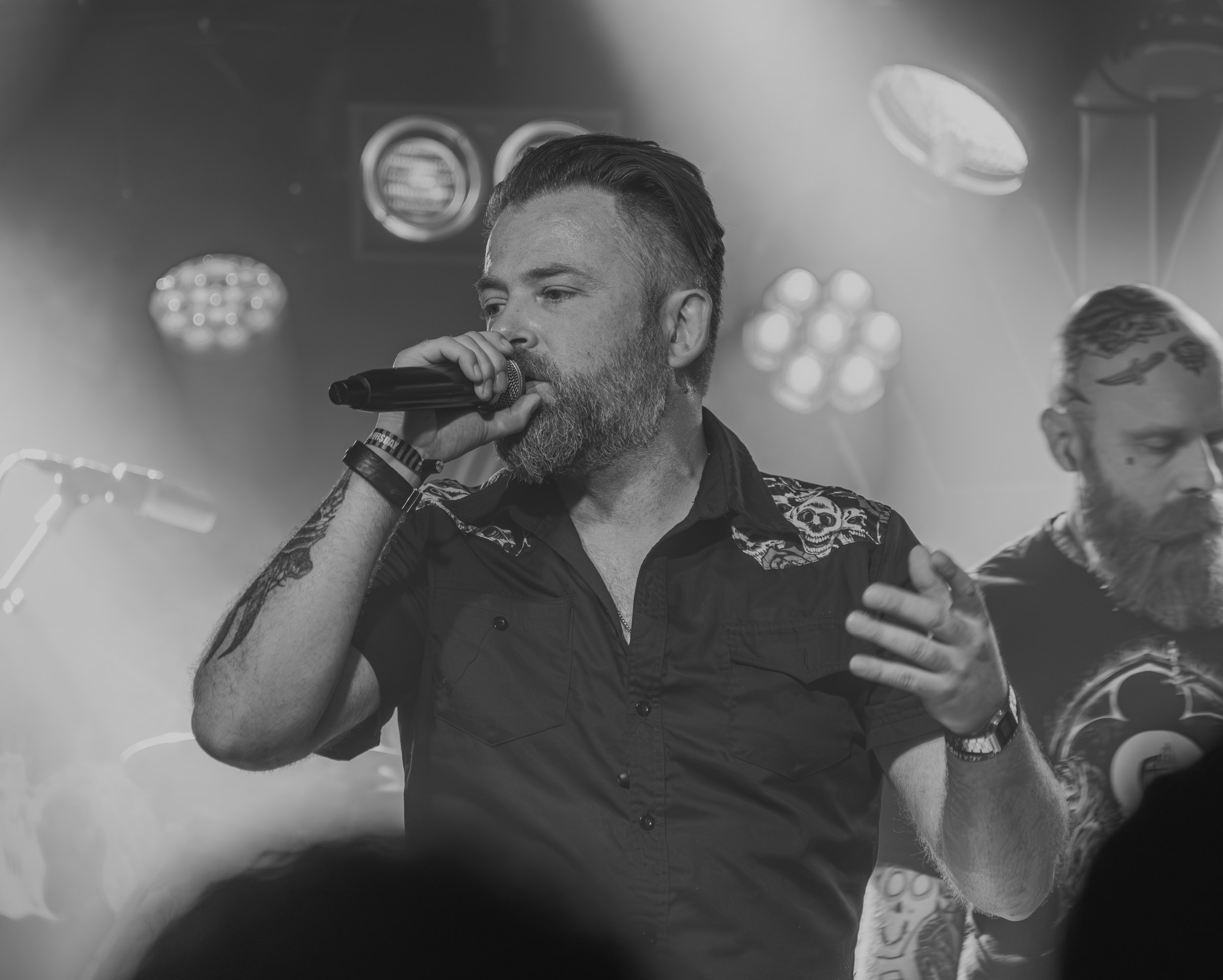 In the Woods… : Après le temps du recueillement sur fond de black metal liturgique sur Rockefeller, vient sur John Dee celui de l’introspection sur fond du metal gothique et progressif d’In the Woods…. Comme pour les groupes ayant précédé, l’atmosphère reste mélancolique et poétique, cependant plus douce, avec une esthétique qui suit pour l’occasion, la scène étant bien plus éclairée qu’à l’ordinaire. Son nouvel opus, Otra, étant sorti une semaine plus tôt, le groupe nous fait profiter de quelques extraits que sont A Misrepresentation of I, The Crimson Crown au refrain en montagnes russes entre chant clair et saturé, et The Things You Shouldn’t Know, personnellement mon favori. Bernt Fjellestad, frontman d’In the Woods… depuis 2022, possède un timbre un peu nasal pas toujours évident à apprivoiser, mais avec lequel son interprétation d’Empty Streets parvient à me réconcilier. Dans son ensemble, la setlist se concentre sur les trois derniers albums, hormis une ou deux incursions dans la période 90’s. Dans tous les cas, la complicité et la sympathie que les membres du groupe partagent entre eux et avec nous autres spectateurs amènent une chaleur humaine plus que plaisante, à l’inverse de la présence bien plus distante des groupes ayant précédé, qui suffit à faire pardonner un rythme un peu trop constant ainsi qu’un black metal finalement assez peu présent dans une prestation davantage axée sur le pendant goth/prog. Plus regrettable, en revanche, que la faible affluence dans la salle, attribuable à la présence d’Abbath en tête d’affiche juste après, pour lequel une grosse partie des festivaliers a pris de l’avance… [Ségolène]