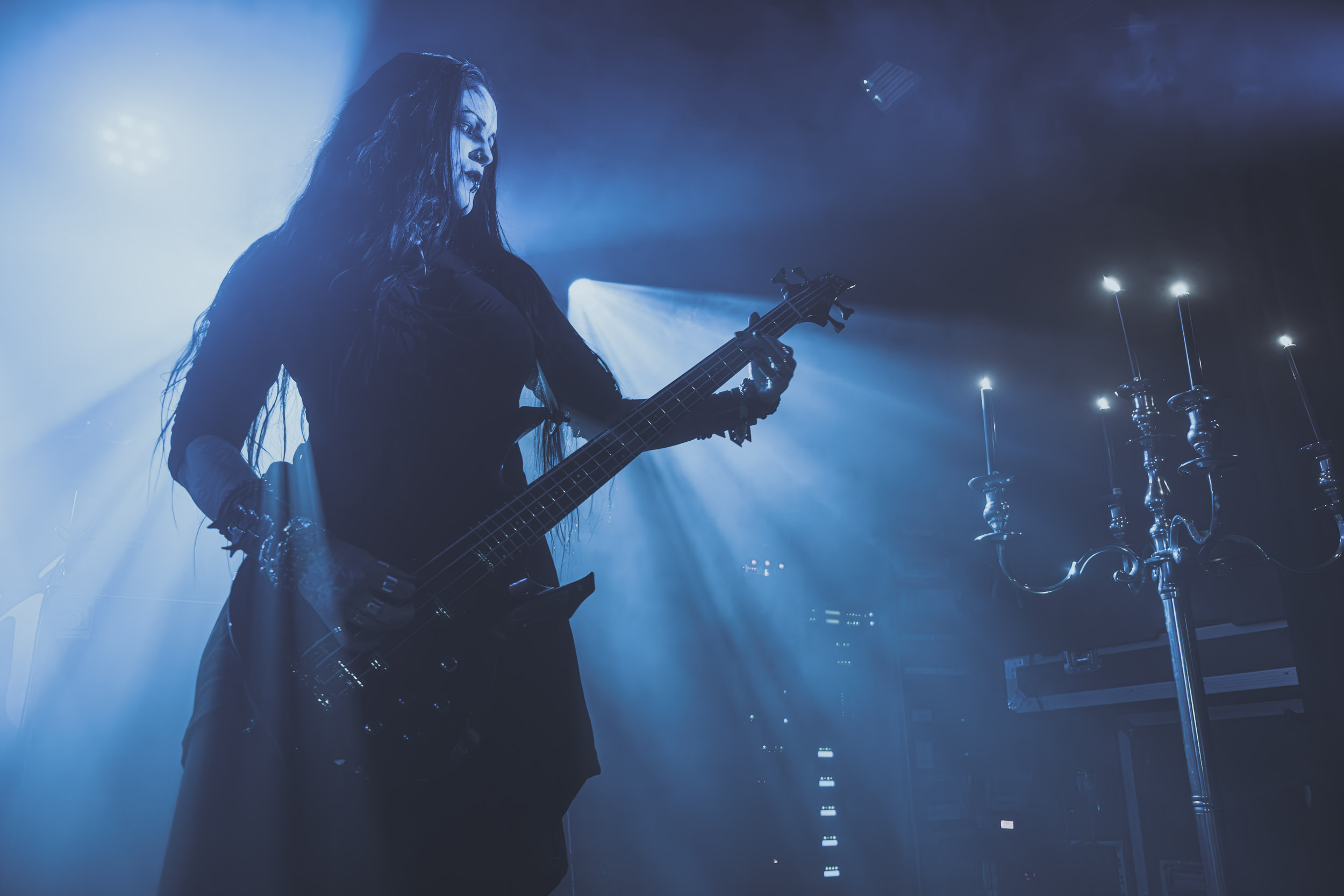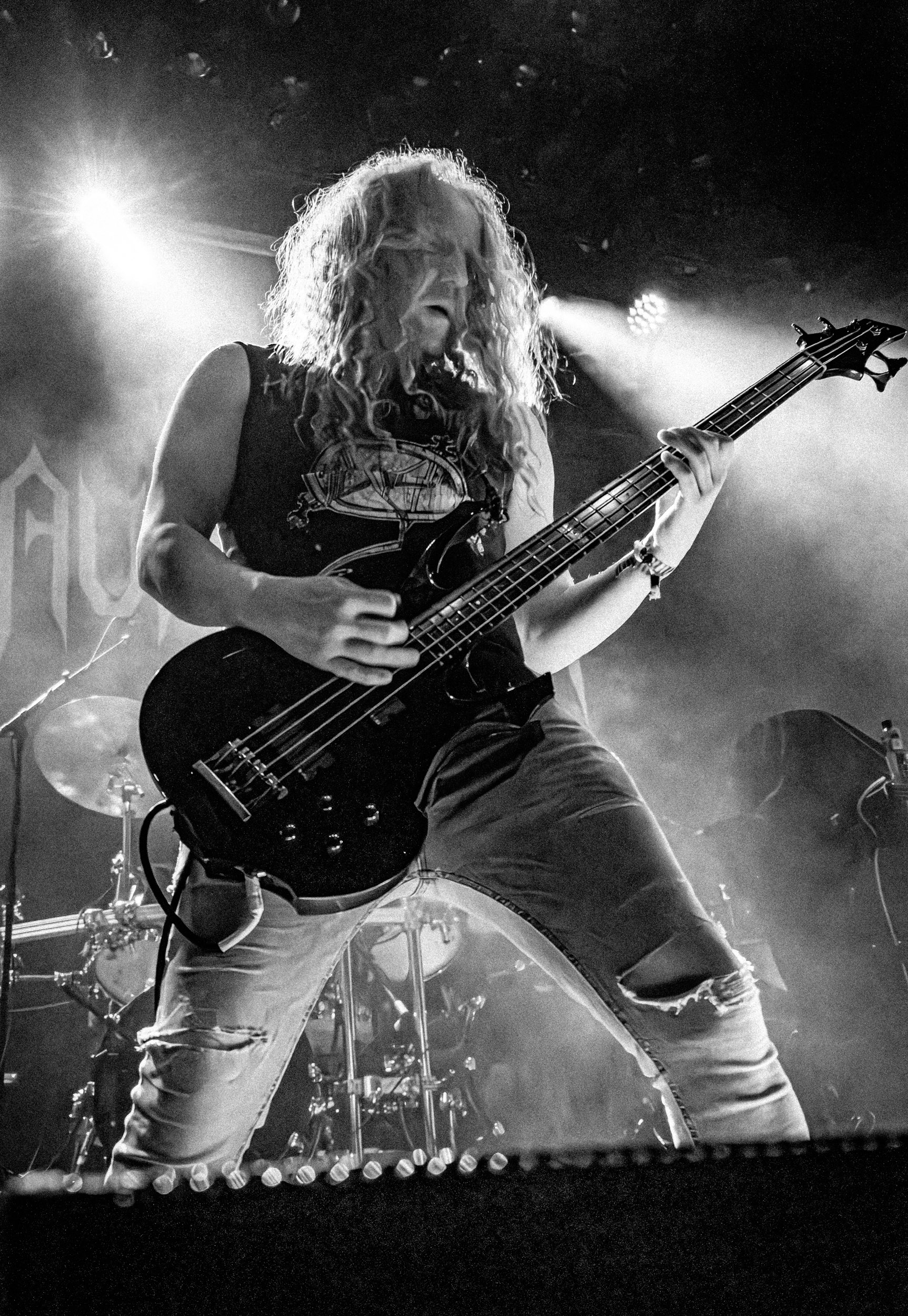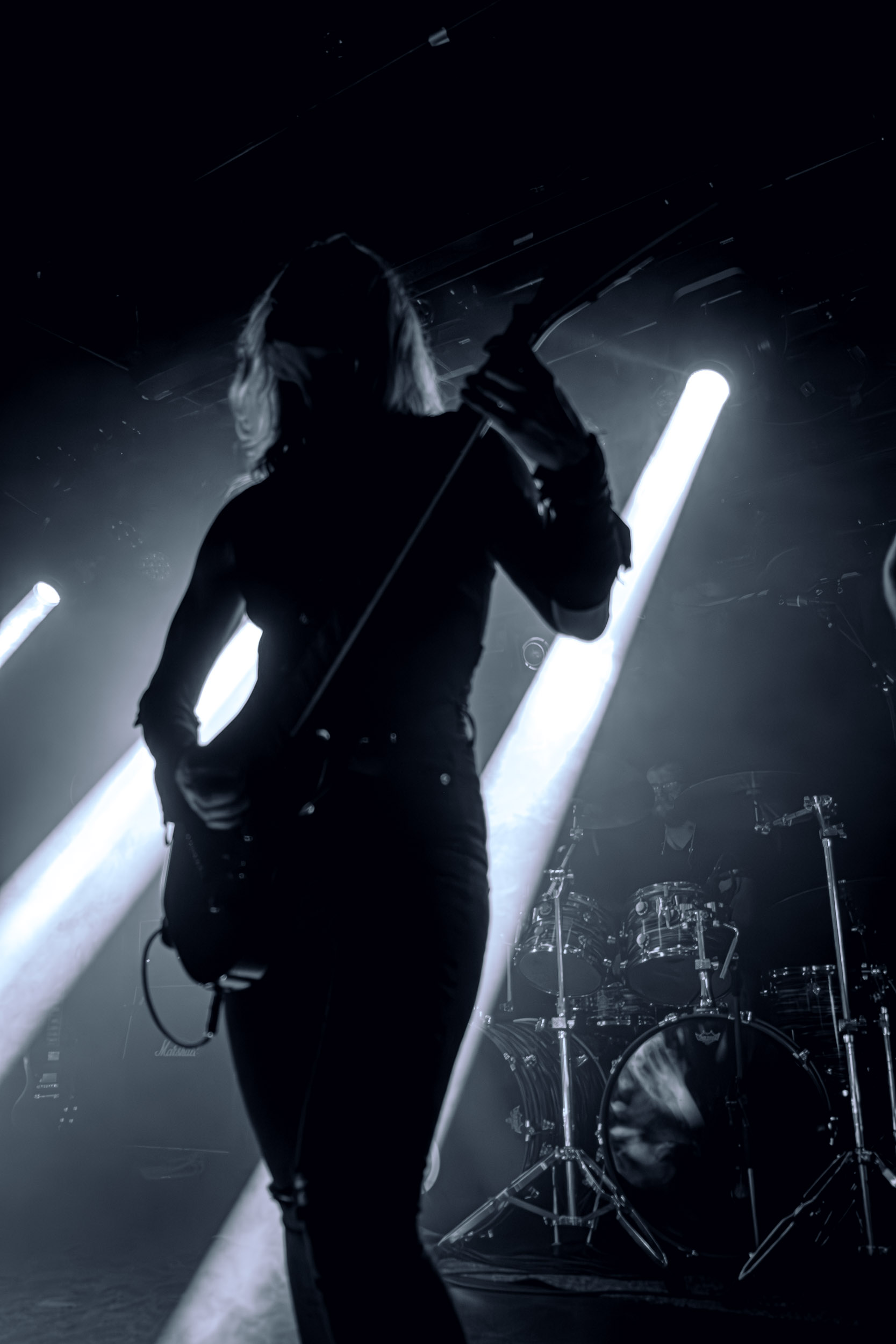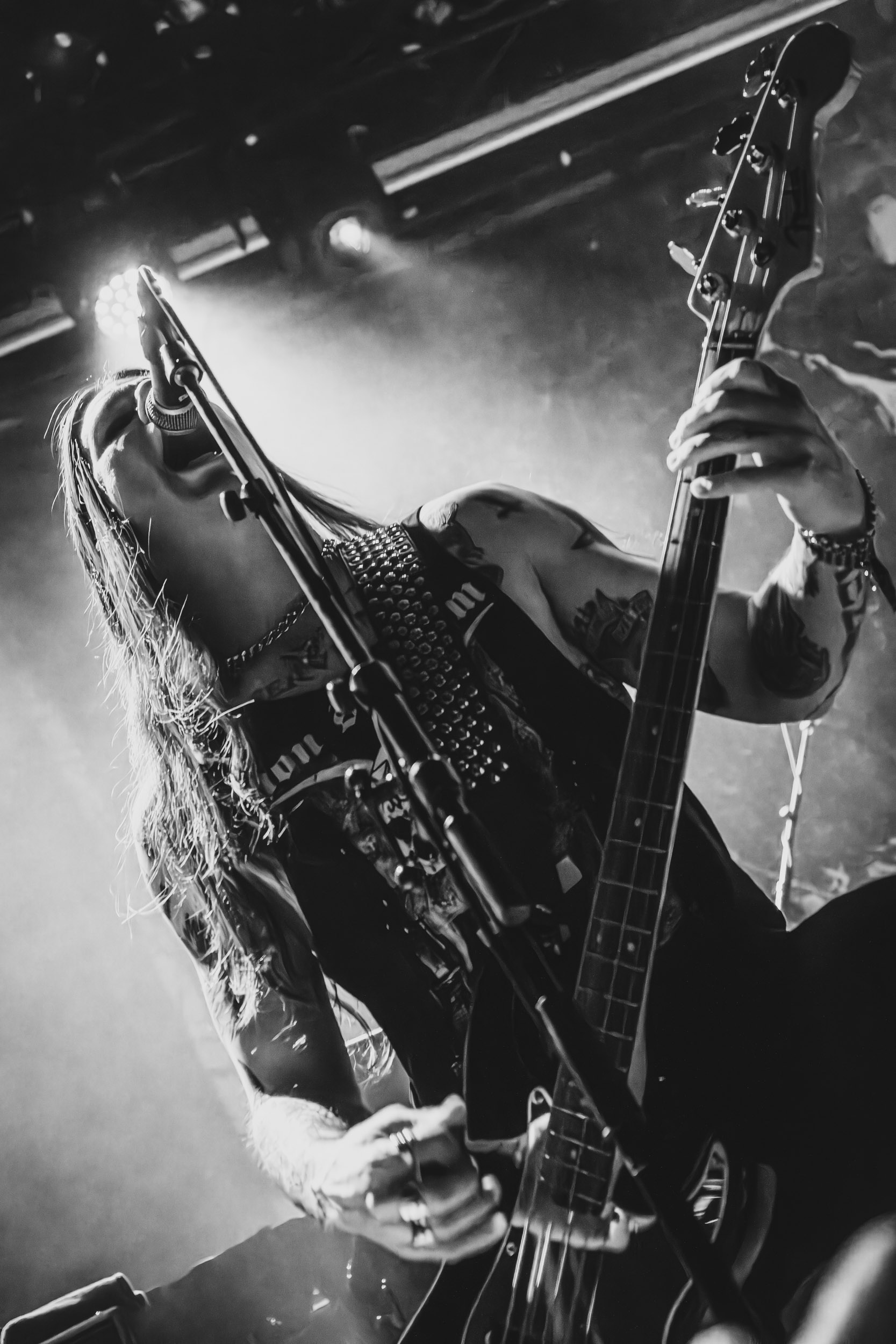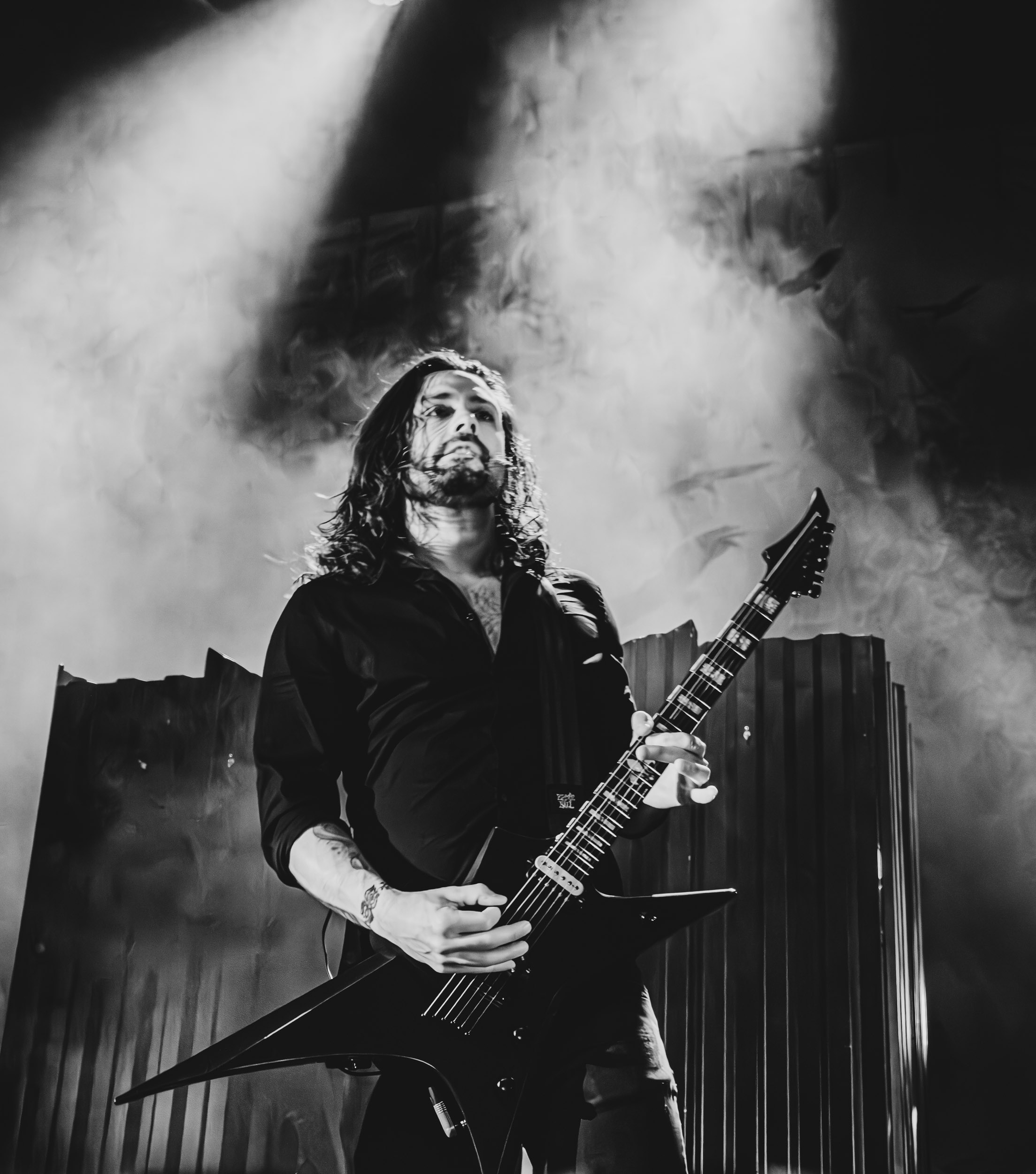 Satyricon : Deuxième représentant de la Unholy Trinity et non des moindres, c’est face à un public au taquet que Satyricon fait son entrée sur la scène Rockefeller. Now, Diabolical, classique parmi les classiques, accompagne mon passage dans le pit photo ; Our World, It Rumbles Tonight et Black Crow on a Tombstone, mon tour d’horizon des différents « spots photographiques » de la salle. Après cette entrée en matière, Satyr prend la parole pour raconter, en norvégien puis en anglais, ses souvenirs de jeunesse liés à cette salle, Rockefeller, où il a assisté à des concerts de Slayer et de Judas Priest, qu’il qualifie de « temple du heavy metal du pays ». Les termes ne pouvaient être mieux choisis, tant l’endroit est imprégné du genre et de son histoire… Le voyage dans le passé reprend par la suite, groupe et public côte à côte, dont la première étape nous mène en 2017 avec le morceau donnant son titre à l’album Deep Calleth Upon Deep. Les trois titres suivants nous font le plaisir d’un retour dans les années 90 et aux premiers albums du groupe ; d’abord à Dark Medieval Times (1993) avec Walk the Path of Sorrow, puis à Nemesis Divina (1996) et Shadowthrone (1994) avec deux titres dans la langue maternelle des musiciens. Ces derniers, comme les membres de Rotting Christ quelques heures plus tôt, apparaissent sobres dans leurs tenues noires et se donnent à fond dans leur performance. Satyr, de son côté, profite d’un intermède entre deux titres pour dégainer la veste à écussons — sa seule fantaisie vestimentaire — et la troisième guitare, qu’il garde toutes deux le temps de deux morceaux.