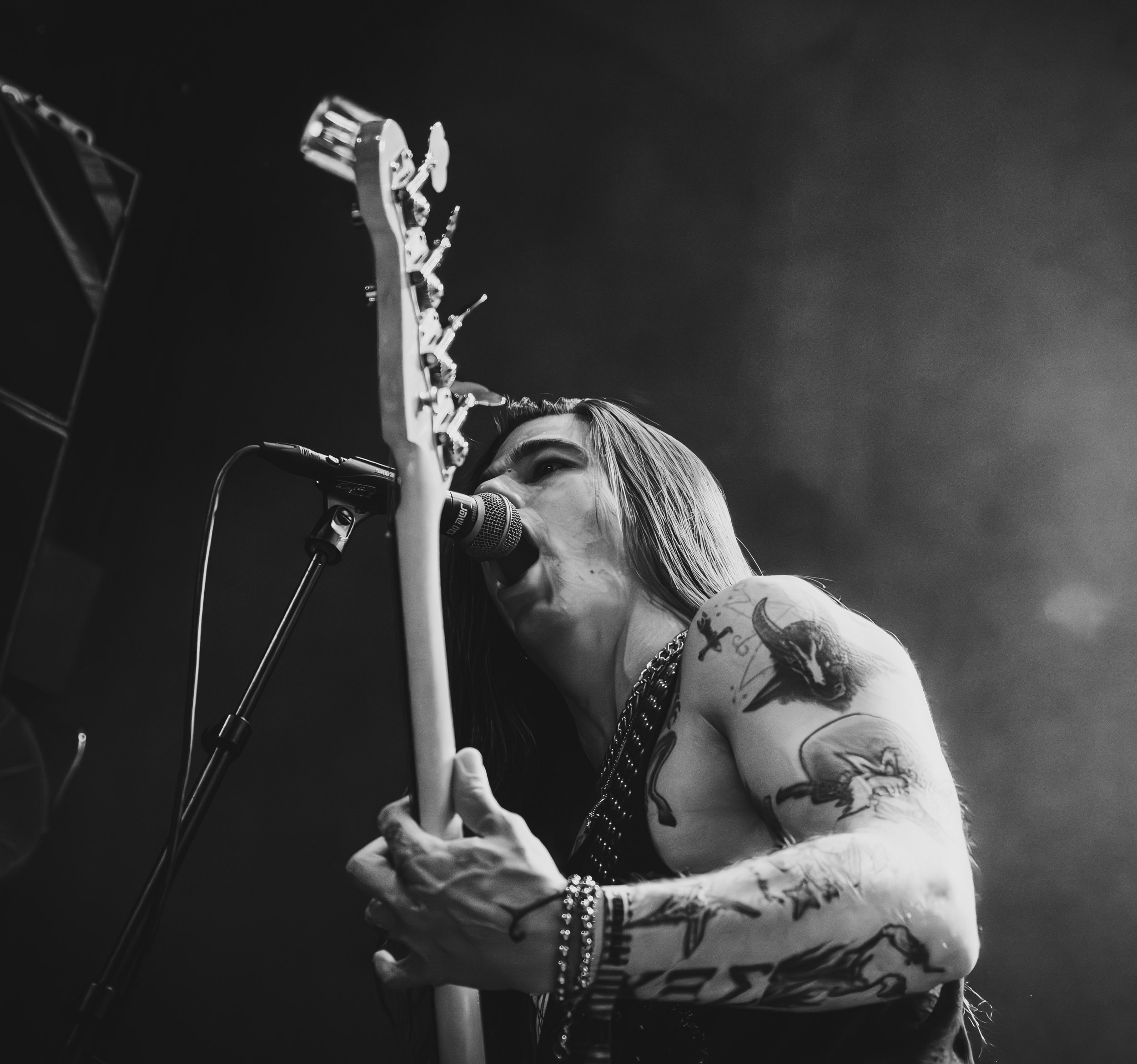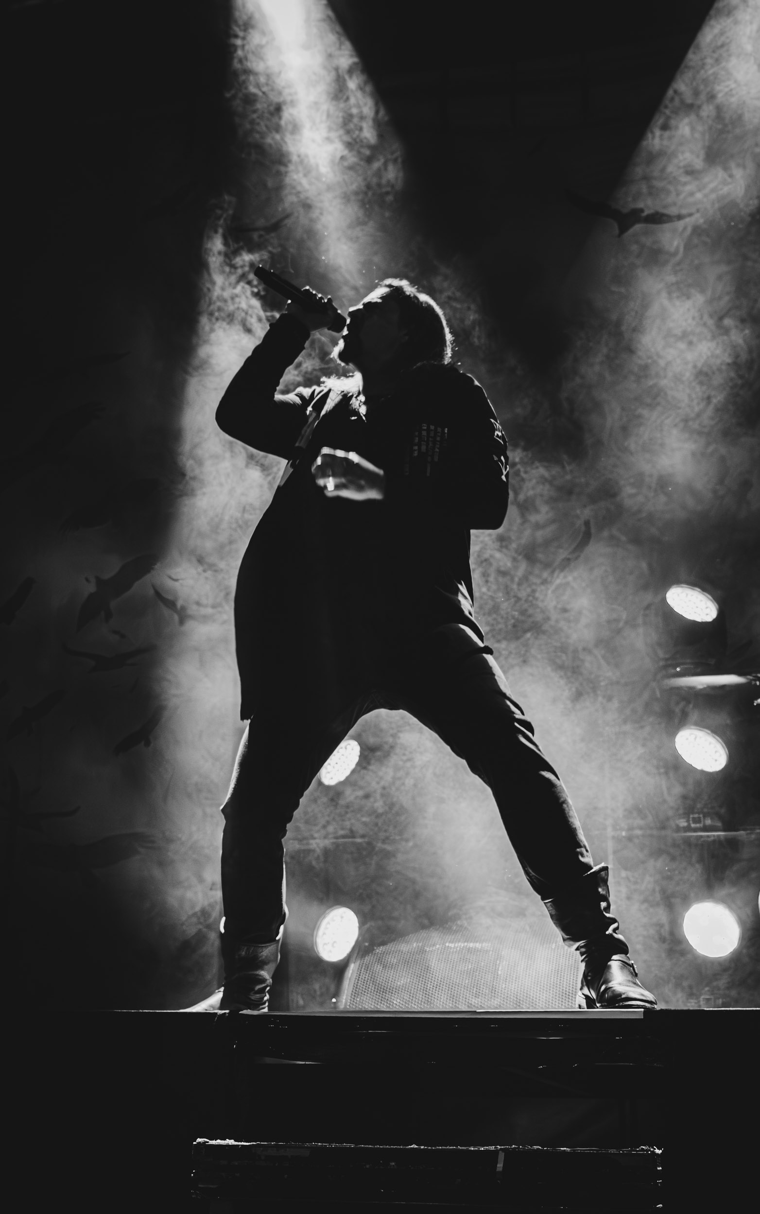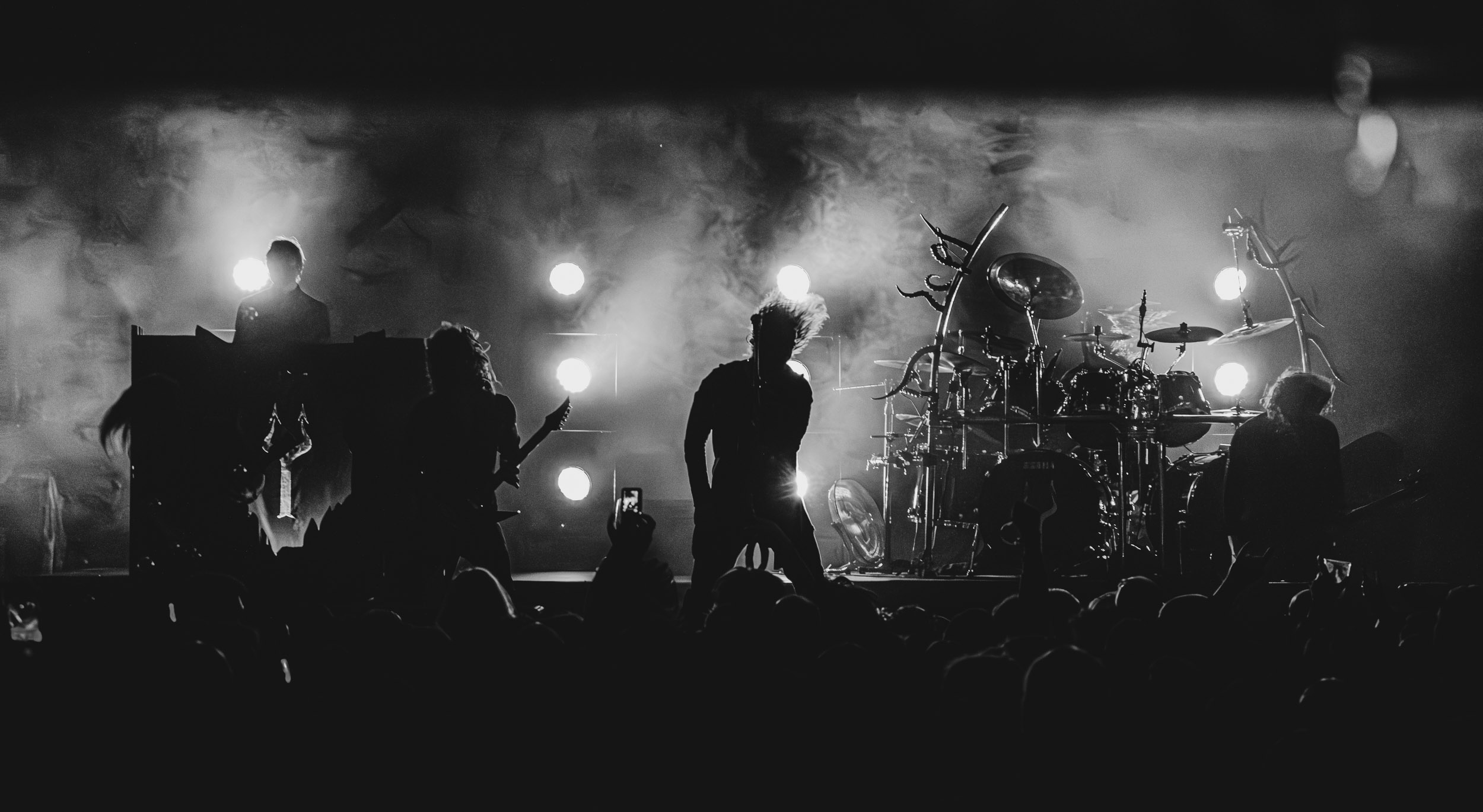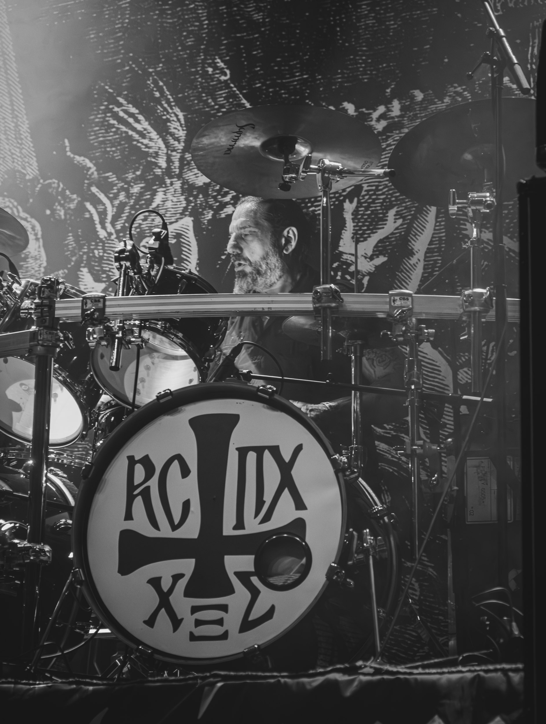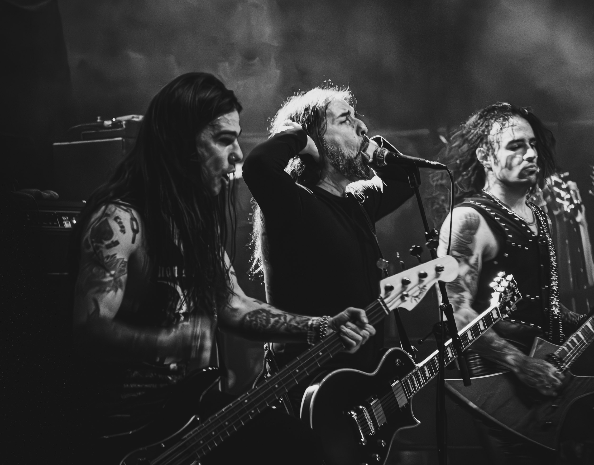 Satyricon : Deuxième représentant de la Unholy Trinity et non des moindres, c’est face à un public au taquet que Satyricon fait son entrée sur la scène Rockefeller. Now, Diabolical, classique parmi les classiques, accompagne mon passage dans le pit photo ; Our World, It Rumbles Tonight et Black Crow on a Tombstone, mon tour d’horizon des différents « spots photographiques » de la salle. Après cette entrée en matière, Satyr prend la parole pour raconter, en norvégien puis en anglais, ses souvenirs de jeunesse liés à cette salle, Rockefeller, où il a assisté à des concerts de Slayer et de Judas Priest, qu’il qualifie de « temple du heavy metal du pays ». Les termes ne pouvaient être mieux choisis, tant l’endroit est imprégné du genre et de son histoire… Le voyage dans le passé reprend par la suite, groupe et public côte à côte, dont la première étape nous mène en 2017 avec le morceau donnant son titre à l’album Deep Calleth Upon Deep. Les trois titres suivants nous font le plaisir d’un retour dans les années 90 et aux premiers albums du groupe ; d’abord à Dark Medieval Times (1993) avec Walk the Path of Sorrow, puis à Nemesis Divina (1996) et Shadowthrone (1994) avec deux titres dans la langue maternelle des musiciens. Ces derniers, comme les membres de Rotting Christ quelques heures plus tôt, apparaissent sobres dans leurs tenues noires et se donnent à fond dans leur performance. Satyr, de son côté, profite d’un intermède entre deux titres pour dégainer la veste à écussons — sa seule fantaisie vestimentaire — et la troisième guitare, qu’il garde toutes deux le temps de deux morceaux.