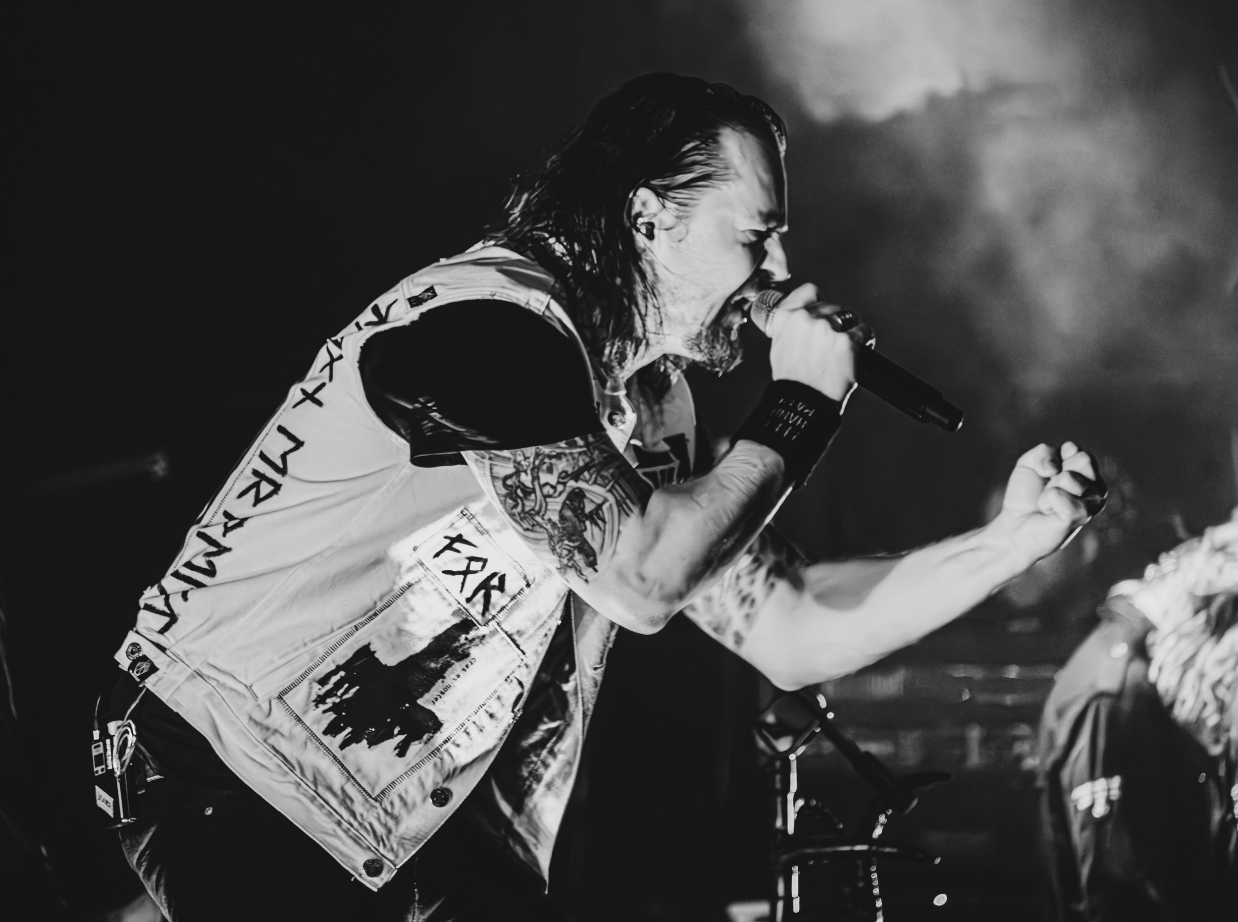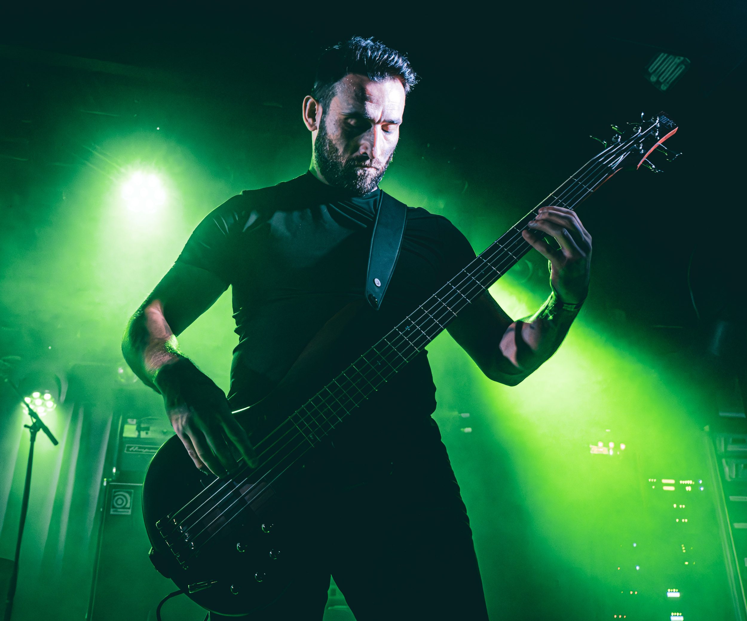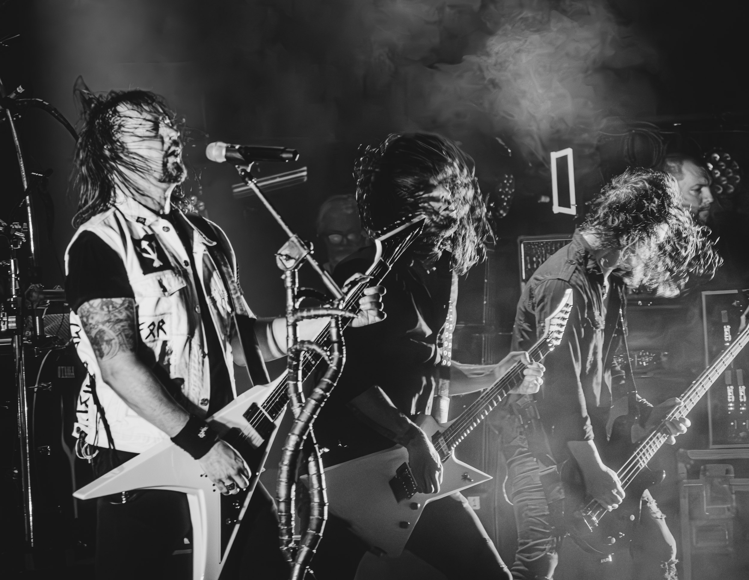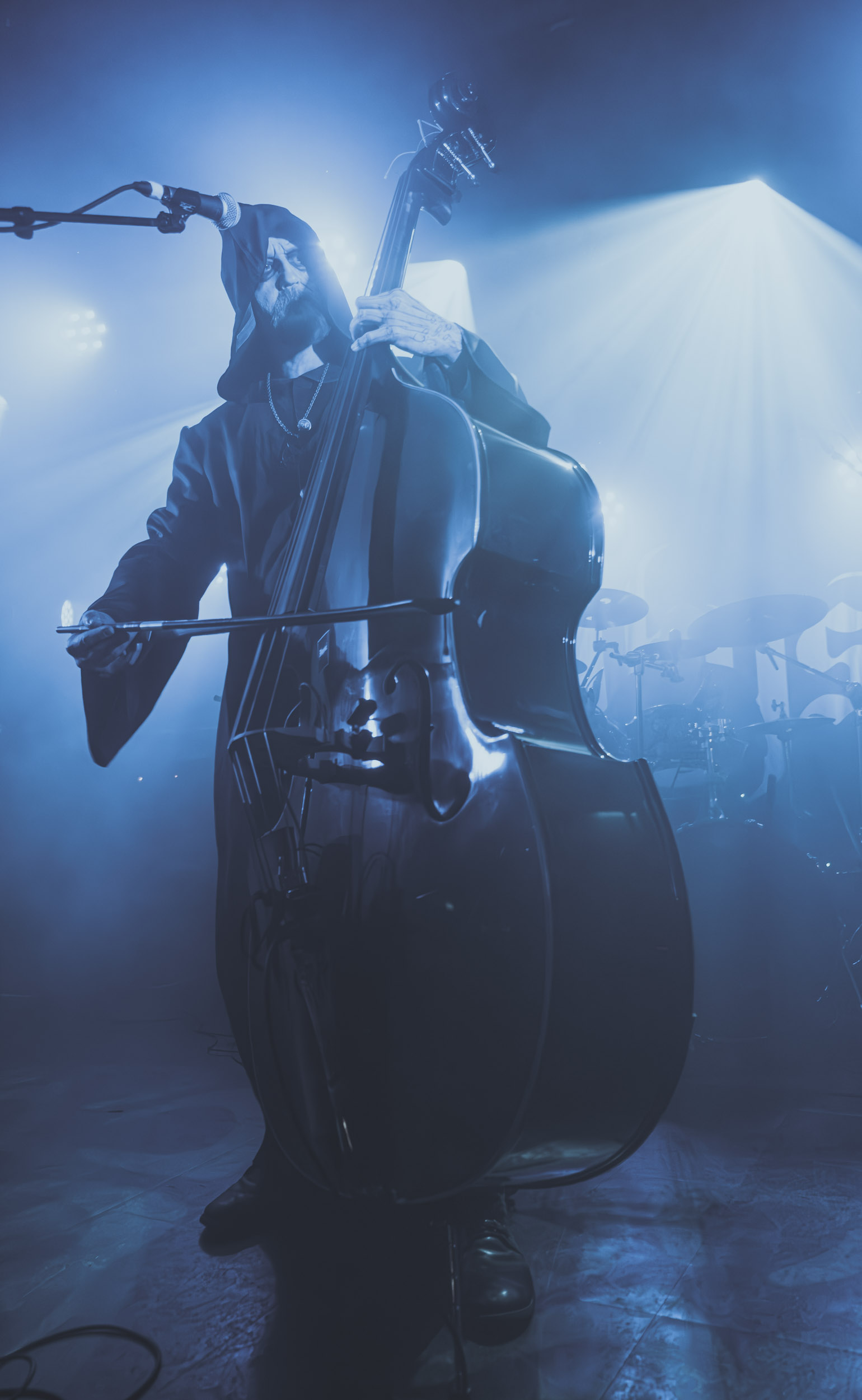 Simple et efficace également que la configuration « power trio » que prend Cadaver, son fondateur étant ce soir accompagné des deux gars sûrs que sont le contrebassiste Eilert Solstad et Bjørn Dugstad Rønnow, que nous avons vu sur cette même scène en 2024 à son poste de batteur de Borknagar. Du haut de ses 34 ans, il est le plus jeune des trois, ce qui lui vaut une petite taquinerie de la part d’Anders Odden comme quoi « « il a le même âge qu’Innominate », joué juste après. Tout au long du set, Neddo prend le temps d’échanger avec son public, tantôt avec humour (demandant en anglais combien de gens n’ont pas compris ce qu’il vient de dire juste avant en norvégien), tantôt avec sérieux, notamment lorsqu’il évoque le souvenir de Jan-Martin Jansen, décédé des suites d’un cancer ; un sujet qui le tient particulièrement à cœur, ayant lui-même survécu à cette maladie, comme il le rappelle l’émotion dans la voix. « Ça tombe bien, le prochain morceau parle de buter le cancer ! » ; il s’agit de Mr Tumor’s Misery. Enfin, le dernier titre, et le groupe avec, encourage les gens à « don’t give a fuck », ou D.G.A.F pour les non-initiés, extrait de l’EP du même titre ! Au final, à l’image du Black Metal Tour Bus, Anders Odden et Cadaver renvoient l’image d’un groupe et de musiciens accessibles avec qui l’on passe de bons moments, sur scène comme en dehors et, pour cela, je les salue bien bas. [Ségolène]