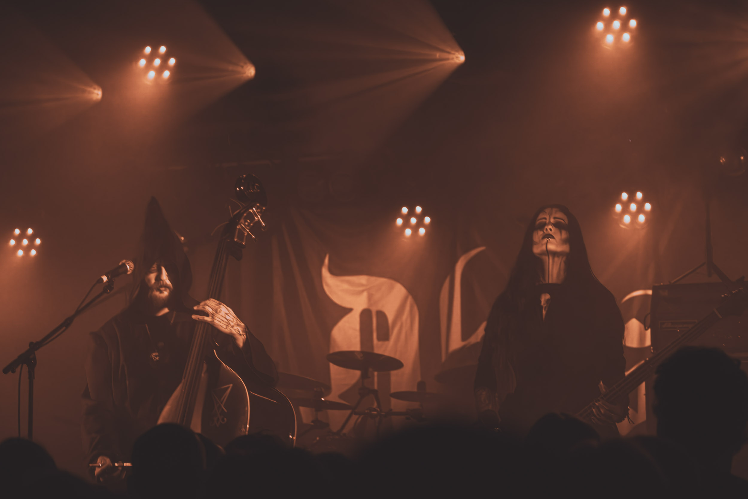 L’aspect visuel revêt aussi une grande importance chez Abyssic. Outre la fameuse contrebasse, des bougies ornent la scène. Même si cet élément est un classique du genre, il produit toujours son petit effet. Les musiciens sont vêtus de toges de moines et arborent des corpse paints — en deux mots, côté visuel, comme on dit, ça en jette. Musicalement, nous avons affaire à un death/doom écrasant — dans le bon sens du terme —, agrémenté de passages au piano et d’accélérations bienvenues. Très intéressant. [Oli]