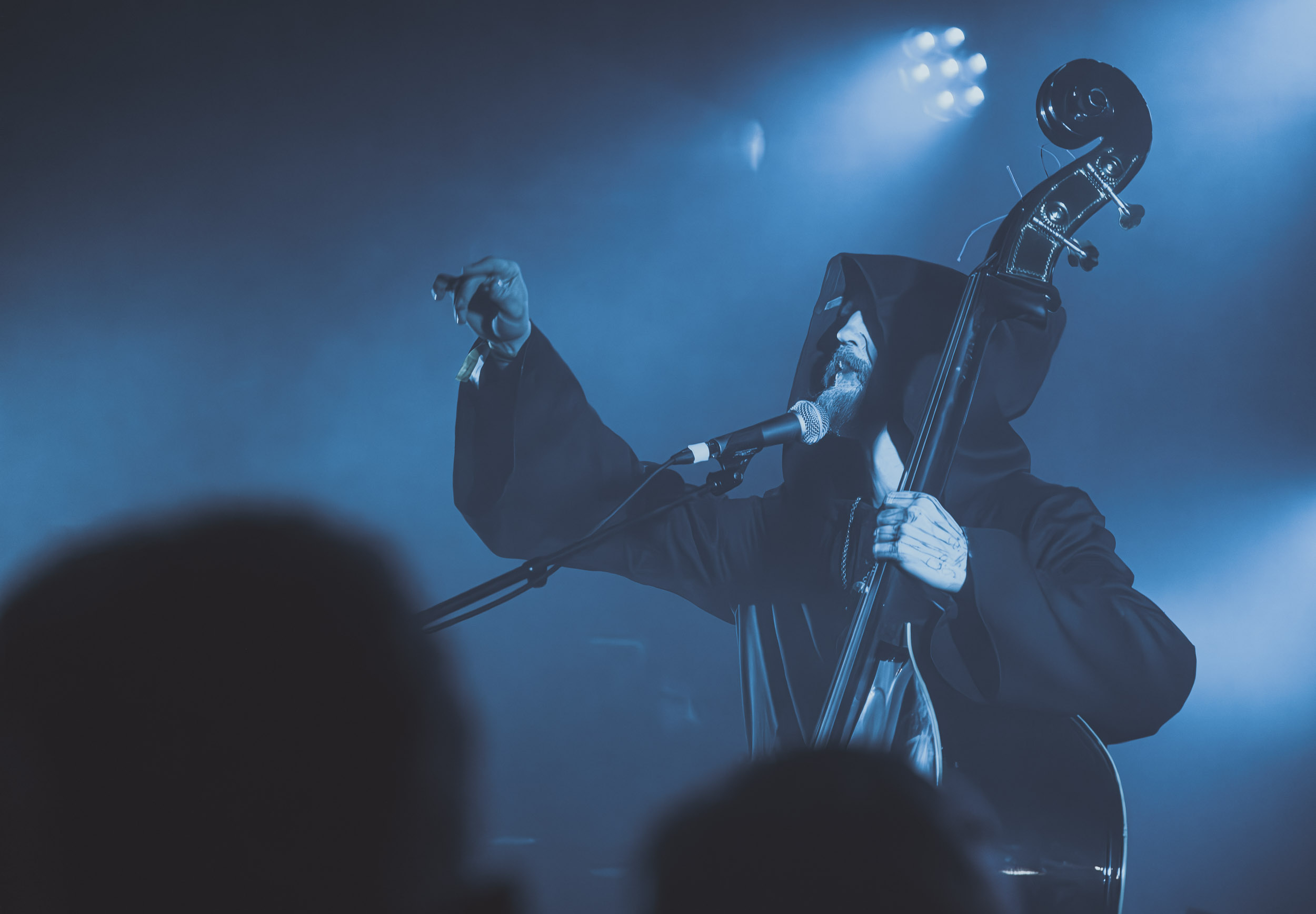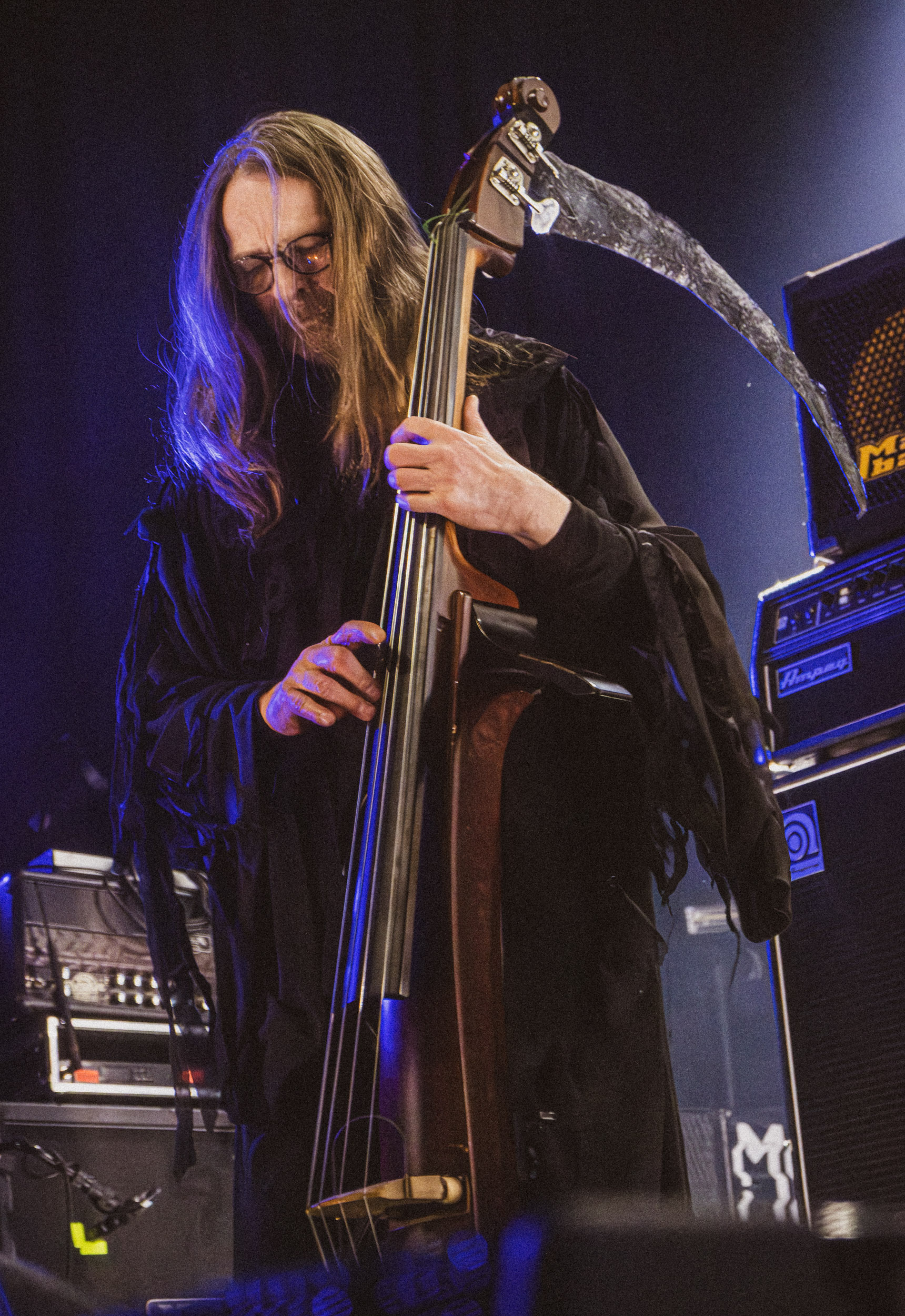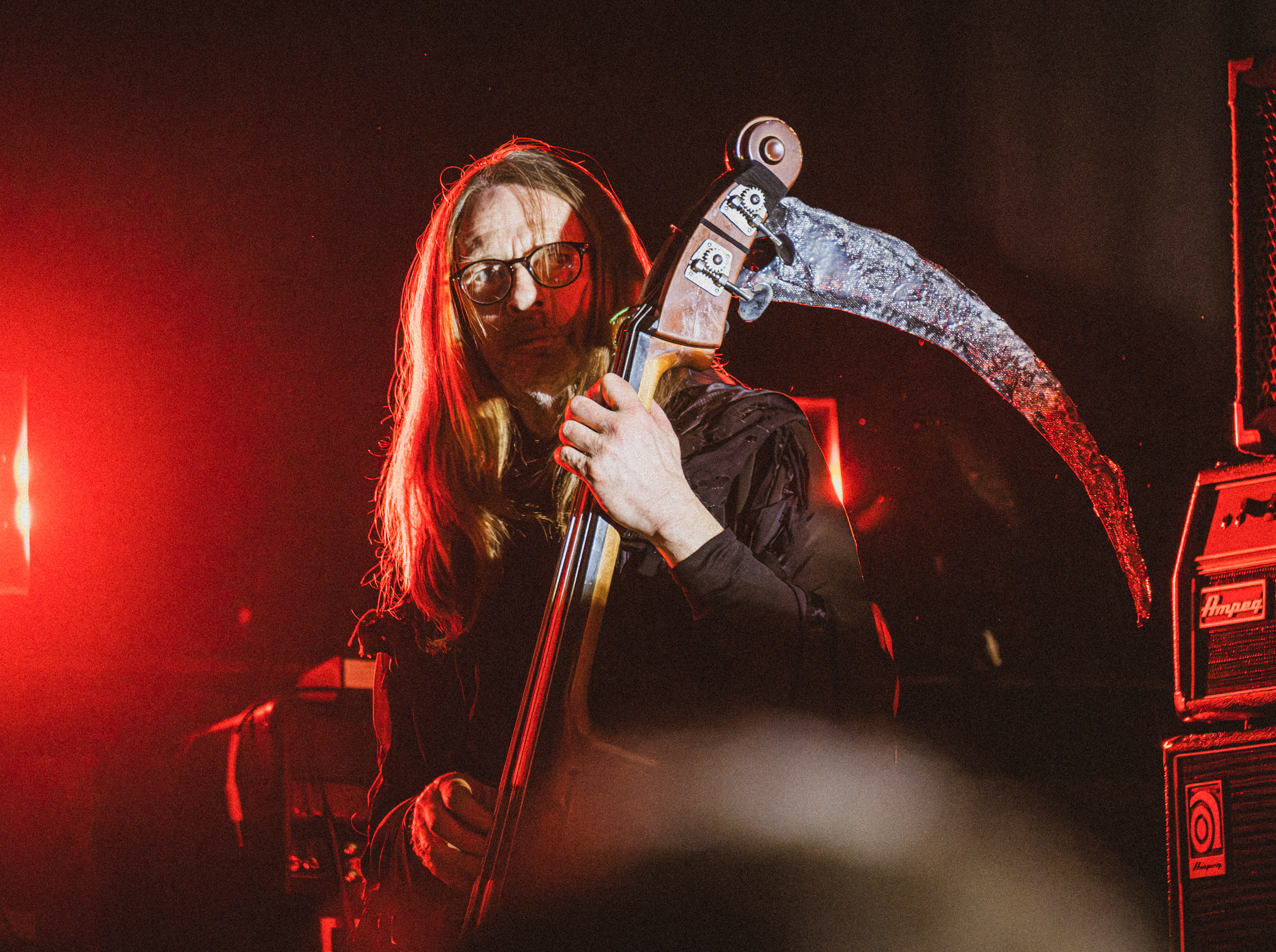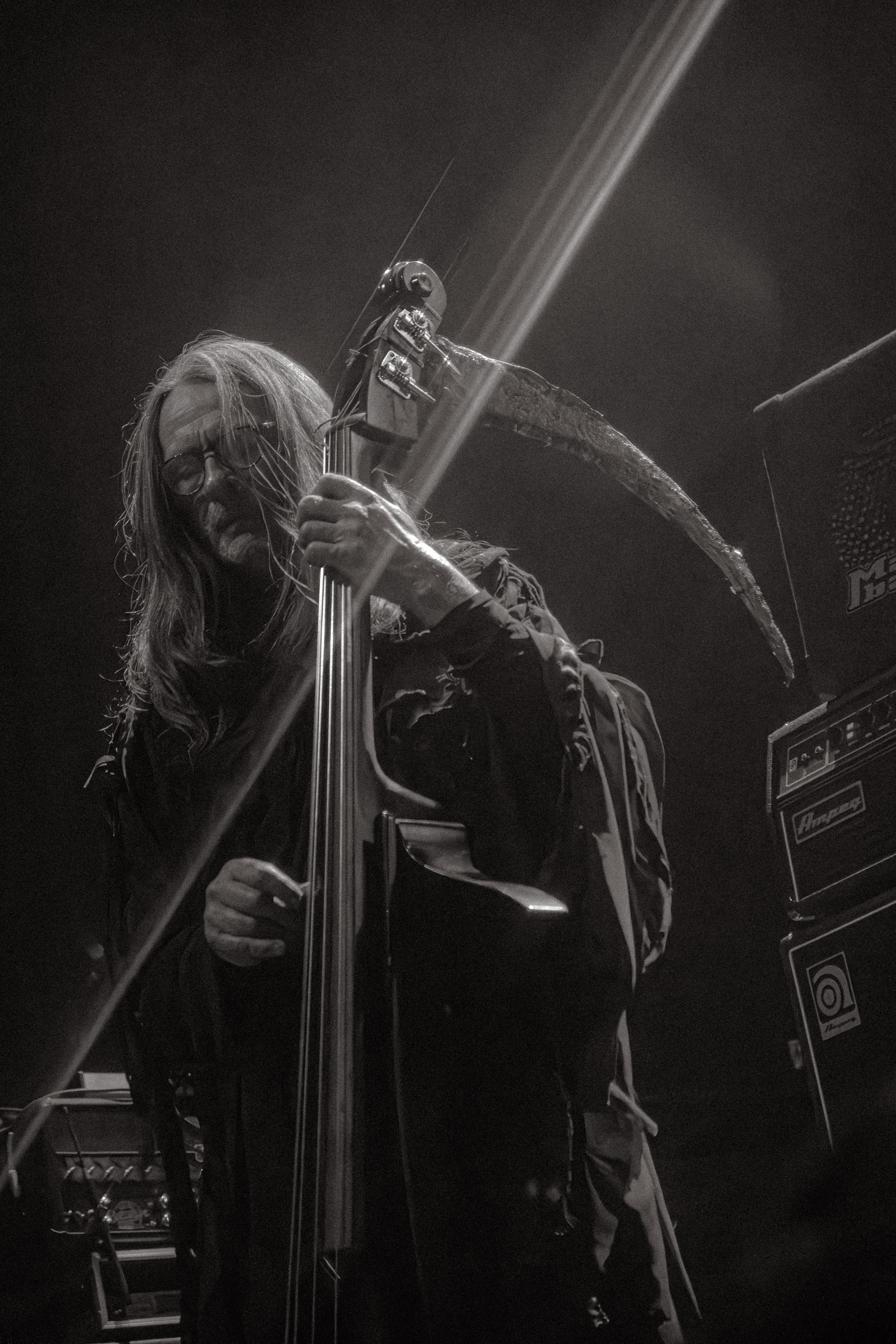 Abyssic : Groupe norvégien de death/doom metal atmosphérique, Abyssic présente la particularité de compter la contrebasse parmi les instruments qu’il utilise. Ledit instrument trône au milieu de la scène et est utilisé par Memnoch (chant) lorsque les compositions le réclament. S’agit-il d’un gadget ou son utilisation est-elle pleinement justifiée, voici un débat dans lequel nous ne nous lancerons pas.
