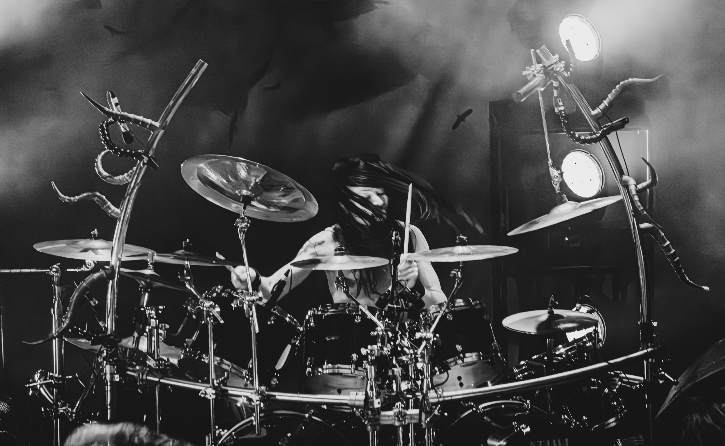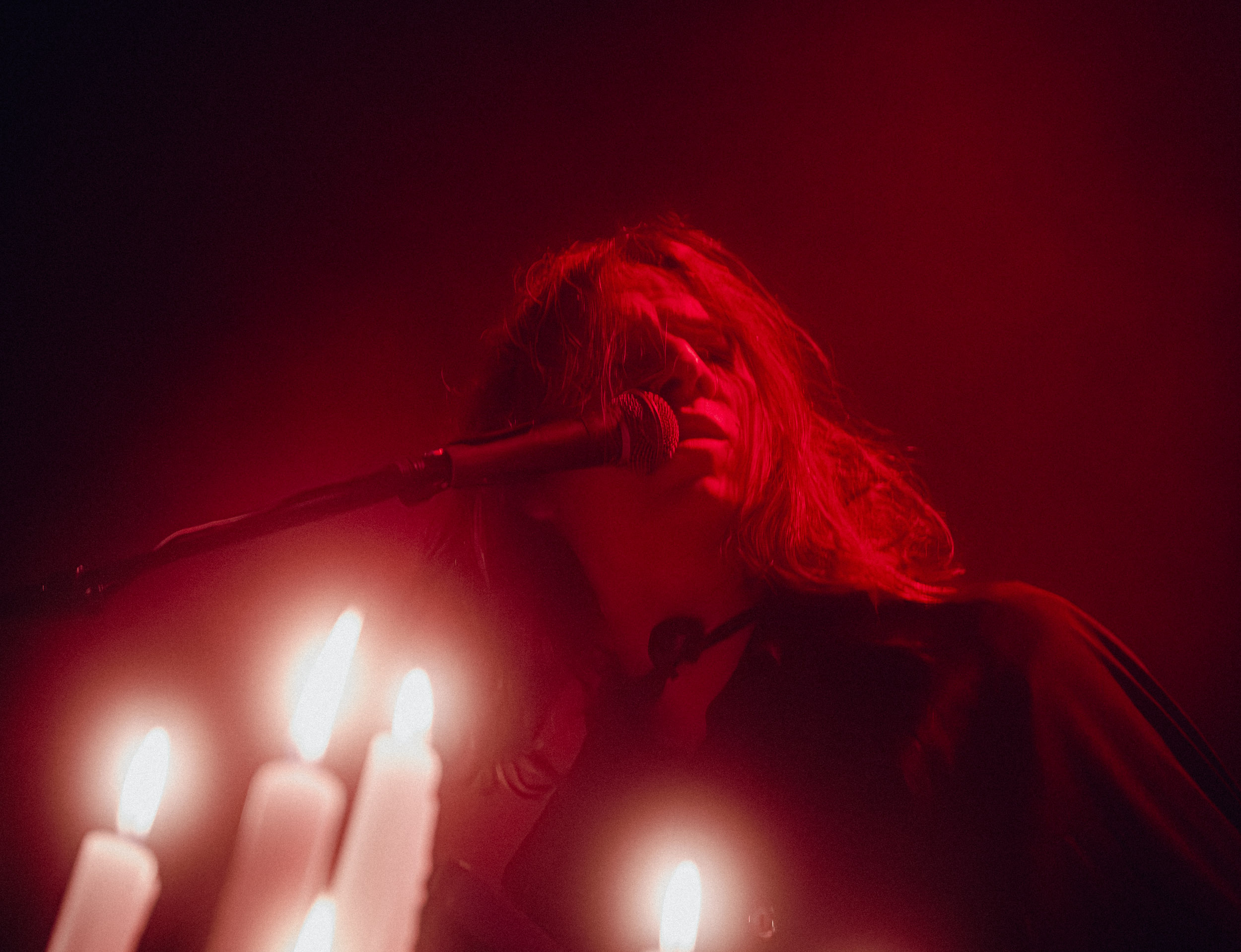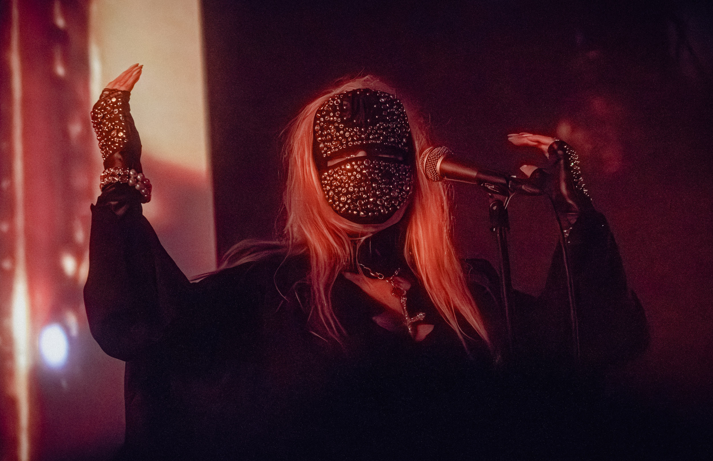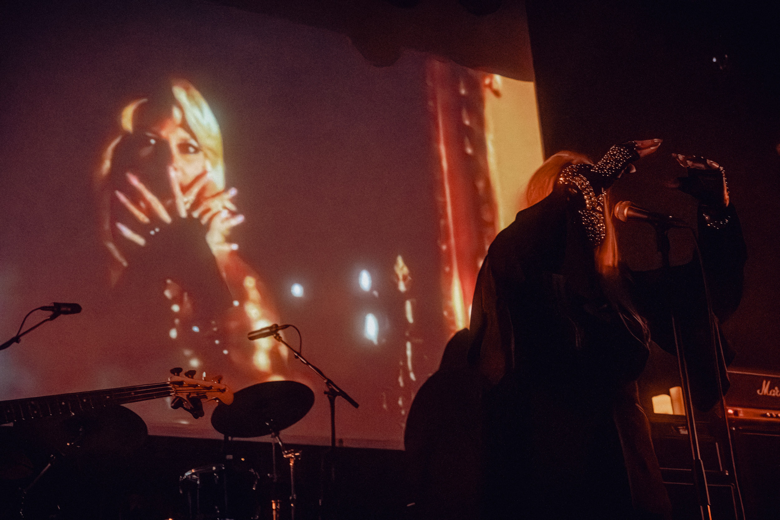 Au centre de la scène, Jinx Dawson s’impose immédiatement comme la grande prêtresse du sabbat. Drapée dans une tenue sombre, elle dirige la cérémonie avec un mélange de théâtralité et de charme vintage. Sa voix, étonnamment puissante, traverse sans difficulté le mur d’amplis et donne une dimension presque cérémonielle aux morceaux.