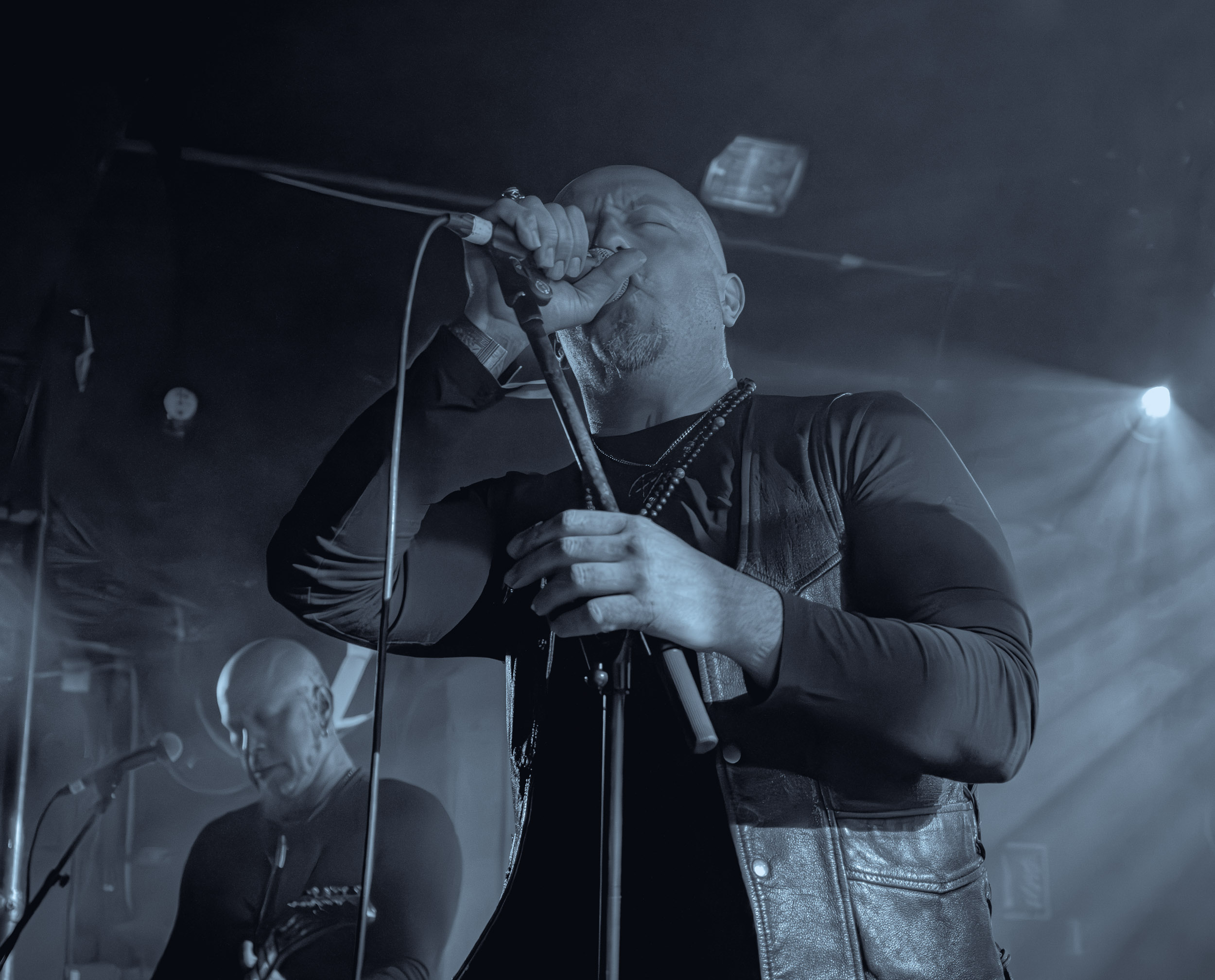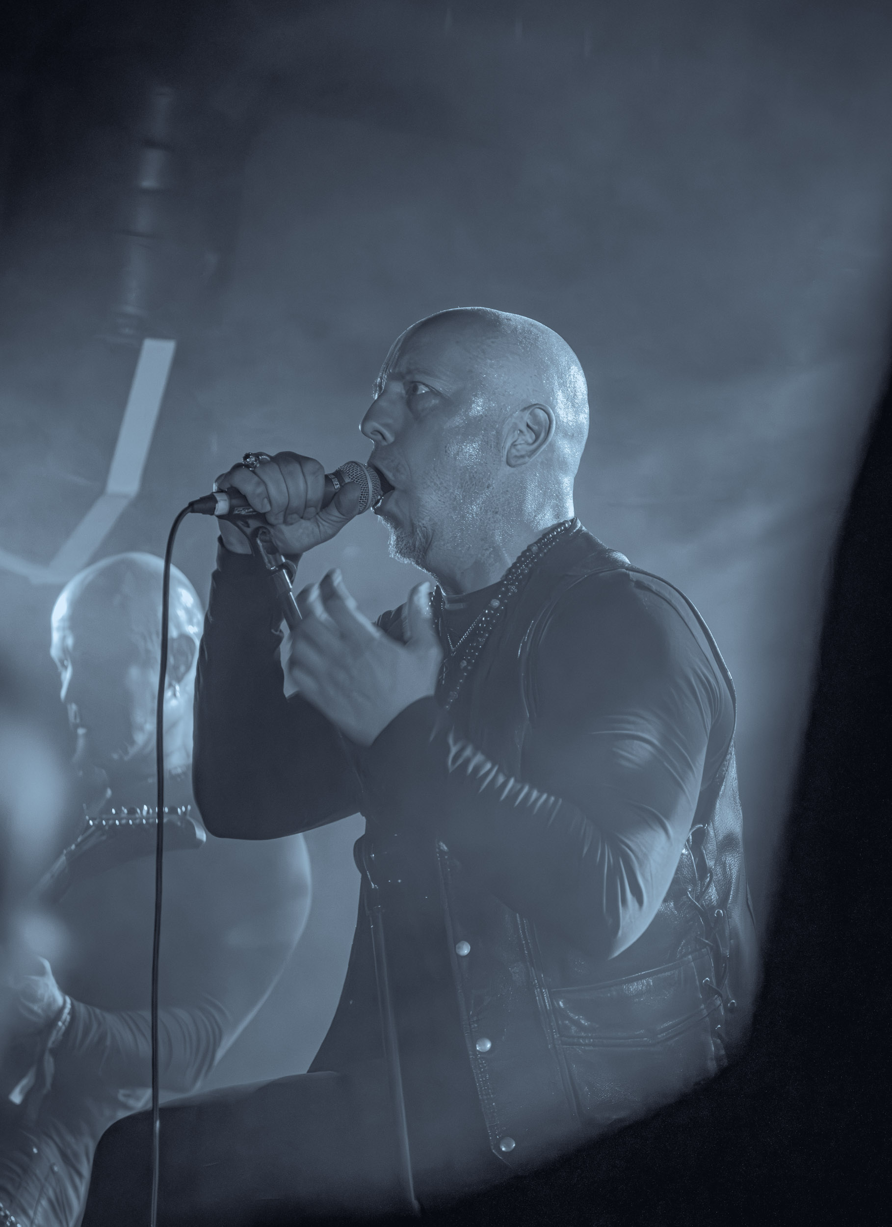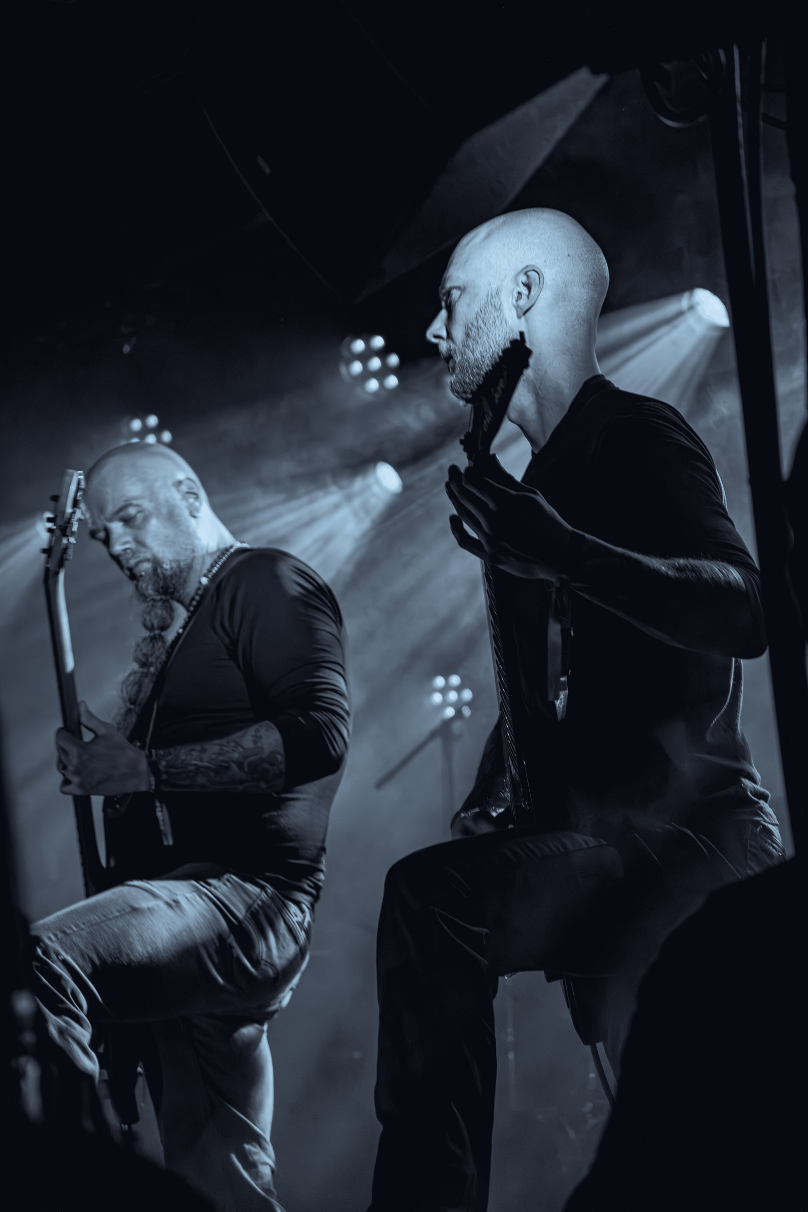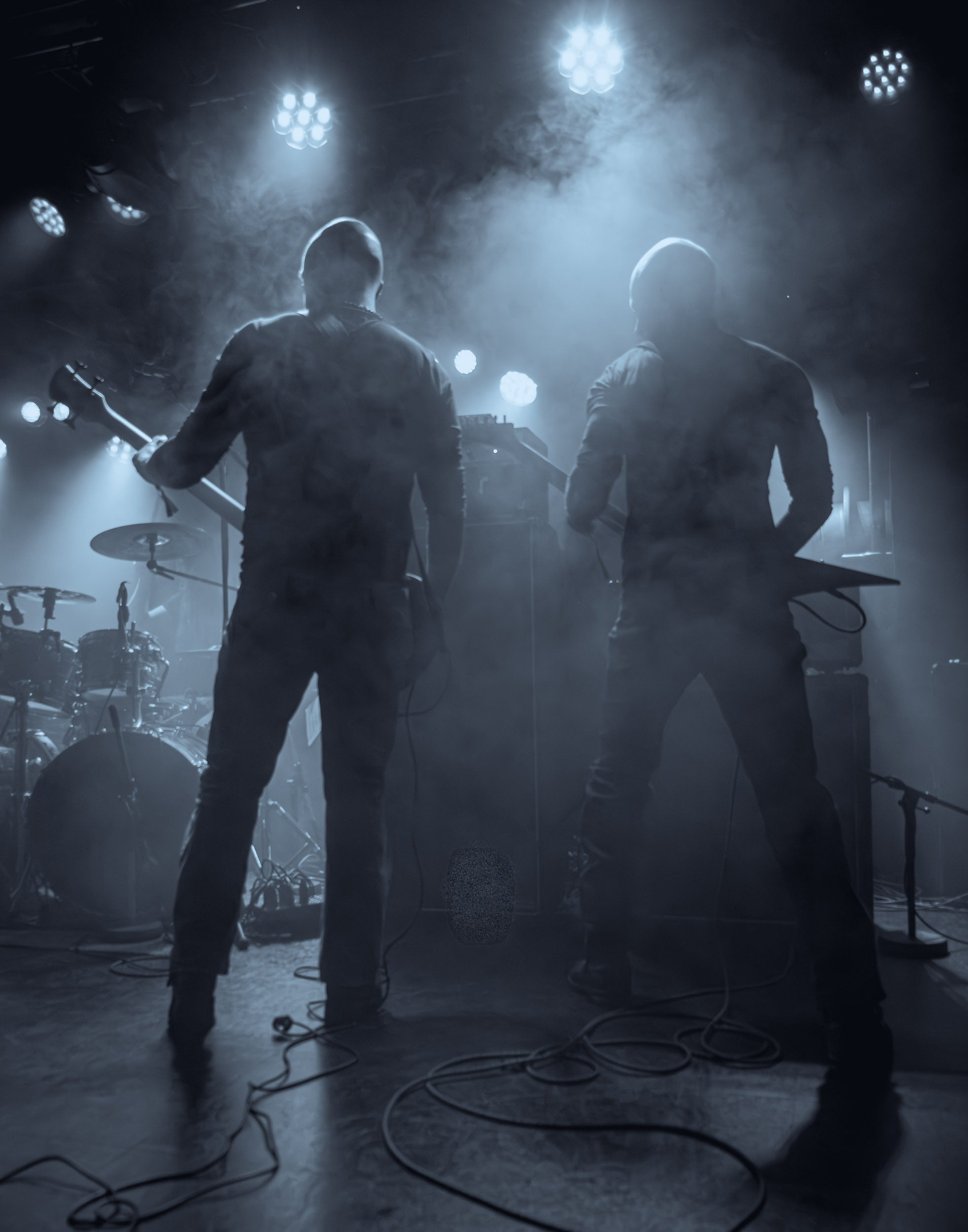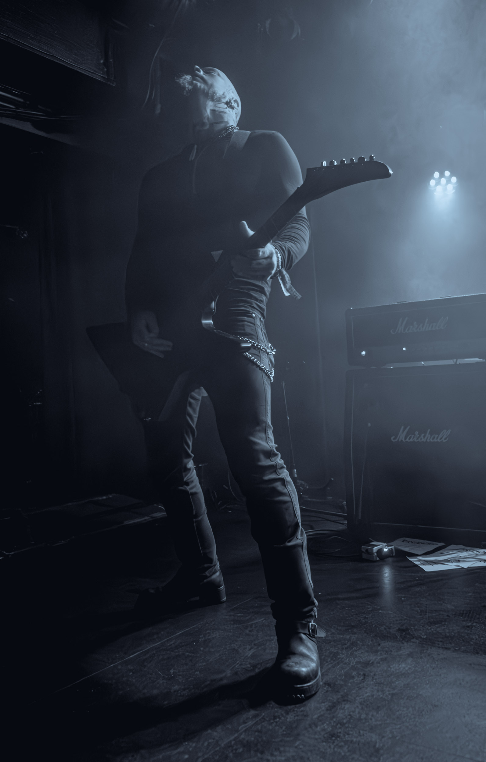 Celeste : Second représentant de la France à l’affiche de cette année après Seth, Celeste est aussi celui de Lyon. Autant dire, alors, que c’est alors un double élan patriotique qui me donne la motivation d’affronter une dernière fois les conditions photographiques compliquées de John Dee. Si je ne cache pas être fière de voir mes concitoyens se faire connaître et se produire à l’international, je ne cache pas non plus qu’ils ne me rendent pas la tâche facile — pour parler en euphémismes ! Affirmer que l’ambiance est sombre en semble un aussi, le groupe ne laissant pas entrer la lumière, au sens propre comme au figuré. Le style, mêlant blackened sludge et post-hardcore, est porteur de thématiques lourdes et graves, parmi lesquelles les violences domestiques. Du point de vue du langage scénique, cela se traduit par un son du même acabit — particulièrement au niveau de la basse — et, au niveau visuel, par une direction artistique oscillant entre quasi-absence d’éclairage et lumières rouges monochromes figurant du sang, éclairage que vient compléter une épaisse couche de fumée. Avec Celeste, tout n’est que noirceur, nihilisme et désespoir ; et cela, nul besoin de maîtriser la langue de Molière pour le comprendre. Du moins tel est le cas pour les spectateurs présents ce soir, chez qui la catharsis bien connue des fans les plus fidèles du groupe produit son effet. En outre, et peut-être est-ce lié au fait qu’ils jouent face à un public qui ne les connaît que peu, les musiciens tentent une petite interaction non-verbale avec les gens en les incitant à taper dans les mains… Je reconnais me laisser surprendre par ce mini-élan communicatif, différent de la distance à laquelle Celeste a habitué son public français ! Malheureusement pour lui, le quatuor pâtit du créneau horaire le plus désavantageux du running order, la majorité des spectateurs ayant pris de l’avance pour voir Behemoth, ce qui fait qu’il se retrouve à jouer devant un public clairsemé. La fumée envahissant l’espace clos de John Dee n’aide pas non plus, finissant par devenir étouffante — sérieusement, qui a eu l’idée de fermer la porte vers les escaliers ? — et, devant moi aussi prendre de l’avance pour shooter la tête d’affiche, je ne peux rester longtemps avant de remonter. J’aurai tout de même eu la satisfaction de reconnaître quelques extraits des productions récentes de Celeste que sont l’album Assassine(s) et l’EP Épilogue(s), ainsi que de tirer quelques images fortes, comme le groupe en offre à chaque fois.