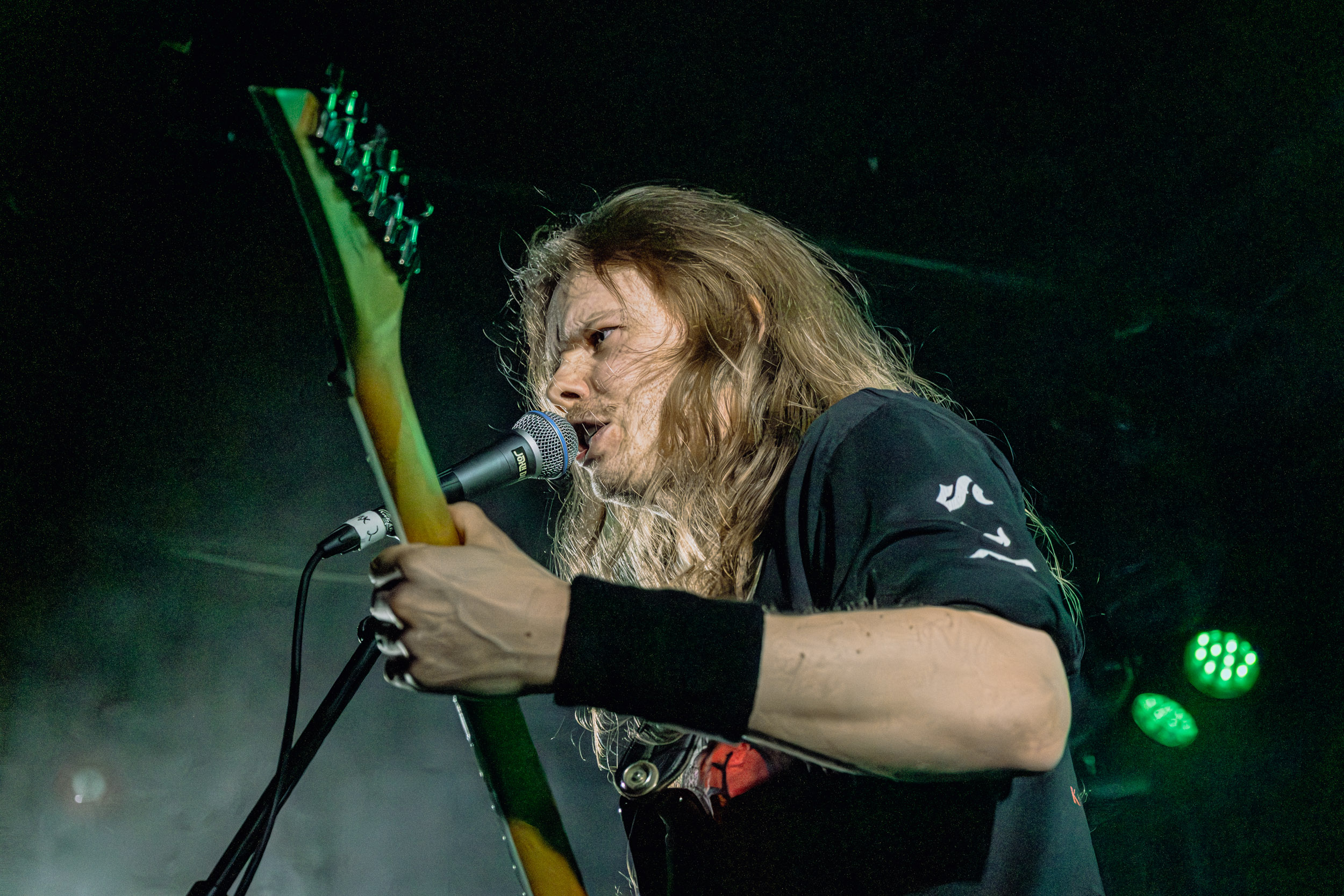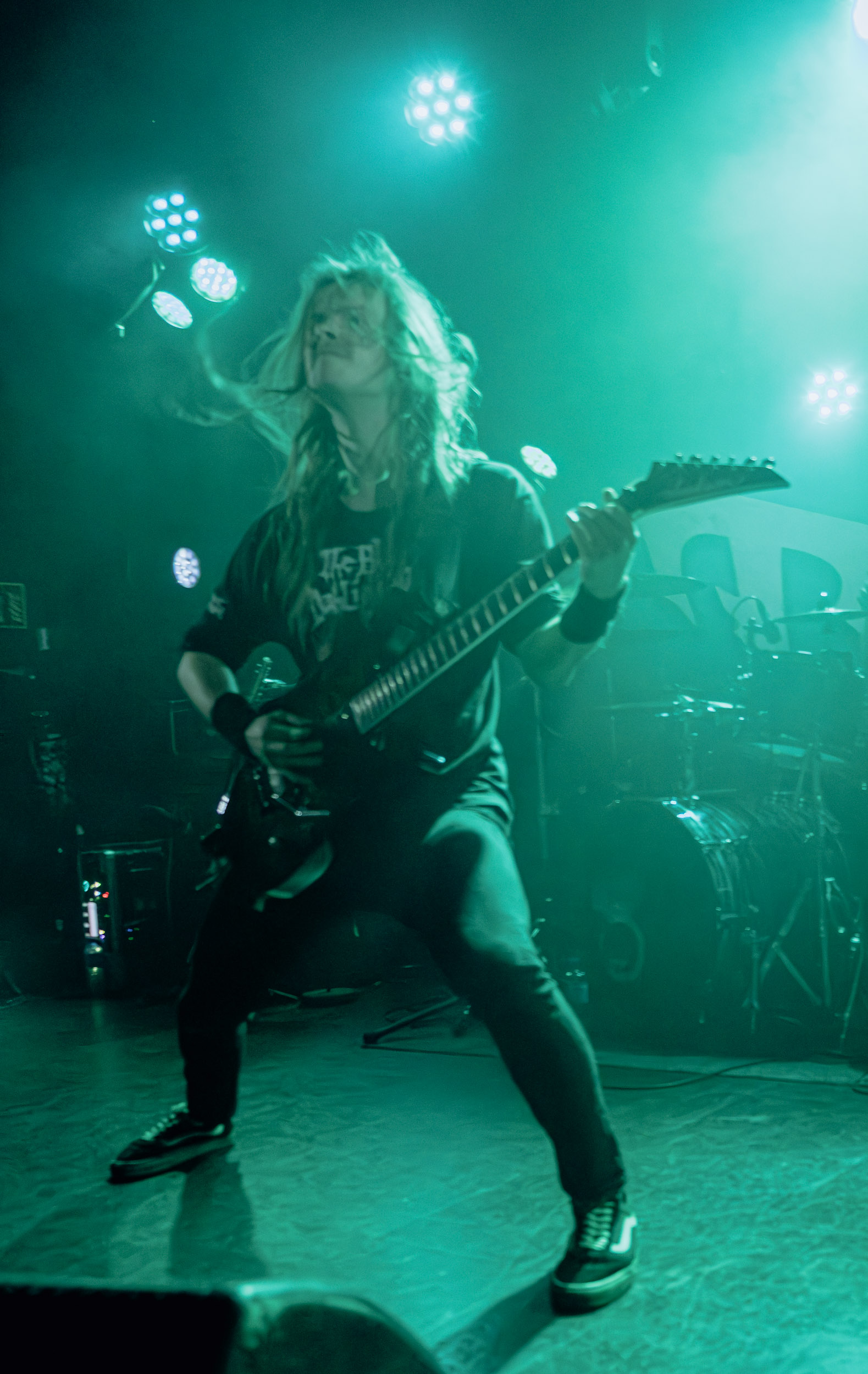 Thus : Sur la scène John Dee, Thus nous présente un death/thrash en bonne et due forme, doté d’un niveau d’agressivité optimal. Ce jeune groupe danois se produit aujourd’hui en Norvège pour la première fois, montre une belle détermination à convaincre, et y parvient sans peine. Le chant est relativement grave et guttural dans un registre peu éloigné de celui de Chuck Billy (Testament) ou de Phil Anselmo (Pantera), avec un timbre un peu moins bas toutefois. Ni tout à fait old school ni vraiment moderne, la musique de Thus, propulsée par des riffs toujours puissants, voire par moments écrasants, et des soli pertinents, est à même de plaire au plus grand nombre, sur scène comme sur disque. Encore un nom à retenir ! [Oli]