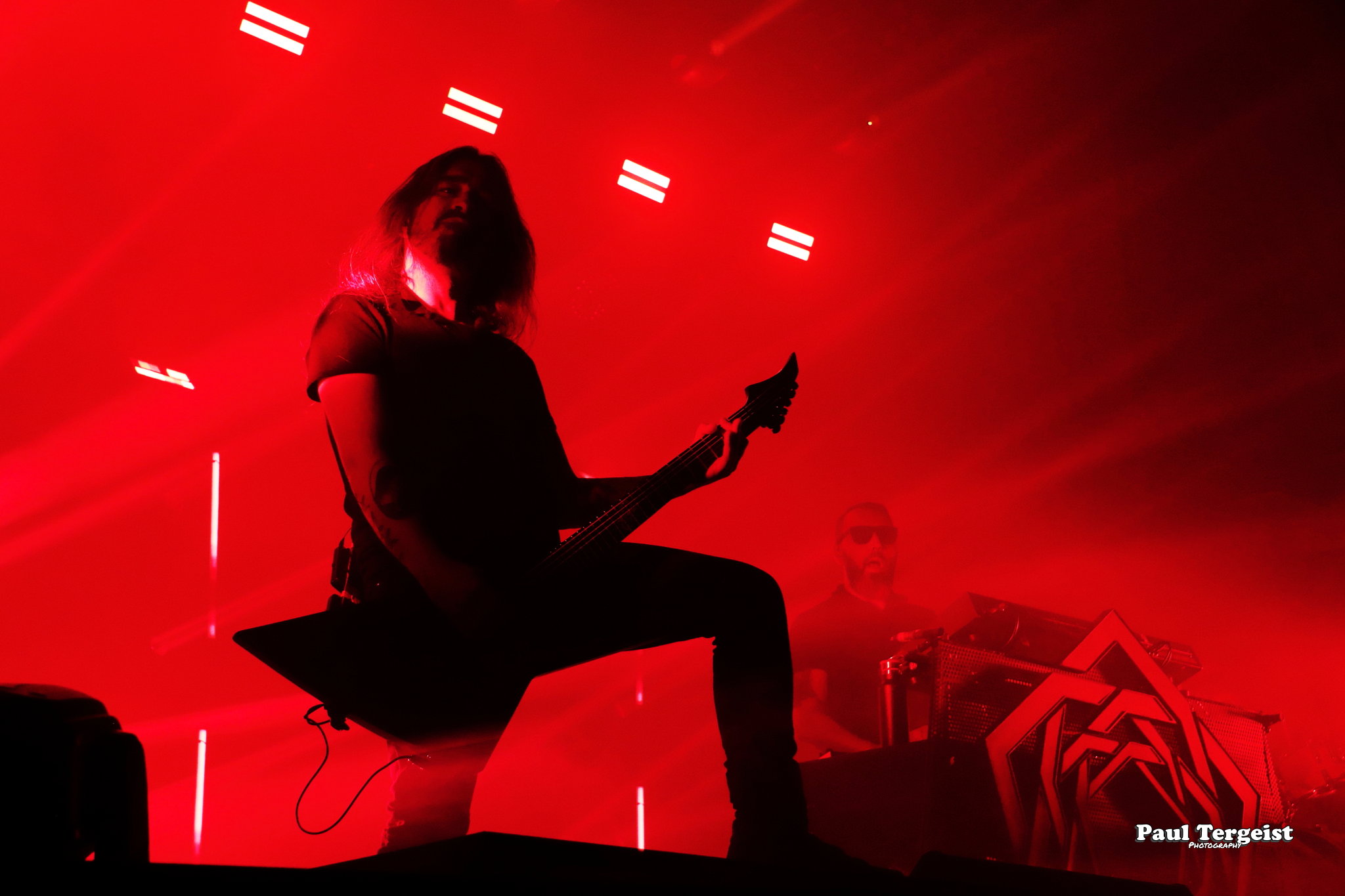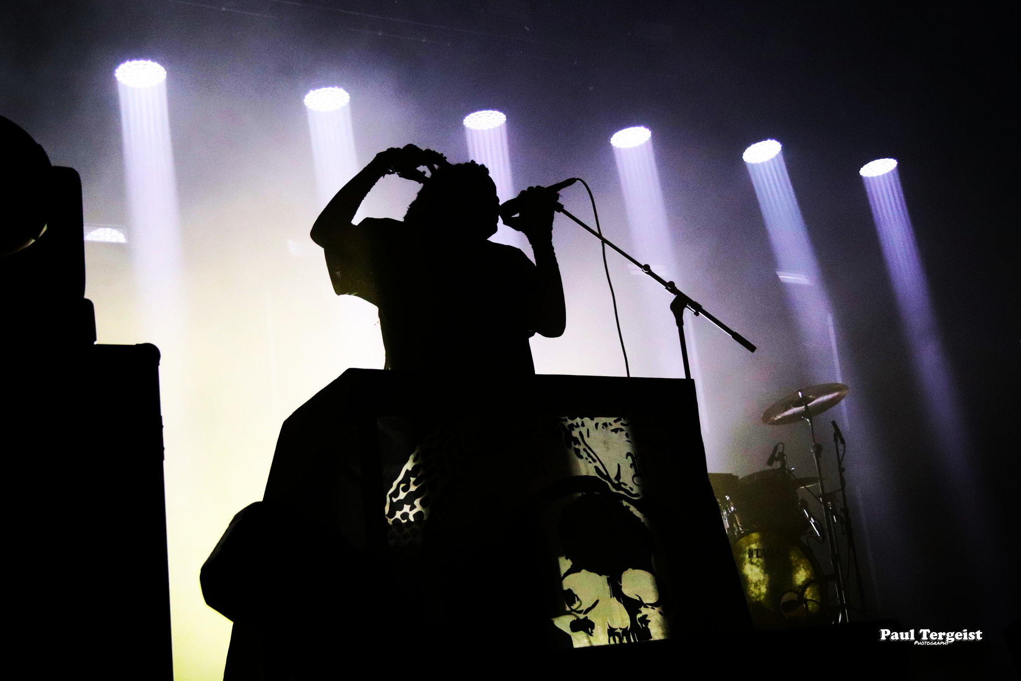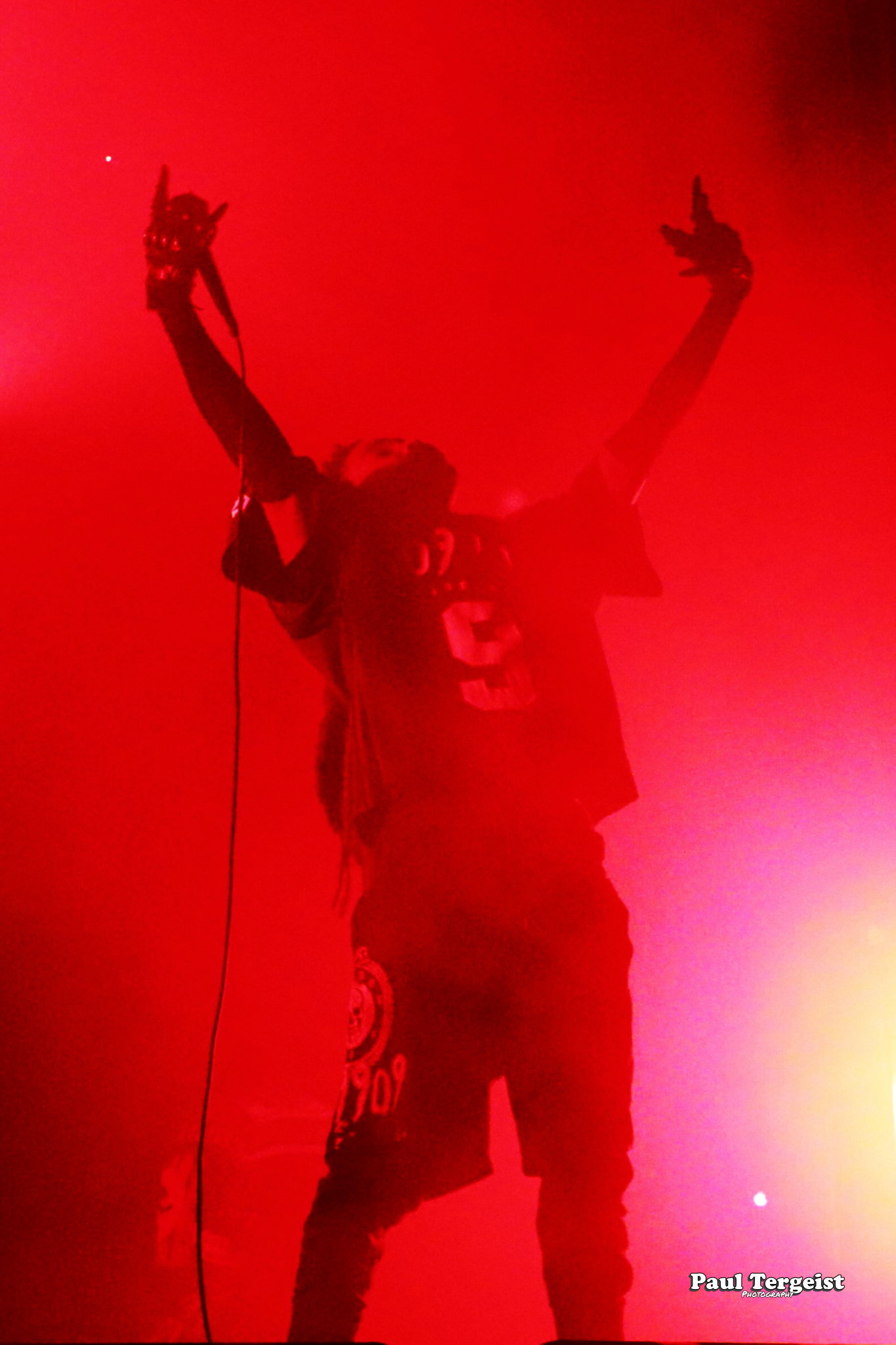Le public de ce soir est composé d’un pourcentage non négligeable de métalleux et de membres de différentes tribus non identifiables. En première partie, nous découvrons Ho99o9 (prononcez « Horror »), un duo de punk/rap américain, complété par un batteur live. Leur musique, essentiellement samplée, contient, hormis une bonne dose de rap, des éléments indus ou certains phrasés et gimmicks propres au hardcore, qui font ponctuellement dresser l’oreille des métalleux présents dans la salle, tandis que les autres spectateurs semblent globalement satisfaits du spectacle, si l’on en juge par leurs réactions un peu plus que polies, pendant et entre les morceaux.