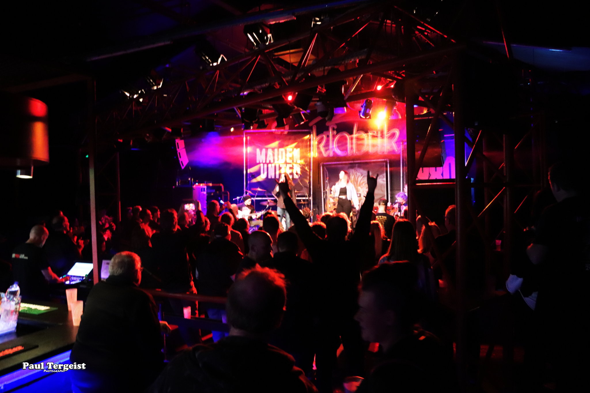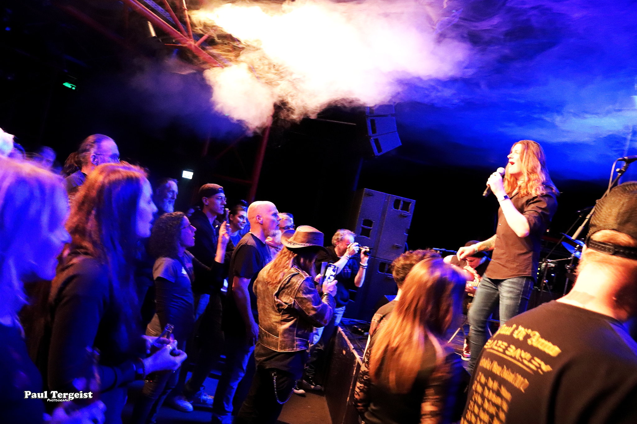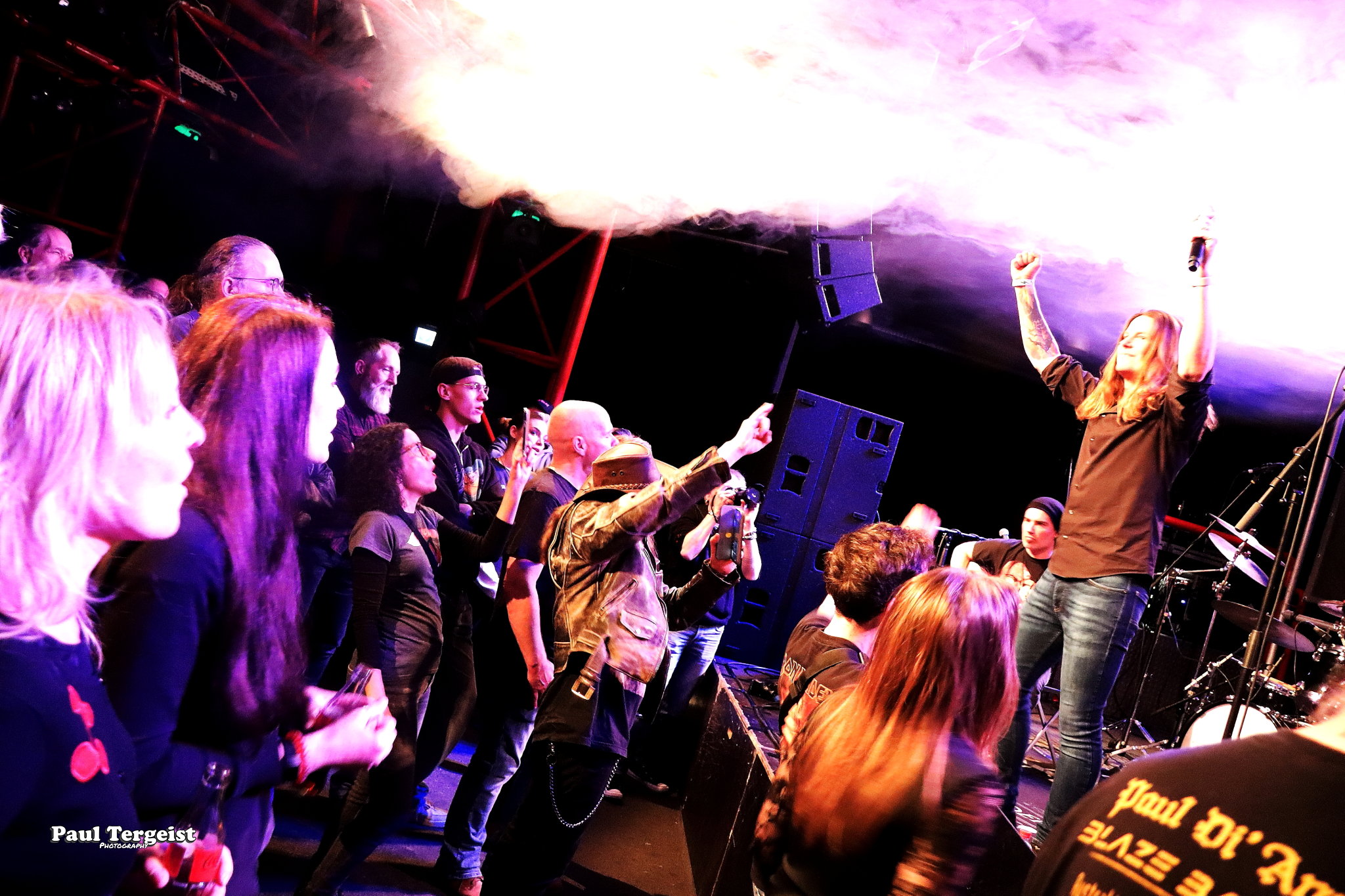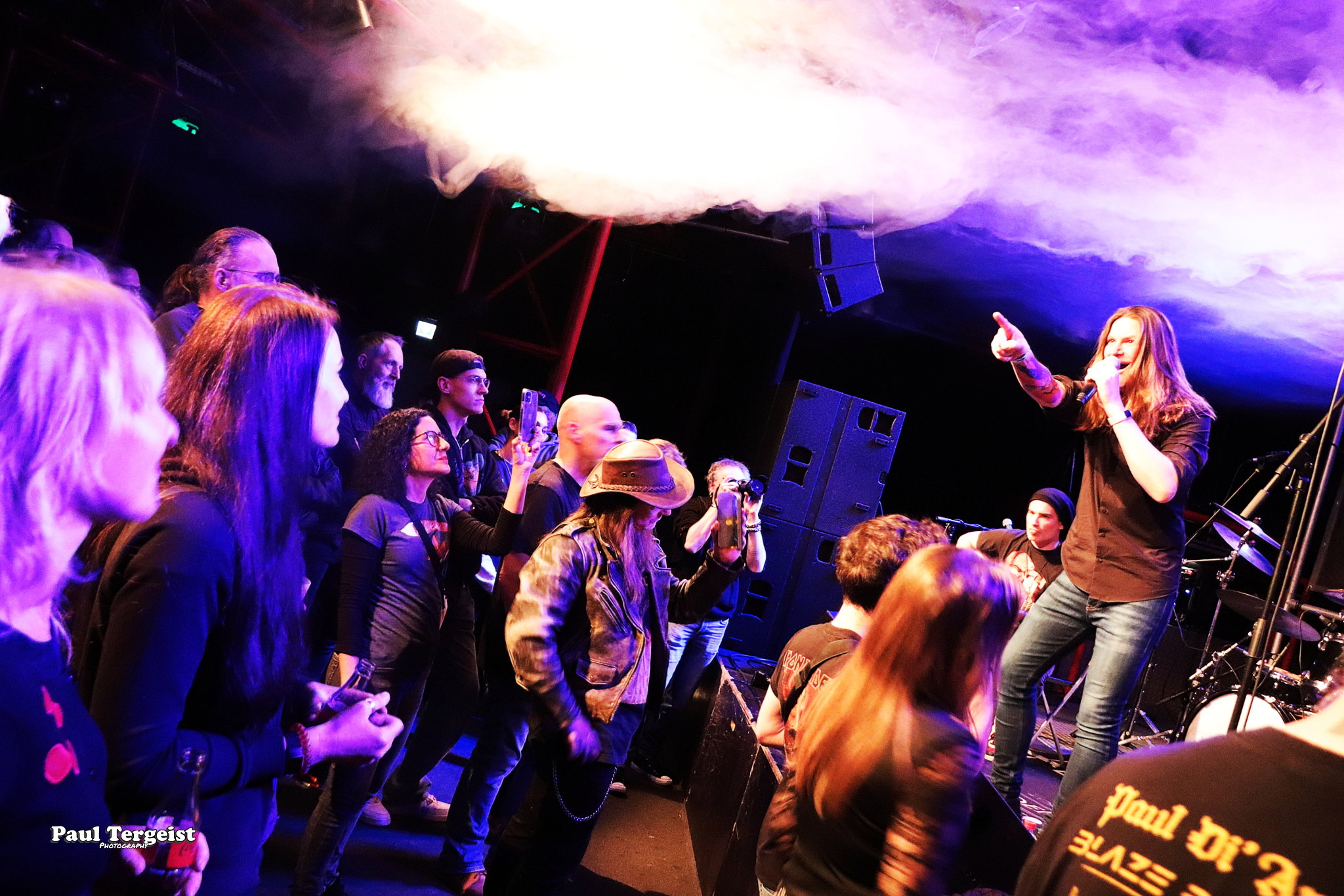 La salle du Rockfabrik se prête merveilleusement à ce concert hors du commun avec des éclairages qui contribuent à une bonne atmosphère ainsi que des fumigènes qui n’envahissent pas trop la scène et qui sont projetés par l’arrière de la salle, ce qui donne l’impression que des nuages passent par-dessus nos têtes. Une ambiance qui aurait été appropriée au titre Empire of the Clouds.