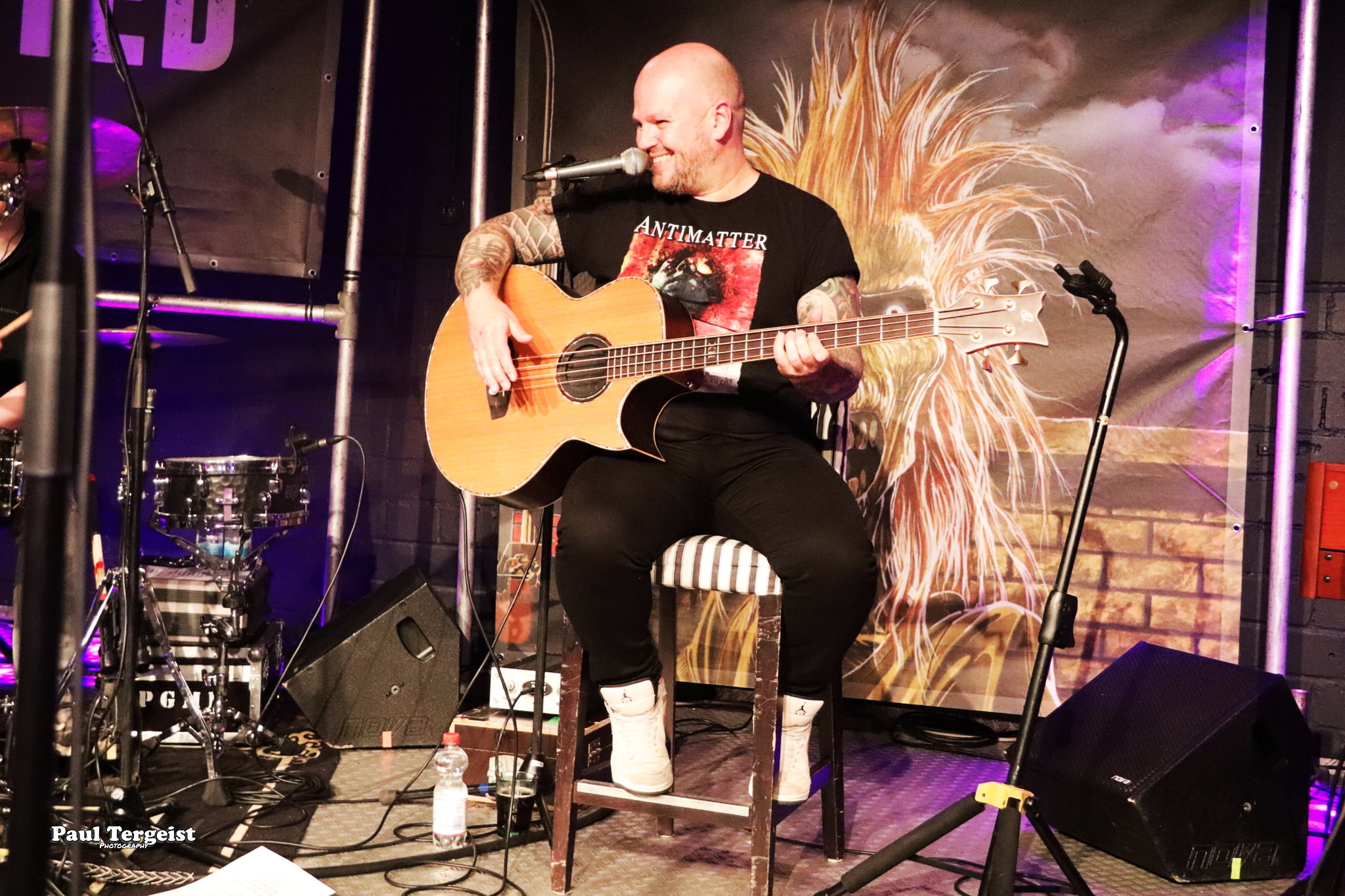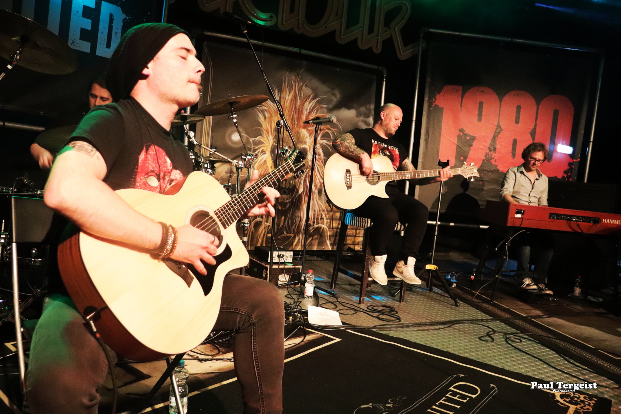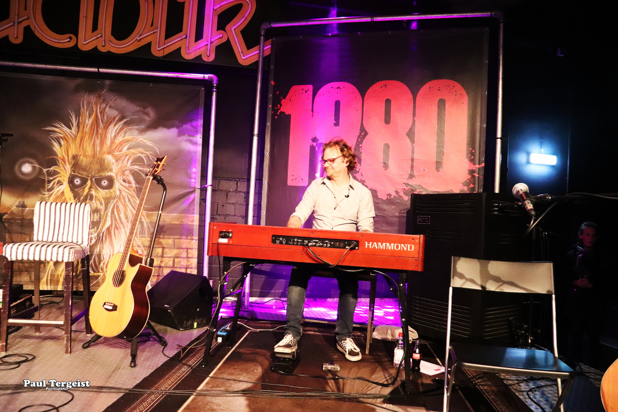 La salle du Rockfabrik se prête merveilleusement à ce concert hors du commun avec des éclairages qui contribuent à une bonne atmosphère ainsi que des fumigènes qui n’envahissent pas trop la scène et qui sont projetés par l’arrière de la salle, ce qui donne l’impression que des nuages passent par-dessus nos têtes. Une ambiance qui aurait été appropriée au titre Empire of the Clouds.