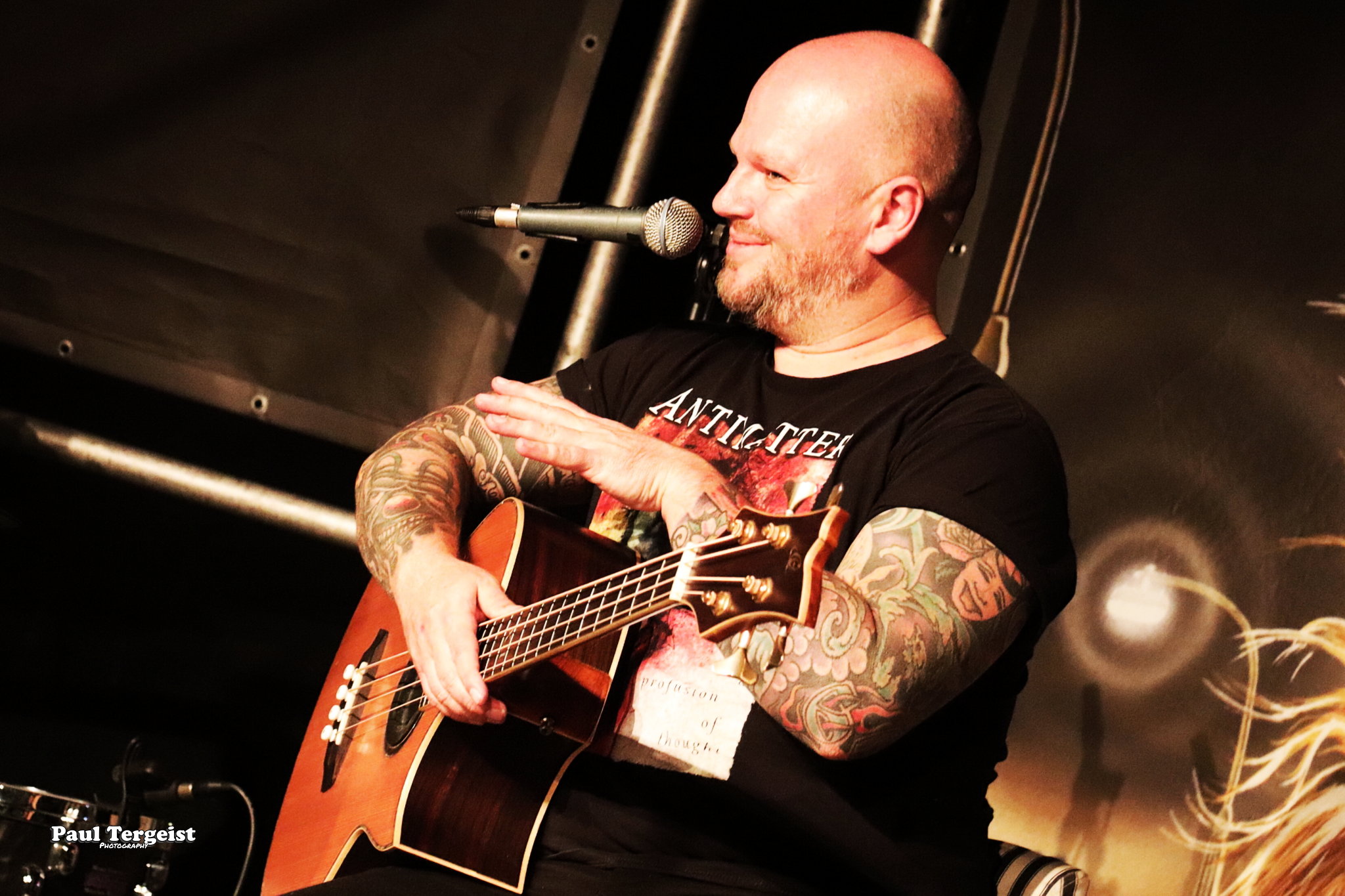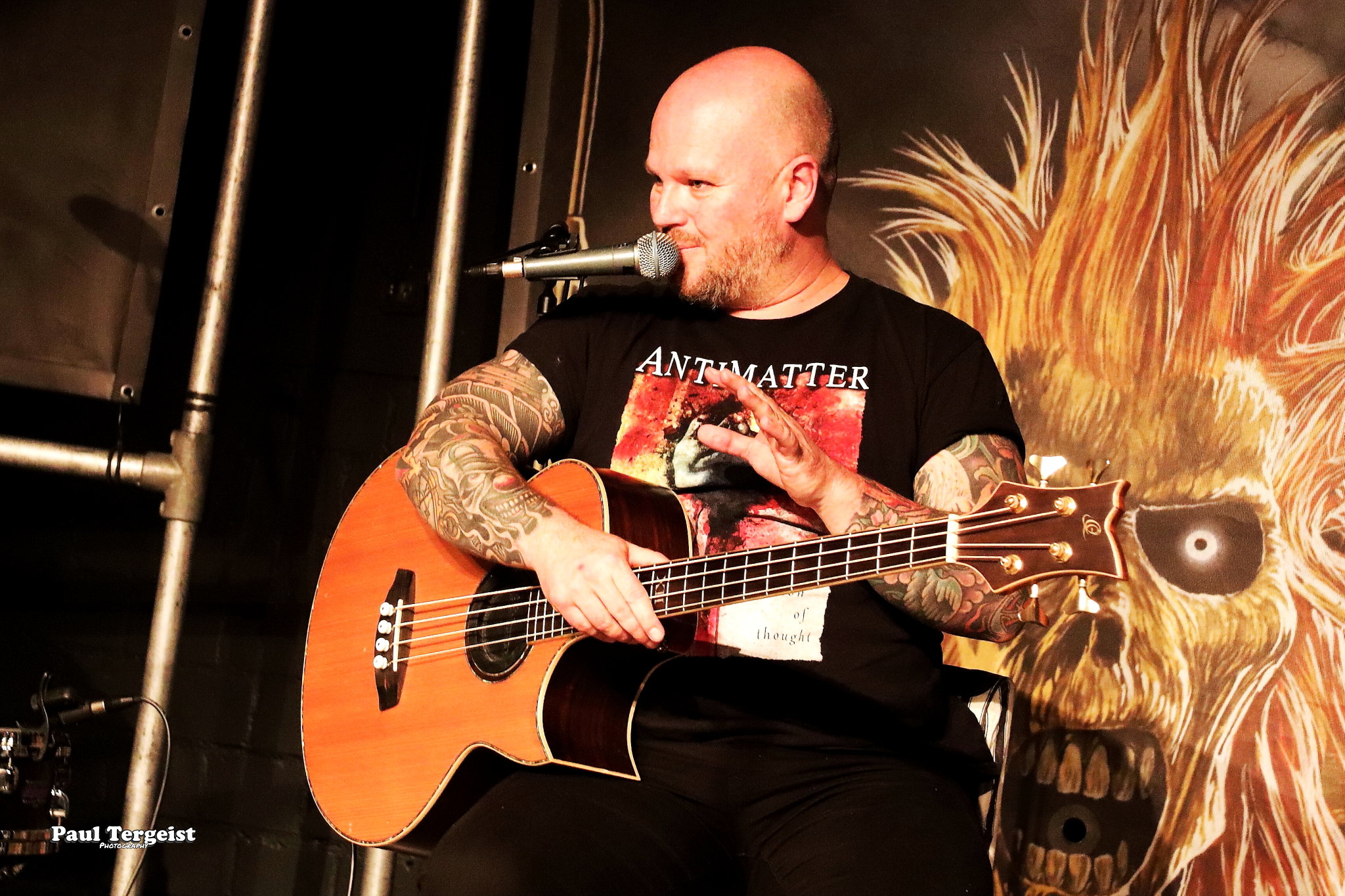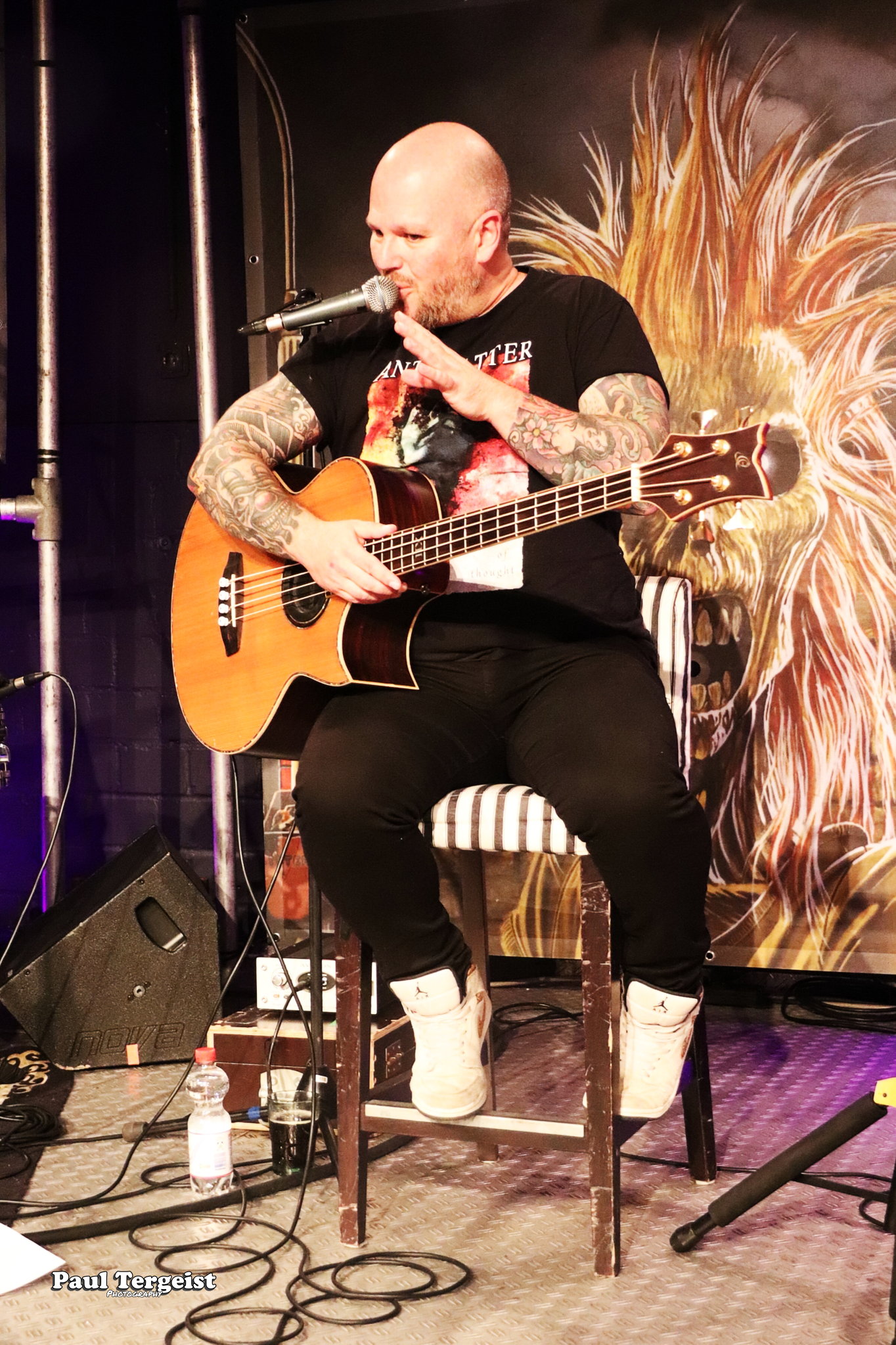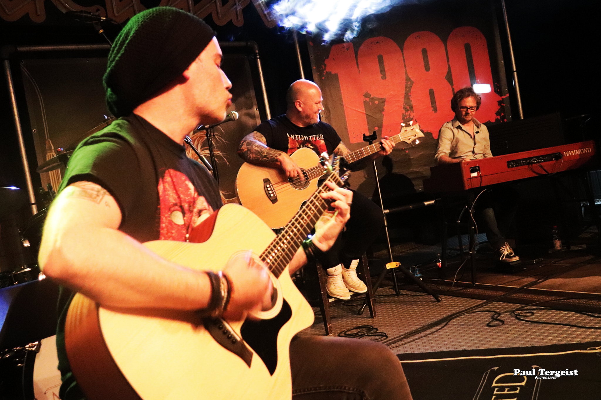 La salle du Rockfabrik se prête merveilleusement à ce concert hors du commun avec des éclairages qui contribuent à une bonne atmosphère ainsi que des fumigènes qui n’envahissent pas trop la scène et qui sont projetés par l’arrière de la salle, ce qui donne l’impression que des nuages passent par-dessus nos têtes. Une ambiance qui aurait été appropriée au titre Empire of the Clouds.