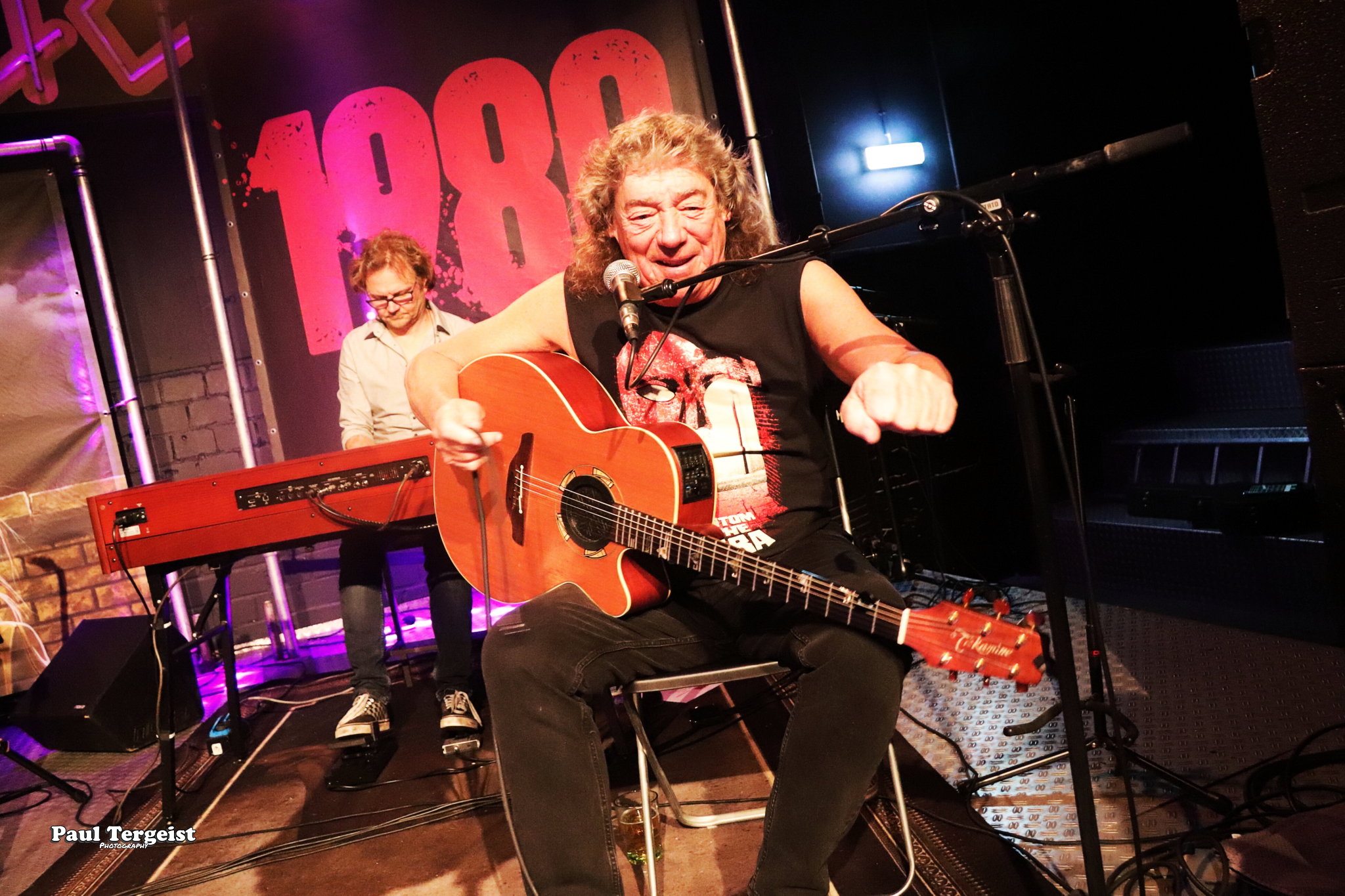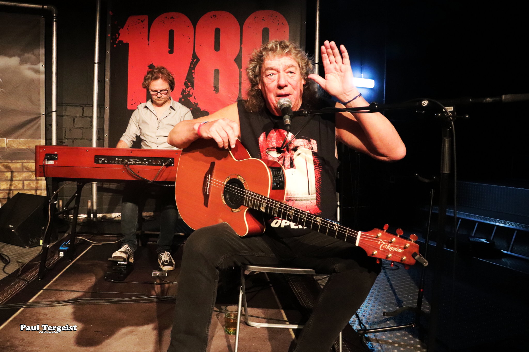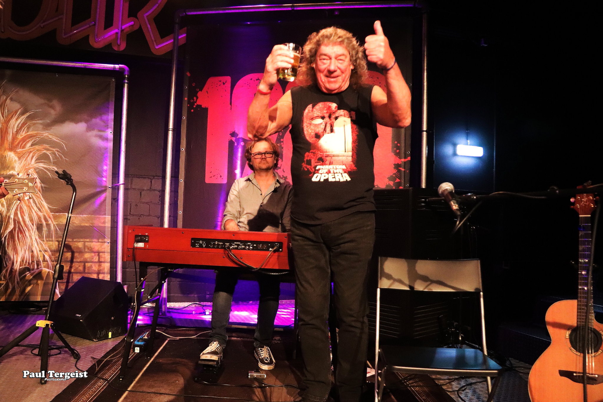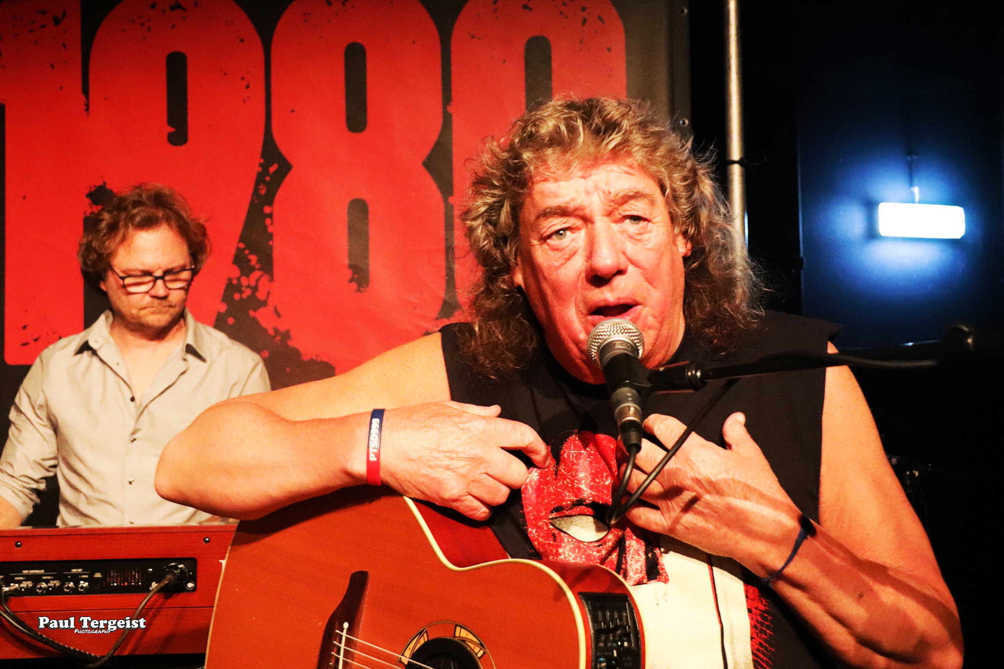 Parmi les musiciens présents ce soir, un invité de marque, puisqu’il s’agit tout simplement de Dennis Stratton, le second guitariste, aux côtés de Dave Murray, ayant joué sur le premier album d’Iron Maiden !