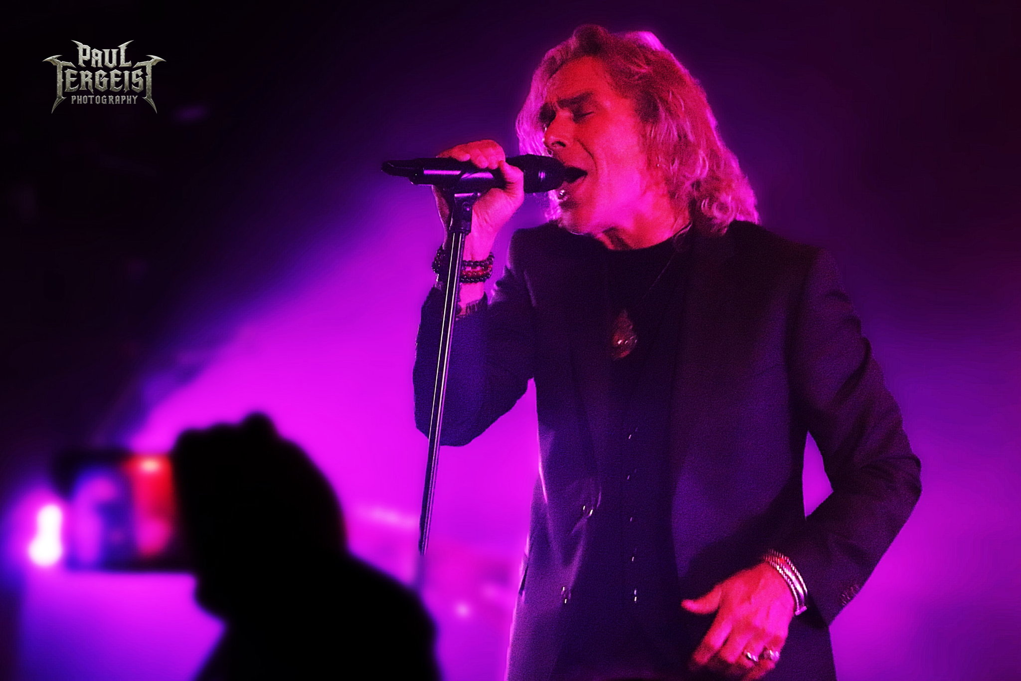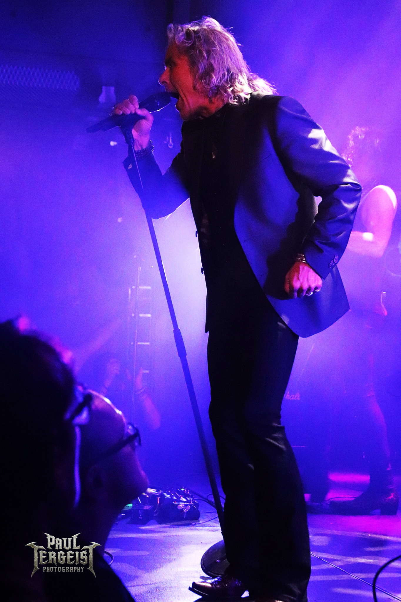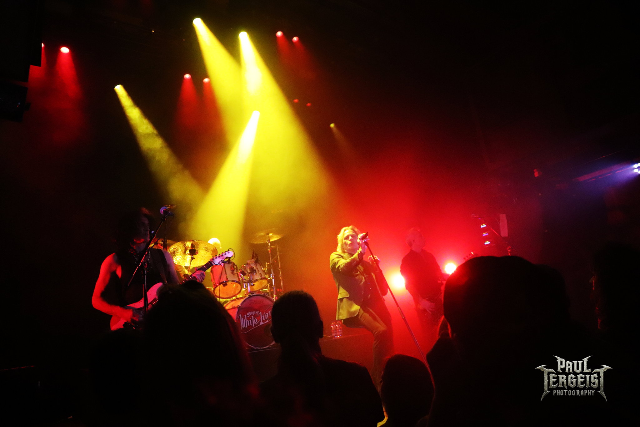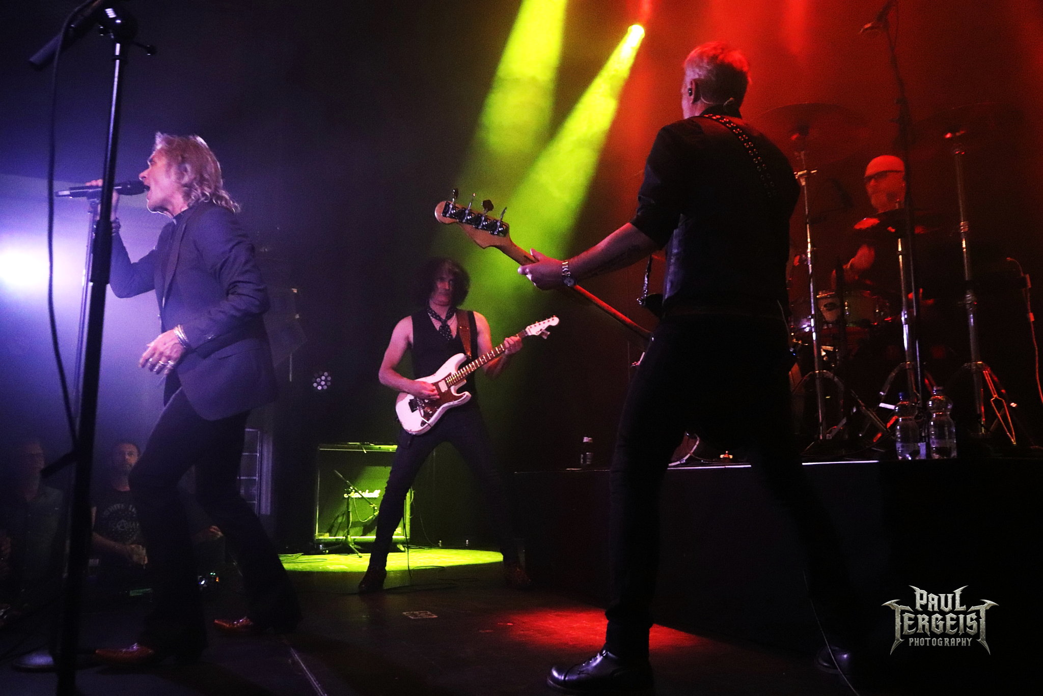 Mike Tramp apparaît, d’une élégance folle, vêtu de son costume anthracite, et lance le show avec Lights and Thunder, tiré de Mane Attraction. Le son est grungy et lourd, et ce titre s’enchaîne avec Hungry, l’un des très grands titres de Pride, qui en ouvre d’ailleurs la face A. Mike chante moins haut, moins fort que sur la version studio. Serait-il à la peine ? C’est frustrant mais on s’y fait, en se disant que le répertoire de White Lion est en or, et que c’est bien ça le plus important. S’ensuit Lonely Nights, exactement comme sur Pride. Ici, en live, l’impression mitigée reste la même, tout est un peu plus lent et plus faible que ce à quoi on s’attend. Le guitariste est moins expansif sur son manche et moins shredder que son illustre prédécesseur Vito Bratta, mais assure magnifiquement les parties en tapping de ce dernier.