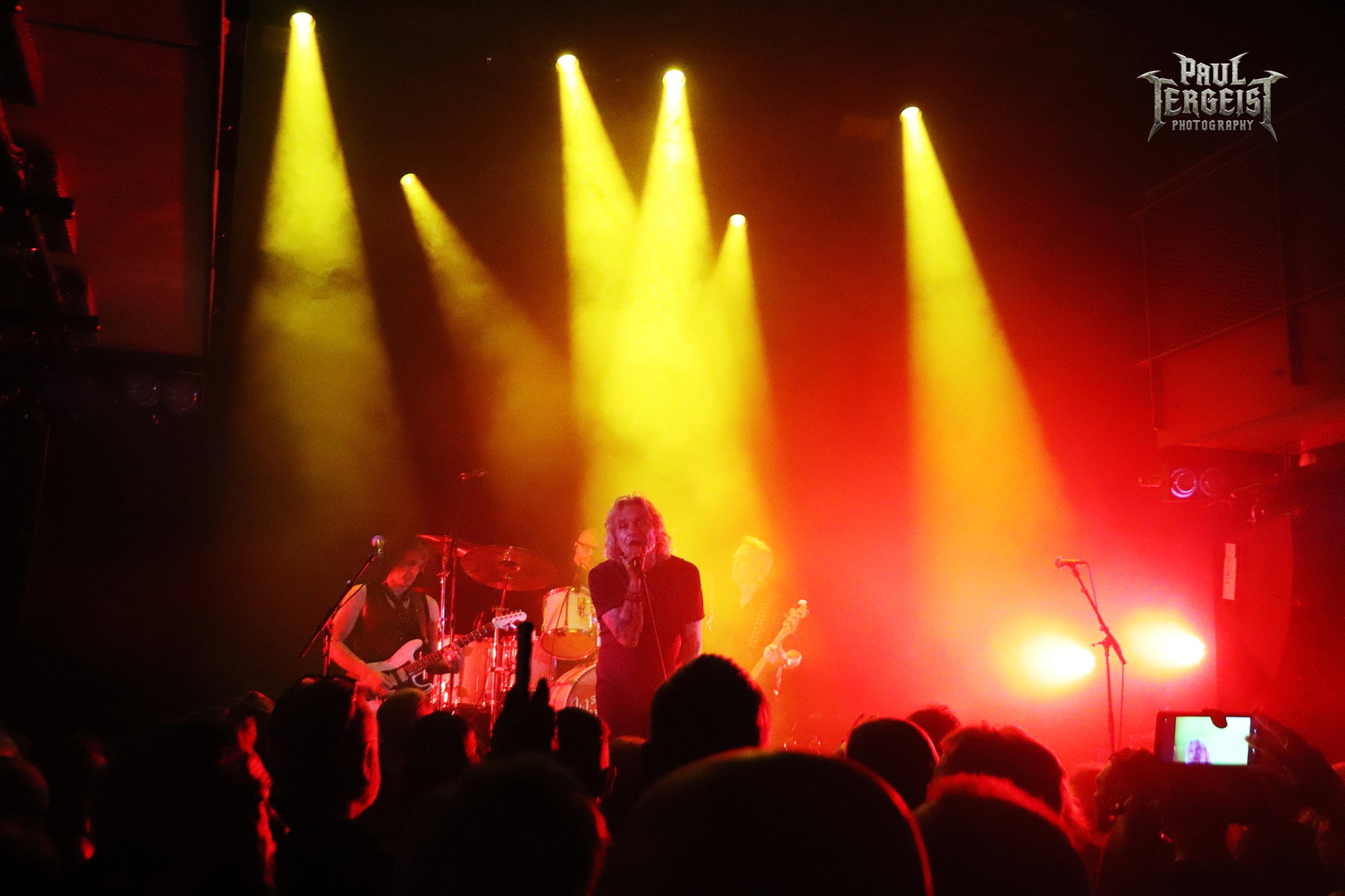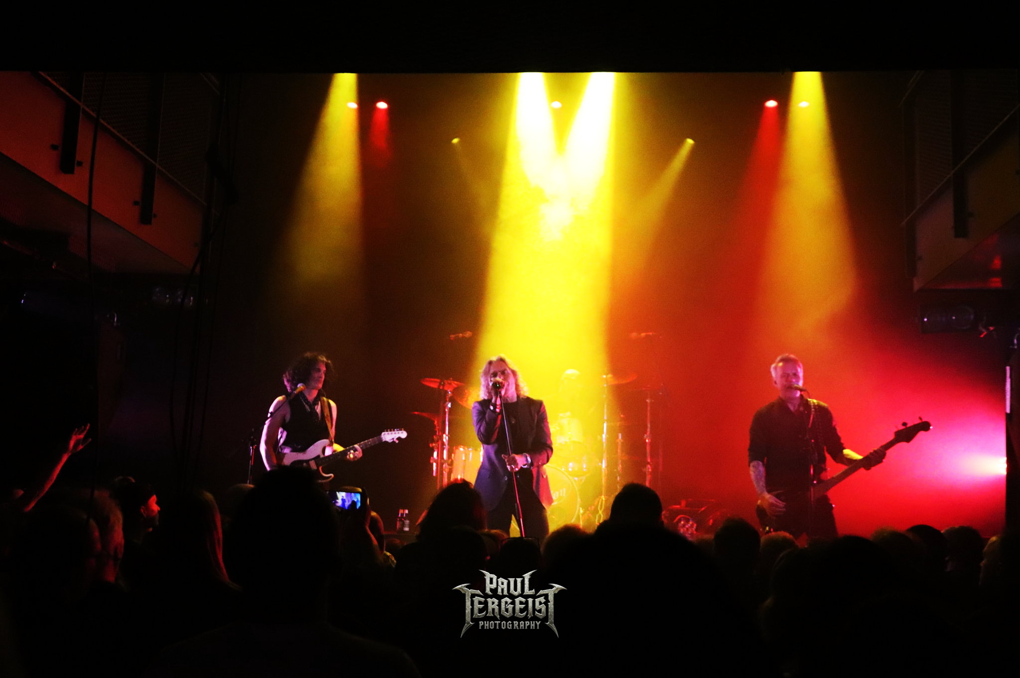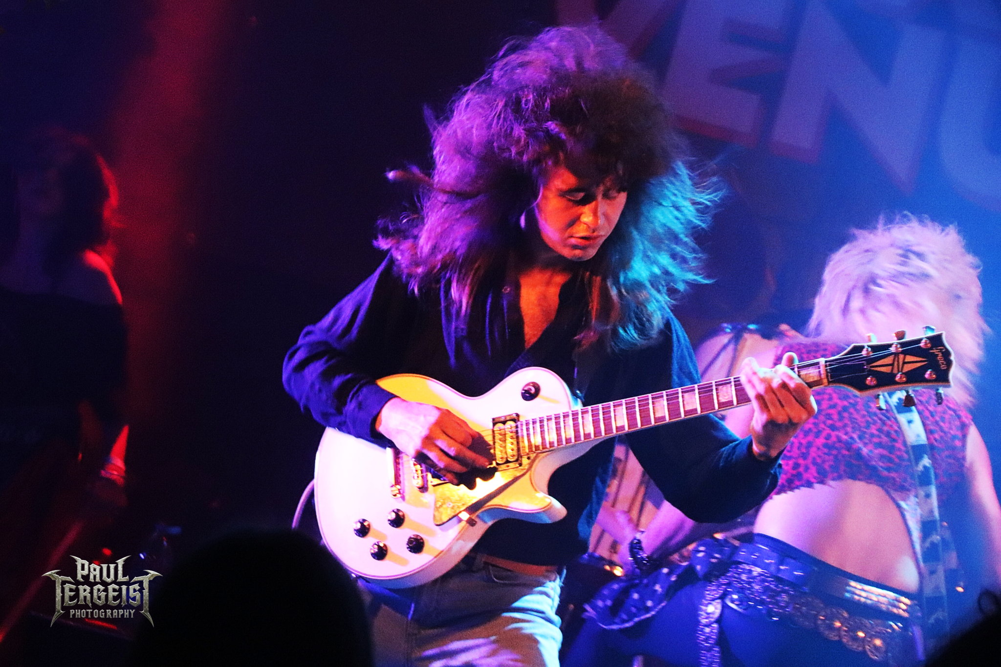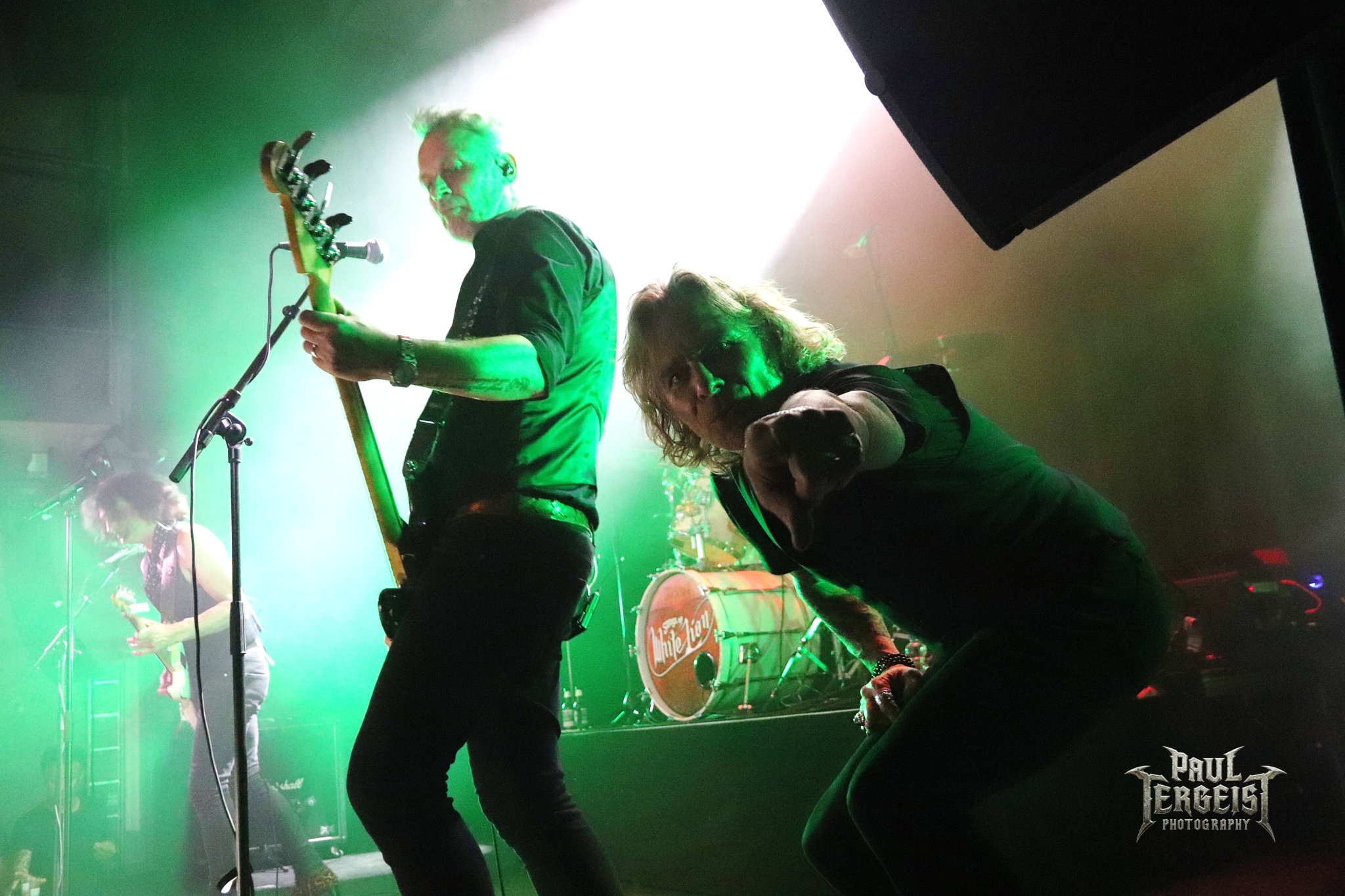 Mike Tramp apparaît, d’une élégance folle, vêtu de son costume anthracite, et lance le show avec Lights and Thunder, tiré de Mane Attraction. Le son est grungy et lourd, et ce titre s’enchaîne avec Hungry, l’un des très grands titres de Pride, qui en ouvre d’ailleurs la face A. Mike chante moins haut, moins fort que sur la version studio. Serait-il à la peine ? C’est frustrant mais on s’y fait, en se disant que le répertoire de White Lion est en or, et que c’est bien ça le plus important. S’ensuit Lonely Nights, exactement comme sur Pride. Ici, en live, l’impression mitigée reste la même, tout est un peu plus lent et plus faible que ce à quoi on s’attend. Le guitariste est moins expansif sur son manche et moins shredder que son illustre prédécesseur Vito Bratta, mais assure magnifiquement les parties en tapping de ce dernier.