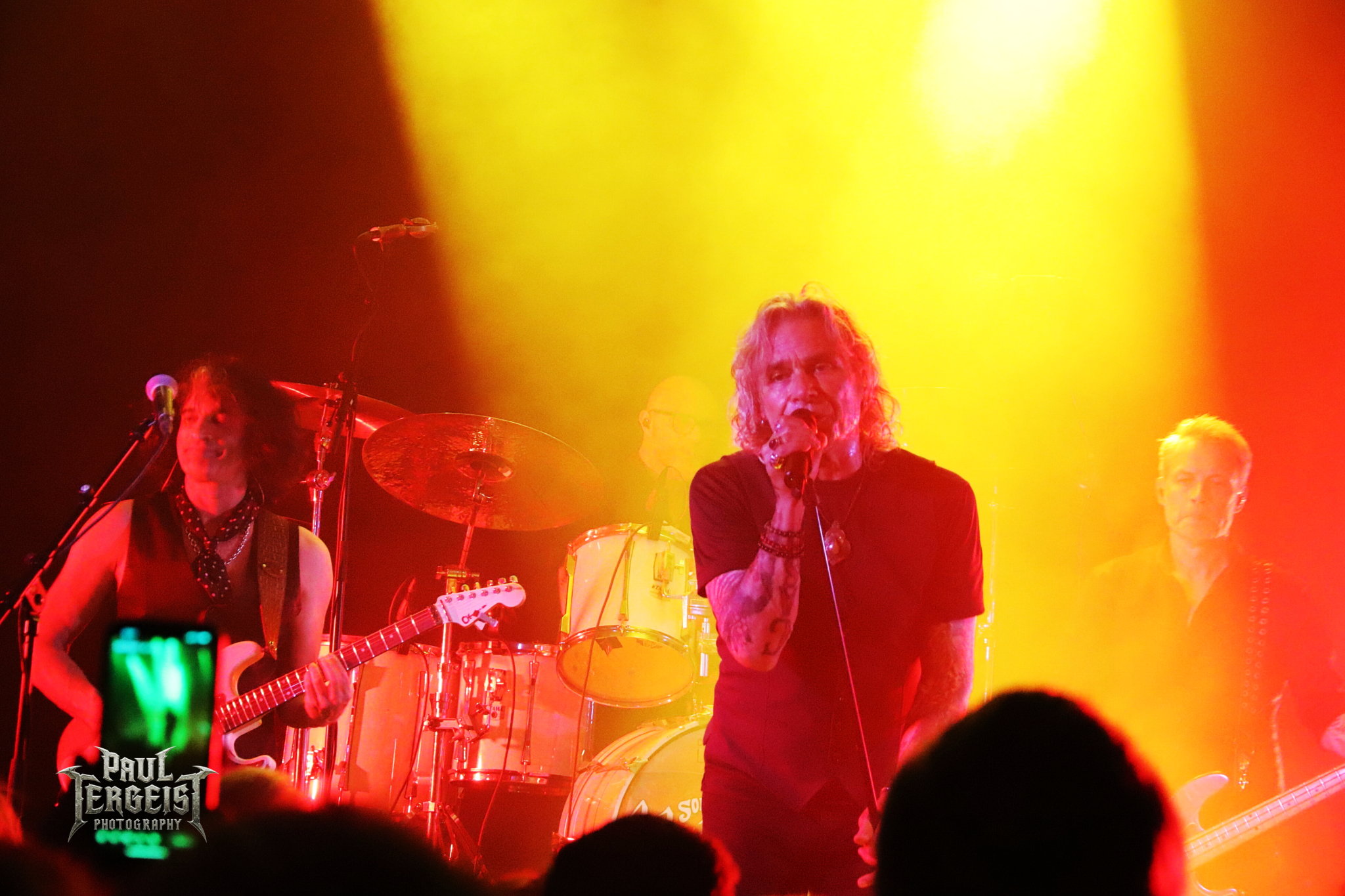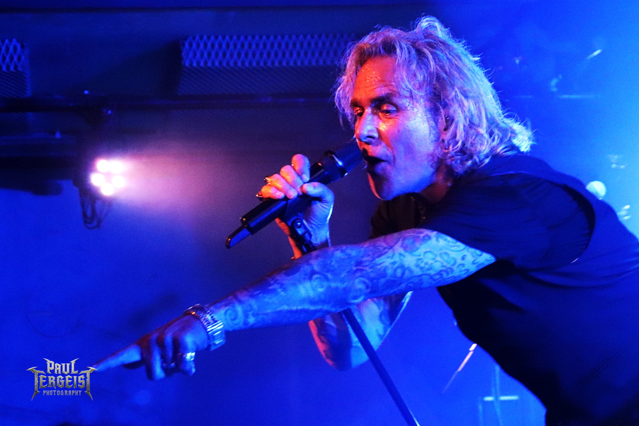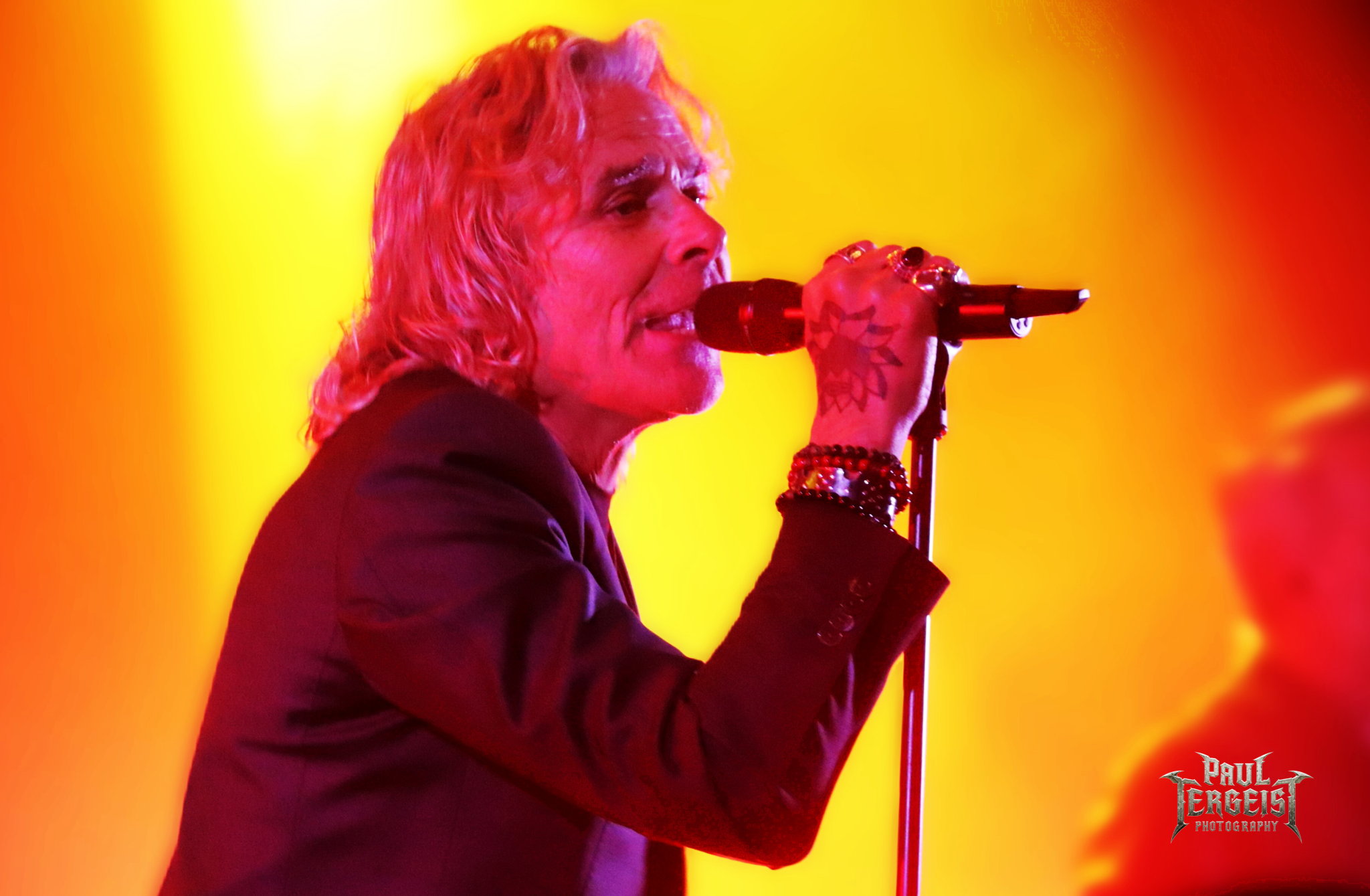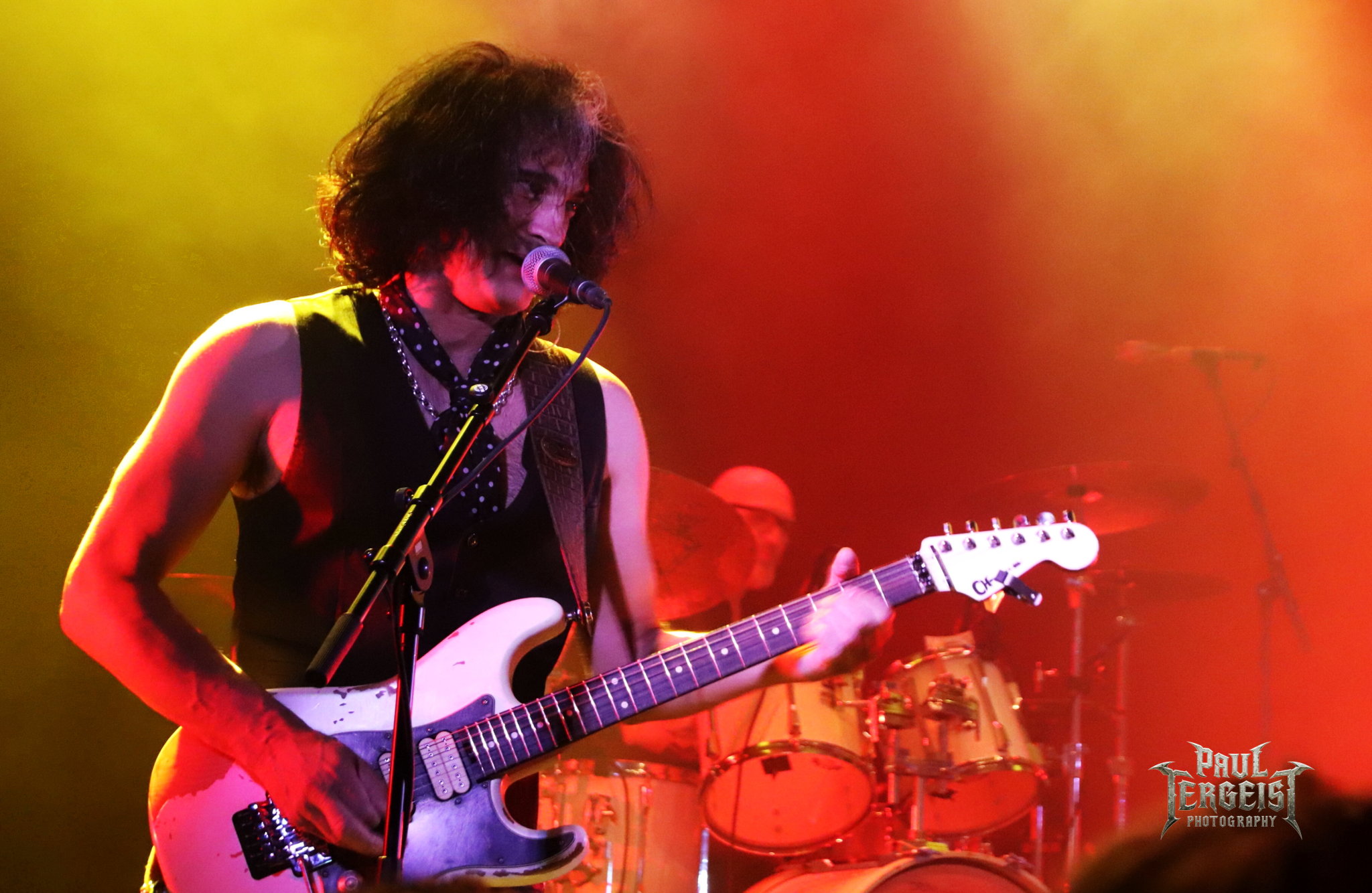 Mike Tramp apparaît, d’une élégance folle, vêtu de son costume anthracite, et lance le show avec Lights and Thunder, tiré de Mane Attraction. Le son est grungy et lourd, et ce titre s’enchaîne avec Hungry, l’un des très grands titres de Pride, qui en ouvre d’ailleurs la face A. Mike chante moins haut, moins fort que sur la version studio. Serait-il à la peine ? C’est frustrant mais on s’y fait, en se disant que le répertoire de White Lion est en or, et que c’est bien ça le plus important. S’ensuit Lonely Nights, exactement comme sur Pride. Ici, en live, l’impression mitigée reste la même, tout est un peu plus lent et plus faible que ce à quoi on s’attend. Le guitariste est moins expansif sur son manche et moins shredder que son illustre prédécesseur Vito Bratta, mais assure magnifiquement les parties en tapping de ce dernier.