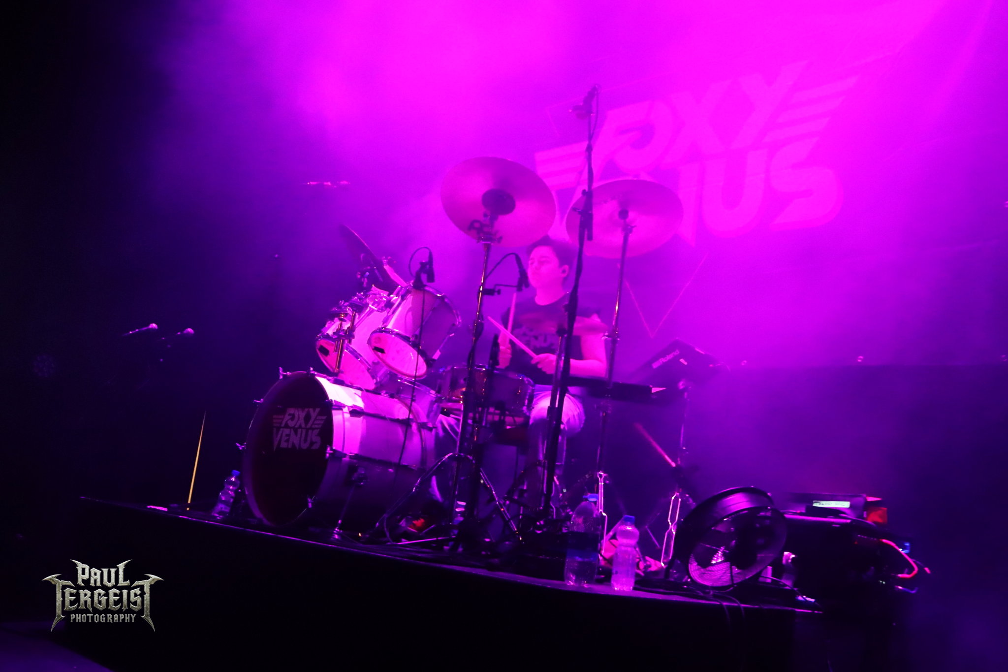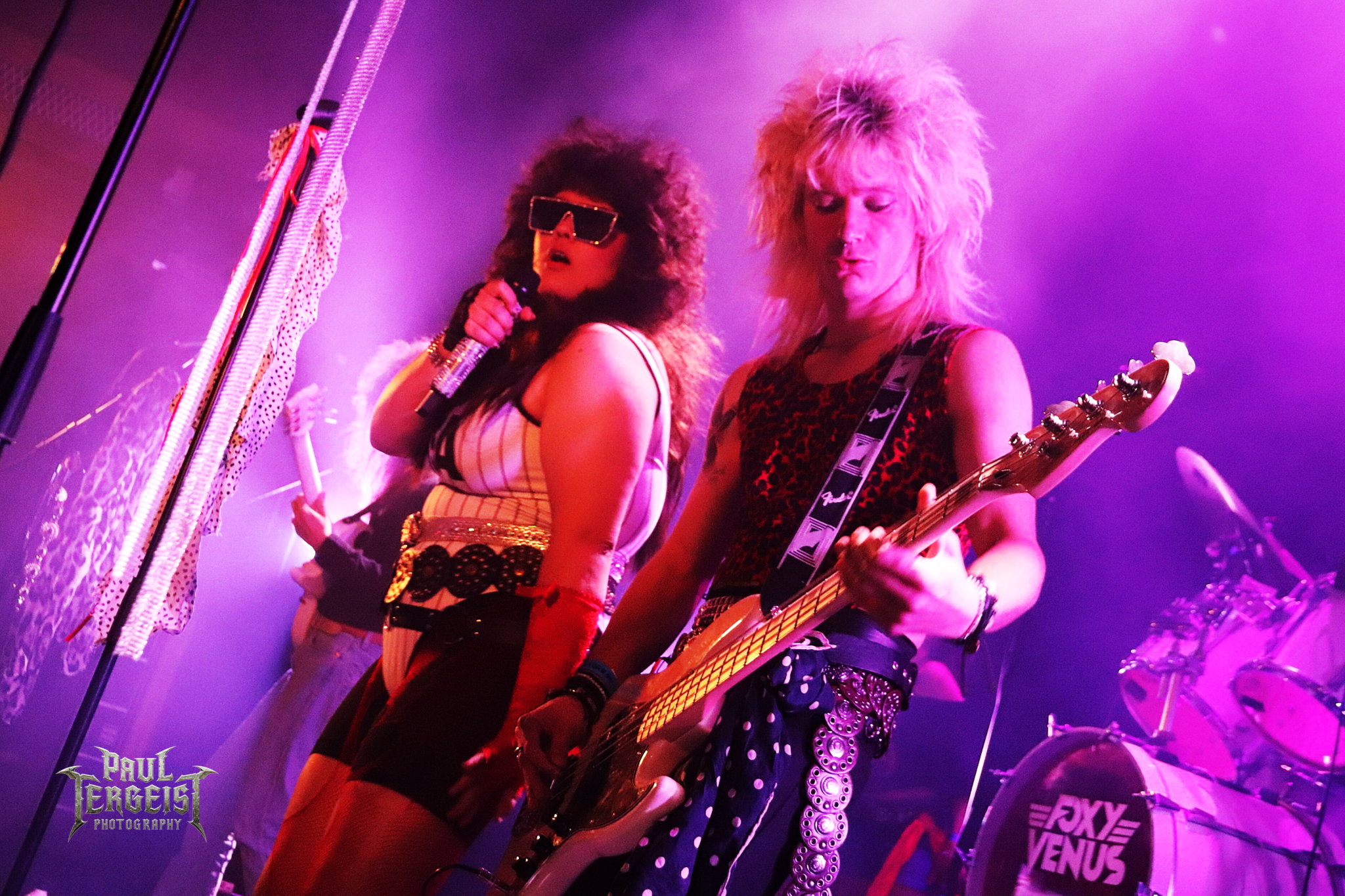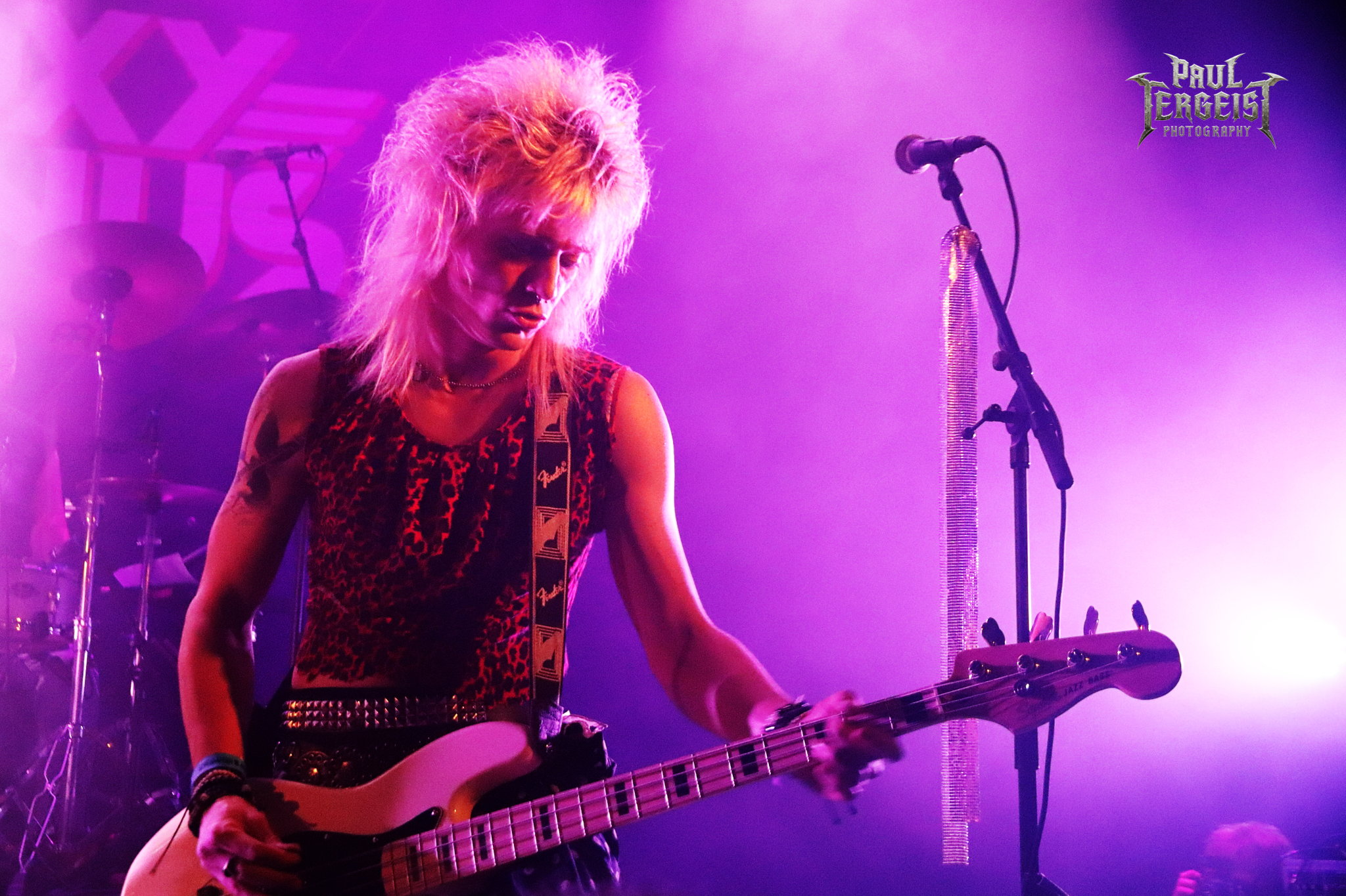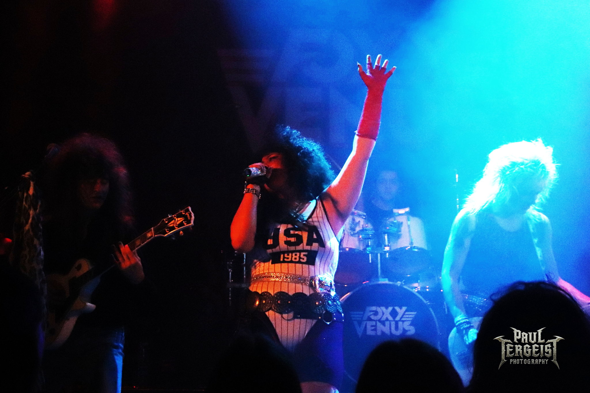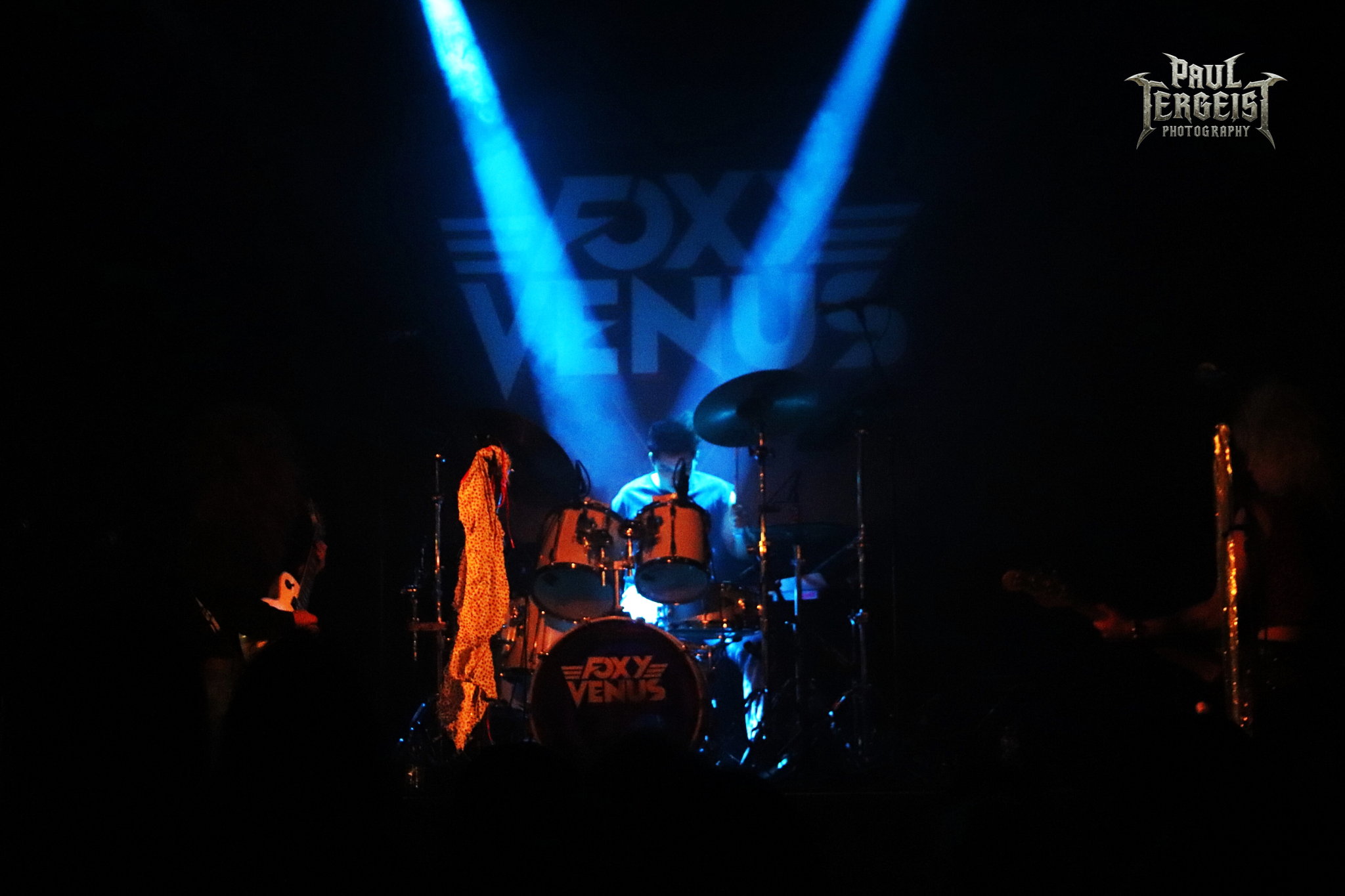 L’organisation a bien fait les choses en donnant l’occasion au jeune groupe néerlandais Foxy Venus de se produire devant un public potentiellement réceptif à ce son des années 80. Débarquant sur scène en arborant un look qui n’aurait pas dépareillé sur le Sunset Strip au temps où le glam/hair metal squattait régulièrement le top des charts US, avec spandex et permanentes (ou, assez vraisemblablement, perruques), les jeunes gens peuvent laisser supposer qu’ils officient dans un genre parodique, façon Steel Panther. Or, il n’en est rien et, si leur répertoire lorgne du côté de tous les groupes de glam du L.A. de la grande époque, on pense souvent à Mötley Crüe ou à Ratt, à la différence que le chant est ici assuré par une chanteuse. Son timbre est à la fois sensuel et puissant, tandis que ses collègues sont loin d’être des manchots. Périodiquement ringardisé, souvent moqué et généralement plutôt dénigré, le hair metal reste bel et bien un style perpétué par de nombreux jeunes talents, parmi lesquels Foxy Venus n’est pas le moins intéressant.