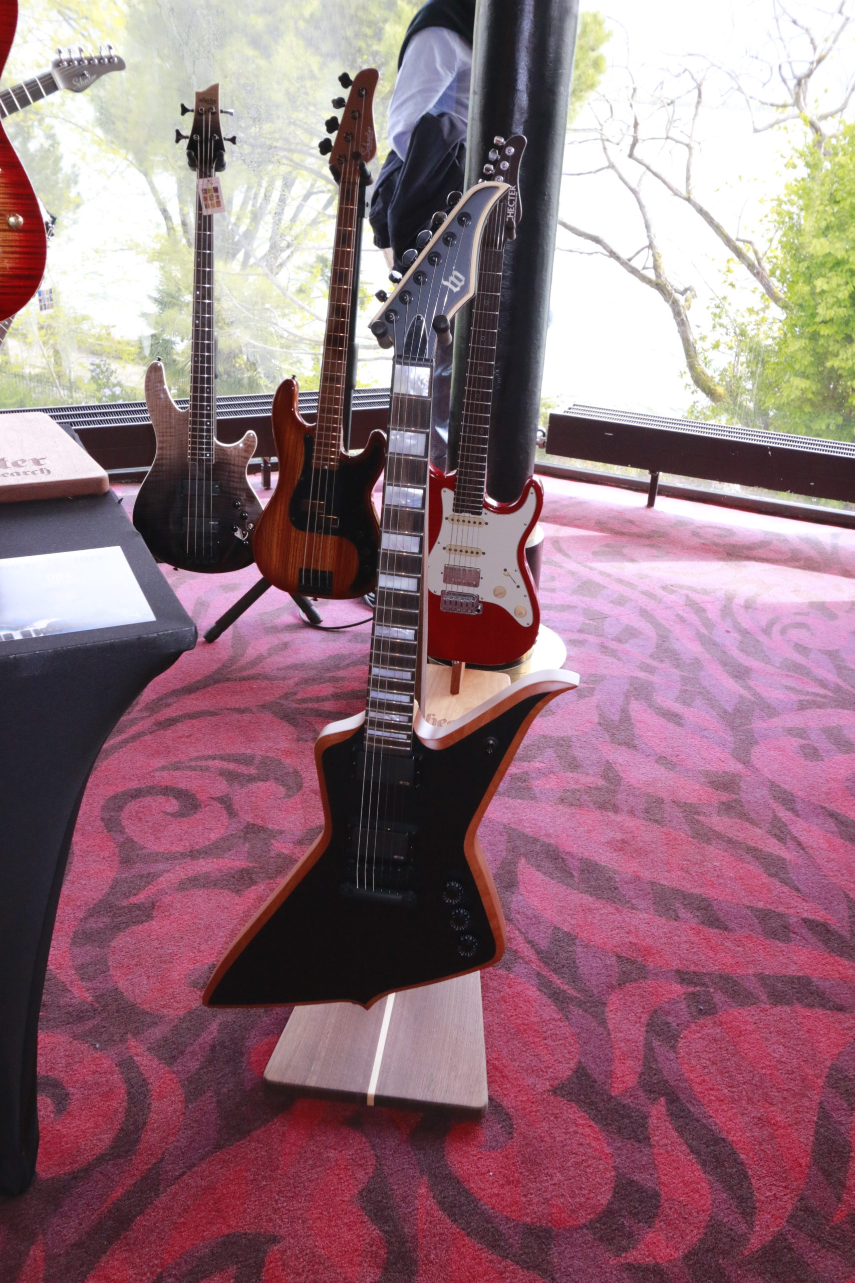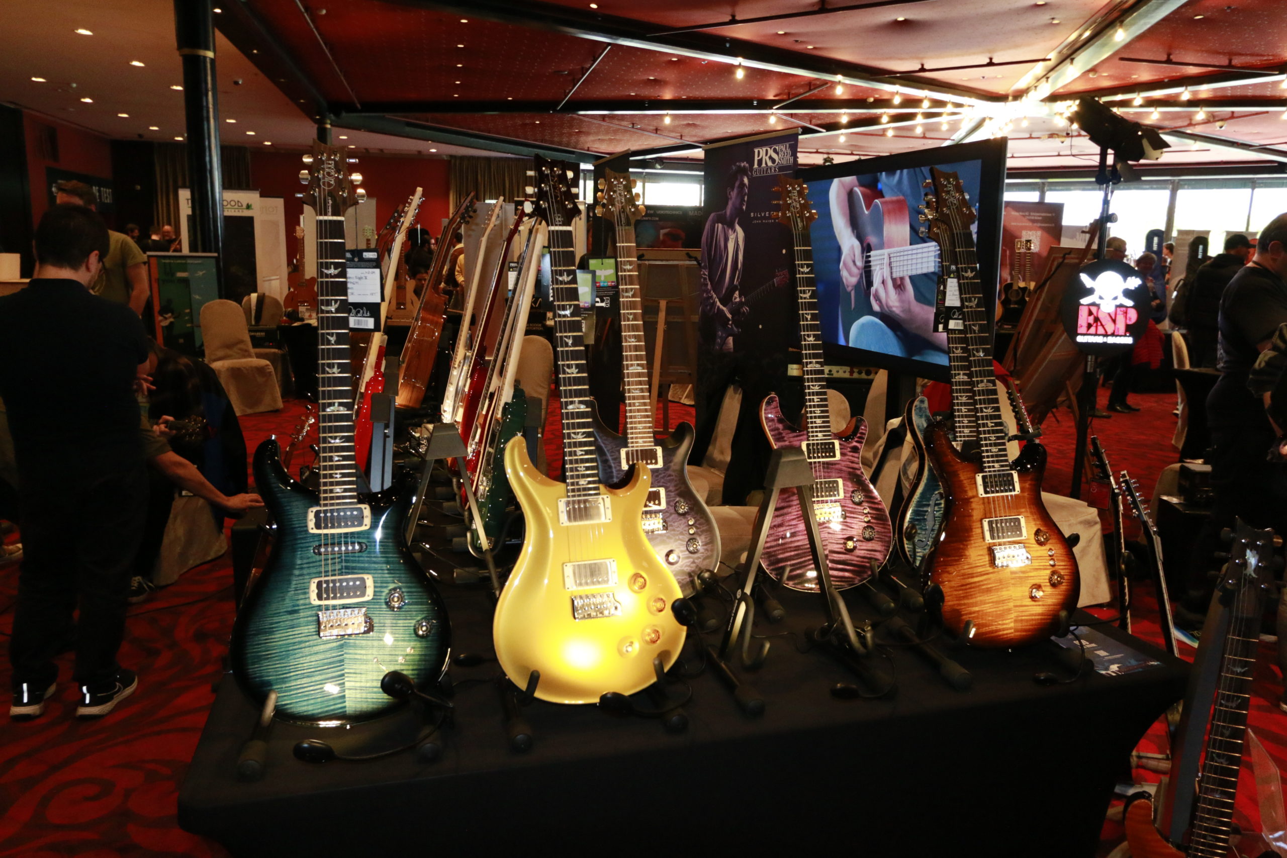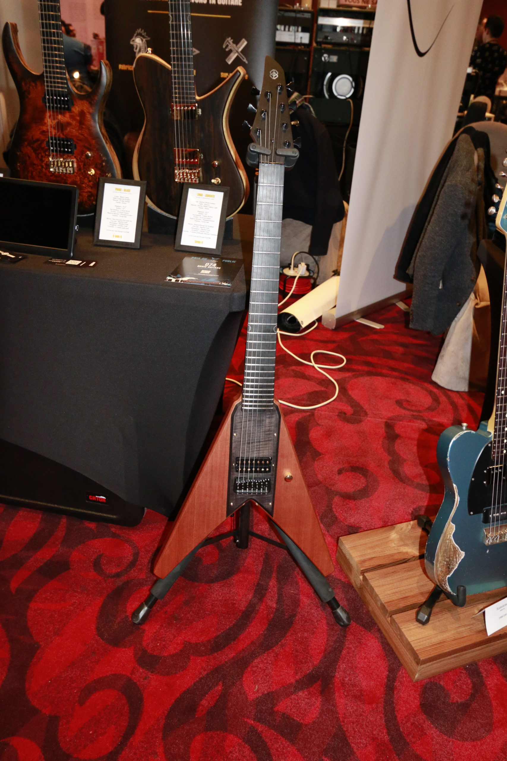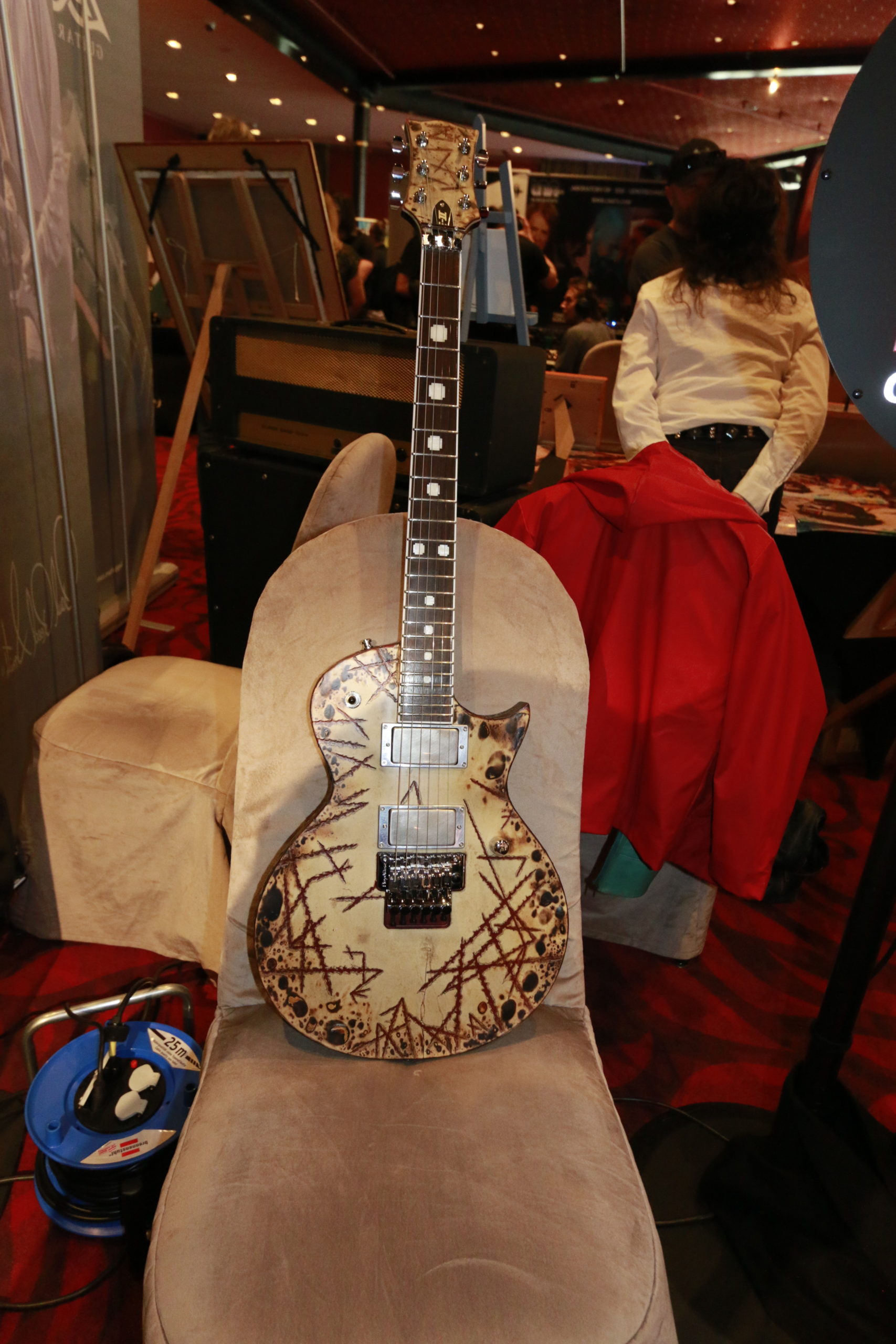 Nous débutons notre visite par le stand ESP, une marque incontournable endossée par de nombreux guitaristes, qui a apporté de superbes modèles, classiques ou plus originaux, comme la superbe ESP-F-II-RZK-II Burnt, un modèle signature créé spécialement pour Rammstein.