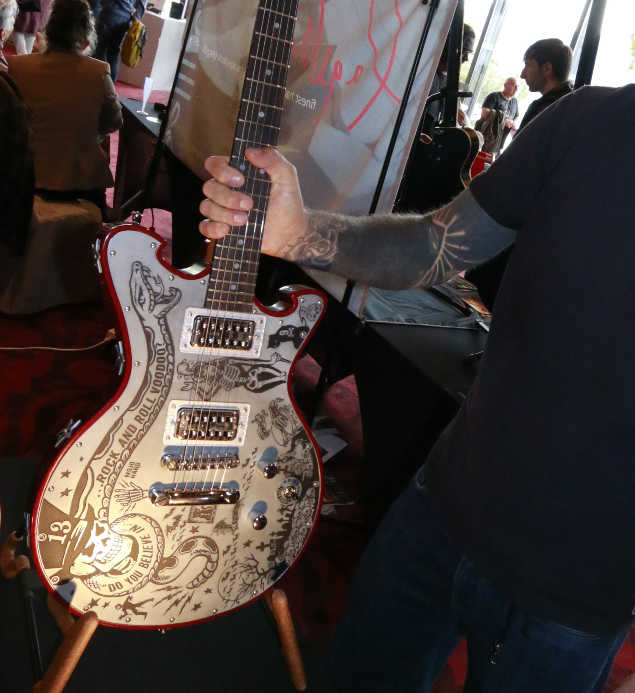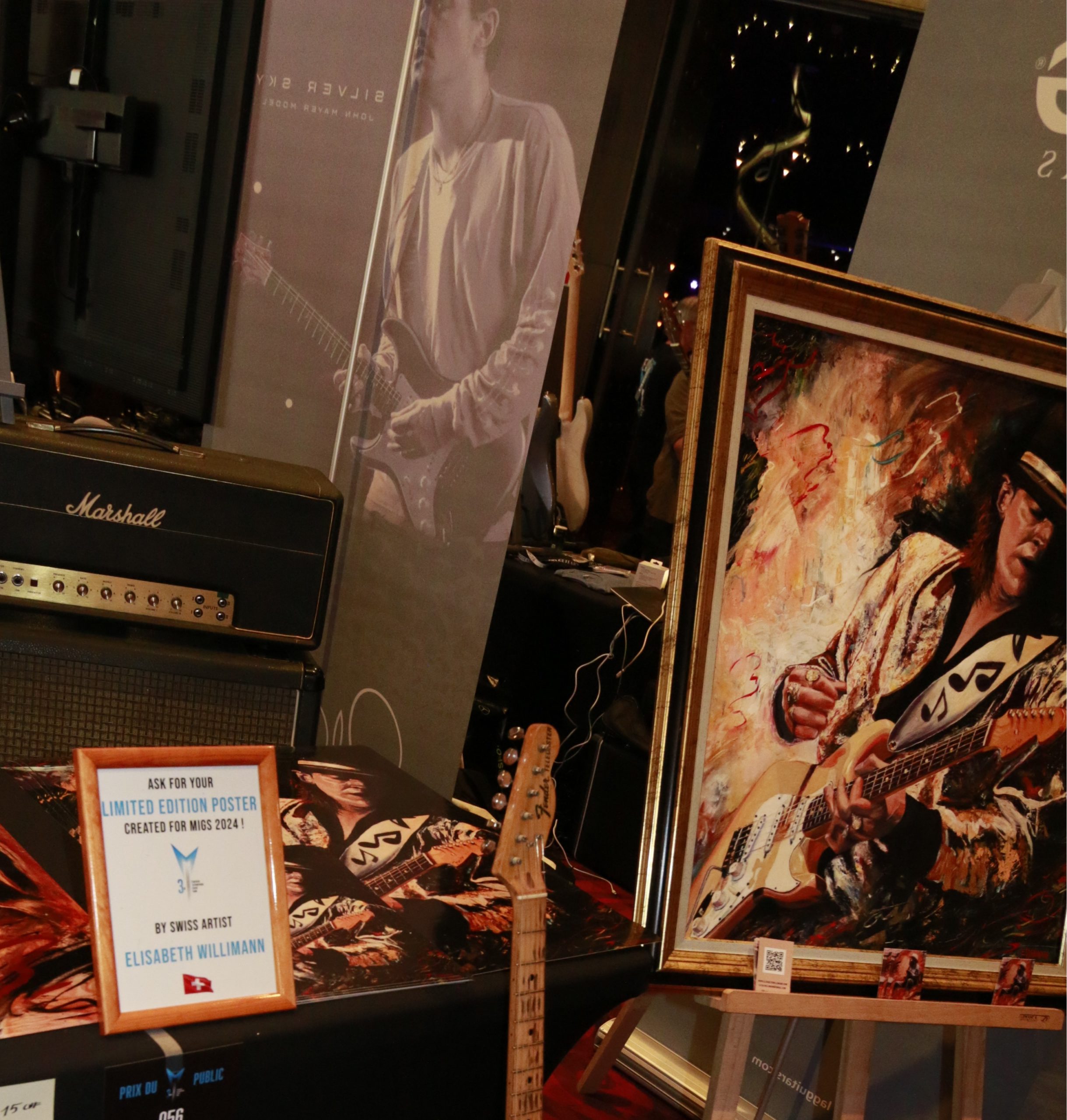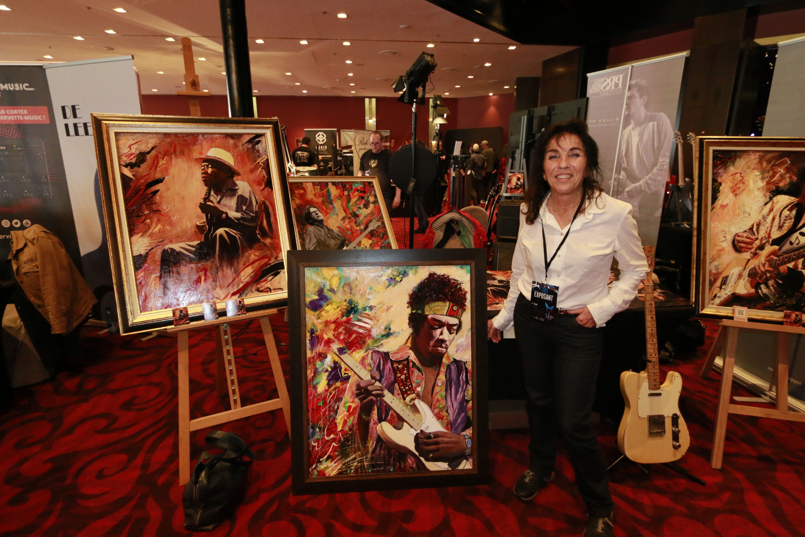 Cette édition a été particulièrement réussie avec beaucoup de choix de guitares toutes plus belles les unes que les autres et avec des nouveautés. Nous avons beaucoup aimé un stand très particulier et singulier, celui d’une artiste peintre, Élisabeth Williman, qui, avec son art et ses tableaux splendides, a su capturer l’essence des plus grands guitaristes tels que Stevie Ray Vaughan, Jimi Hendrix, John Lee Hooker, Eric Clapton et bien d’autres en les immortalisant dans ses œuvres. Du grand Art.