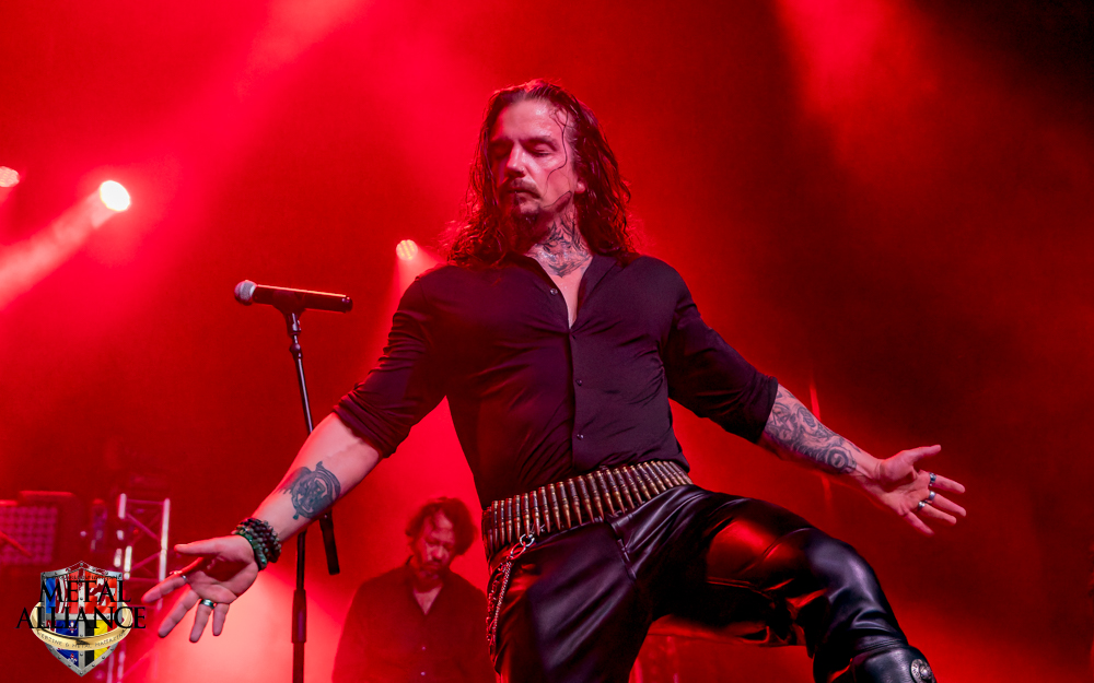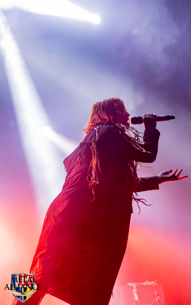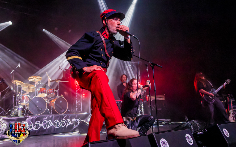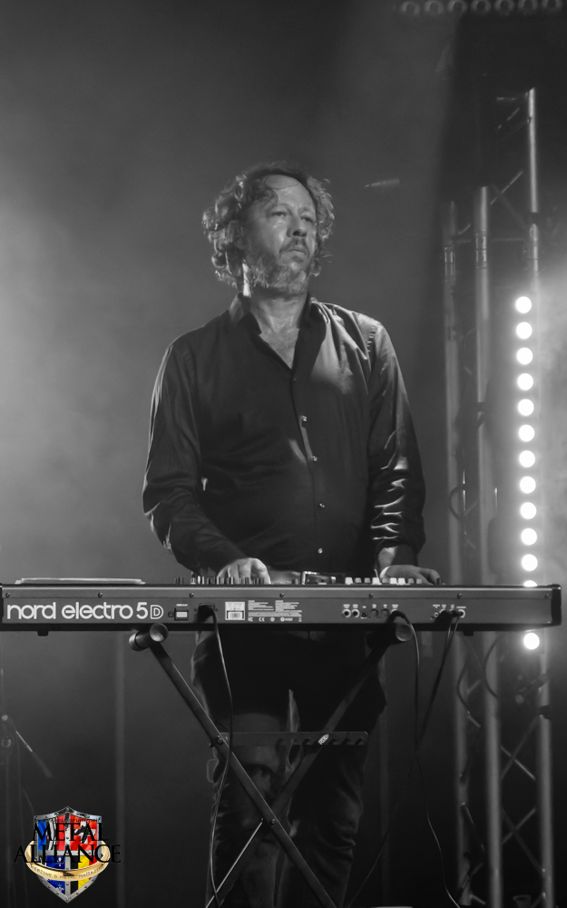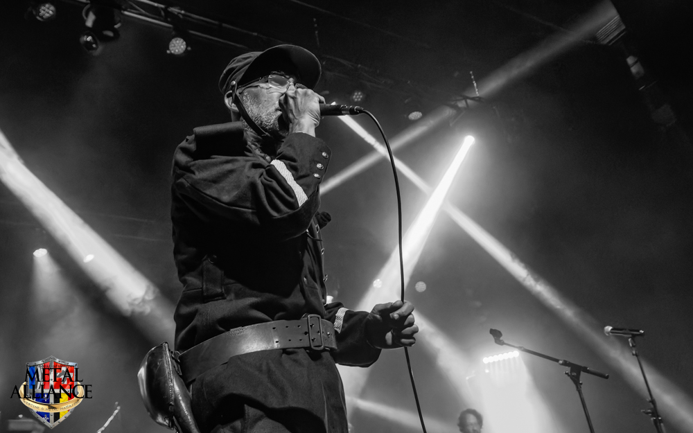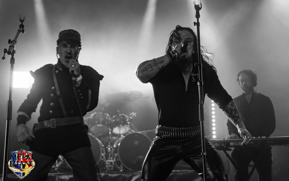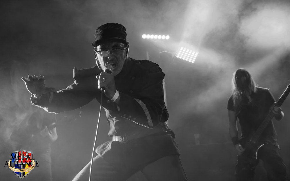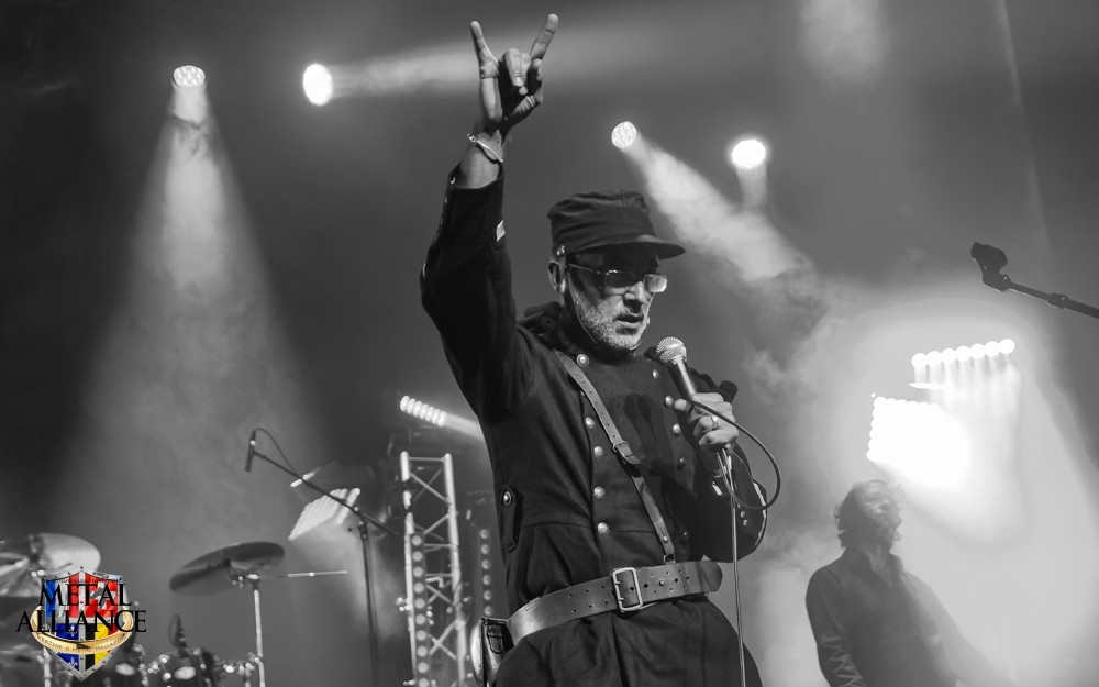 Le monde attend déjà devant l’entrée, l’ouverture des portes a lieu à l’heure, Ben et les bénévoles sont au taquet. FT-17 entre en scène, sans crier gare, la voix d’Hugo résonne et un essaim de metalleux et metalleuses se dirige au pied de la scène. Rodolph de FT-17, nous a briefés, les chansons extraites des trois albums seront jouées dans l’ordre chronologique des faits historiques qu’elles évoquent. Le piano, décrit bien souvent comme glacial, permet de s’ancrer ou se réancrer dans la réalité, en solo, ou en duo avec Tom et Hugo pendant les interludes. Pendant le 2e morceau, La fleur au fusil, les changements de rythme et le solo de guitare sont incessants. Je reviens sur le duo chanté par Tom et Hugo qui est intéressant, le travail de la voix de Tom ajoutée à celle d’Hugo, le doublement des voix est peut-être ce qui donne la profondeur, ils sont à l’unisson et pourtant il y a une différence l’un sans l’autre, une belle dualité d’un seul être : Marcellin, personnage central de l’album Marcellin s’en va-t’en guerre. C’est Tom qui introduit La poursuite, et oui Hugo sort de scène pour changer de costume, l’époque change et la tenue militaire évolue en fonction de celle-ci, le képi laisse place au casque, le bleu change mais la guerre est toujours là. Le morceau est long, à la fin de celui-ci Hugo s’est changé, et dans sa nouvelle tenue, il énonce une nouvelle lettre. Je reviens sur la place du piano qui intervient aussi dans certains morceaux. Je crois que l’esprit symphonique n’est pas que dans le type d’instruments utilisés, il est aussi et surtout dans la composition et l’enchaînement des mélodies comme dans l’armée des taupes ou Les baïonnettes de Corbény.
