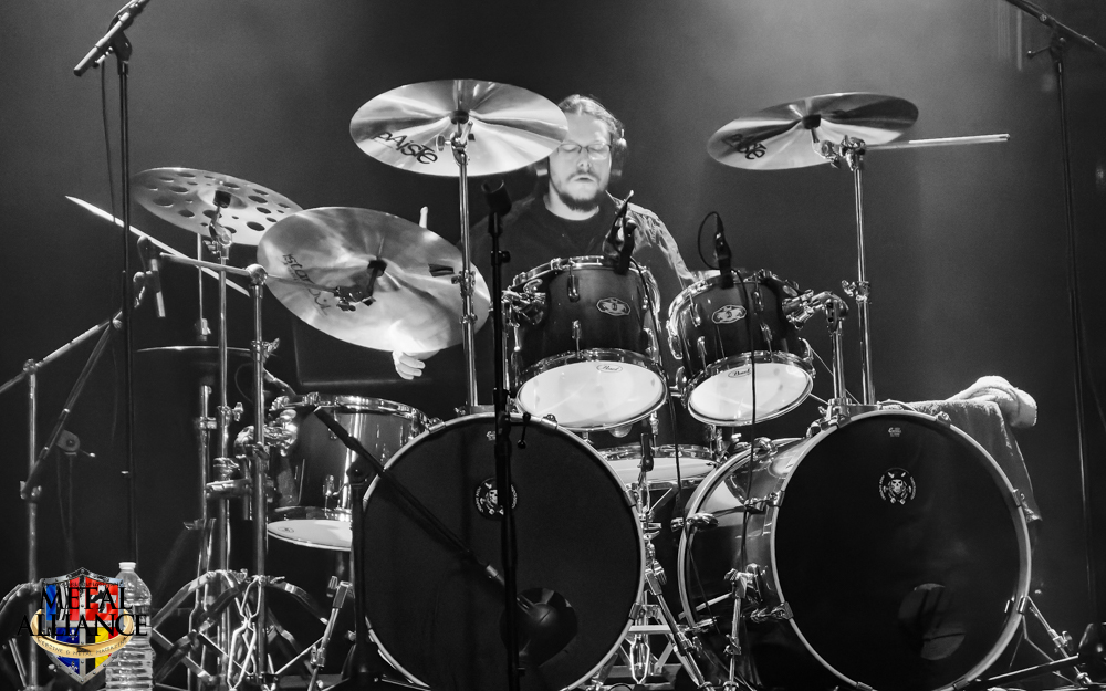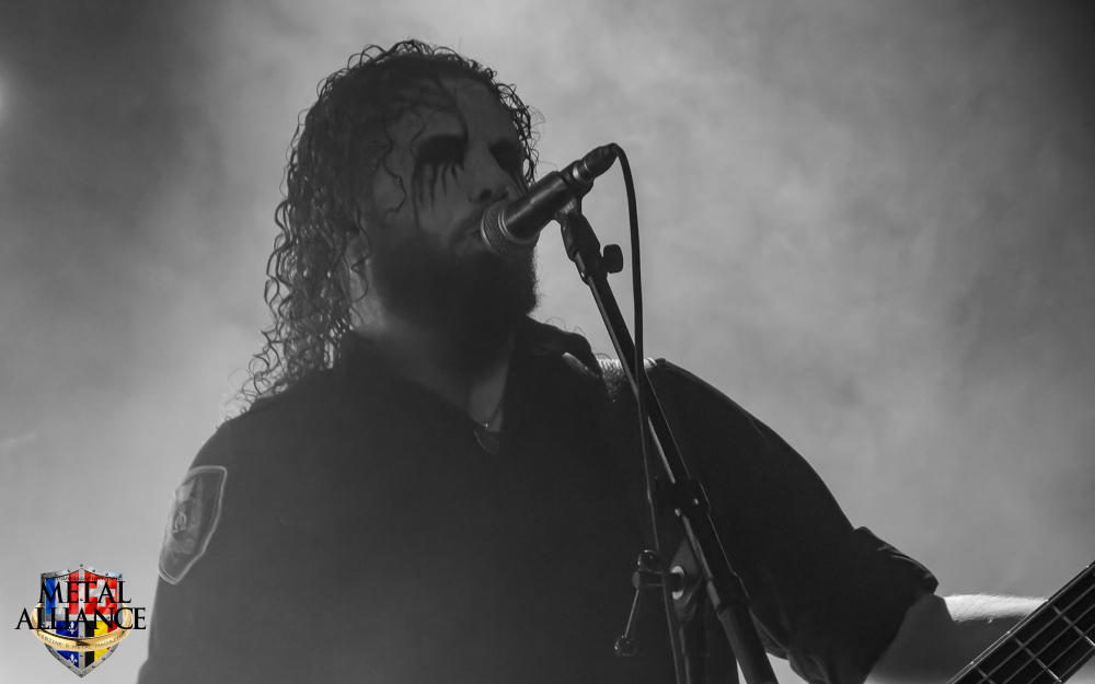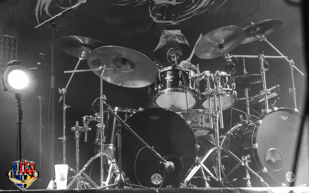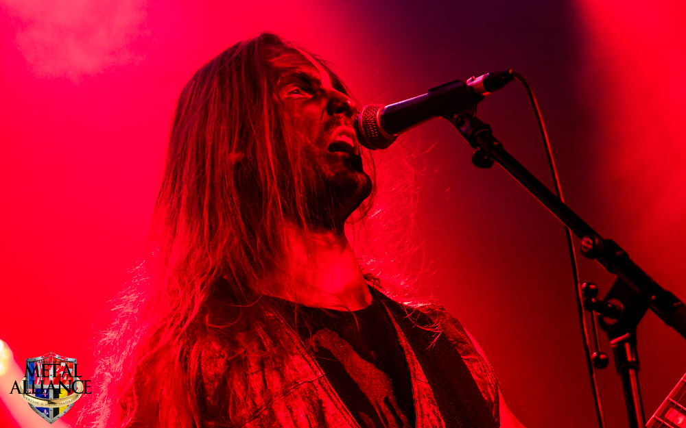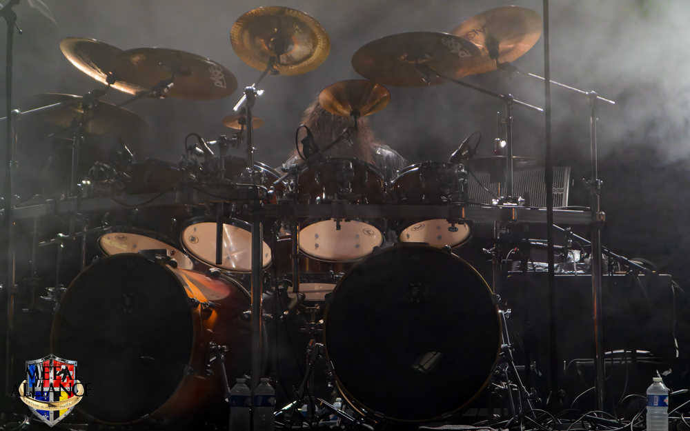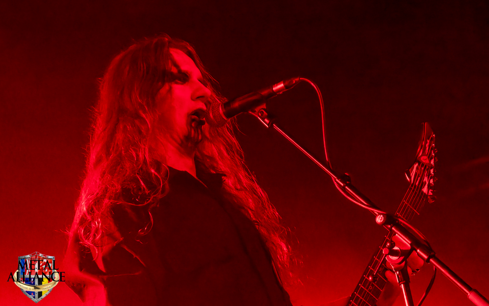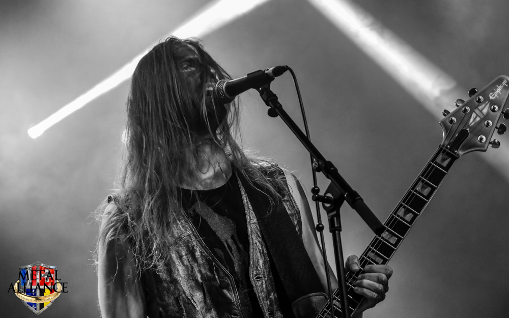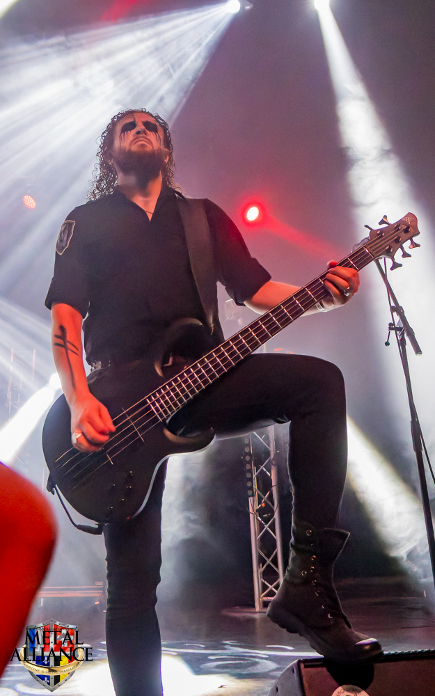 Tiermes, le bassiste, harangue le public, ça y est ! C’est parti ! La batterie tabasse, vive la maîtrise de la double pédale et l’année 1983, année de la naissance de celle-ci, c’est bon, appuyé par la basse. Tiermes maîtrise ses cordes qui résonnent dans la salle. Adam the First Sinner, statique derrière son micro, nous balance une voix sortie des entrailles, de ses entrailles, de la profondeur de son âme. Domin ne démérite pas. En effet, le niveau est allé crescendo. Un bon set, le public est là pour le groupe qui le lui rend bien. Franchement, la première journée du Muscadeath nous donne une bonne dose de son. Vivement la confirmation demain !