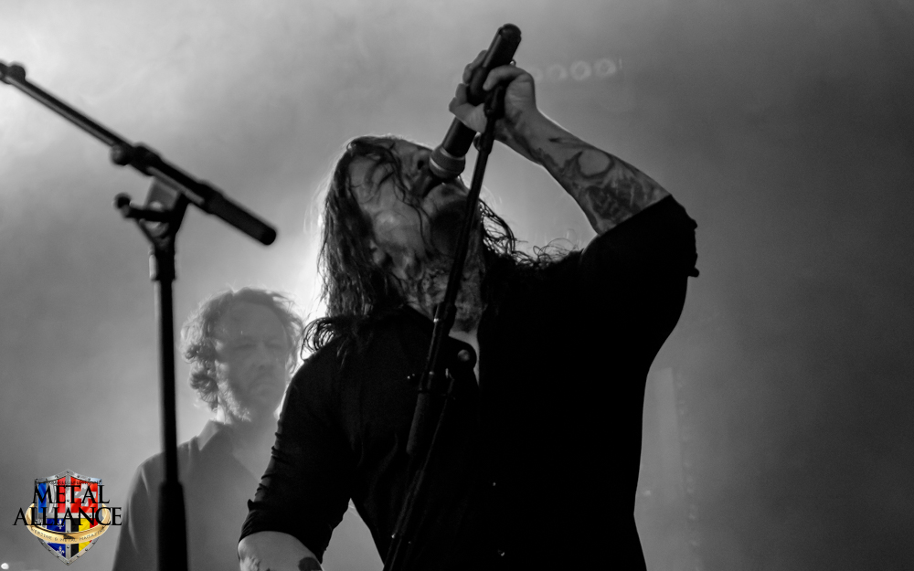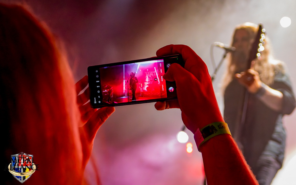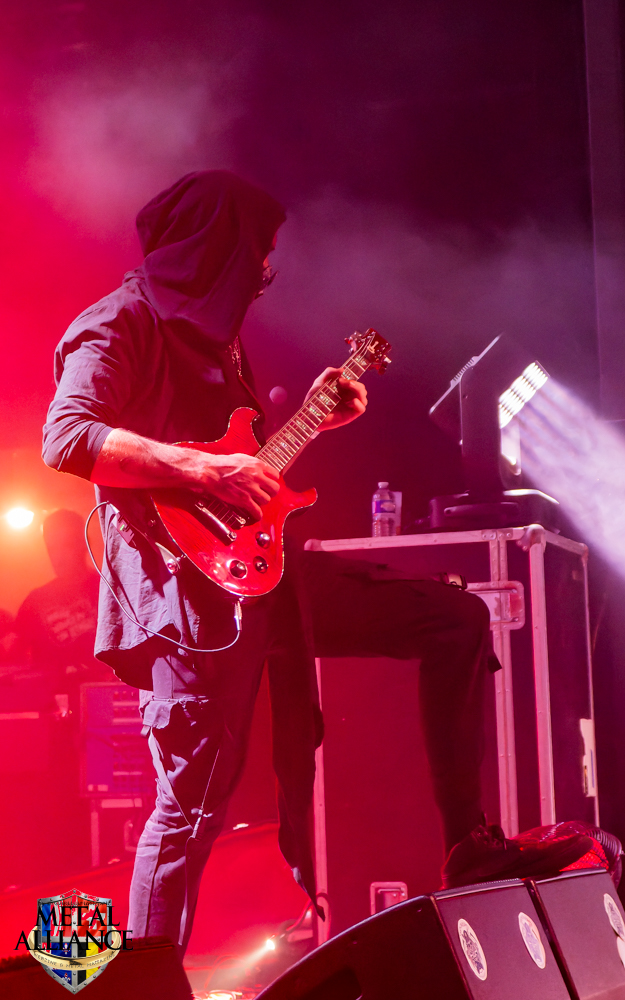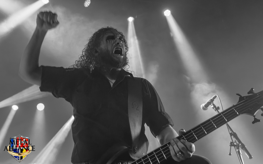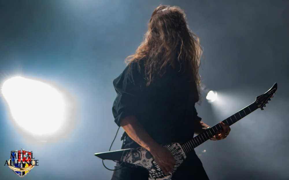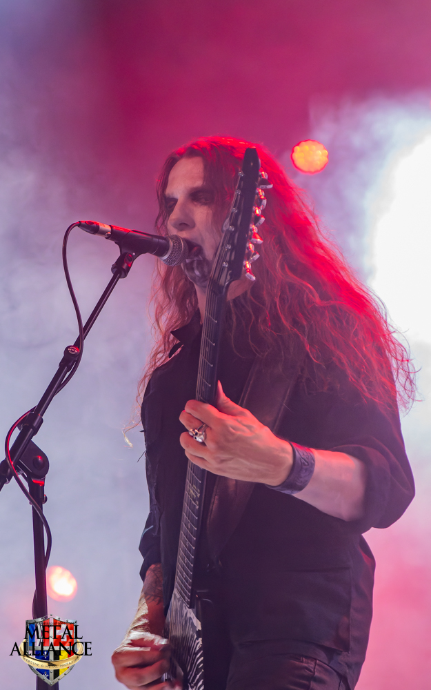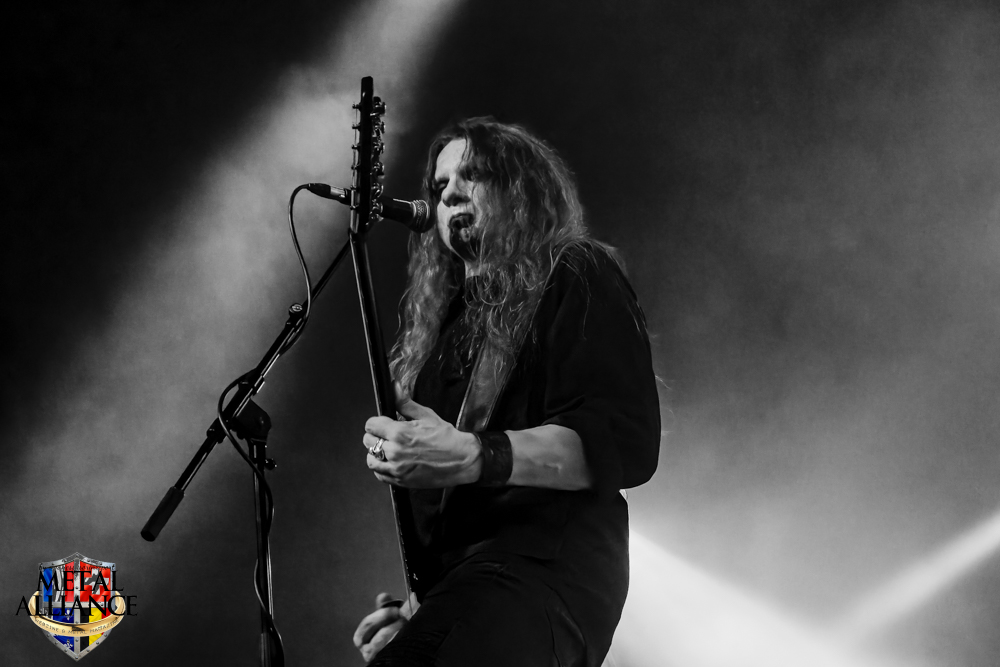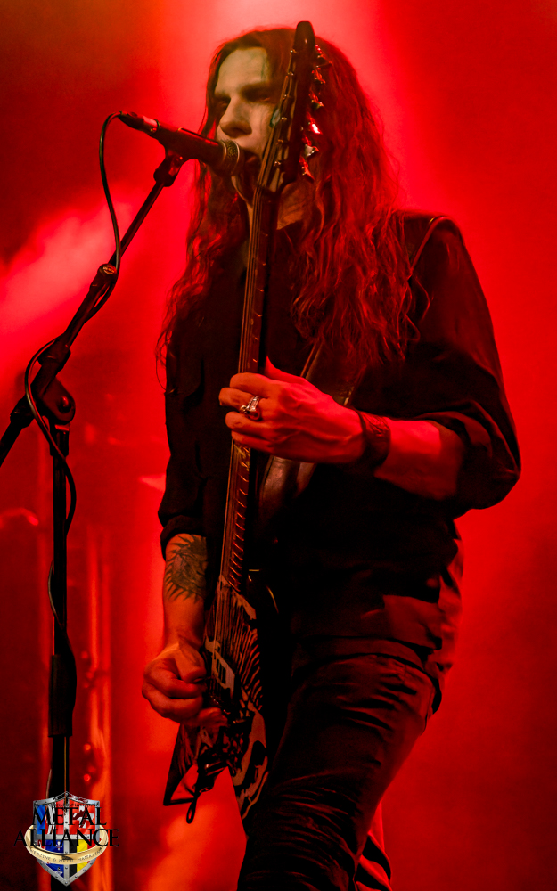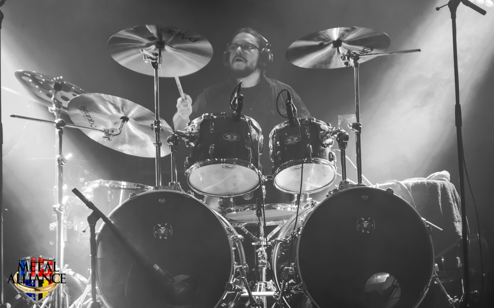 Tiermes, le bassiste, harangue le public, ça y est ! C’est parti ! La batterie tabasse, vive la maîtrise de la double pédale et l’année 1983, année de la naissance de celle-ci, c’est bon, appuyé par la basse. Tiermes maîtrise ses cordes qui résonnent dans la salle. Adam the First Sinner, statique derrière son micro, nous balance une voix sortie des entrailles, de ses entrailles, de la profondeur de son âme. Domin ne démérite pas. En effet, le niveau est allé crescendo. Un bon set, le public est là pour le groupe qui le lui rend bien. Franchement, la première journée du Muscadeath nous donne une bonne dose de son. Vivement la confirmation demain !
